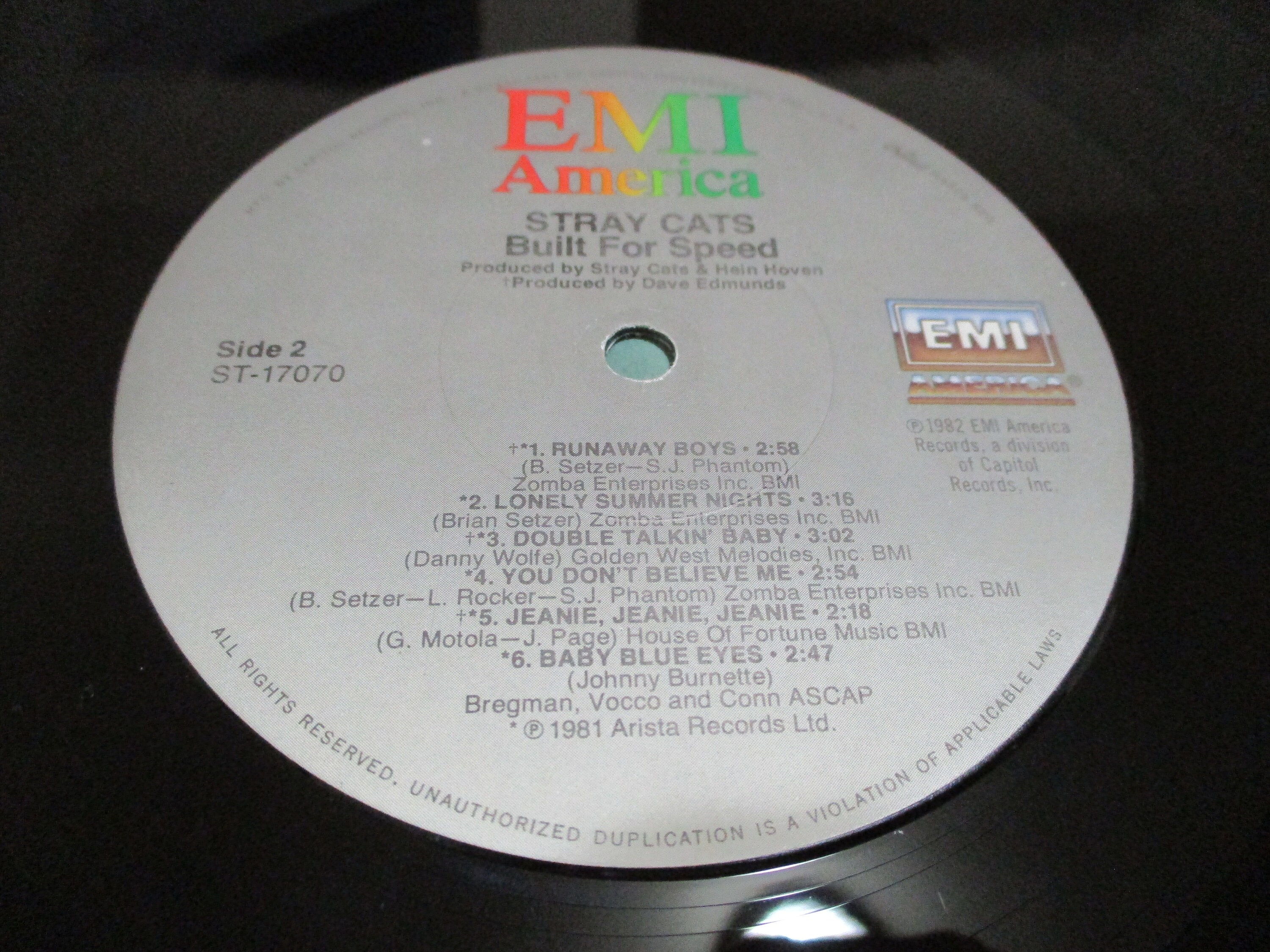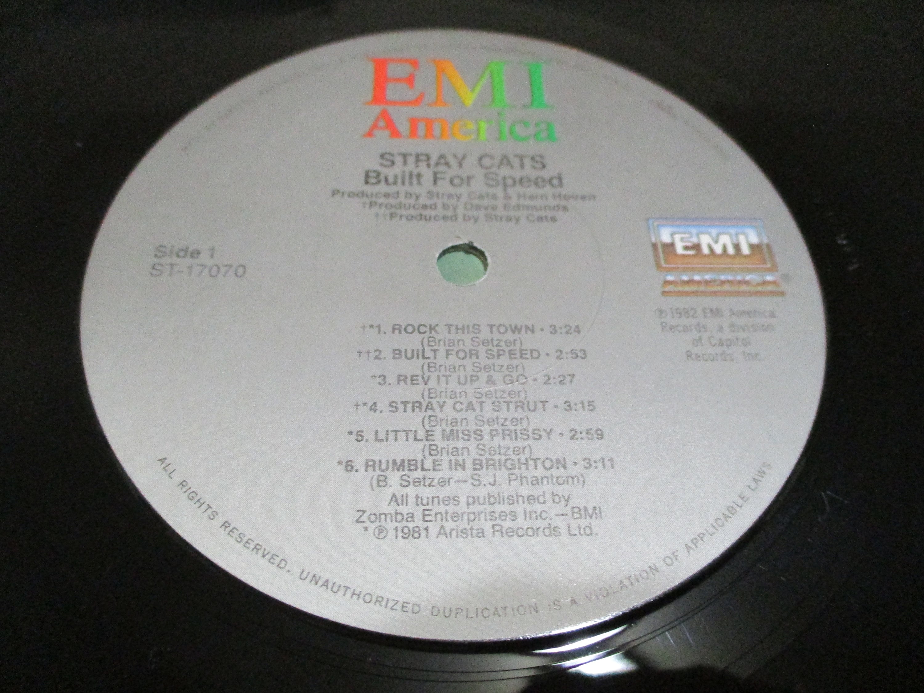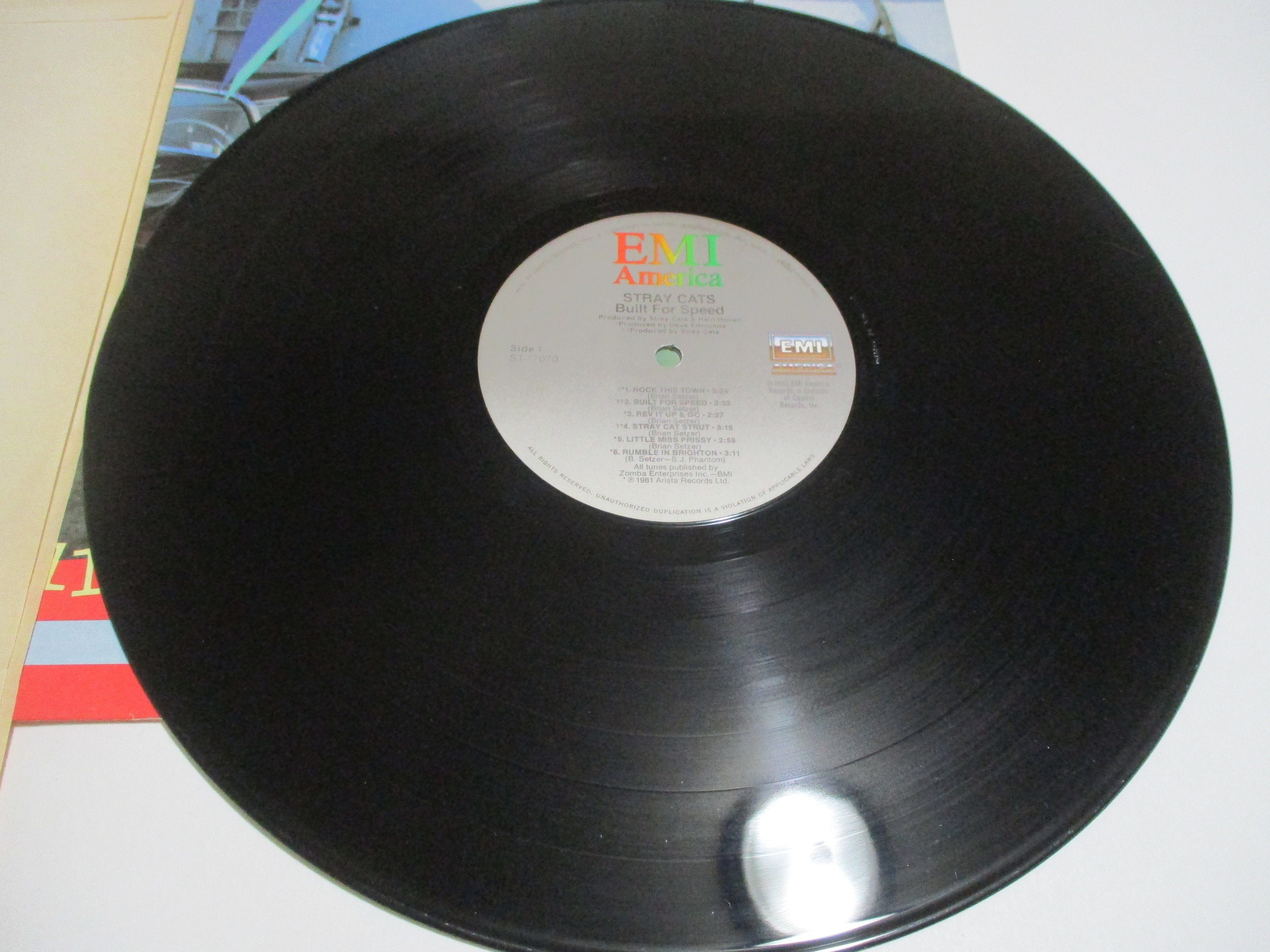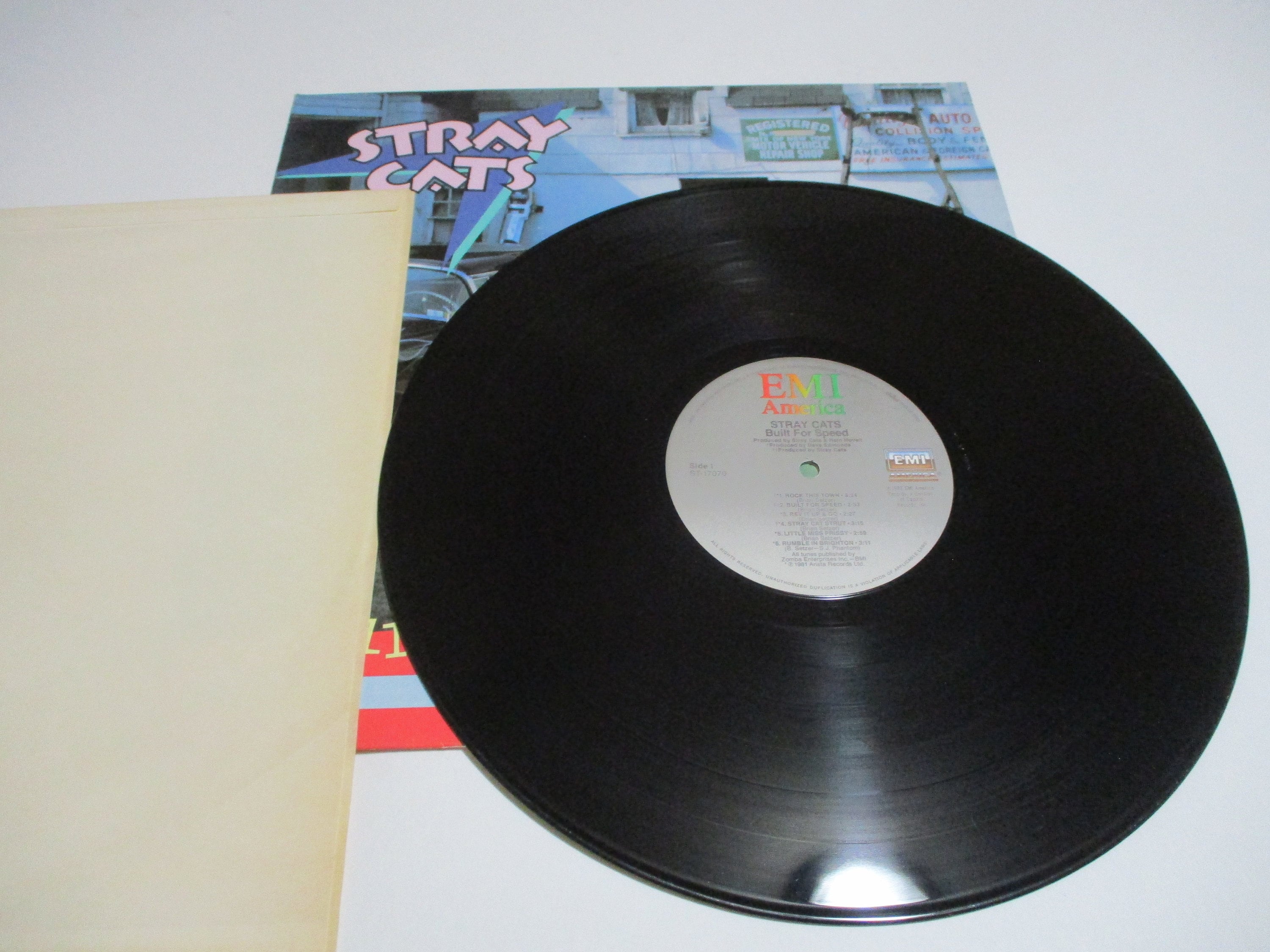 Vintage 1982 Vinyl LP Record Stray Cats Built for Speed Excellent Condition. Original cover is in fair condition and Includes the inner paper sleeve. Cover has a very worn spine that has clear tape over it. However, Record is excellent. Tracks are as follows