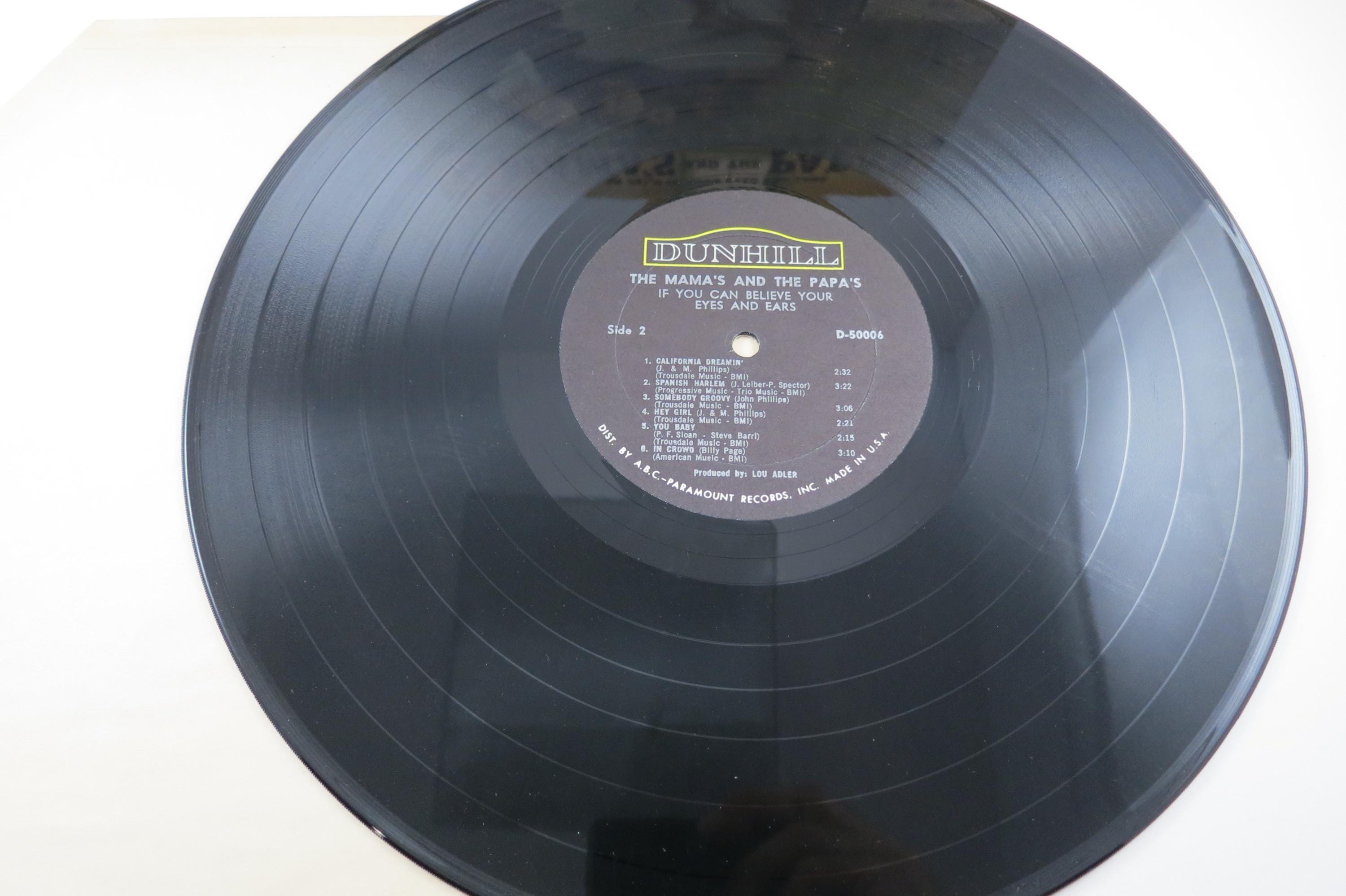 Vintage 1966 Vinyl LP Record The Mama's and the Papa's If You Can Believe Your Eyes and Ears Excellent Condition MONO Pressing. Original cover is in excellent condition and includes the original inner paper sleeve. Record is excellent and is an original Mono Pressing. Has light marks that do not affect the play and a previous owners name sticker on the label. Tracks are as follows