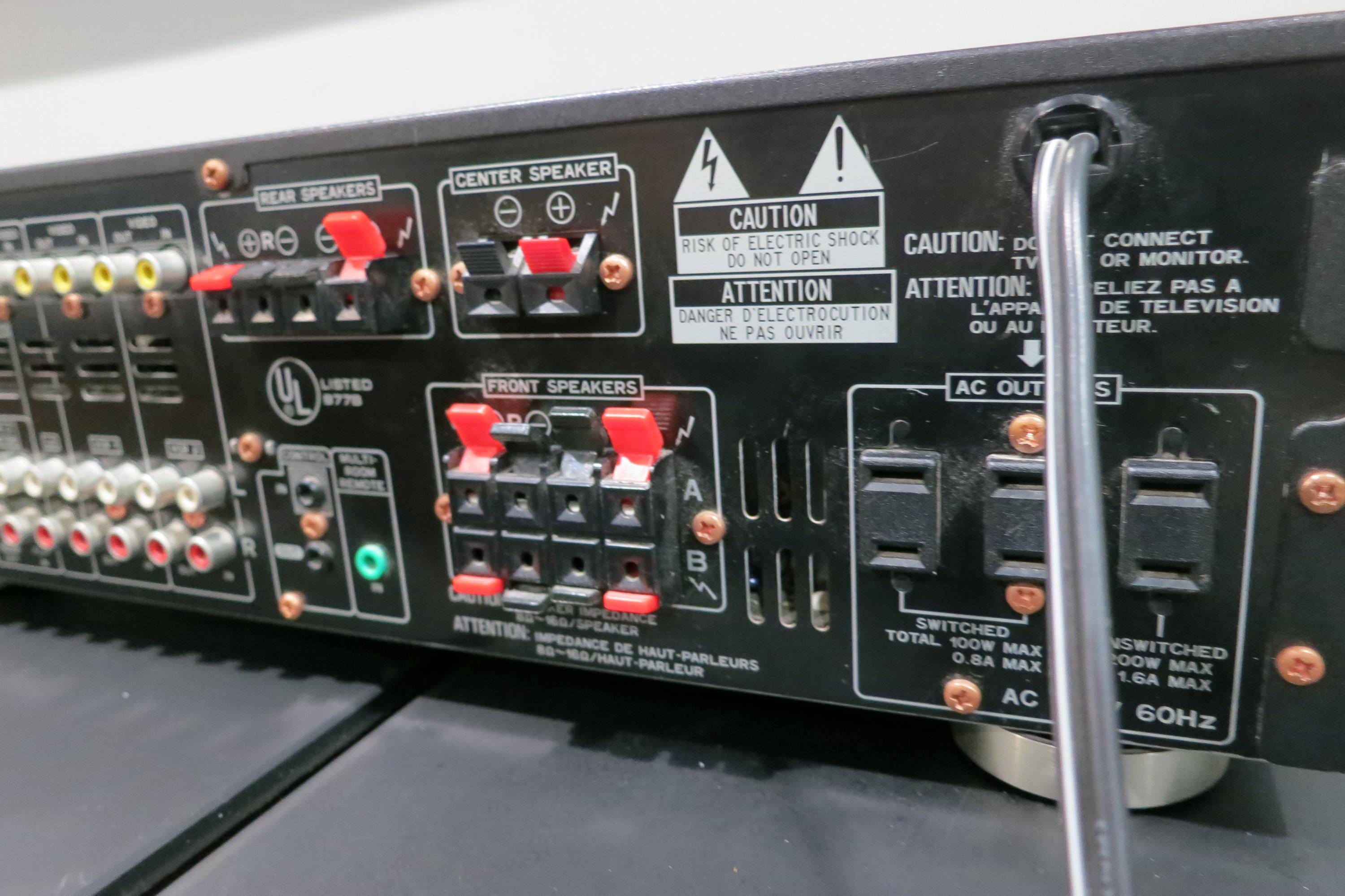 This is a very nice and Powerful Pioneer. 420 Watts, features dolby pro logic, 20 FM Presets, Orange Display, A and B Speaker Selectors, Bass/Treble and Acoustic Controls, Direct Access and Auto Tuning, Dolby Noise Reduction, 2 100 Watt Rear AC Plugs and 1 200 Watt, Inputs for Phono/CD/Tape 1/Tape 2/Laser Disc/VCR1/VCR2. Quality made in Japan! It has a small cosmetic crack on the top left side that does not affect it in any way.
