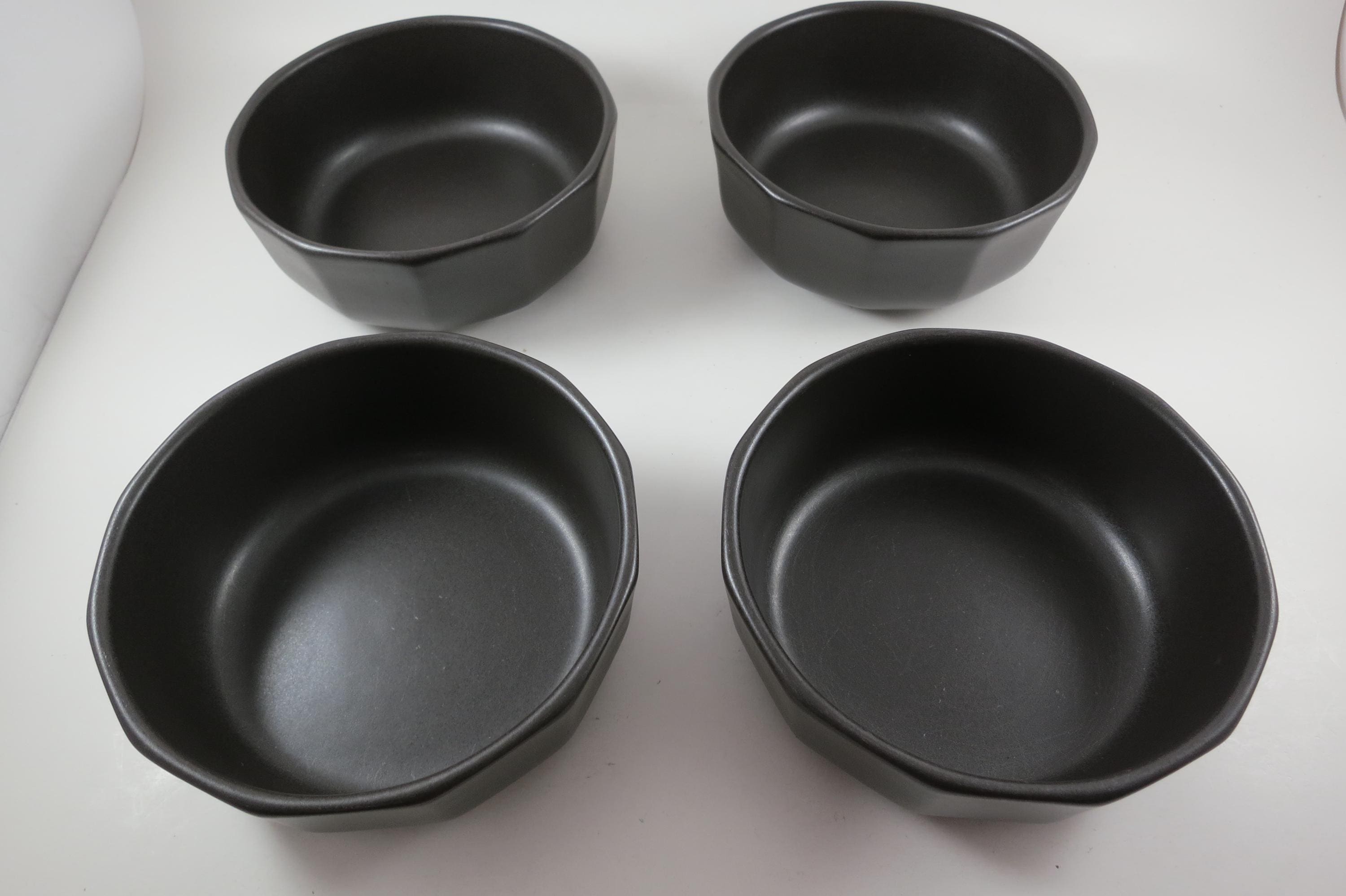 Vintage Pfaltzgraff Cocoa Brown 5 1/2 Inch Soup Bowls Excellent Condition Set of Four. All four are in excellent condition with no chips, cracks or damages. They measure 5 1/2 inches wide and 2 1/4 inches deep.
