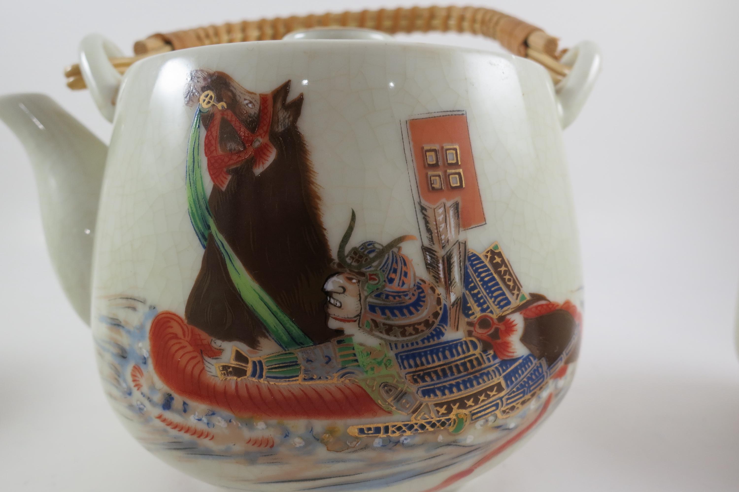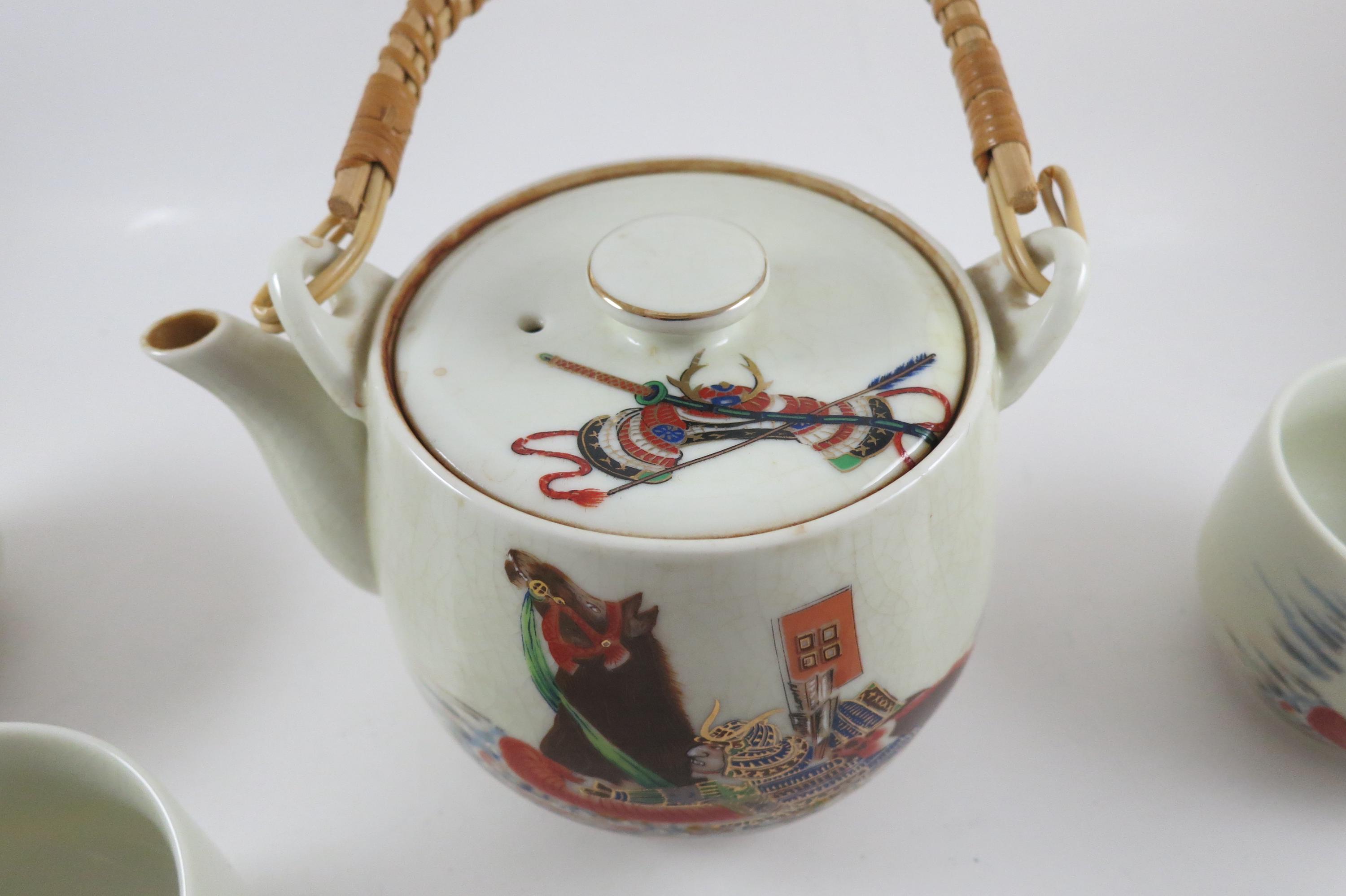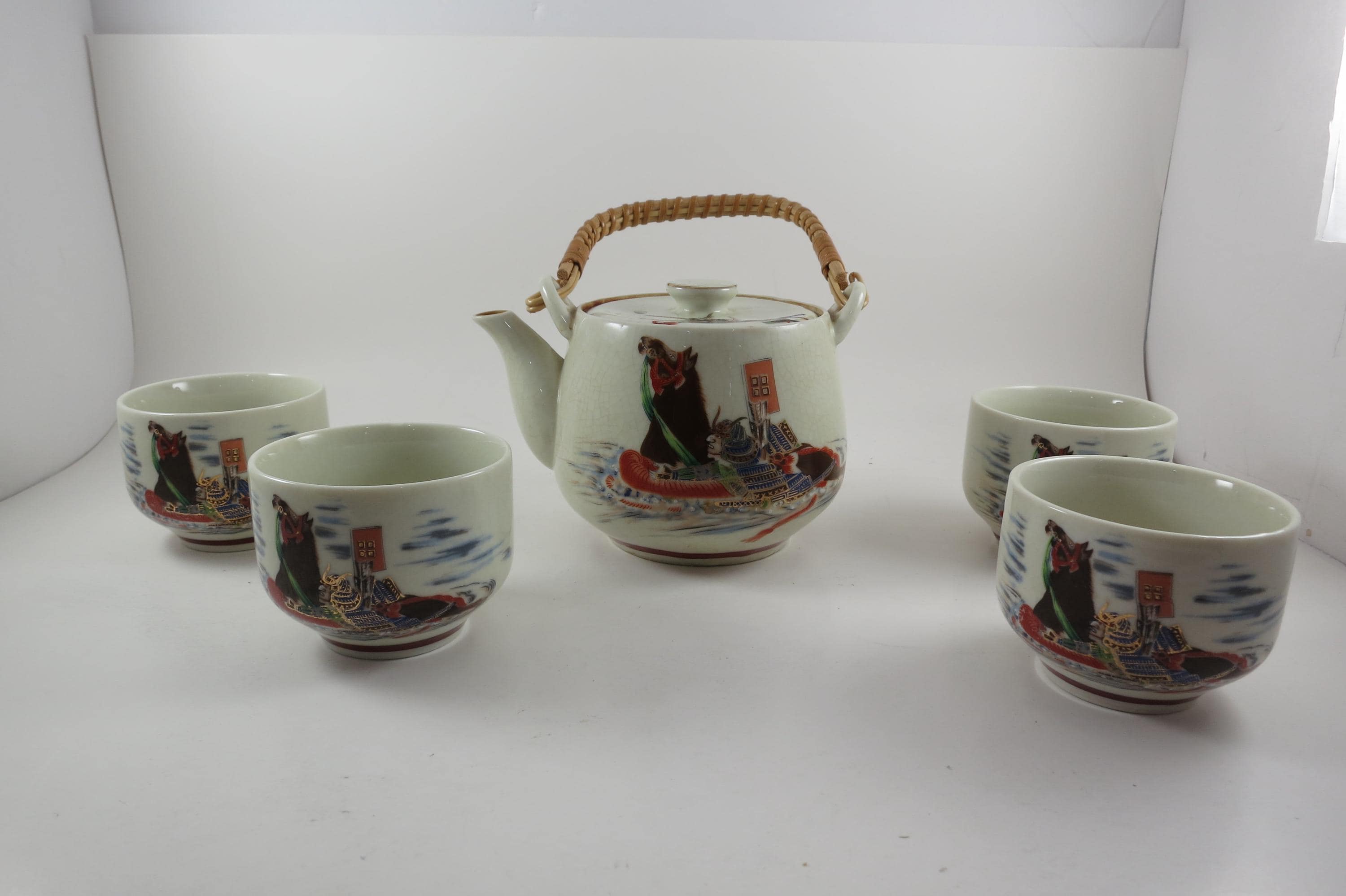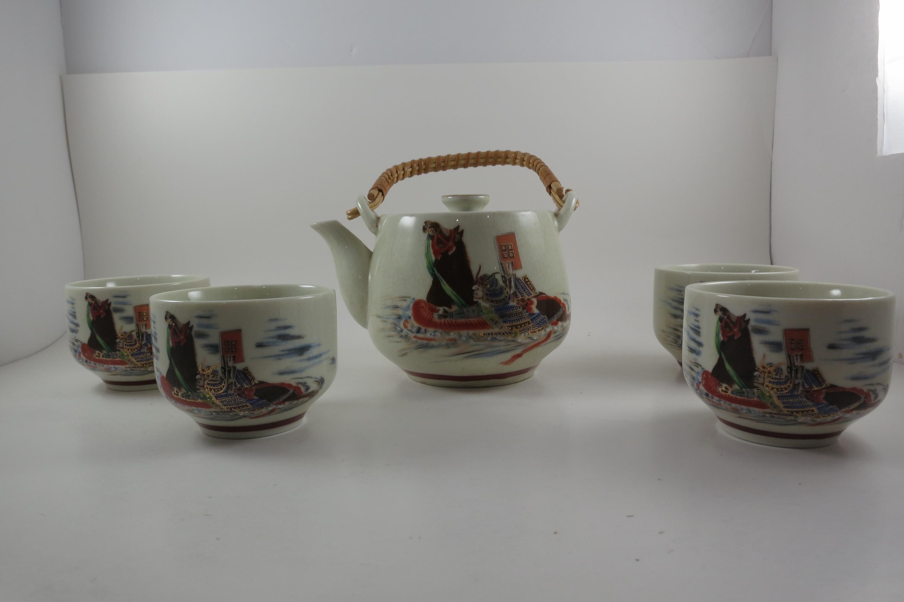 Vintage Japanese Sake Set 5 Piece Pot plus 4 Cups.