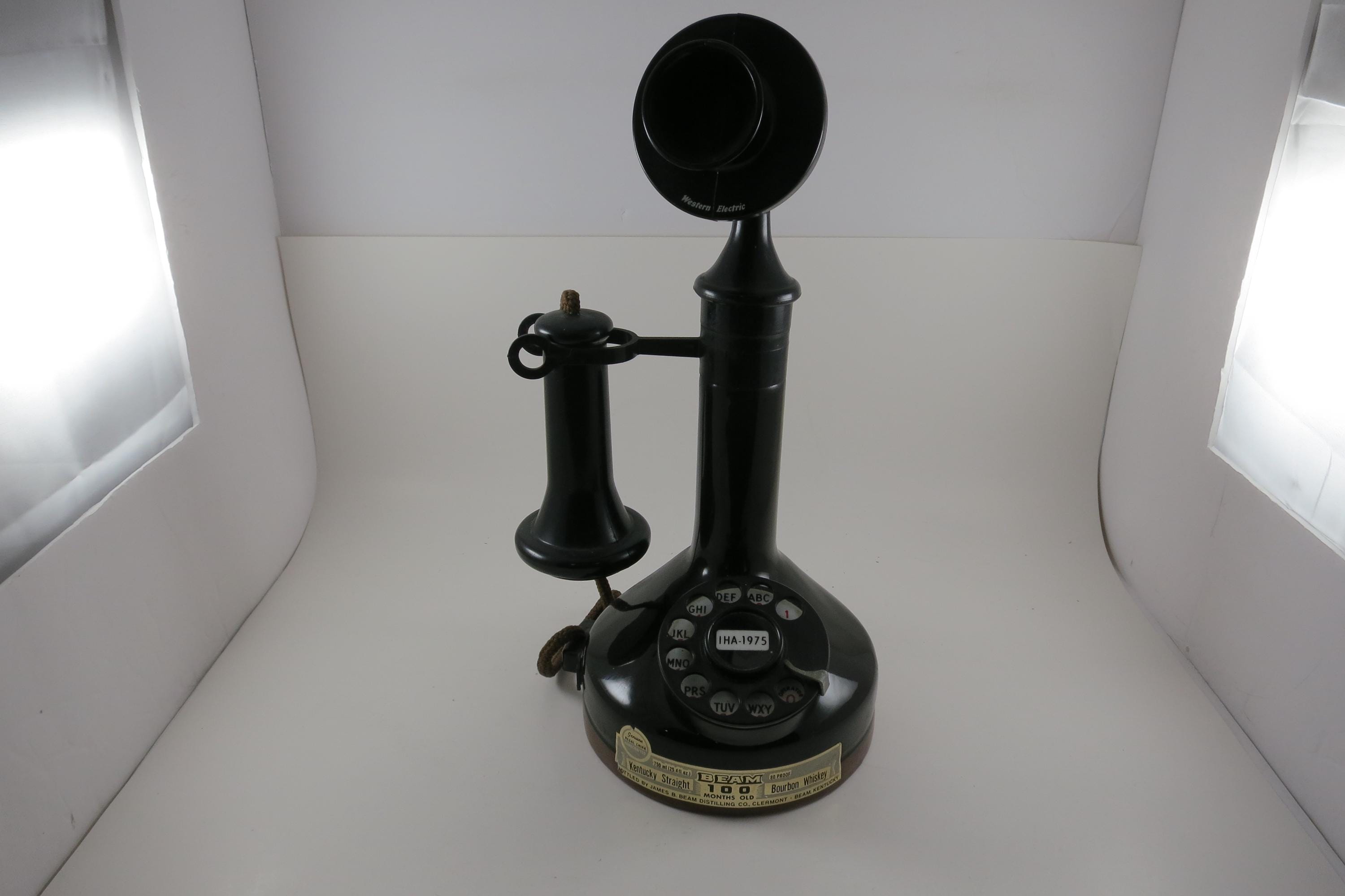 Vintage 1975 1919 Dial Telephone Jim Beam Bottle Decanter Excellent Condition. This is a beautiful beam bottle that stands 13 1/4 inches tall and 6 inches wide. No cracks or damages. Sorry, It's Empty!!