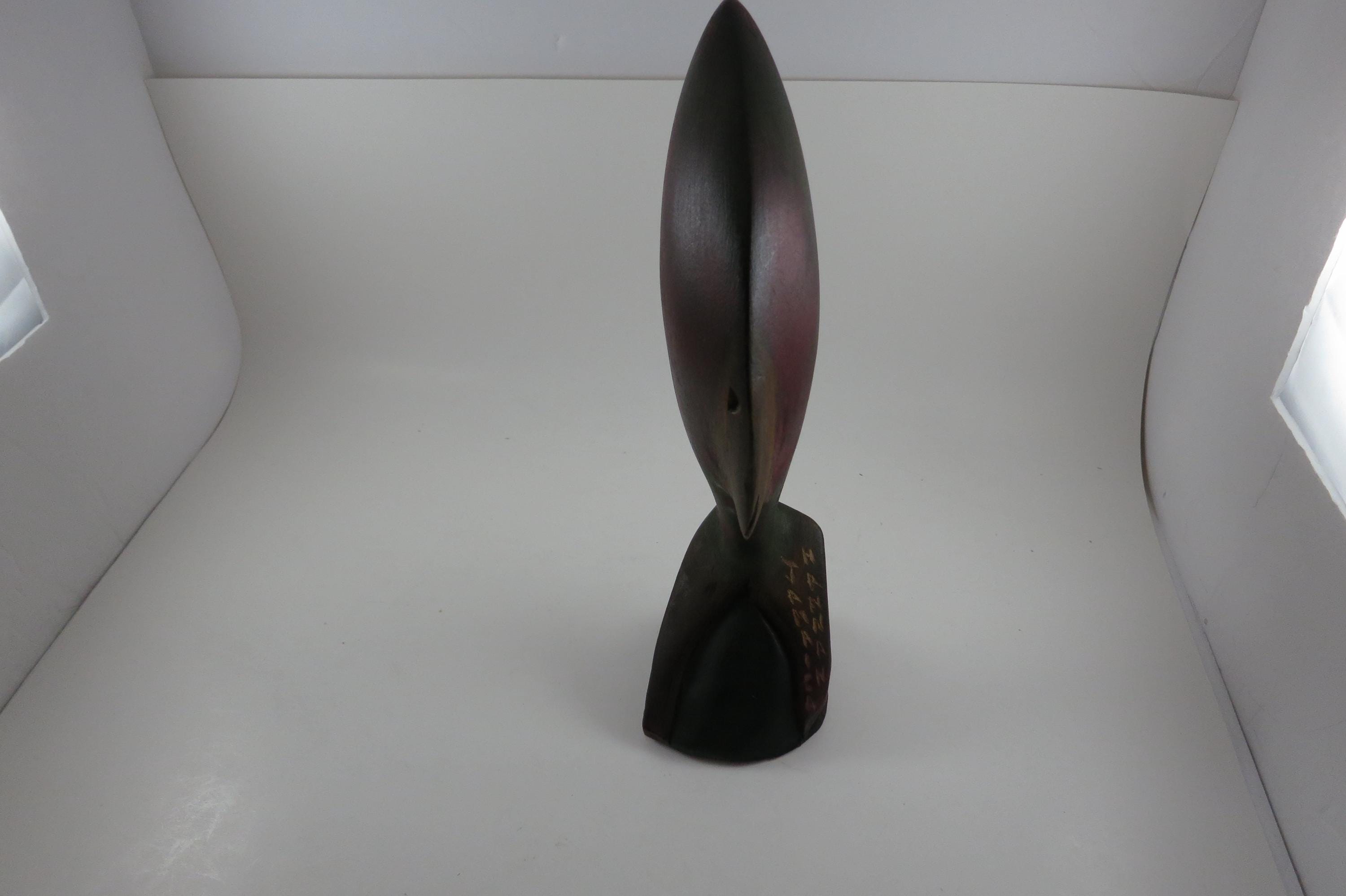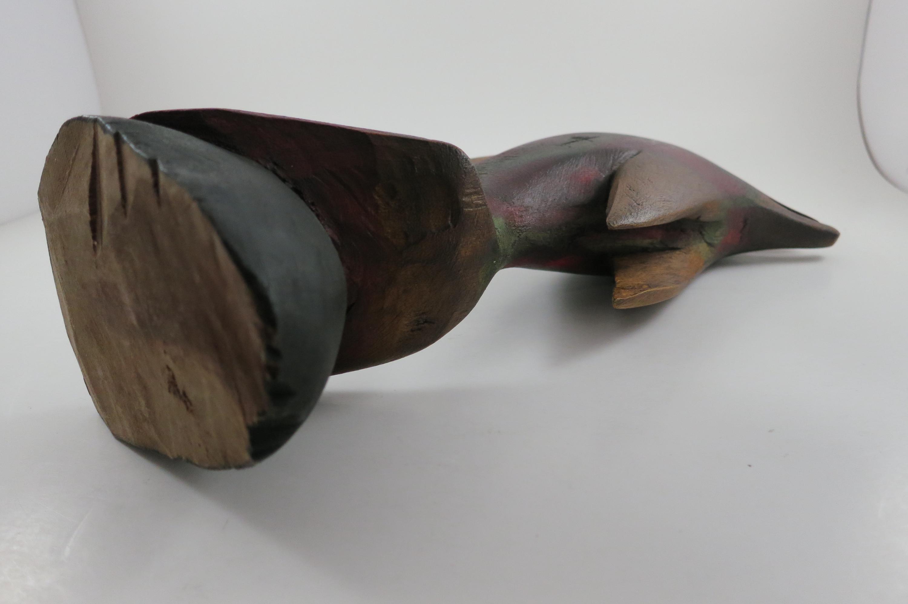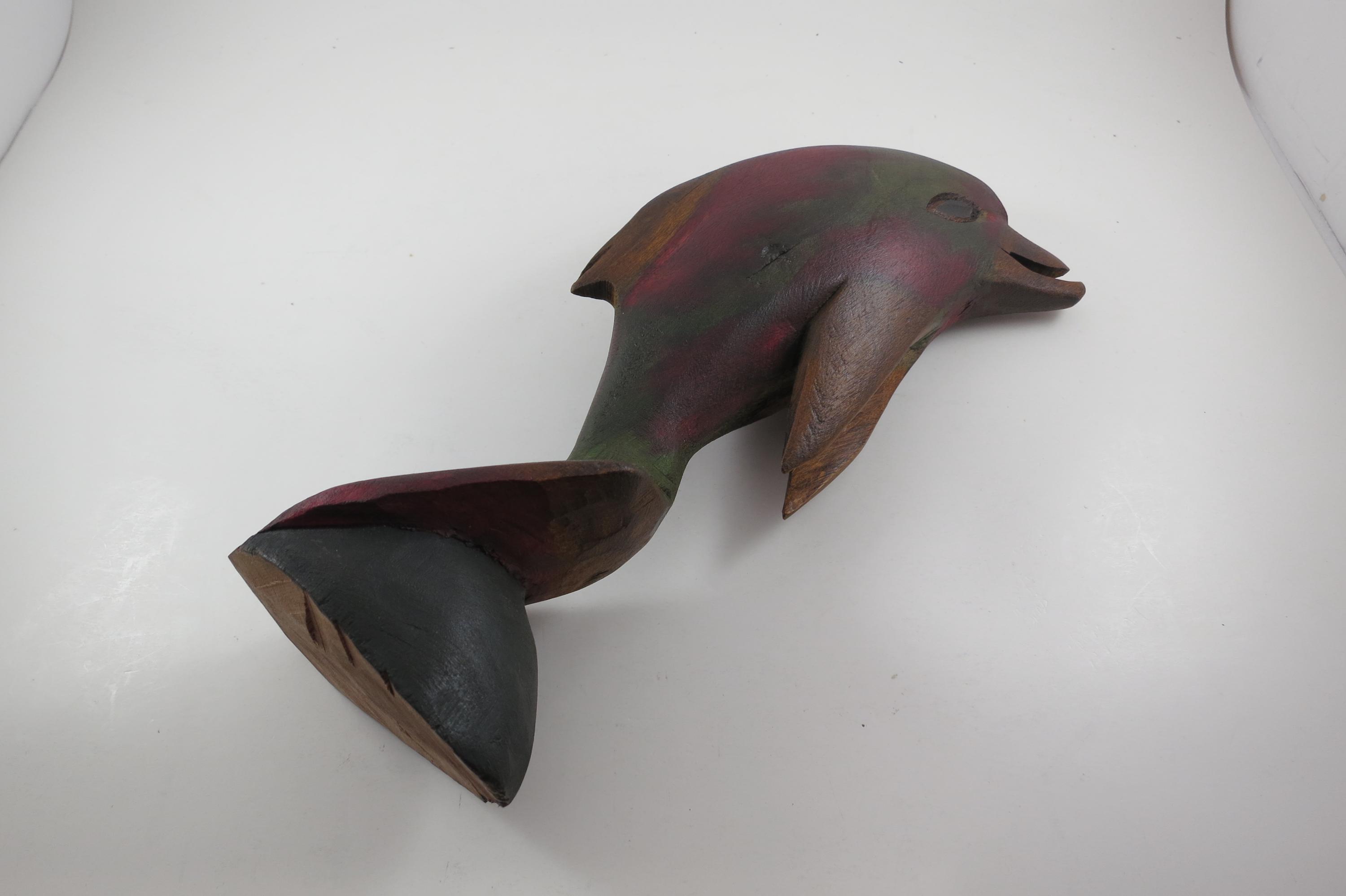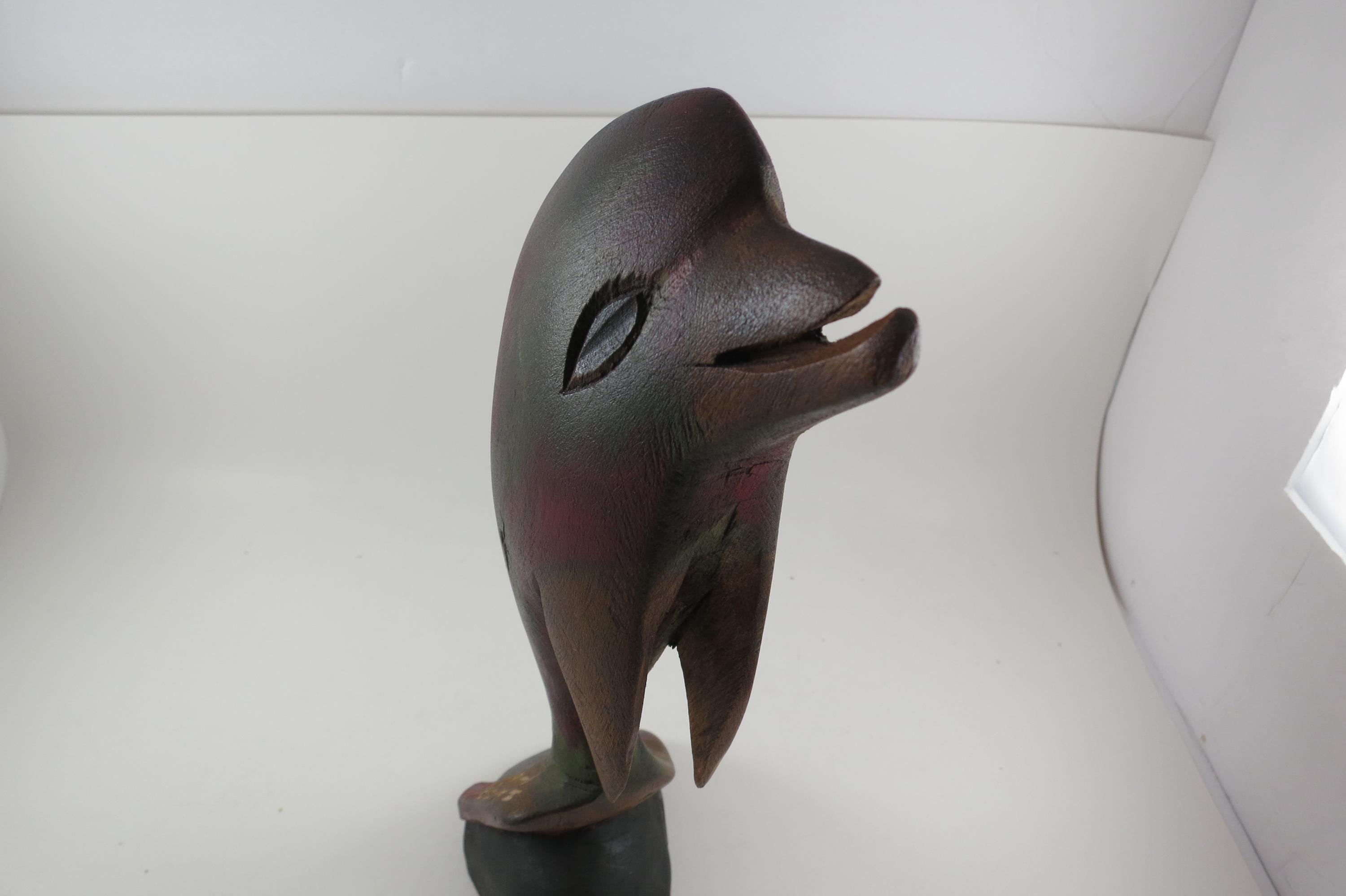Vintage Hand Carved Wooden Dolphin Porpoise Figure 11 3/4 Inches Tall Artist Signed Multi Color.