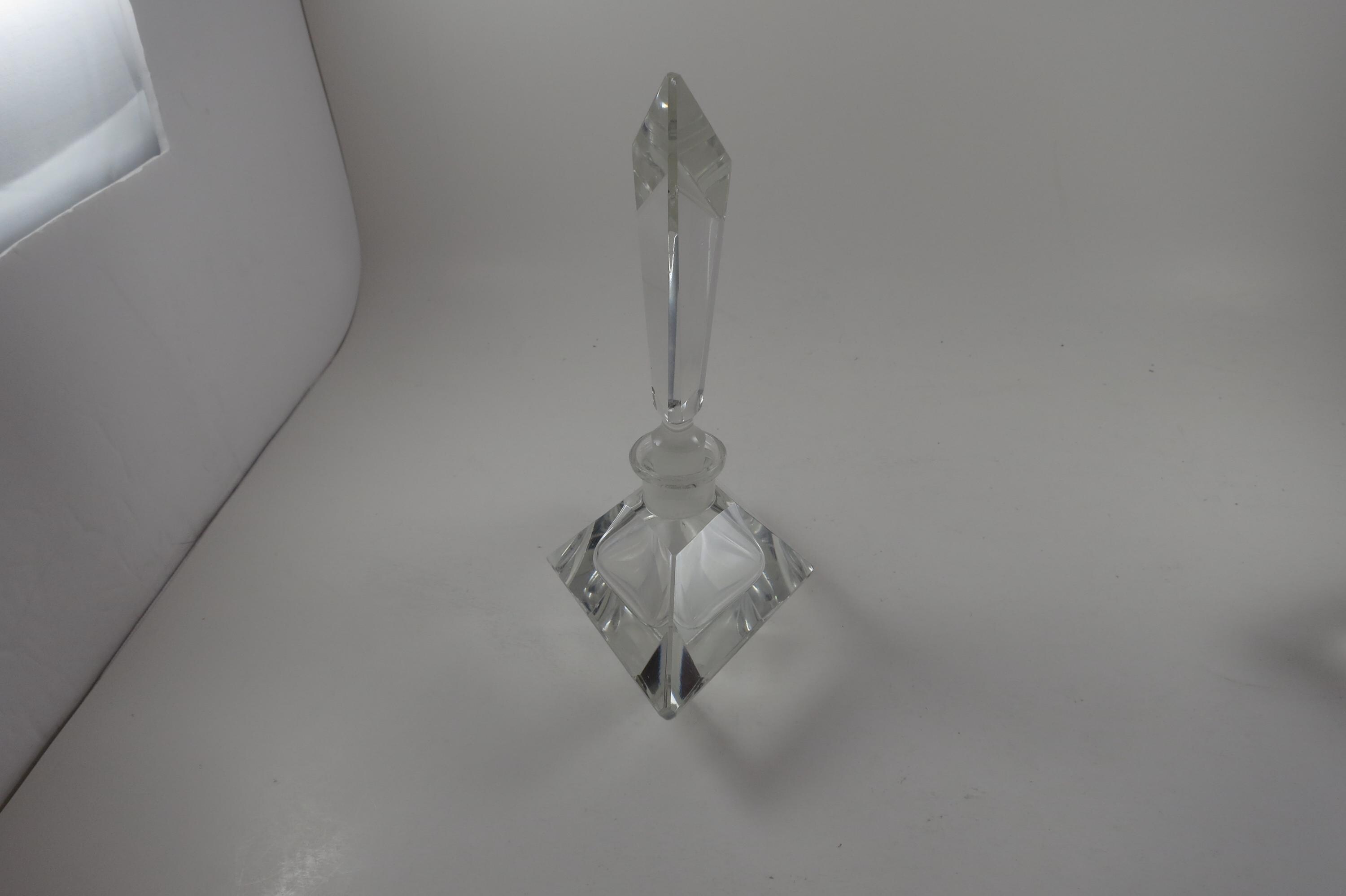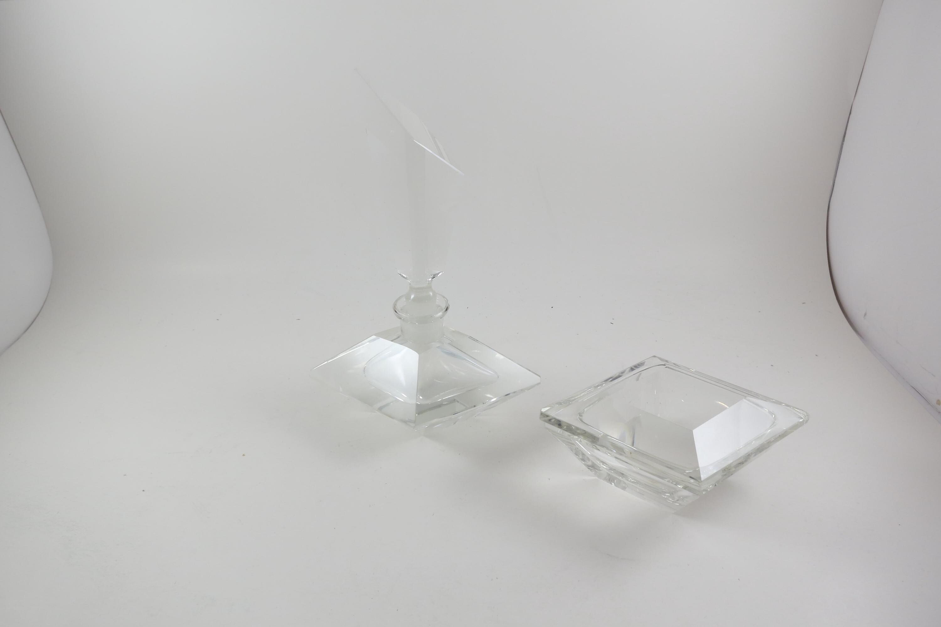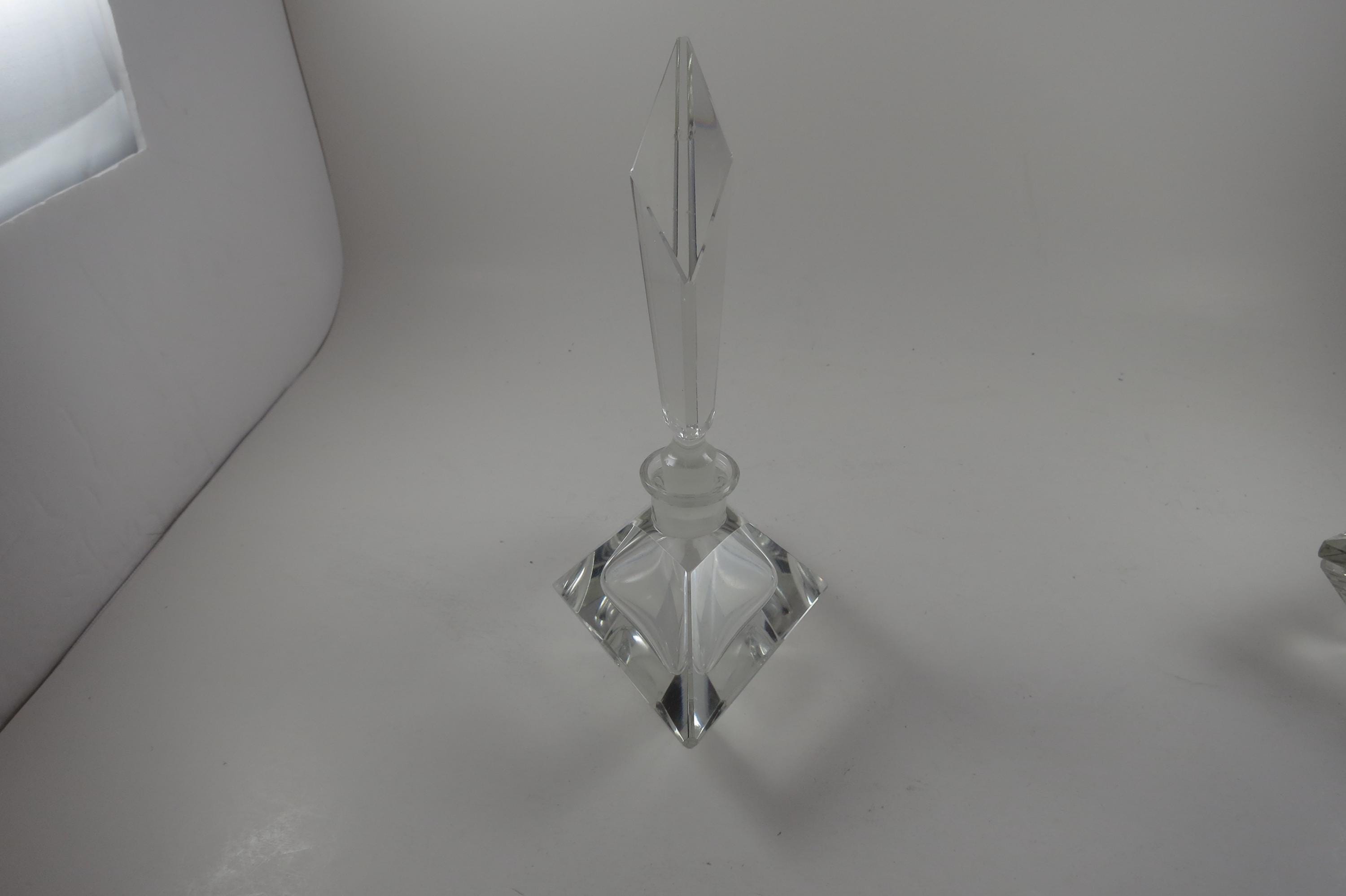 Vintage German Crystal Clear Cut Perfume Bottle with Lid and 2 Piece Powder Dish