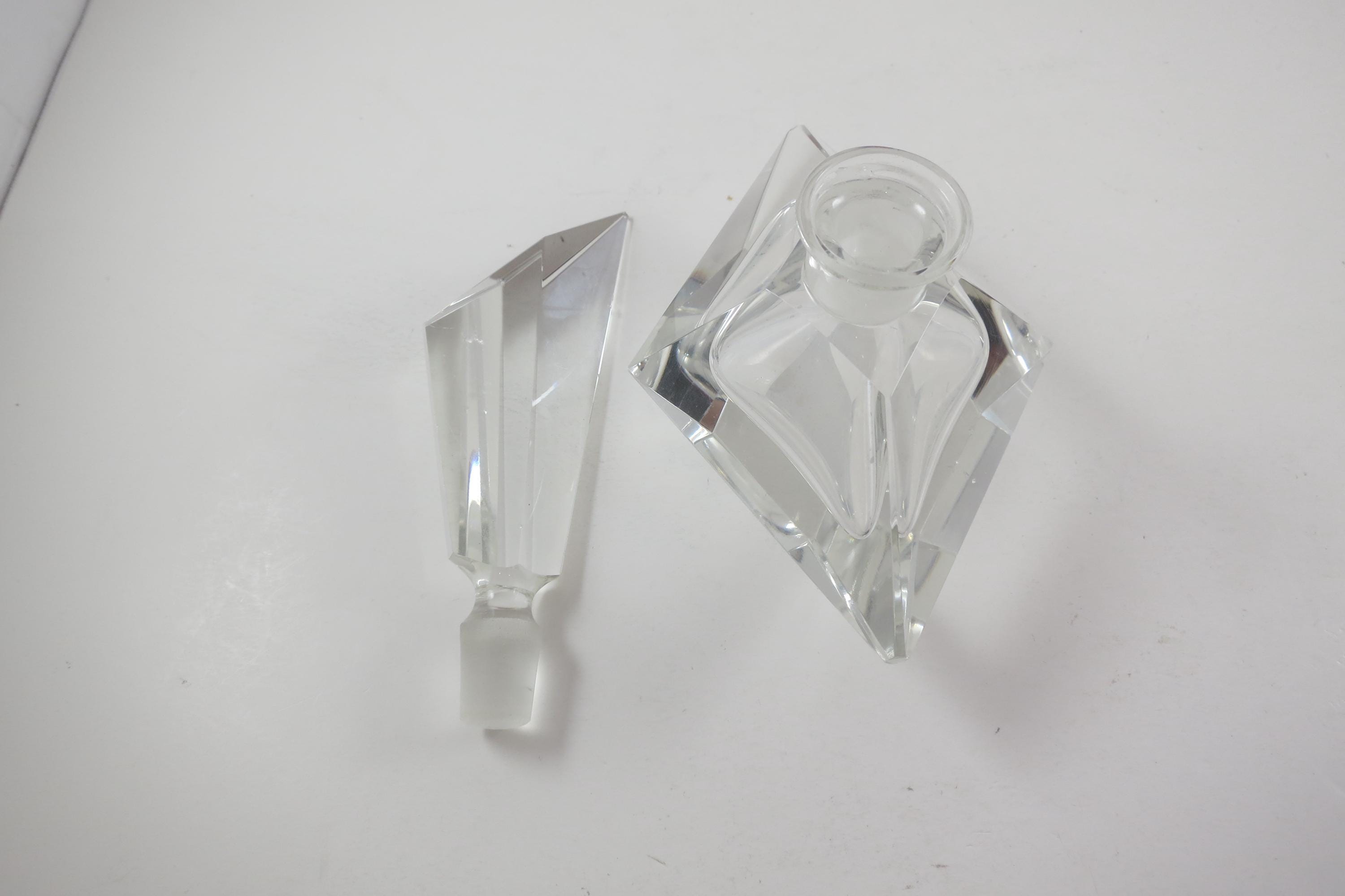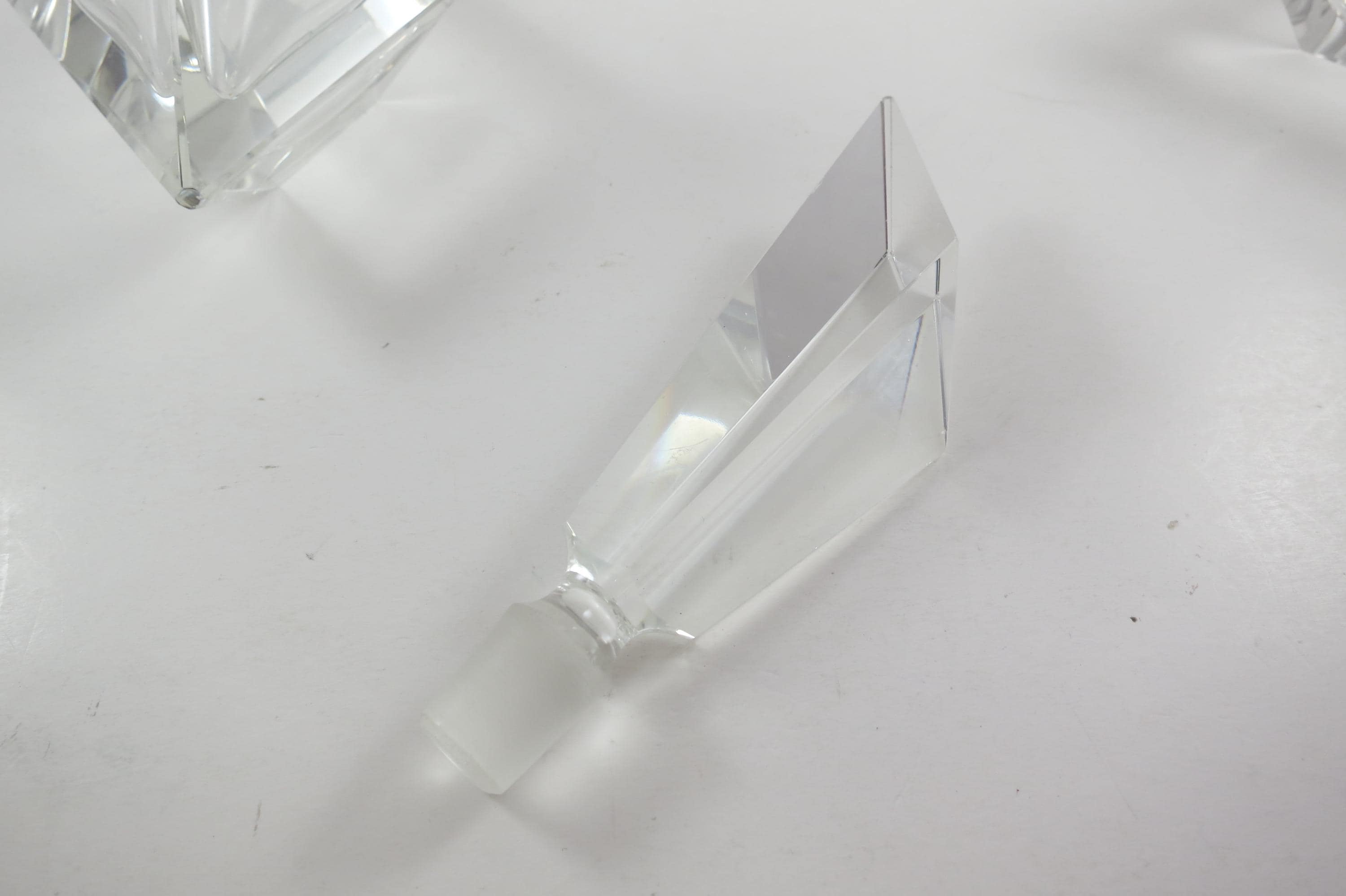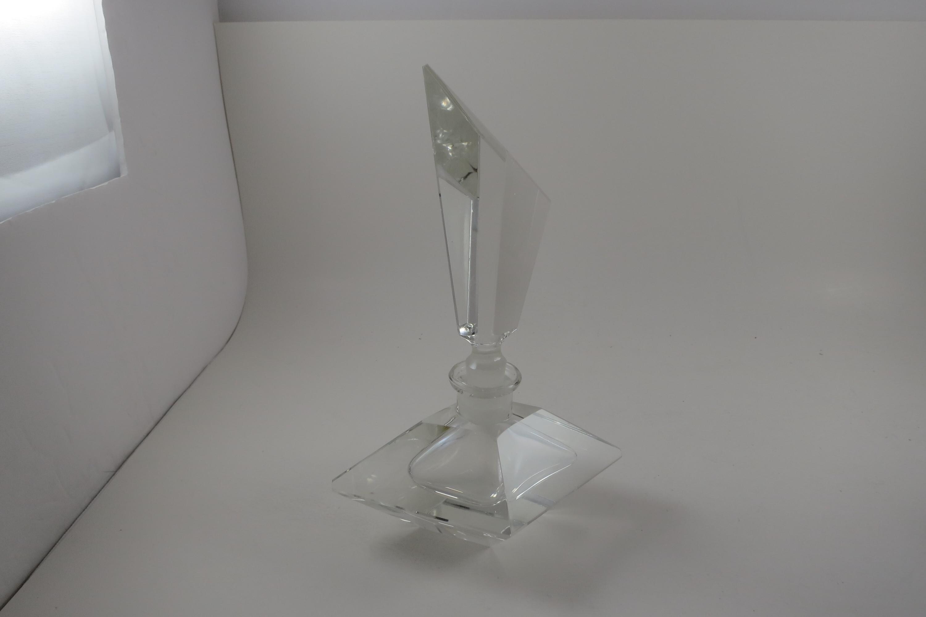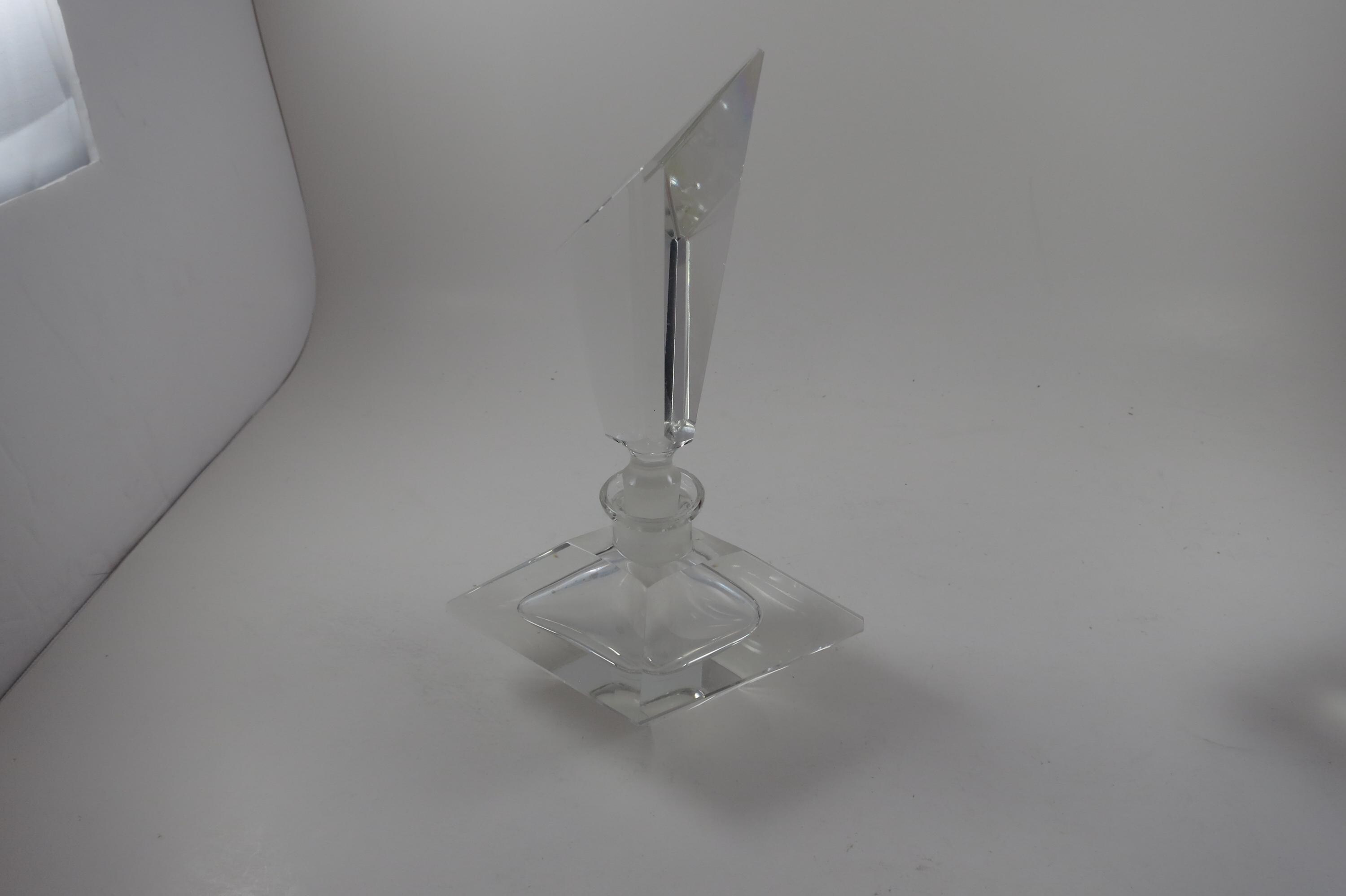 Vintage German Crystal Clear Cut Perfume Bottle with Lid and 2 Piece Powder Dish