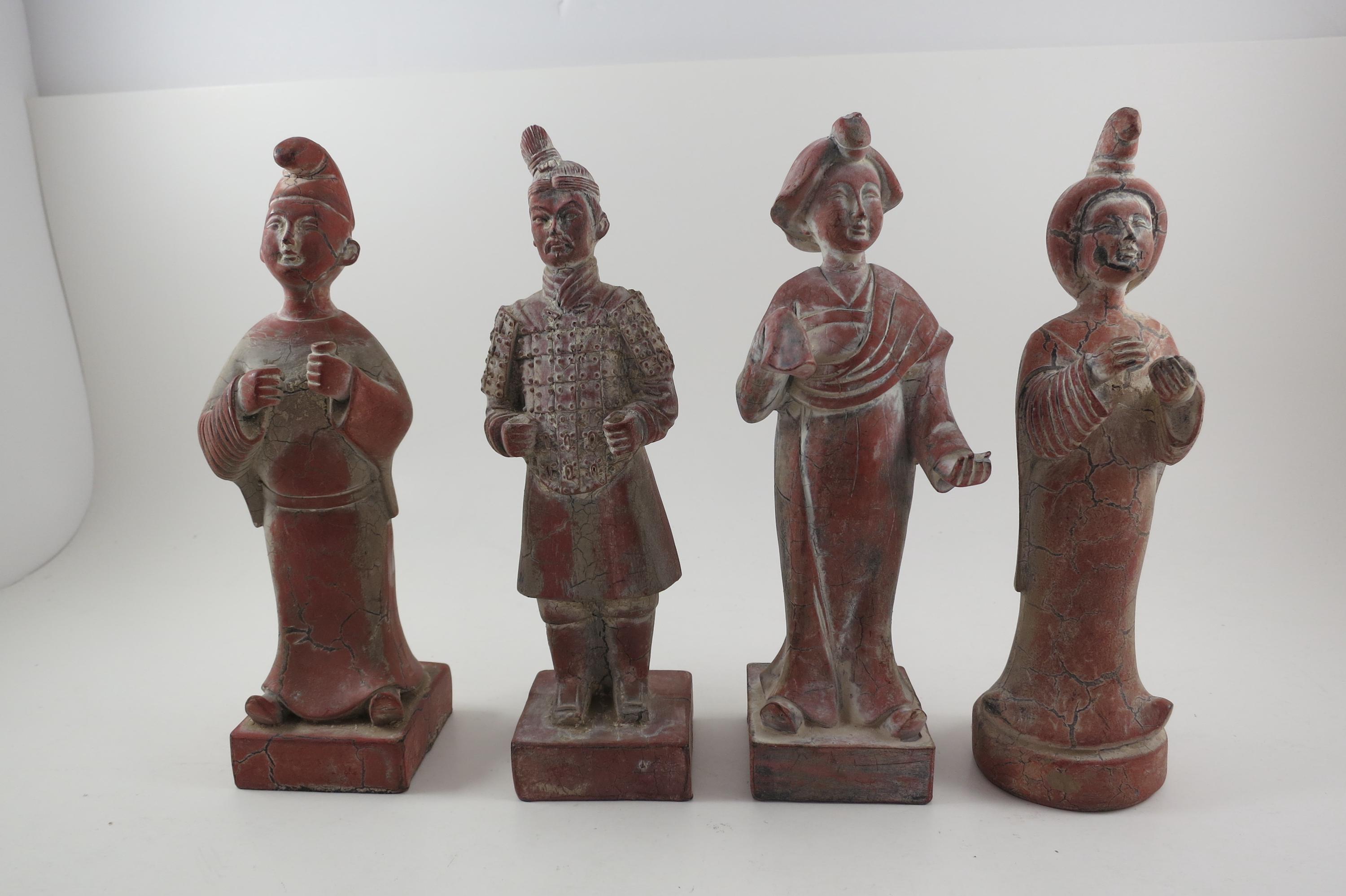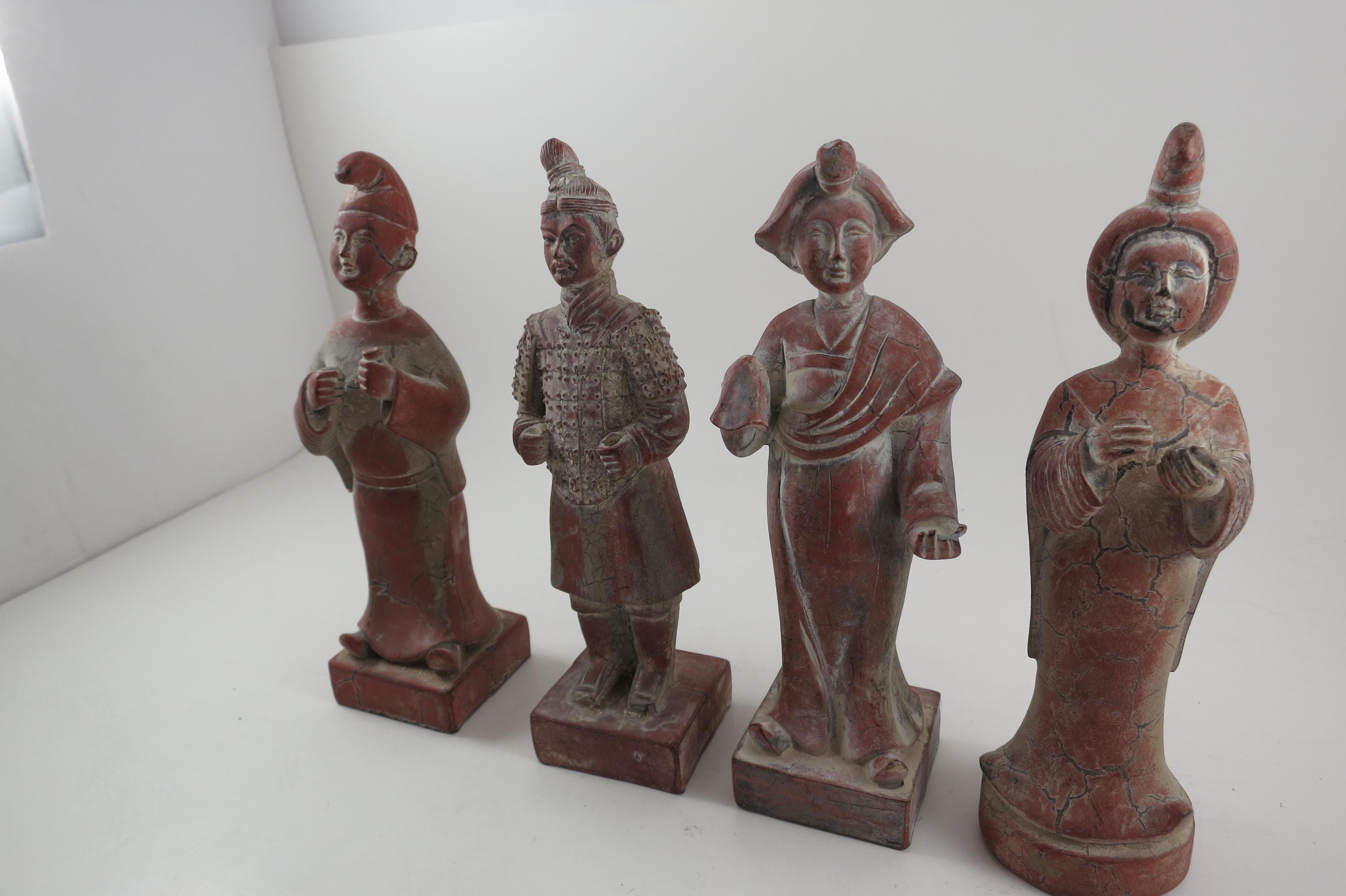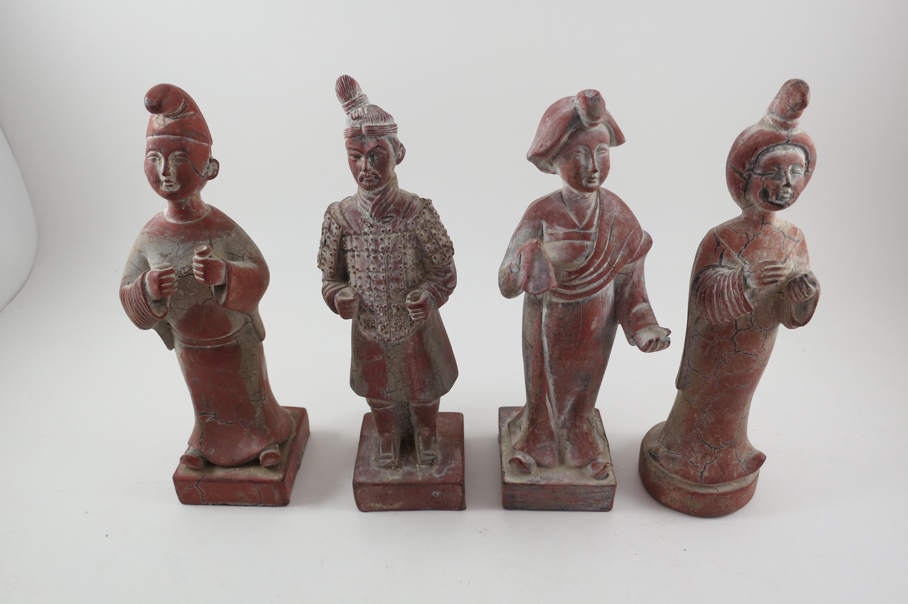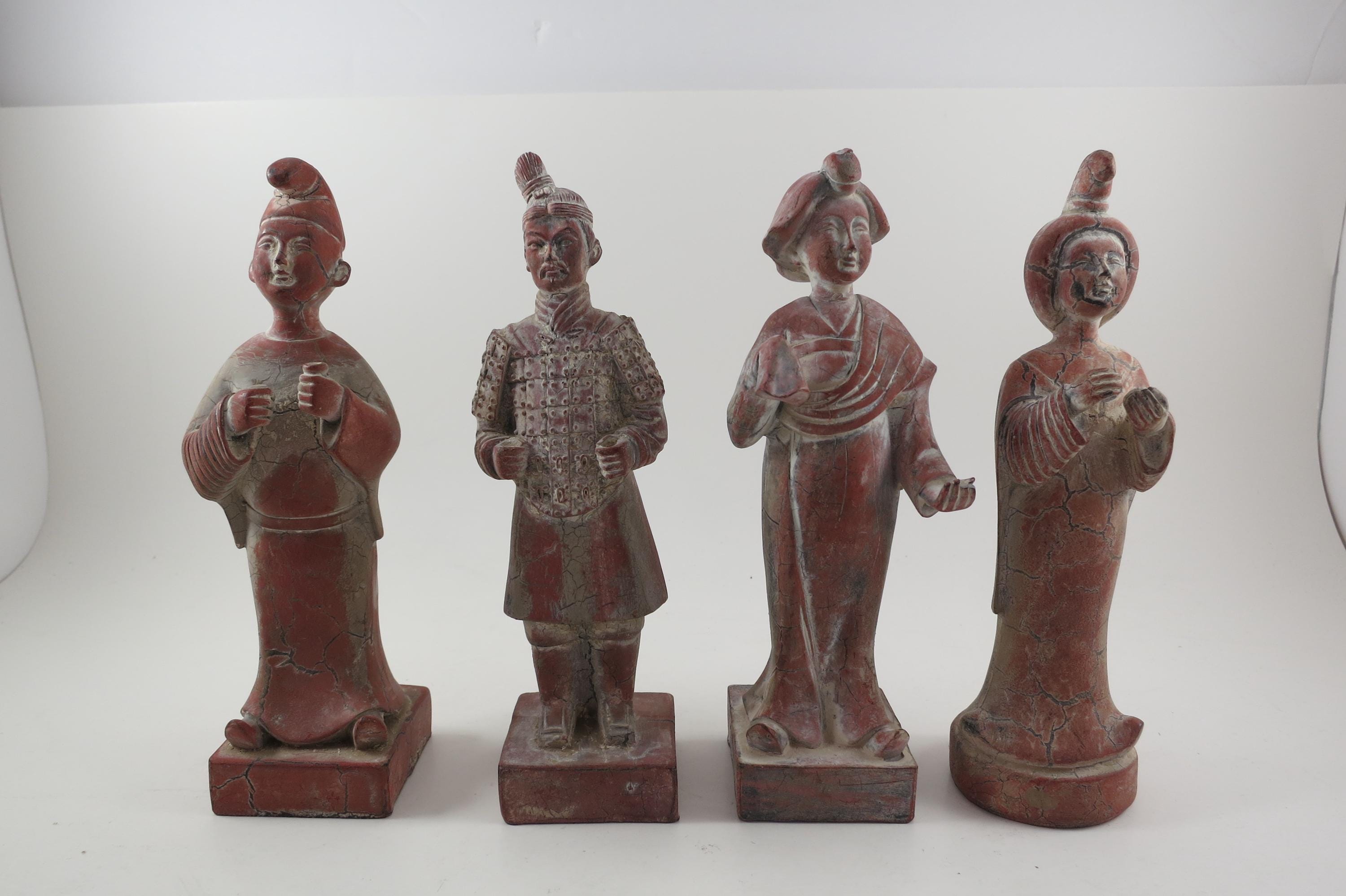 Four Piece Antique Terracotta Chinese Figures Polystone 6 1/2 Inches Tall As Shown