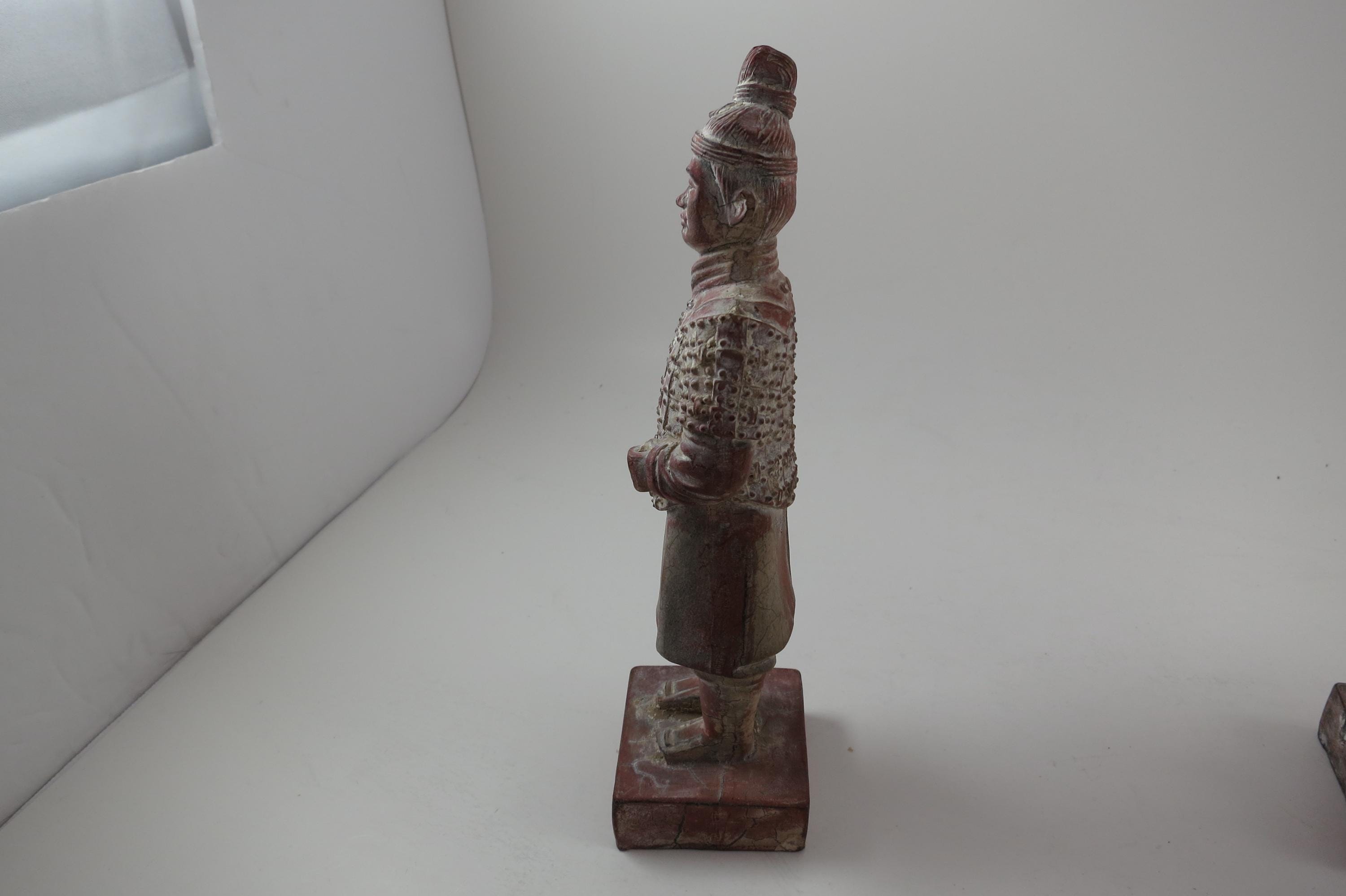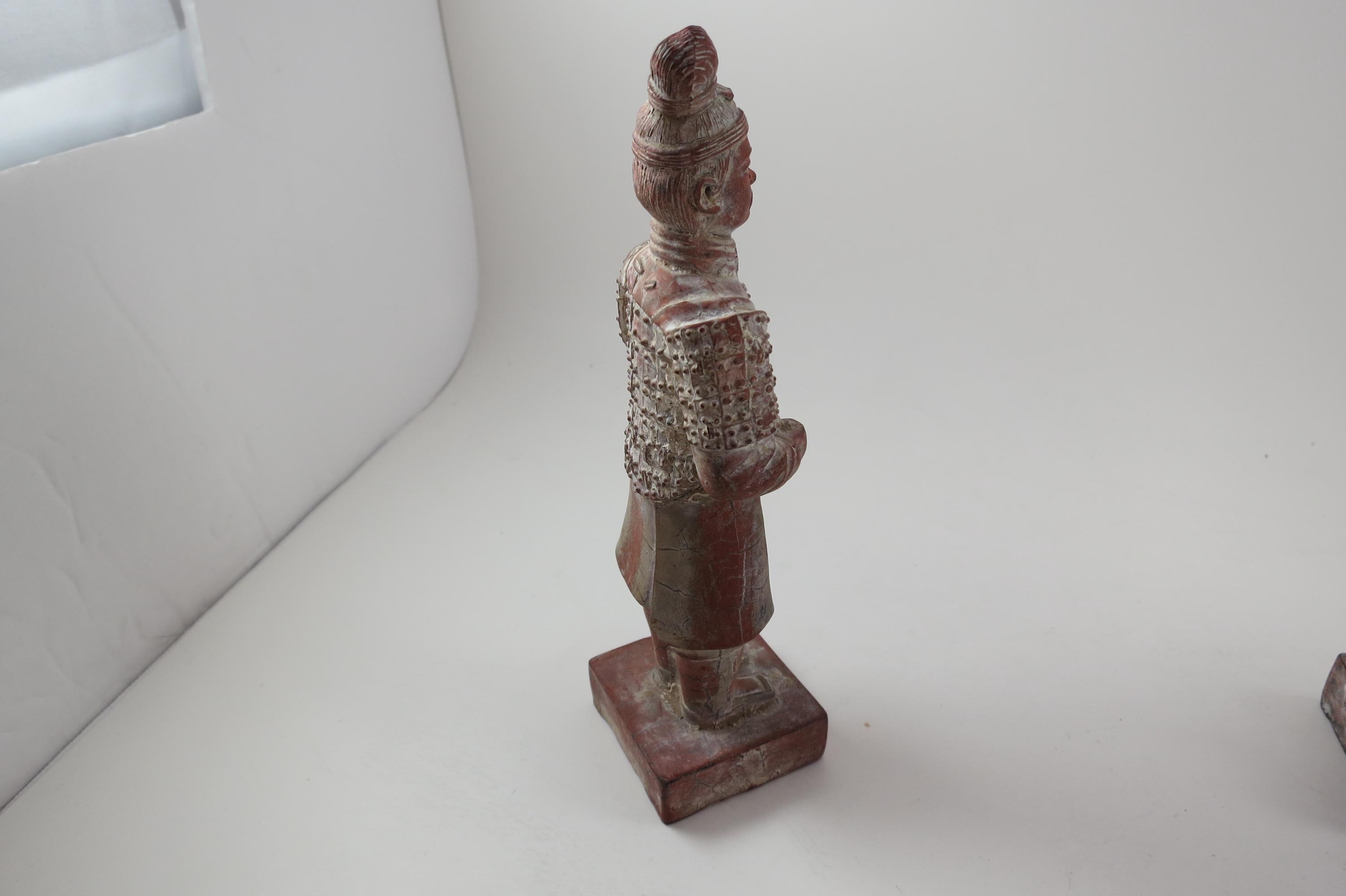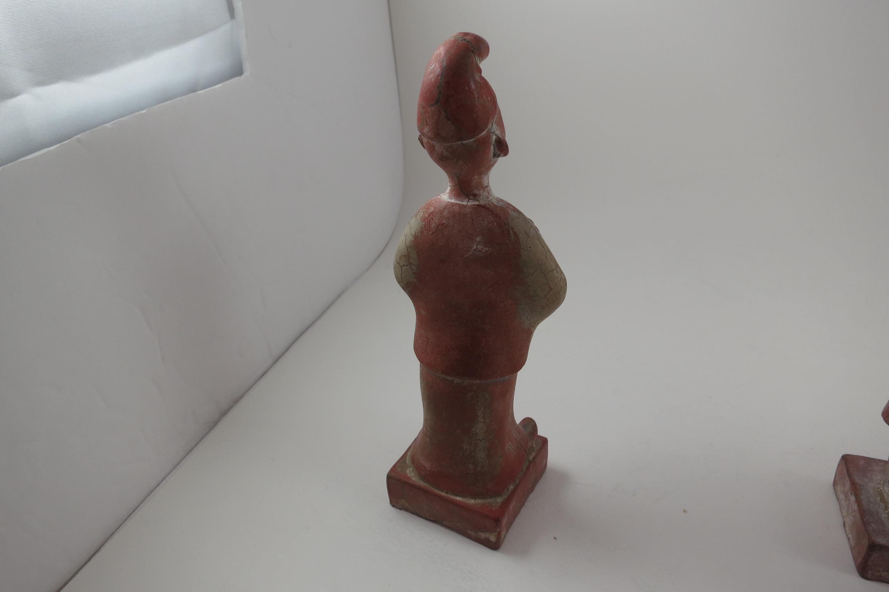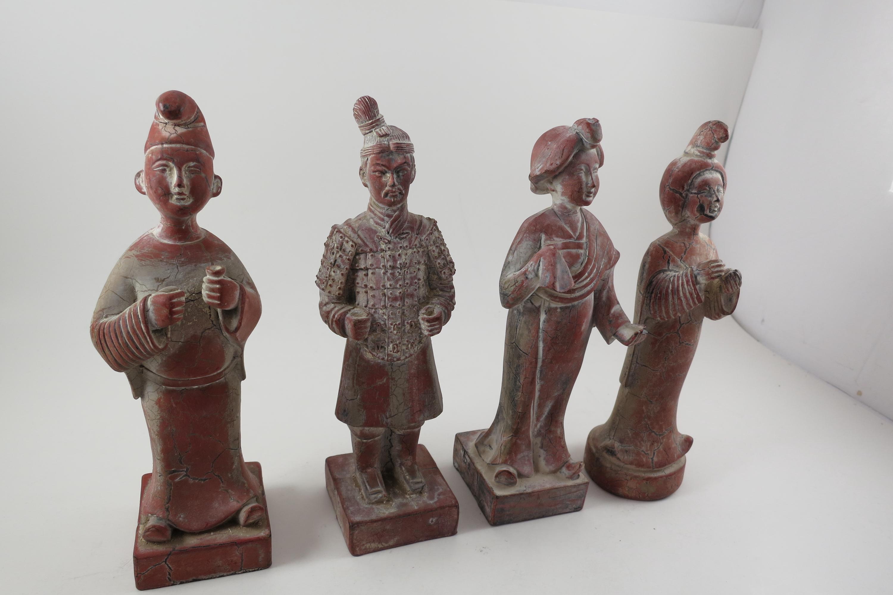 Four Piece Antique Terracotta Chinese Figures Polystone 6 1/2 Inches Tall As Shown