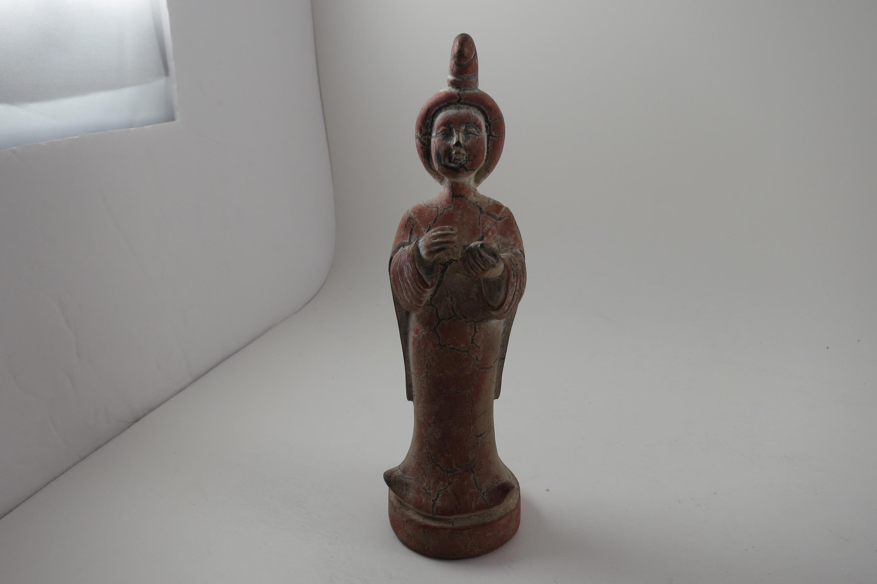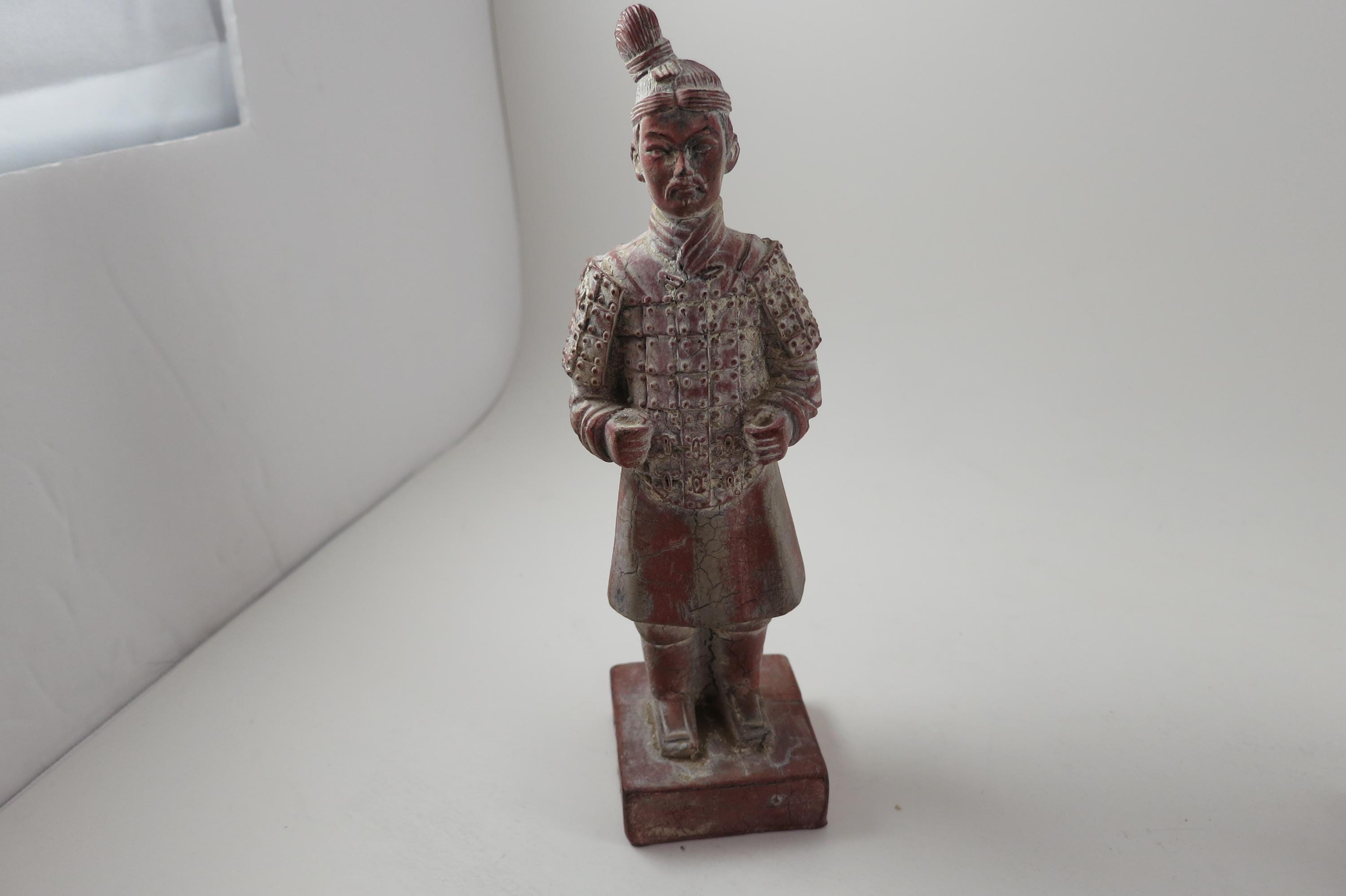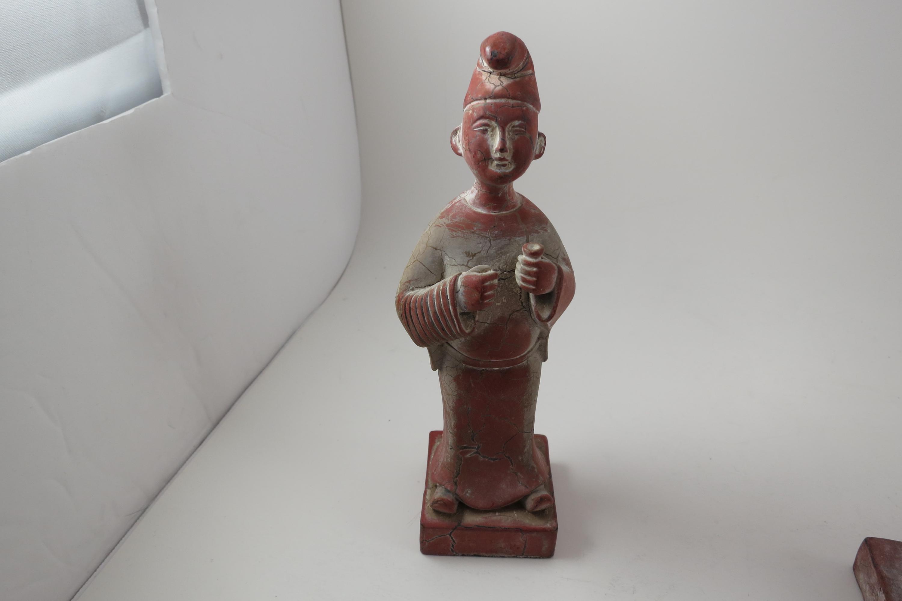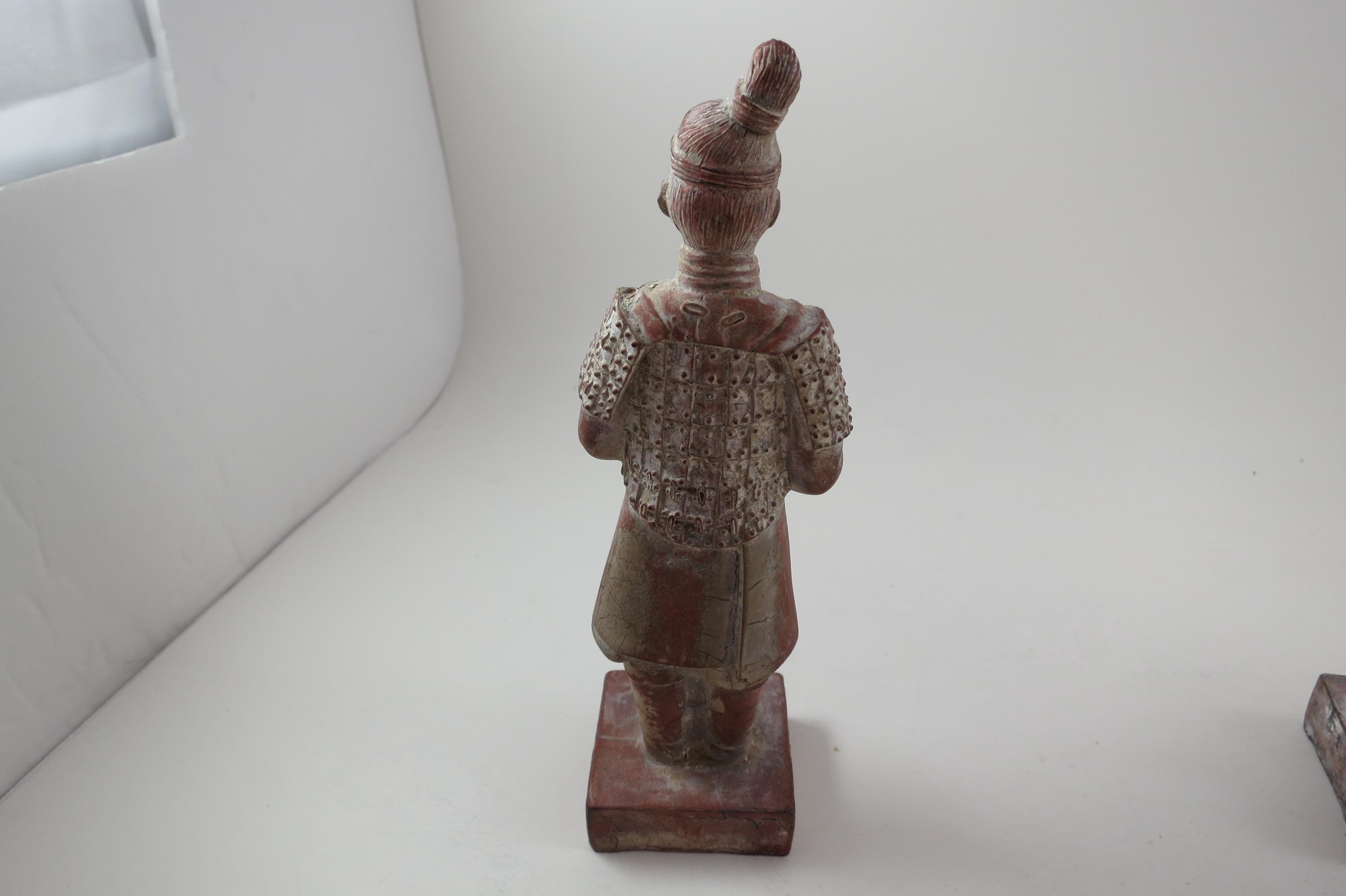 Four Piece Antique Terracotta Chinese Figures Polystone 6 1/2 Inches Tall As Shown