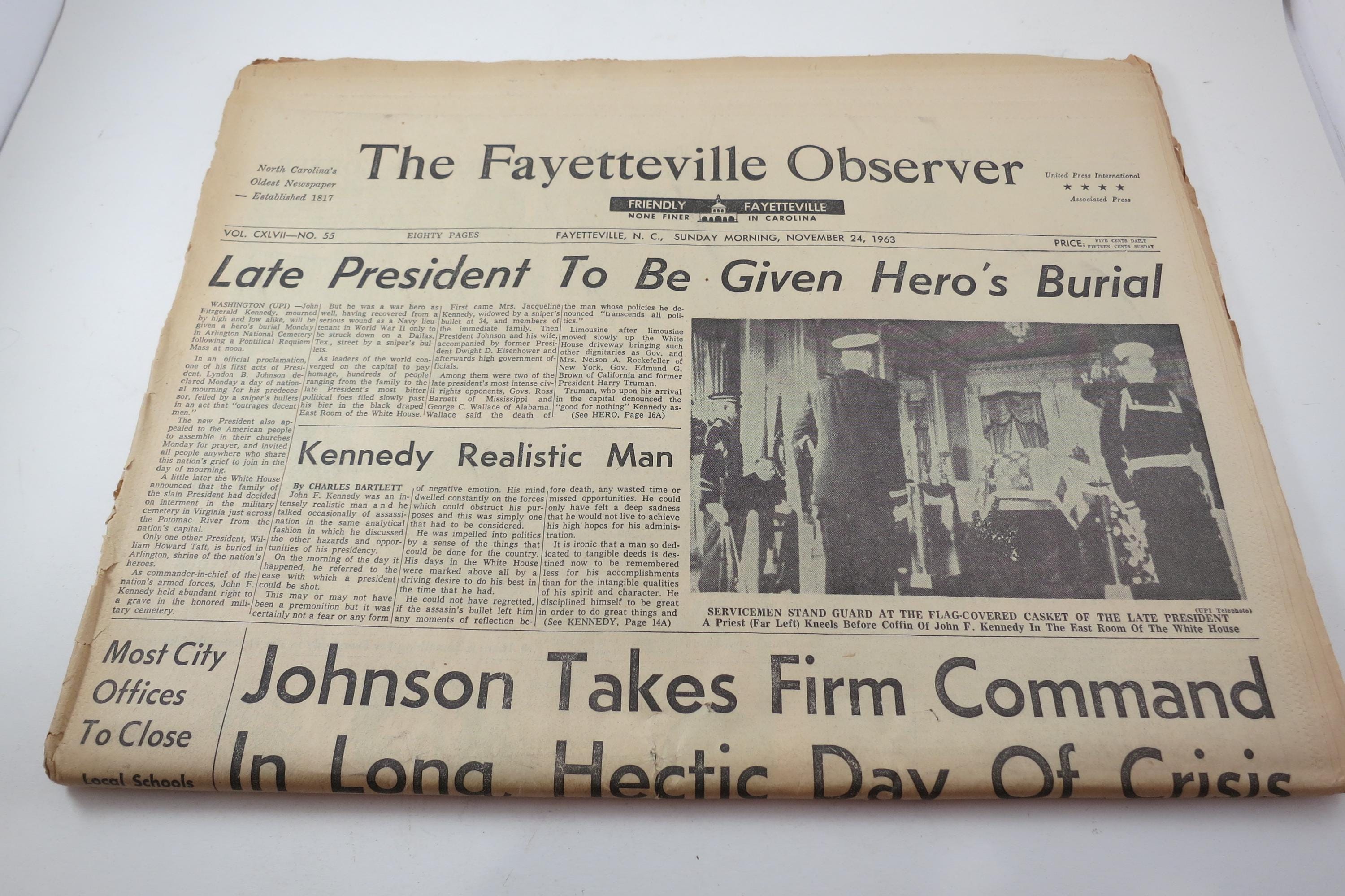 1963 Fayetteville Observer Newspaper: Kennedy Hero's Burial