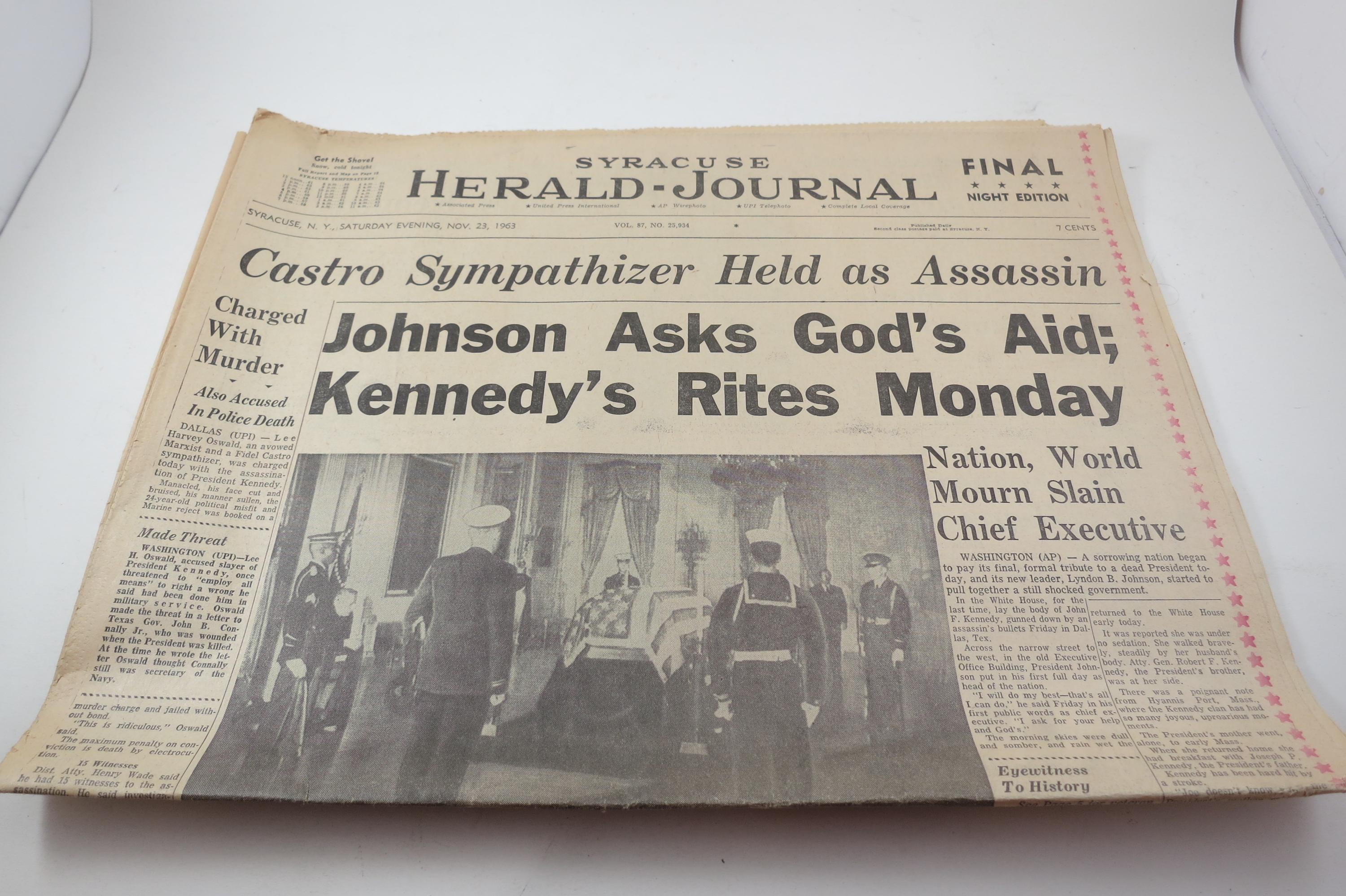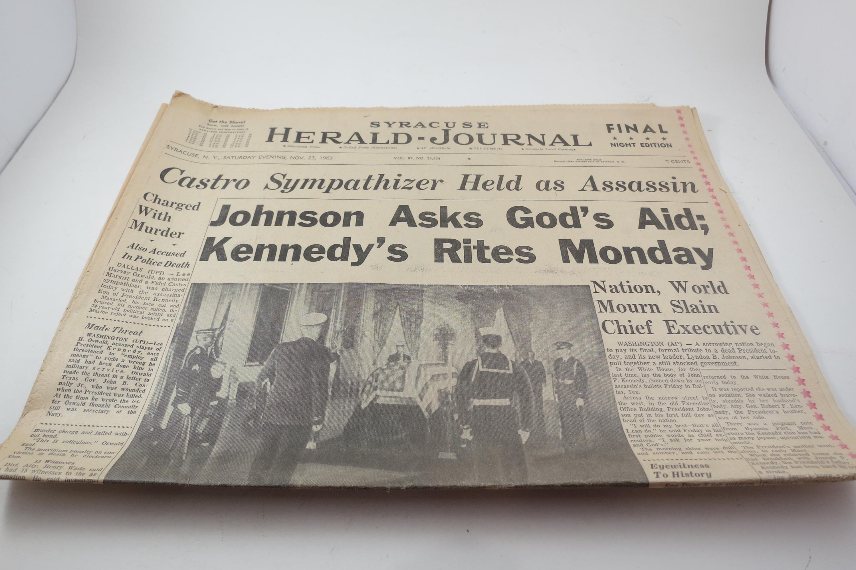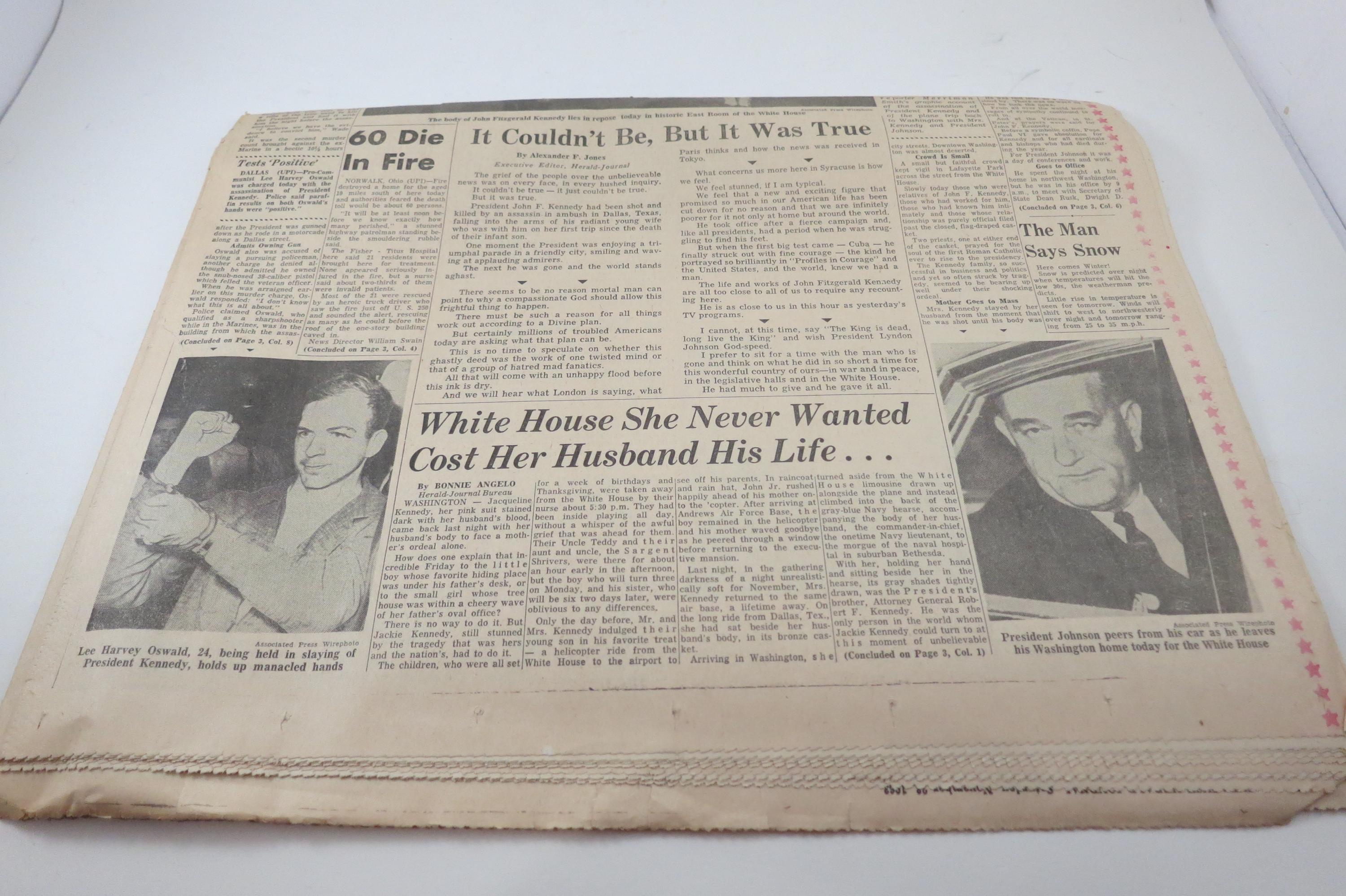 1963 Syracuse Herald Journal: Kennedy Assassination Newspaper
