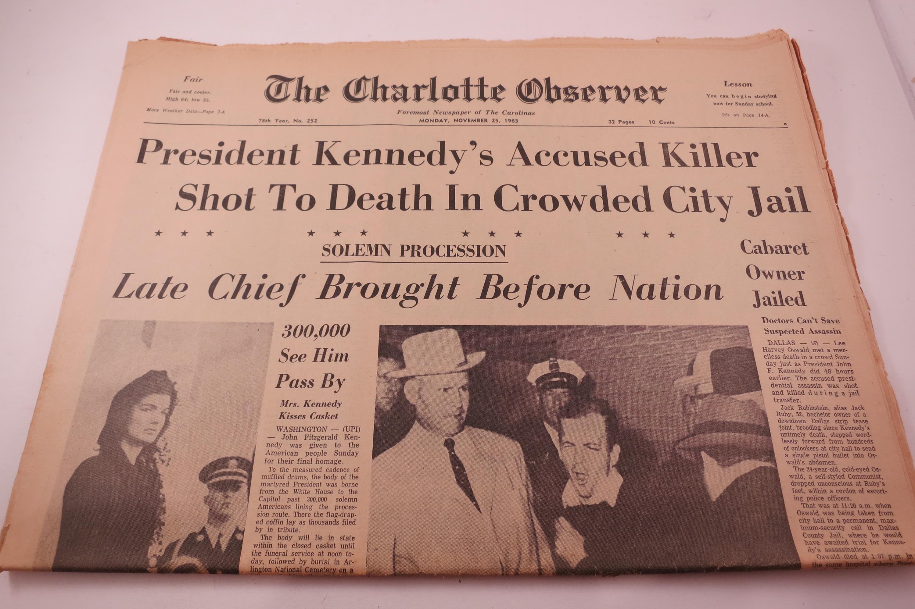 Monday November 25 1963 Charlotte Observer Complete Newspaper President Kennedy's Killer Shot to Death