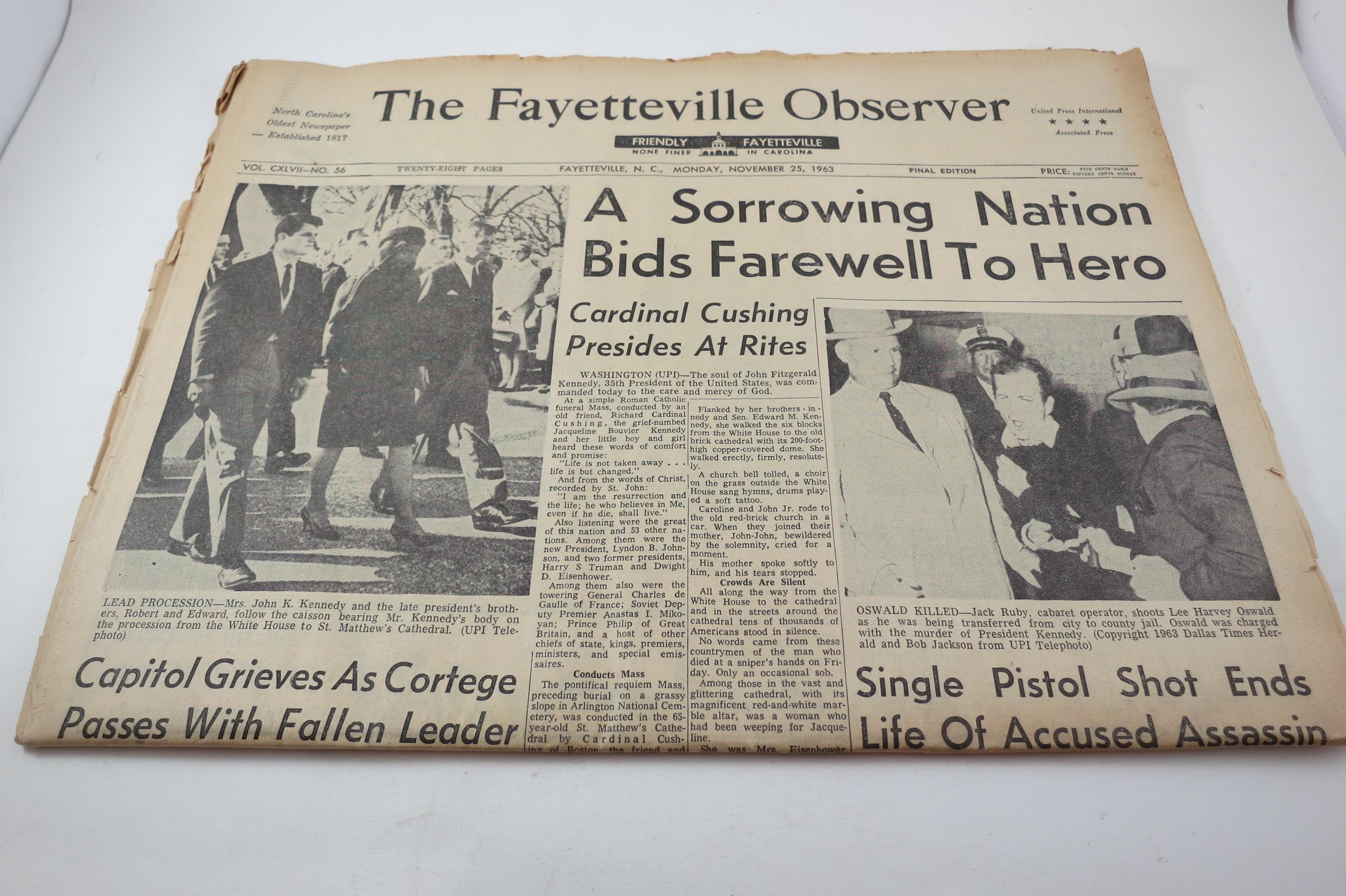 1963 Fayetteville Observer Newspaper: JFK Assassination