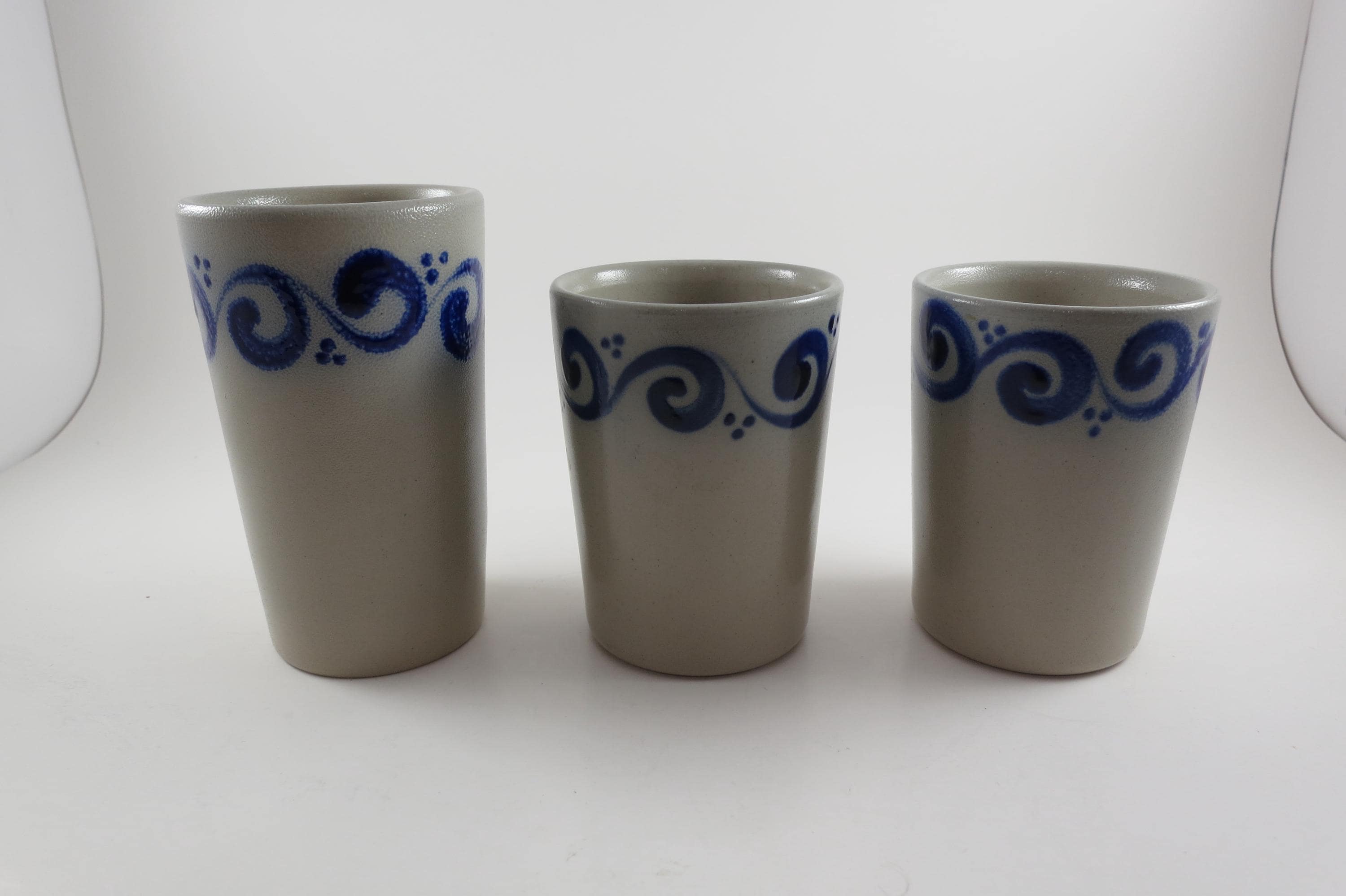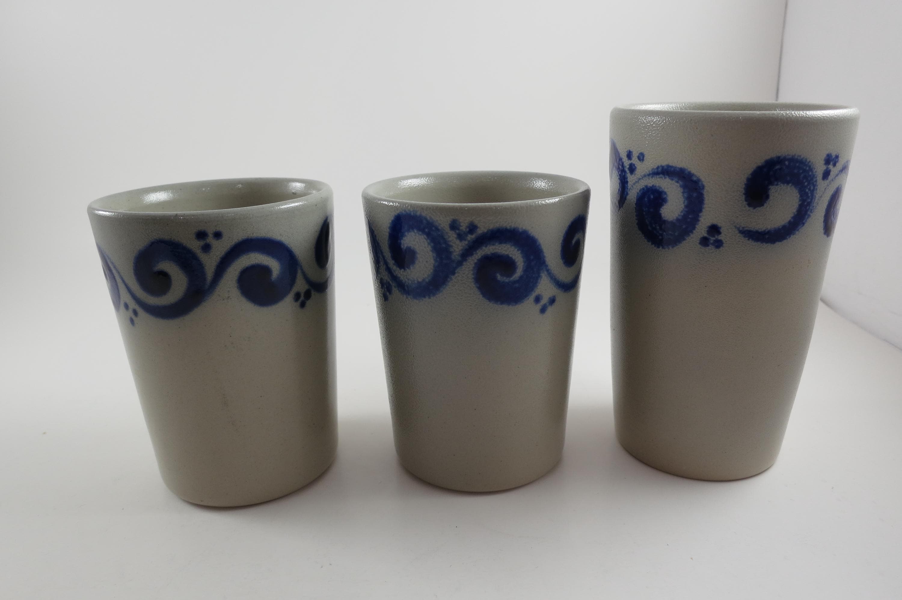 Three Vintage Goebel Salzglasur Salt Glaze Blue Tumblers Excellent Condition.