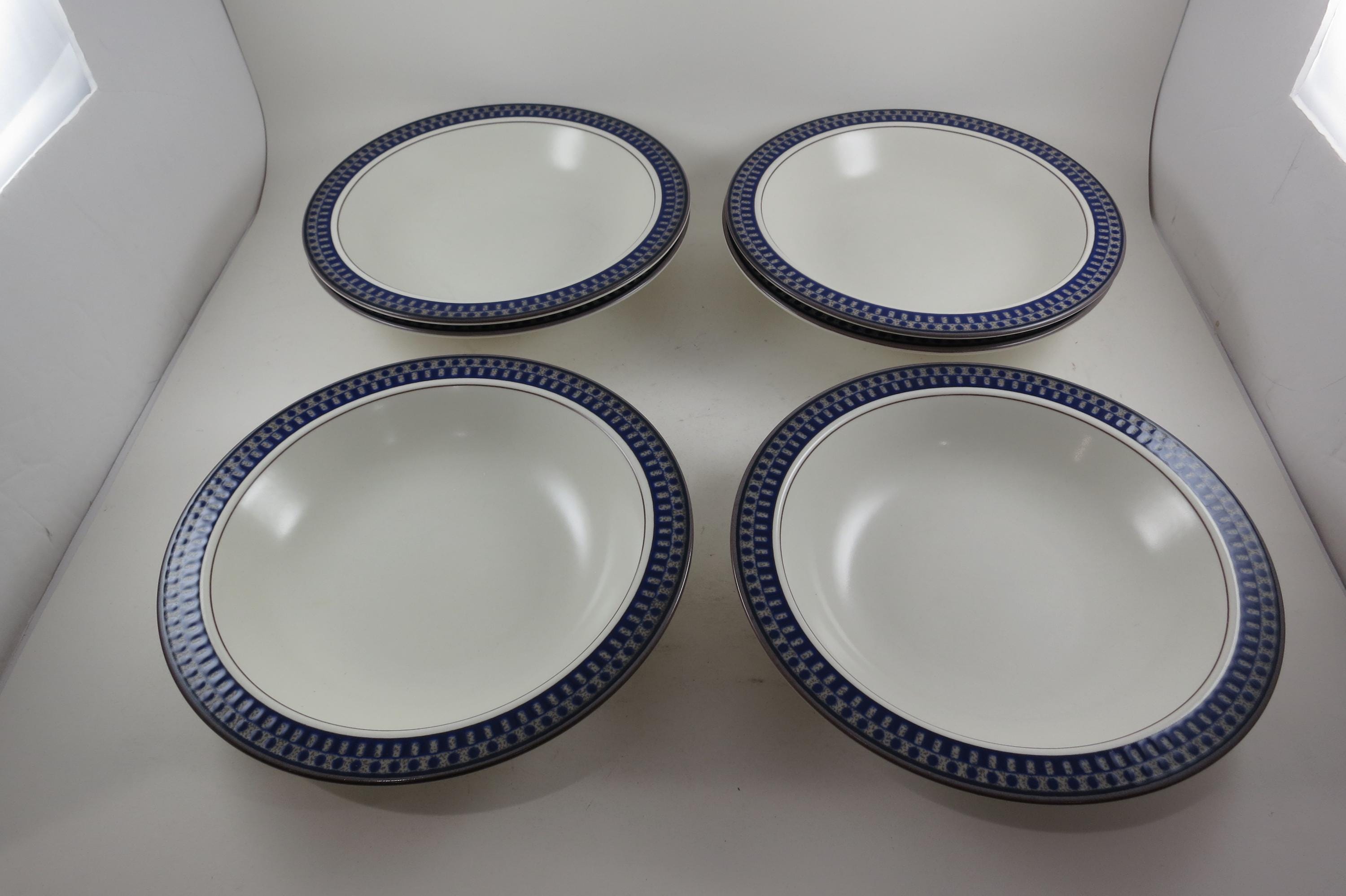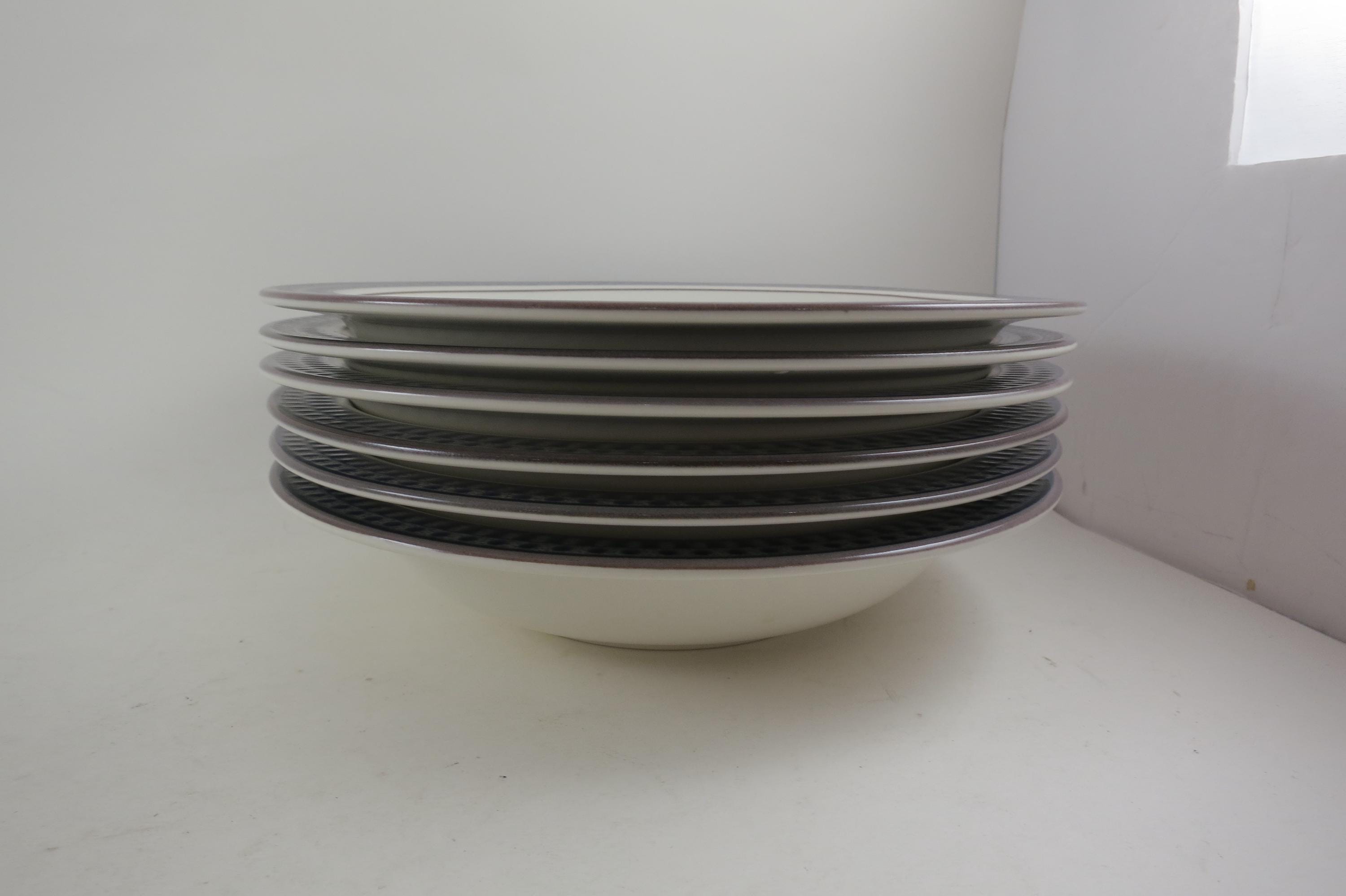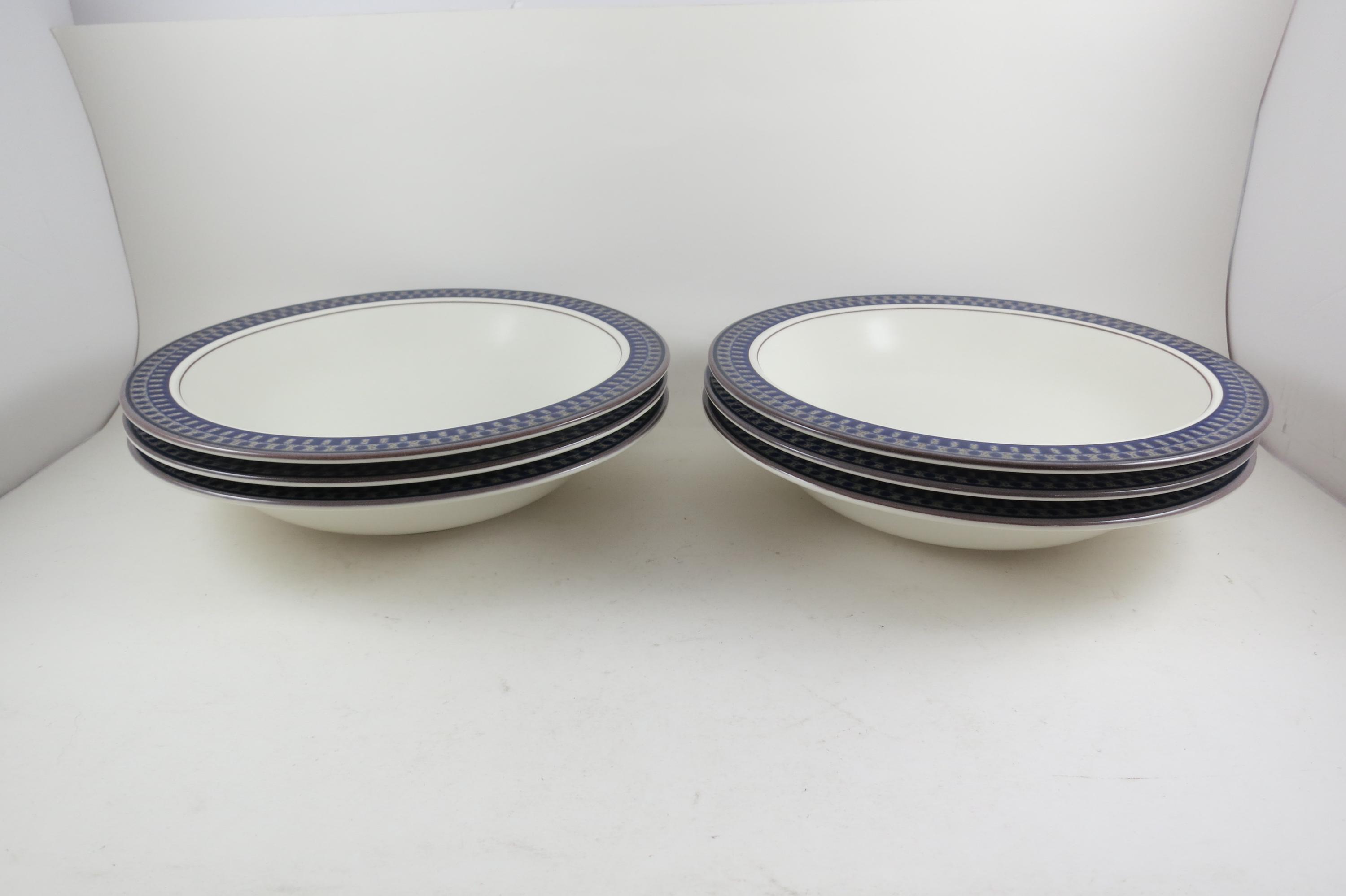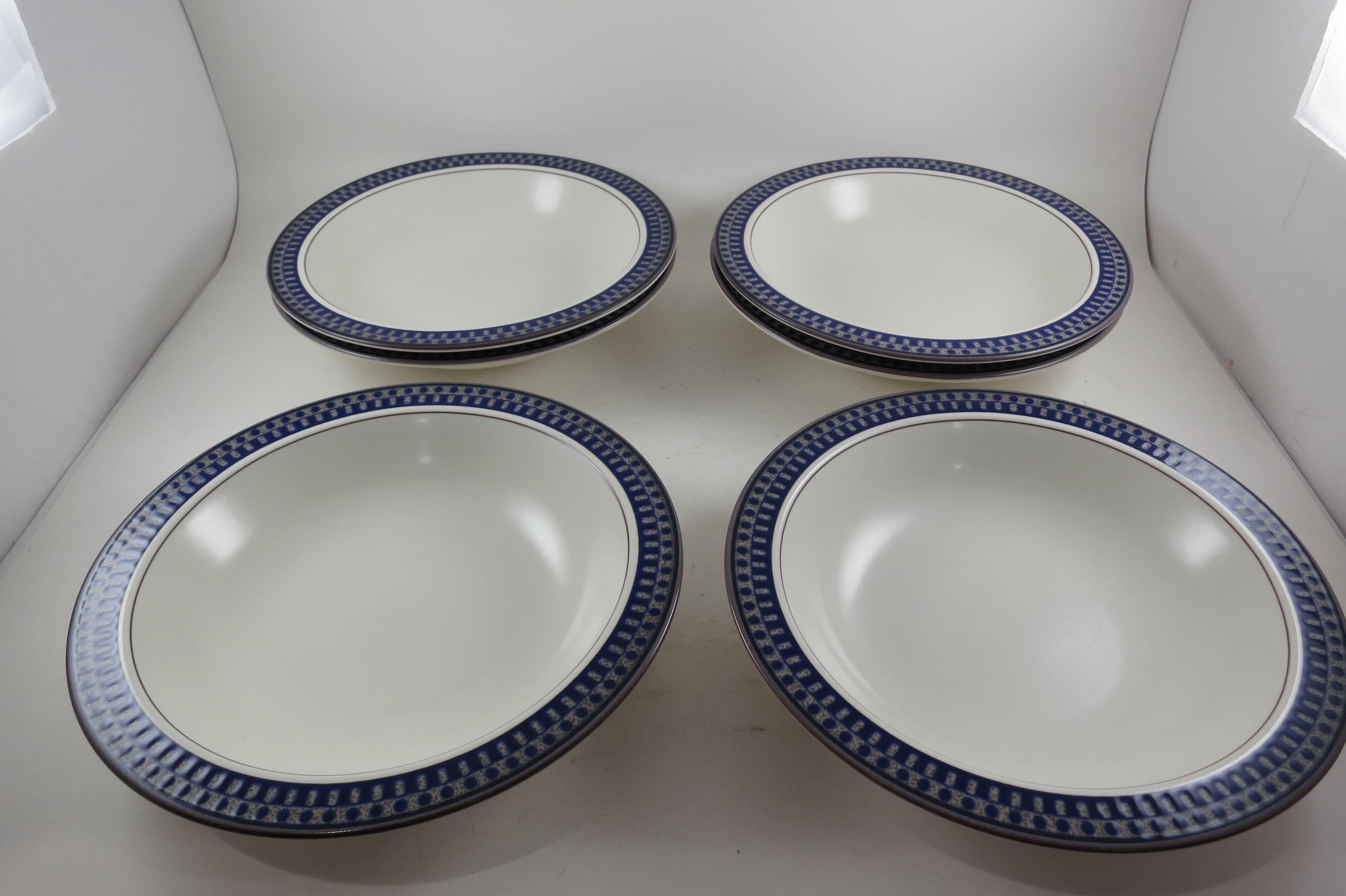 Set of Six Vintage Mikasa Potter's Touch Aztec Blue Ironstone 8 1/4 Inch Soup Bowls Excellent Condition.