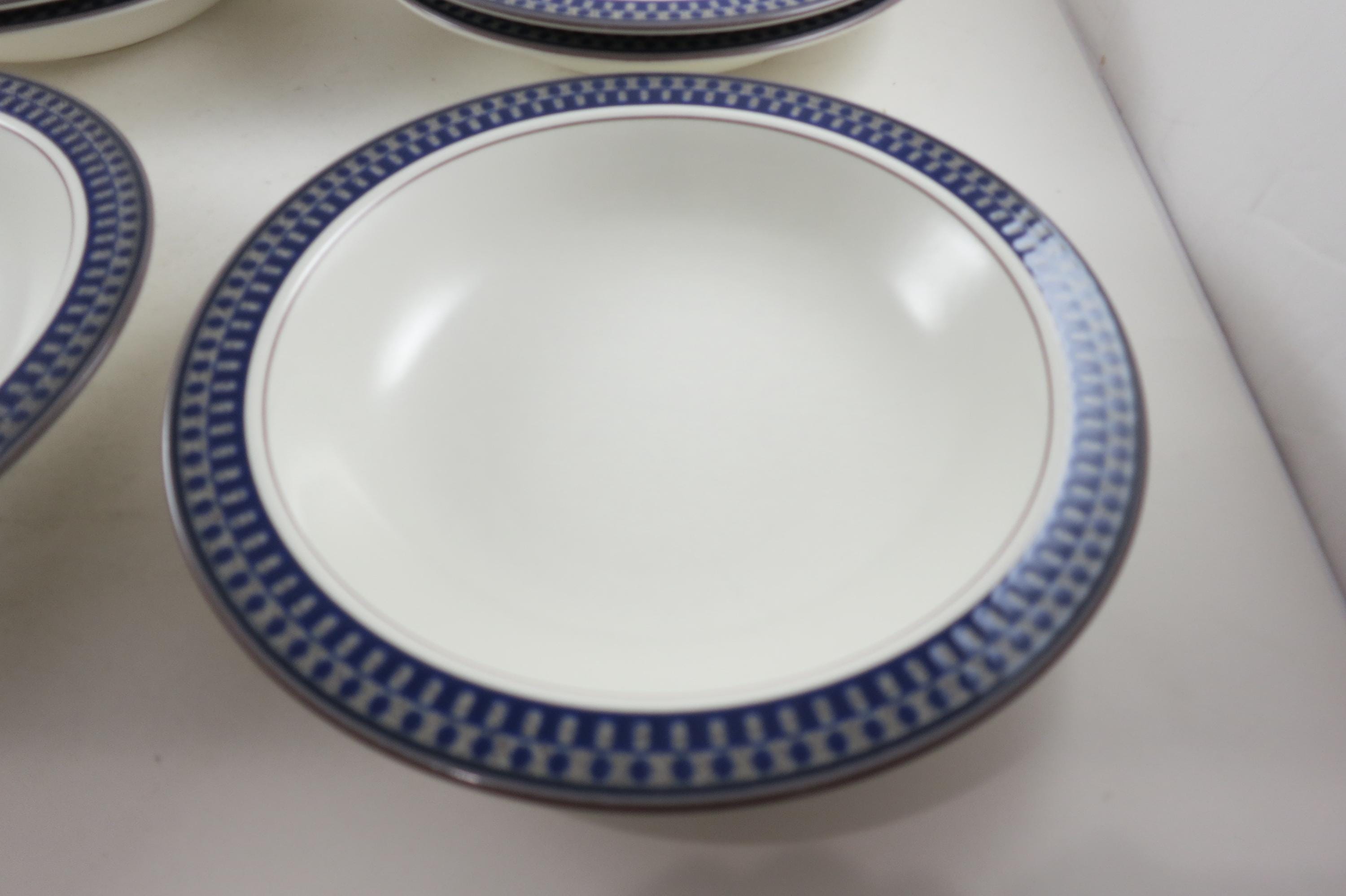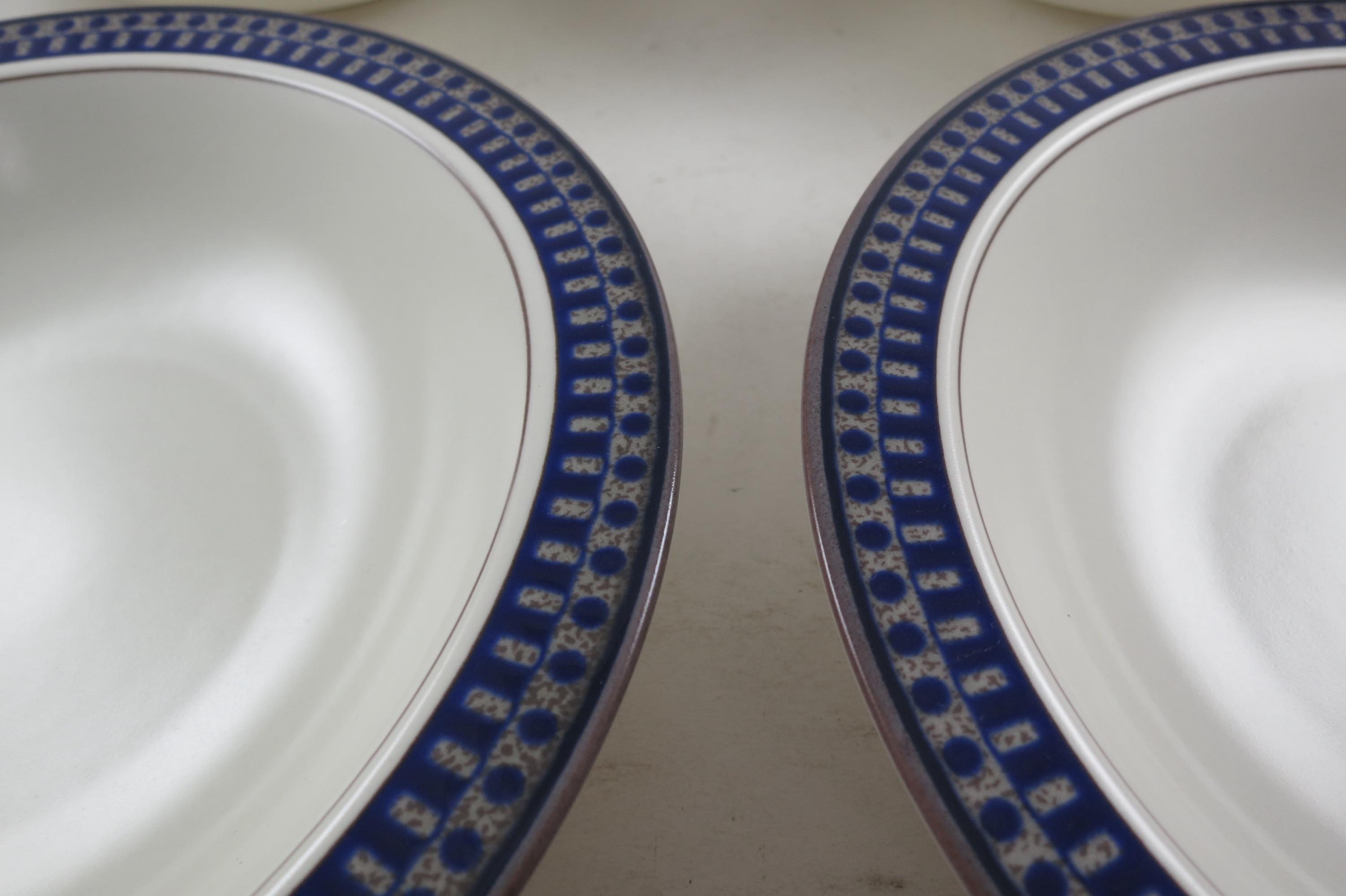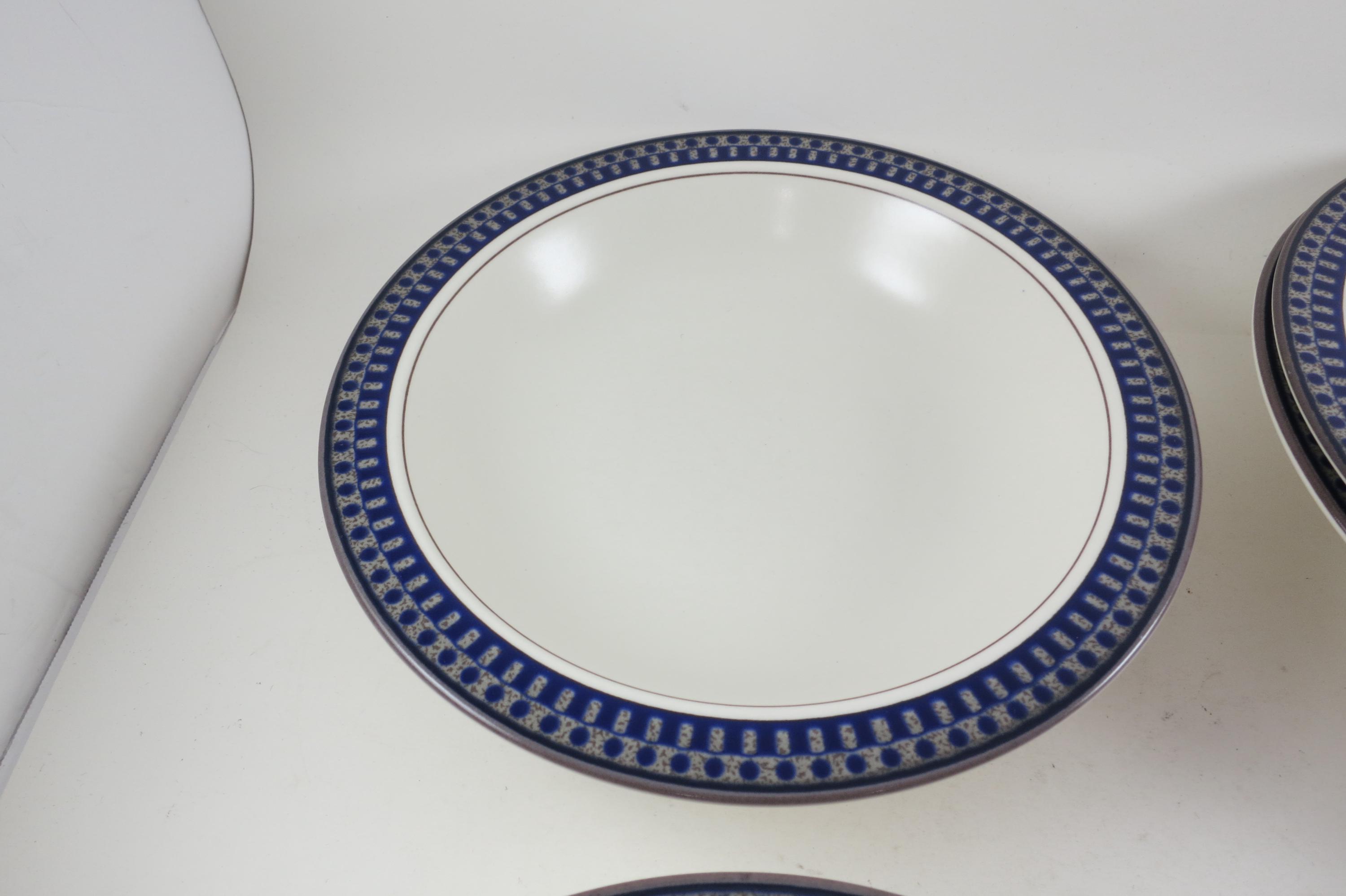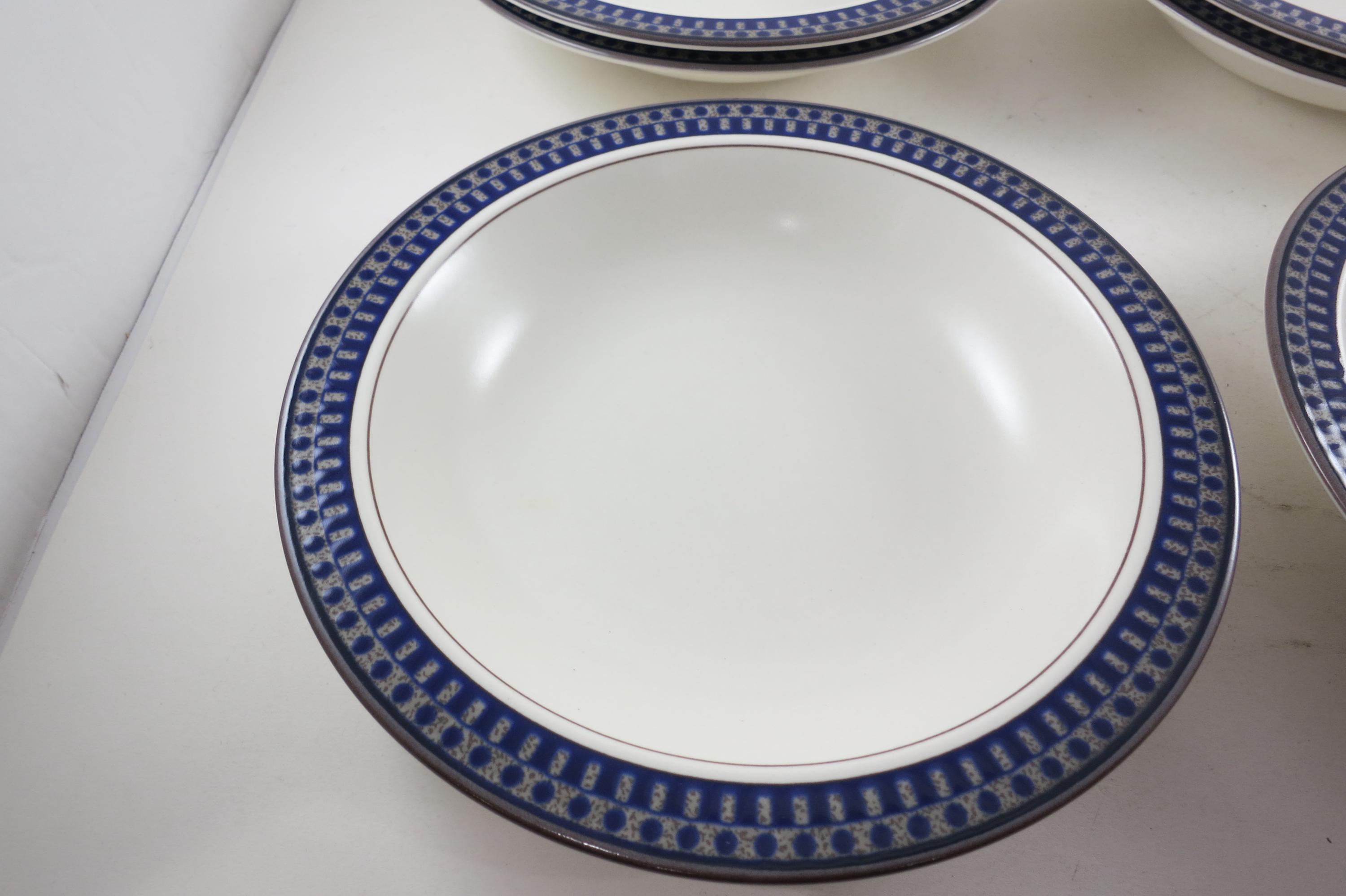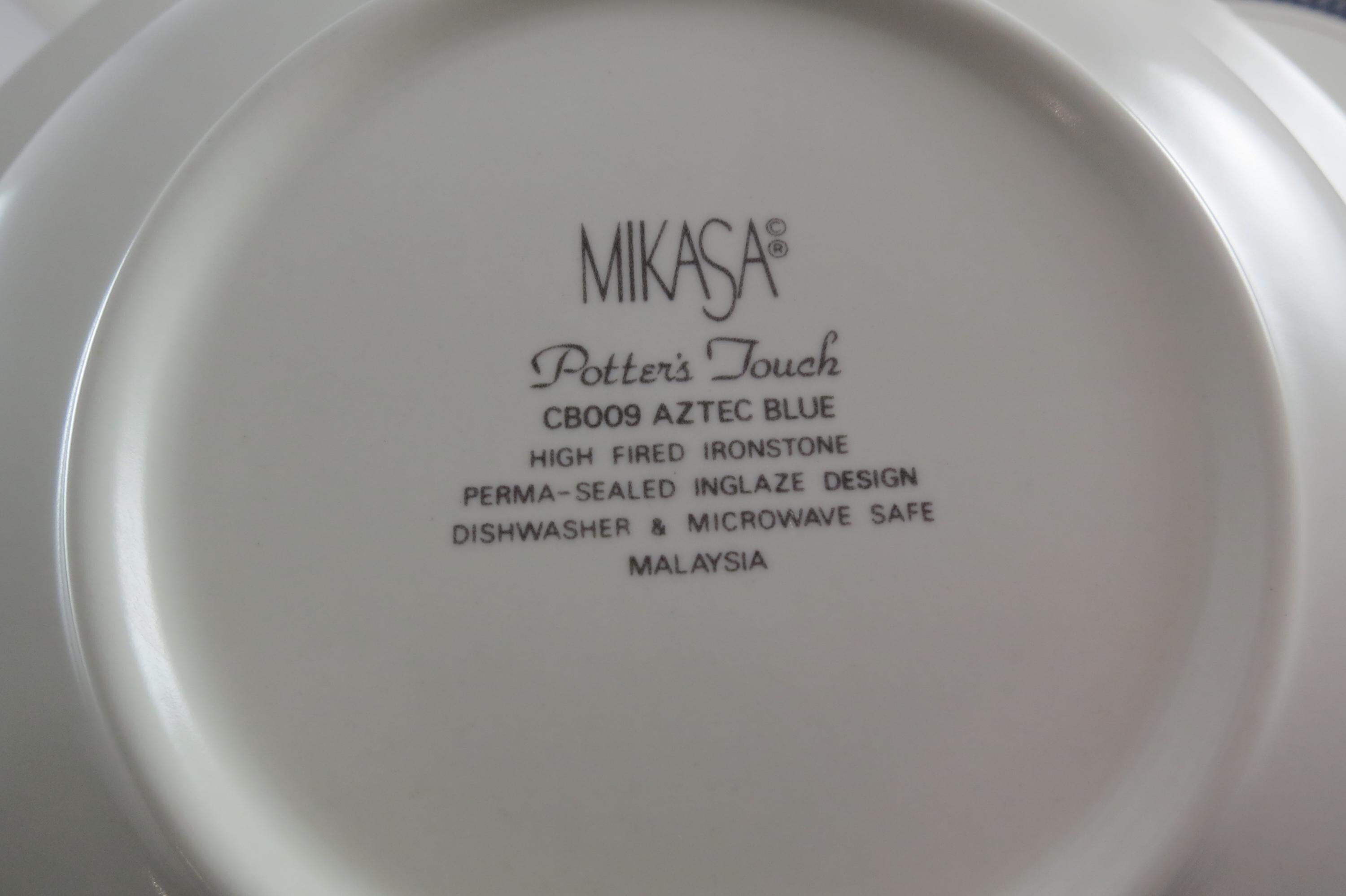 Set of Six Vintage Mikasa Potter's Touch Aztec Blue Ironstone 8 1/4 Inch Soup Bowls Excellent Condition.