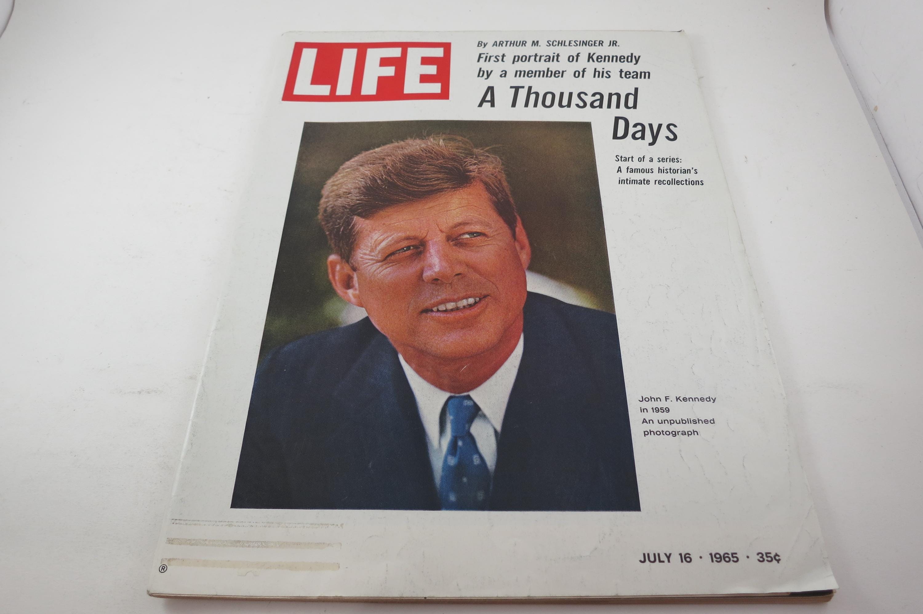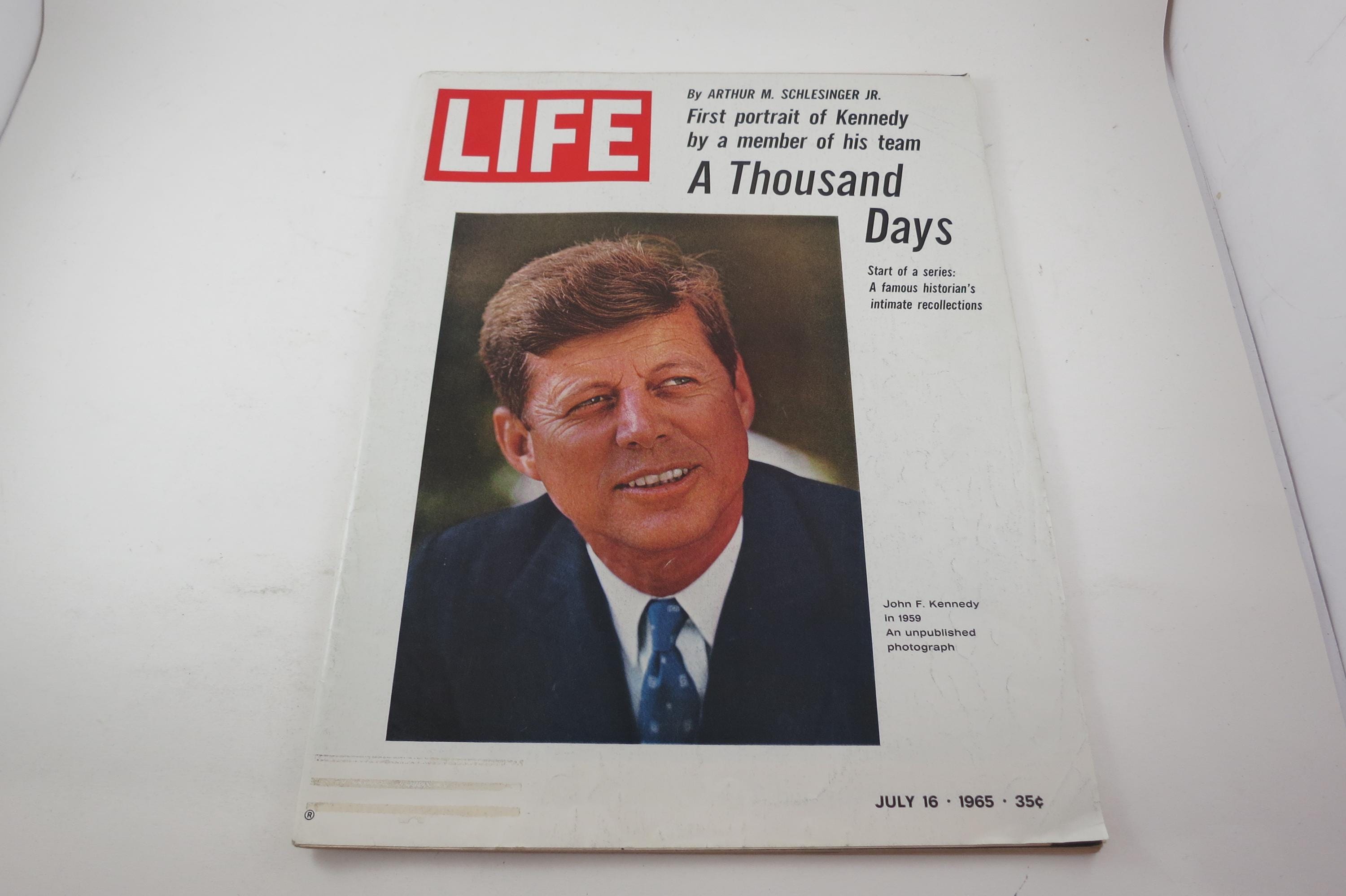 Vintage Life Magazine July 16 1965 Kennedy A Thousand Days Excellent Original Condition Neat Old Ad's. Has the remnants of an old shipping label on the bottom left. Nice Old Magazine!