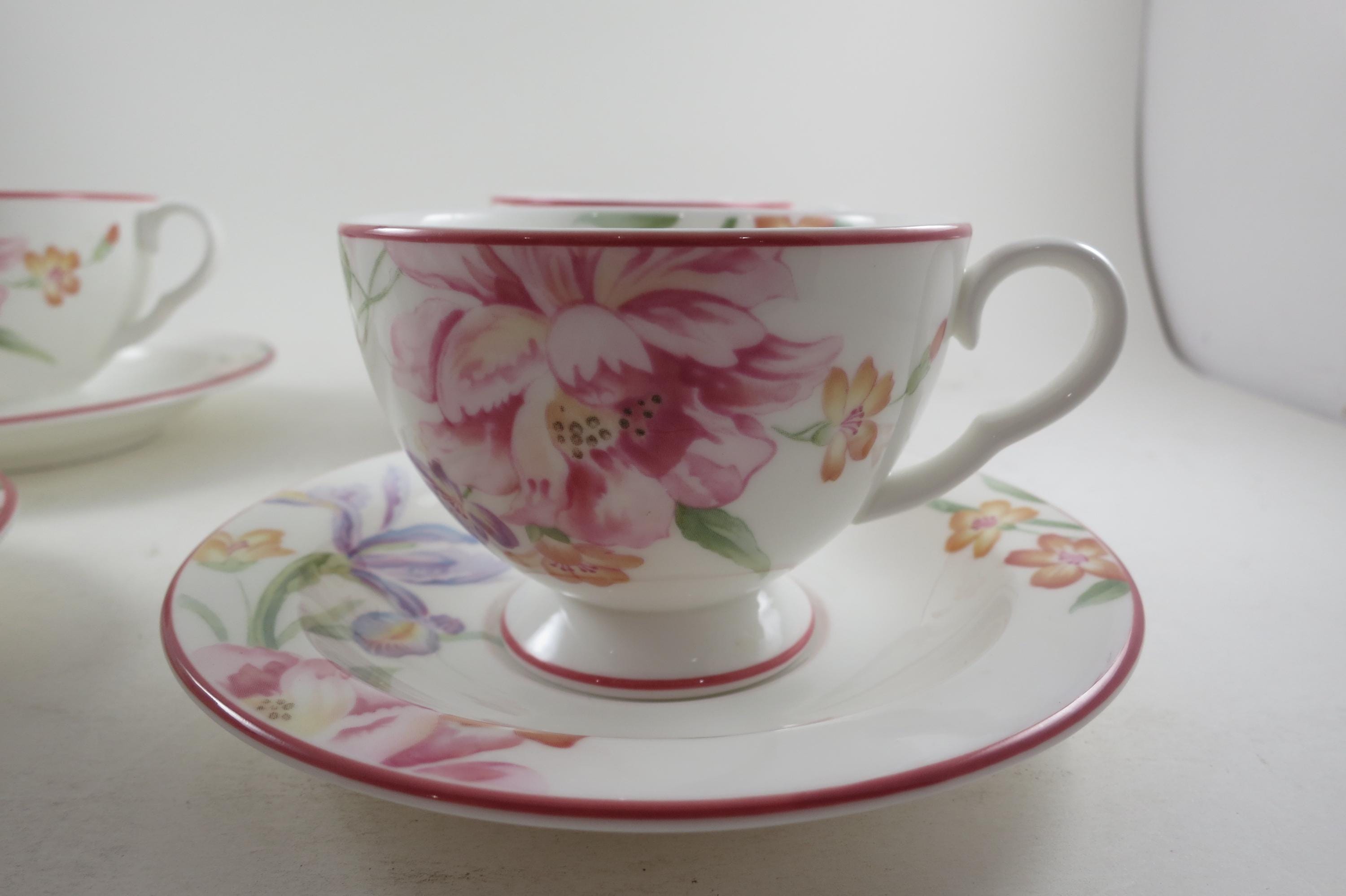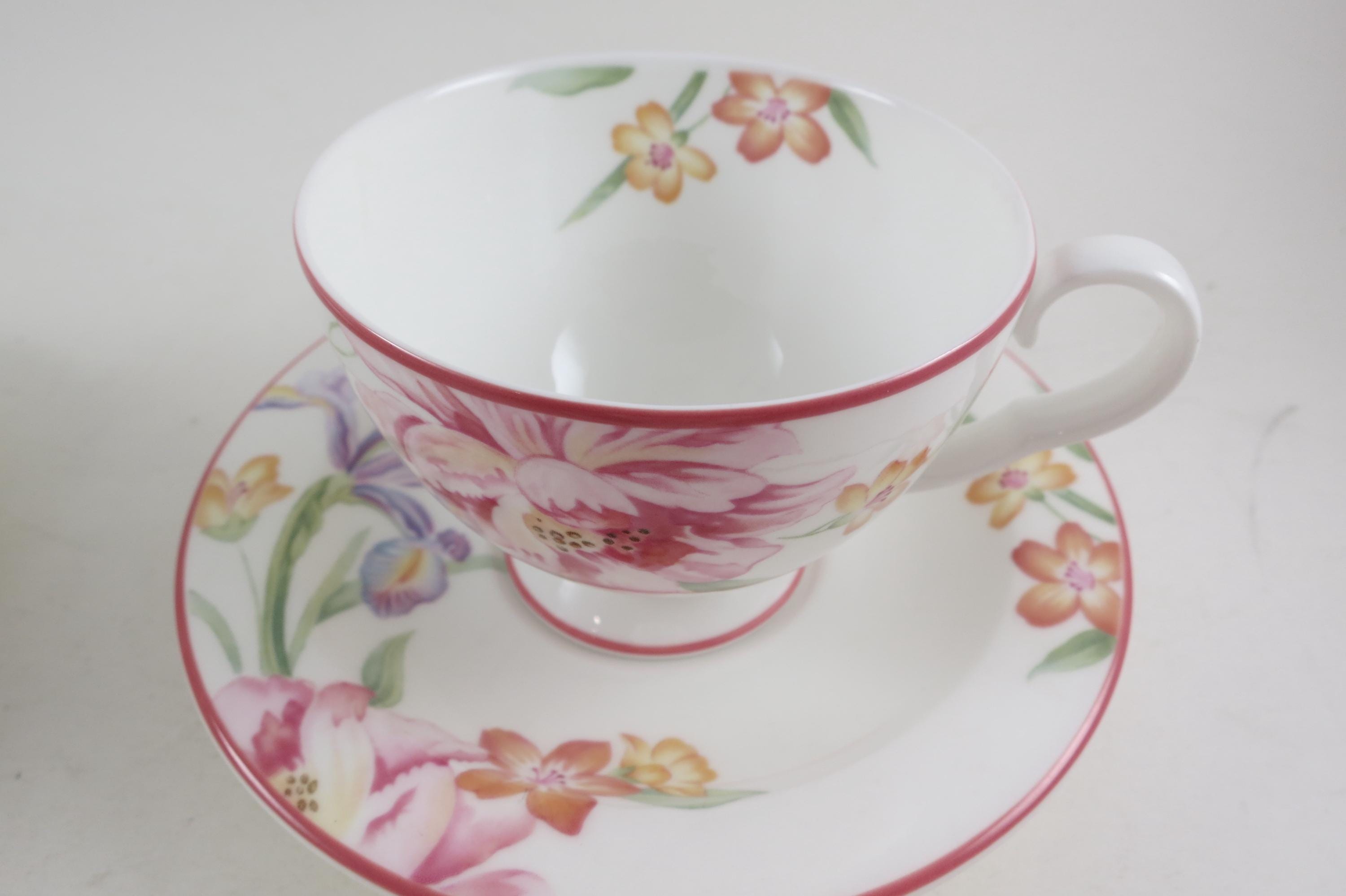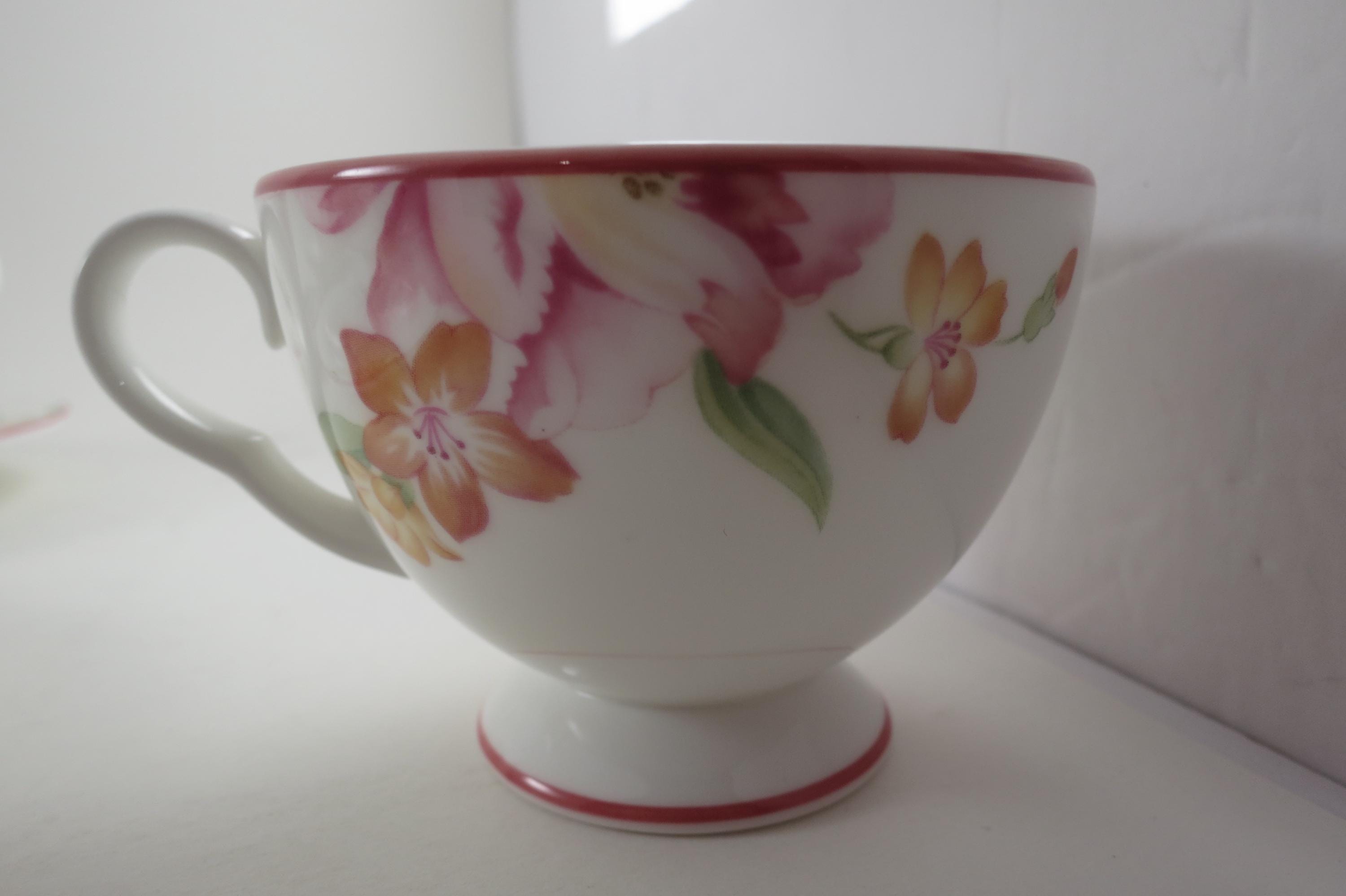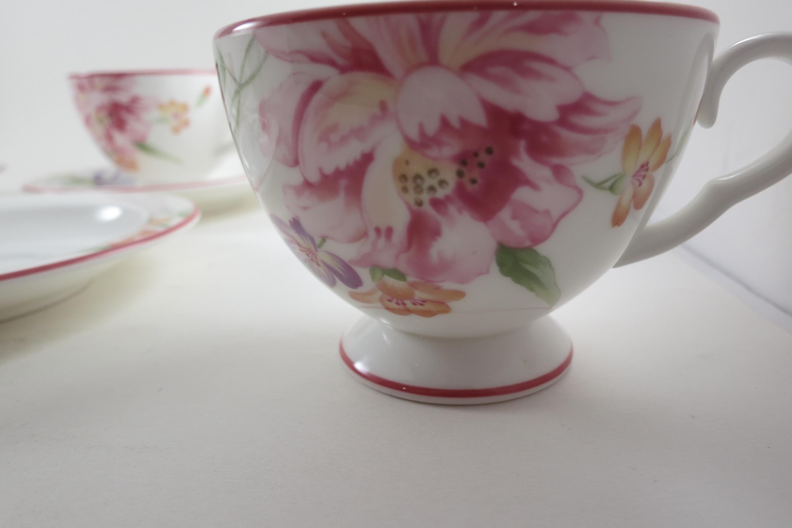 This listing is for a set of four cup and saucer sets. They are in pristine condition and look like they were never used.