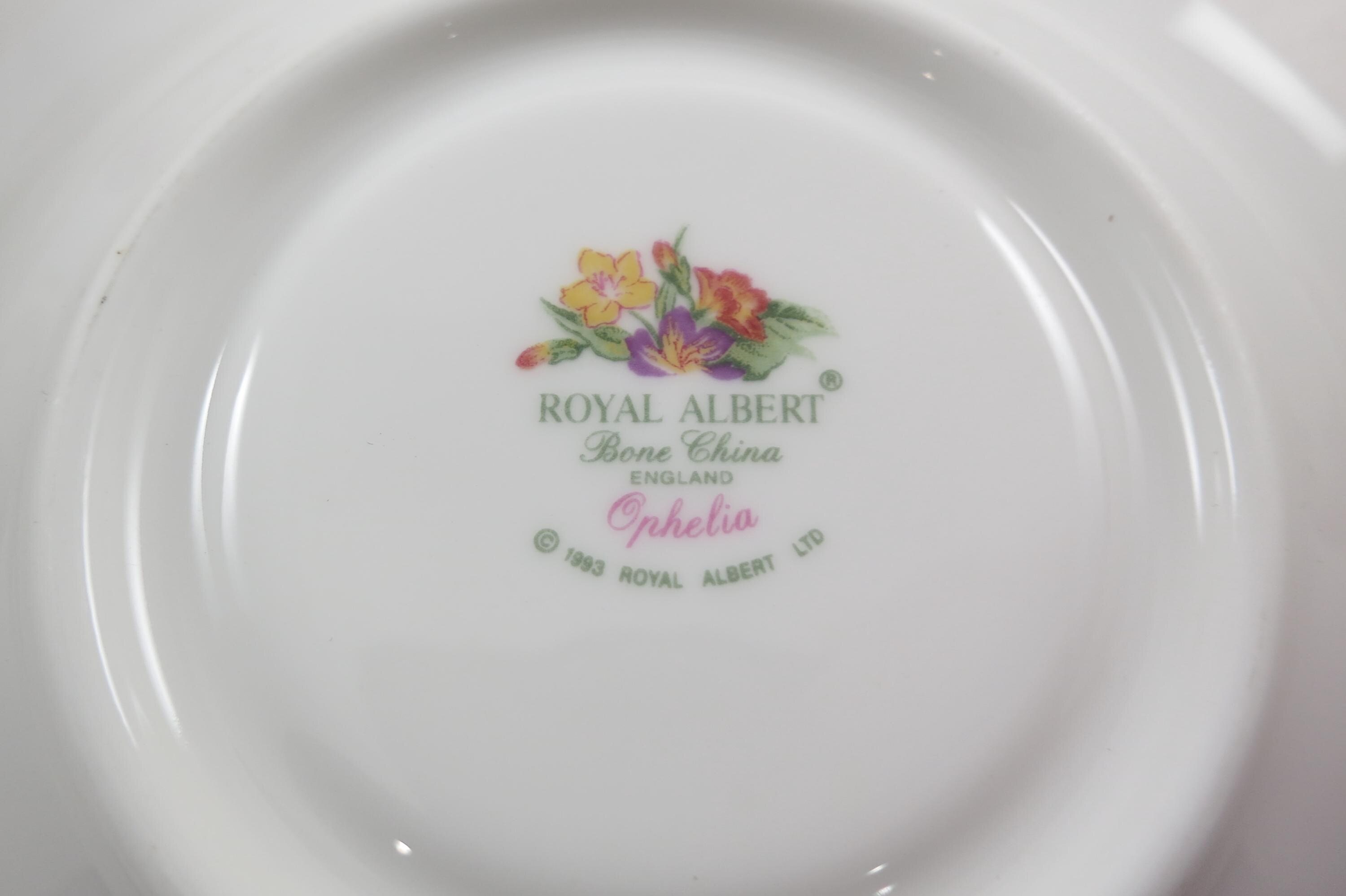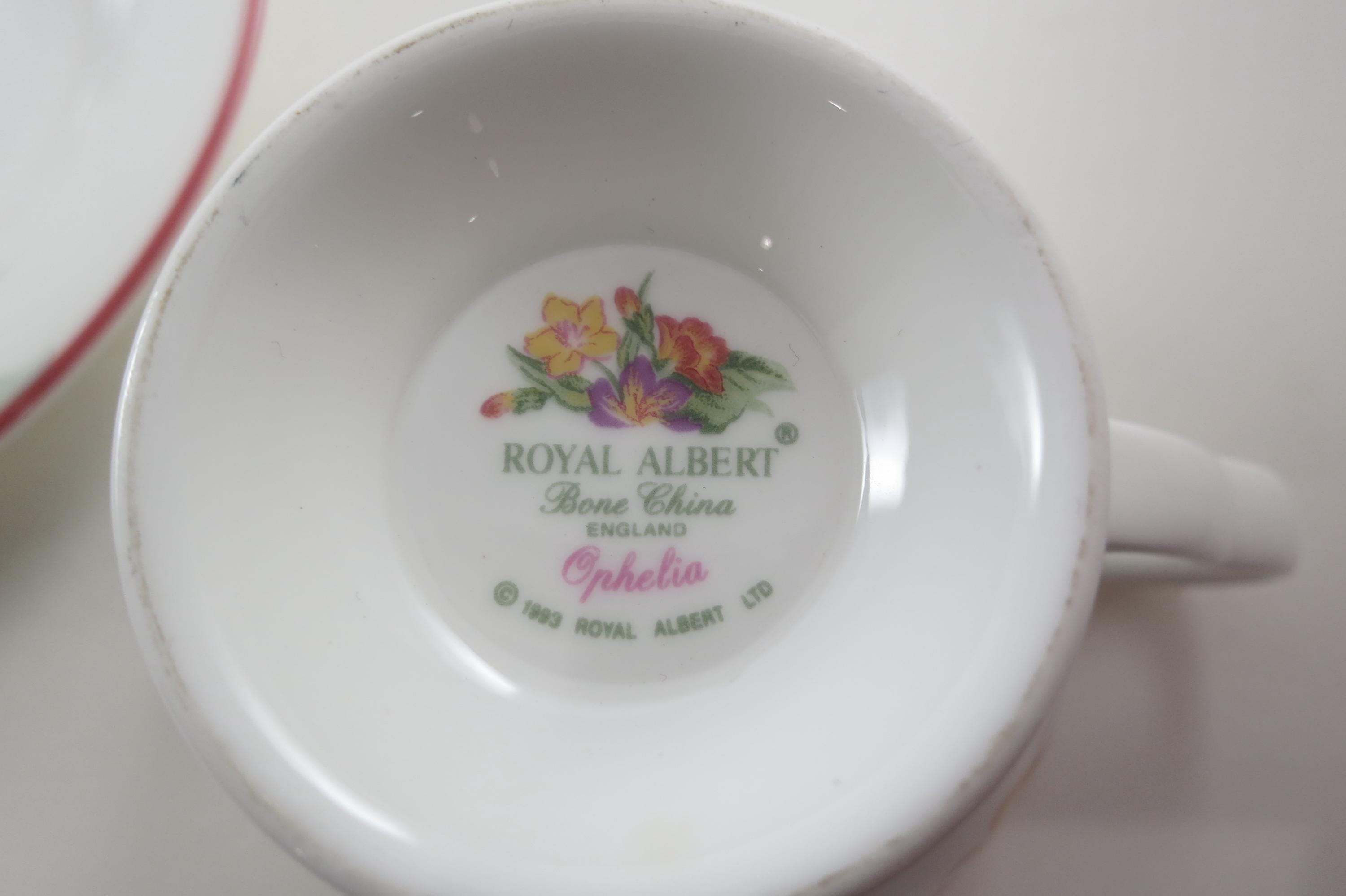 Set of Four Royal Albert Bone China Ophelia Pattern Cup and Saucer Sets Pristine Condition.