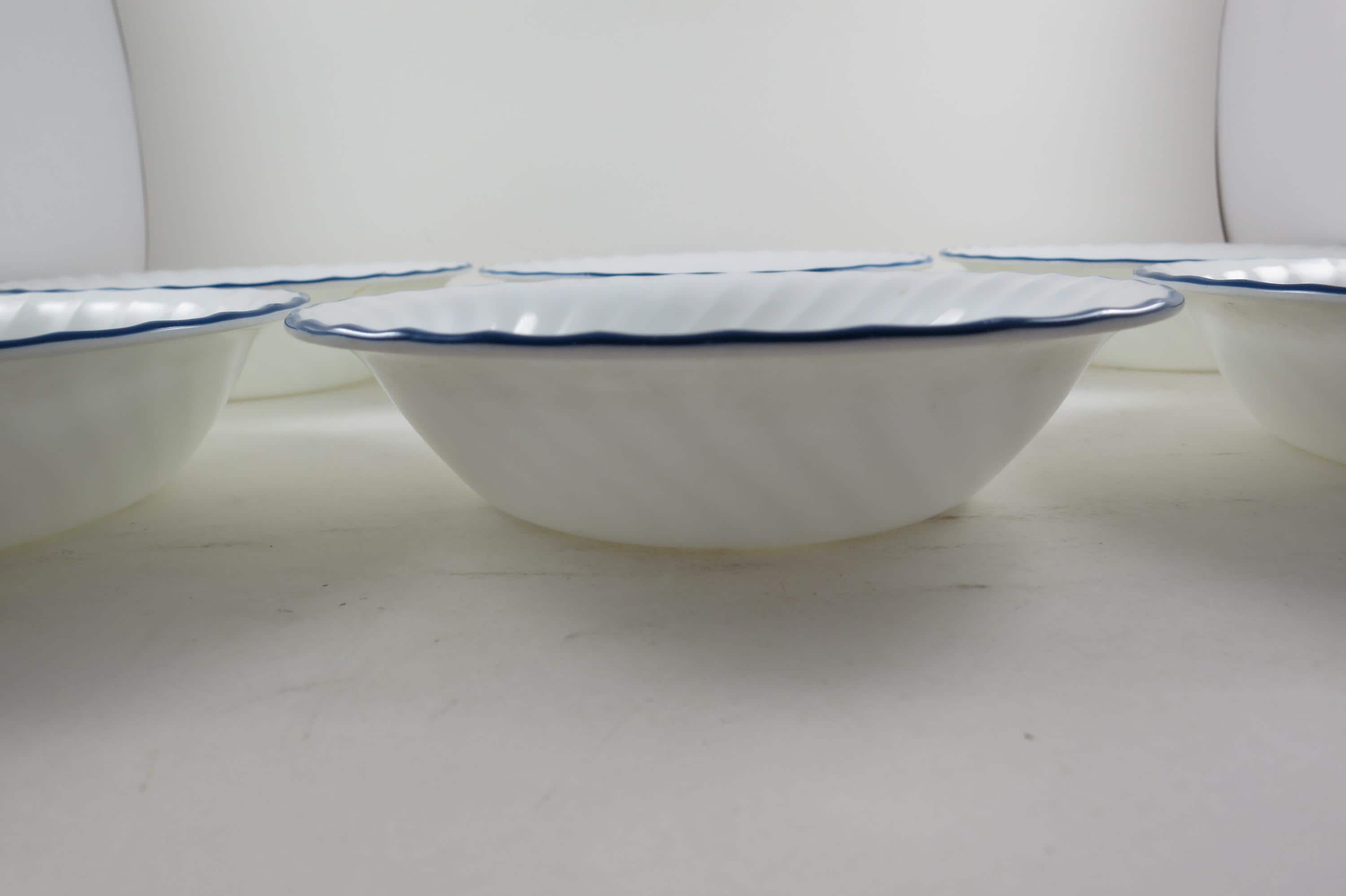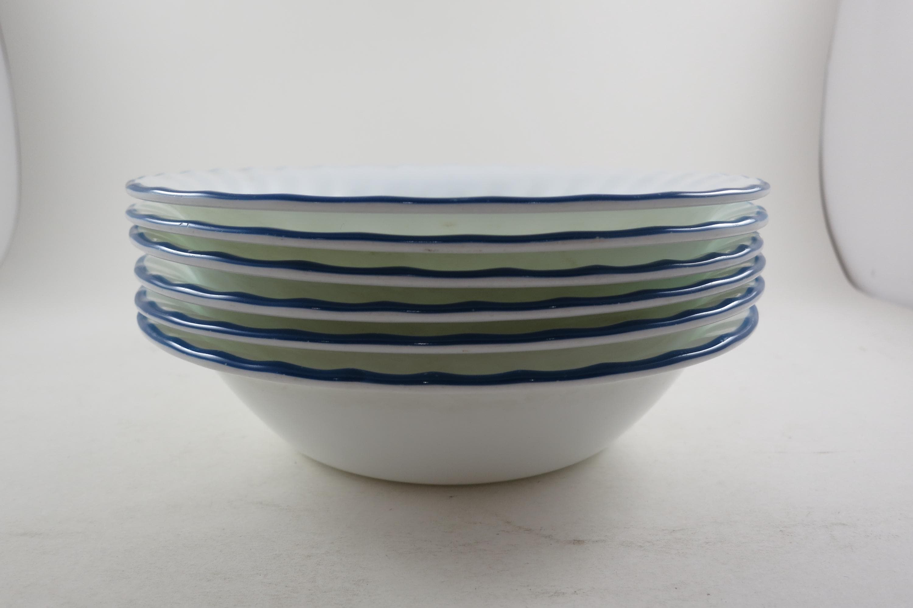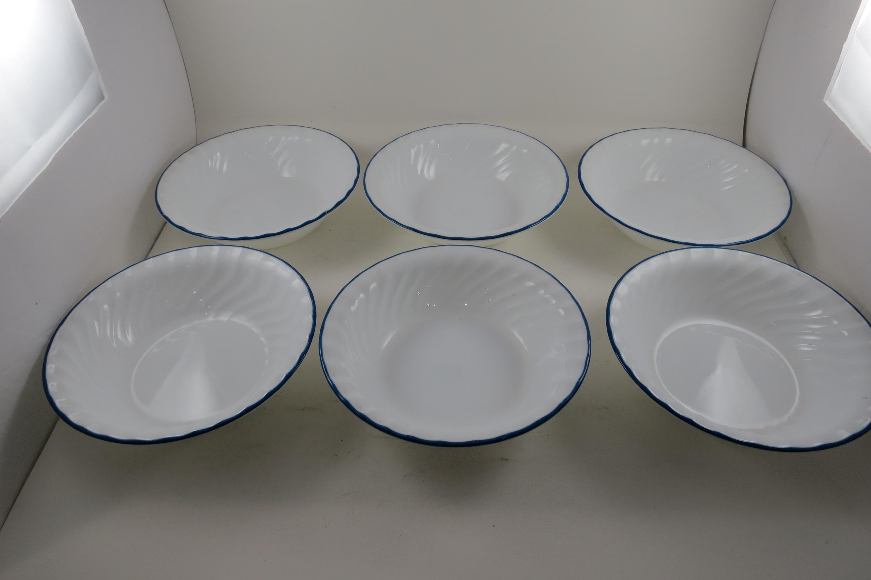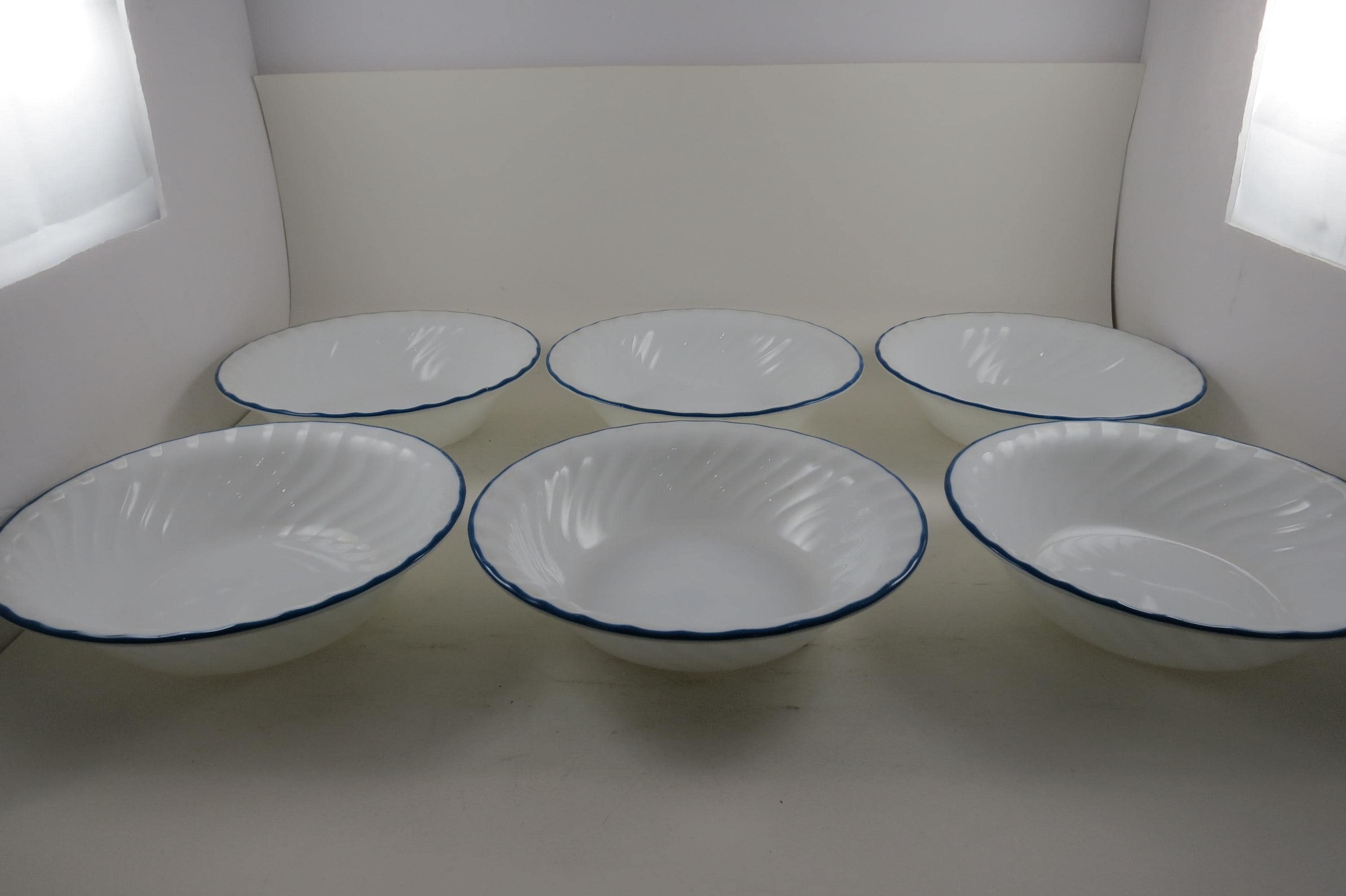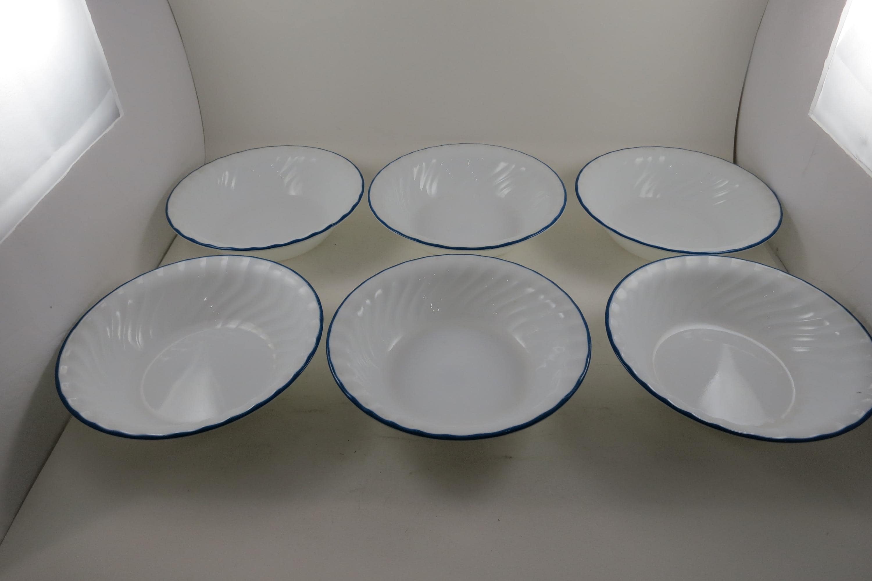 Vintage Corelle Blue Velvet Rose Pattern Set of Six 7 Inch Soup Bowls Excellent Condition. No chips, cracks or damages. Beautiful Pattern! Listing is for a set of six 7 Inch Soup Bowls.