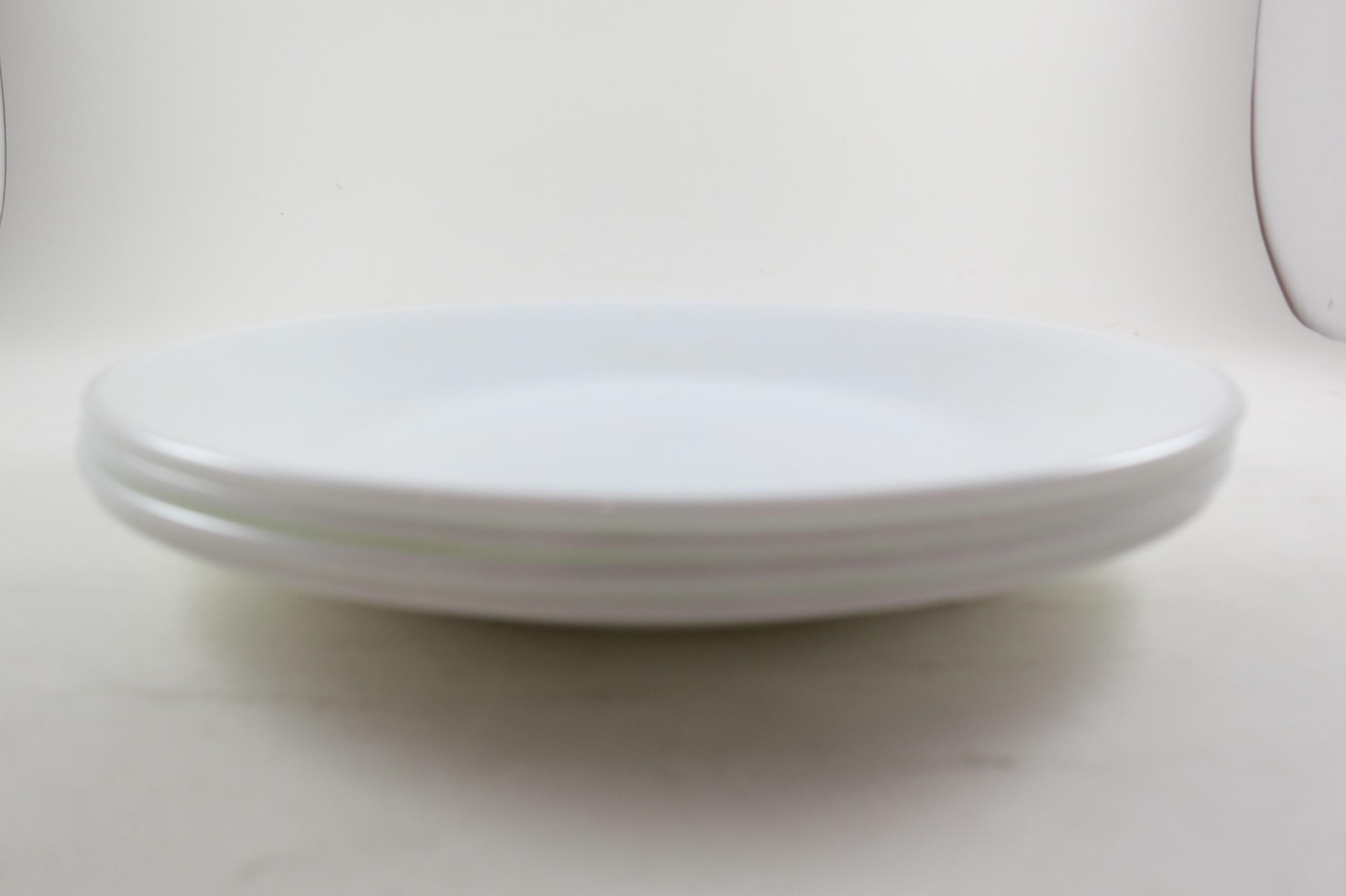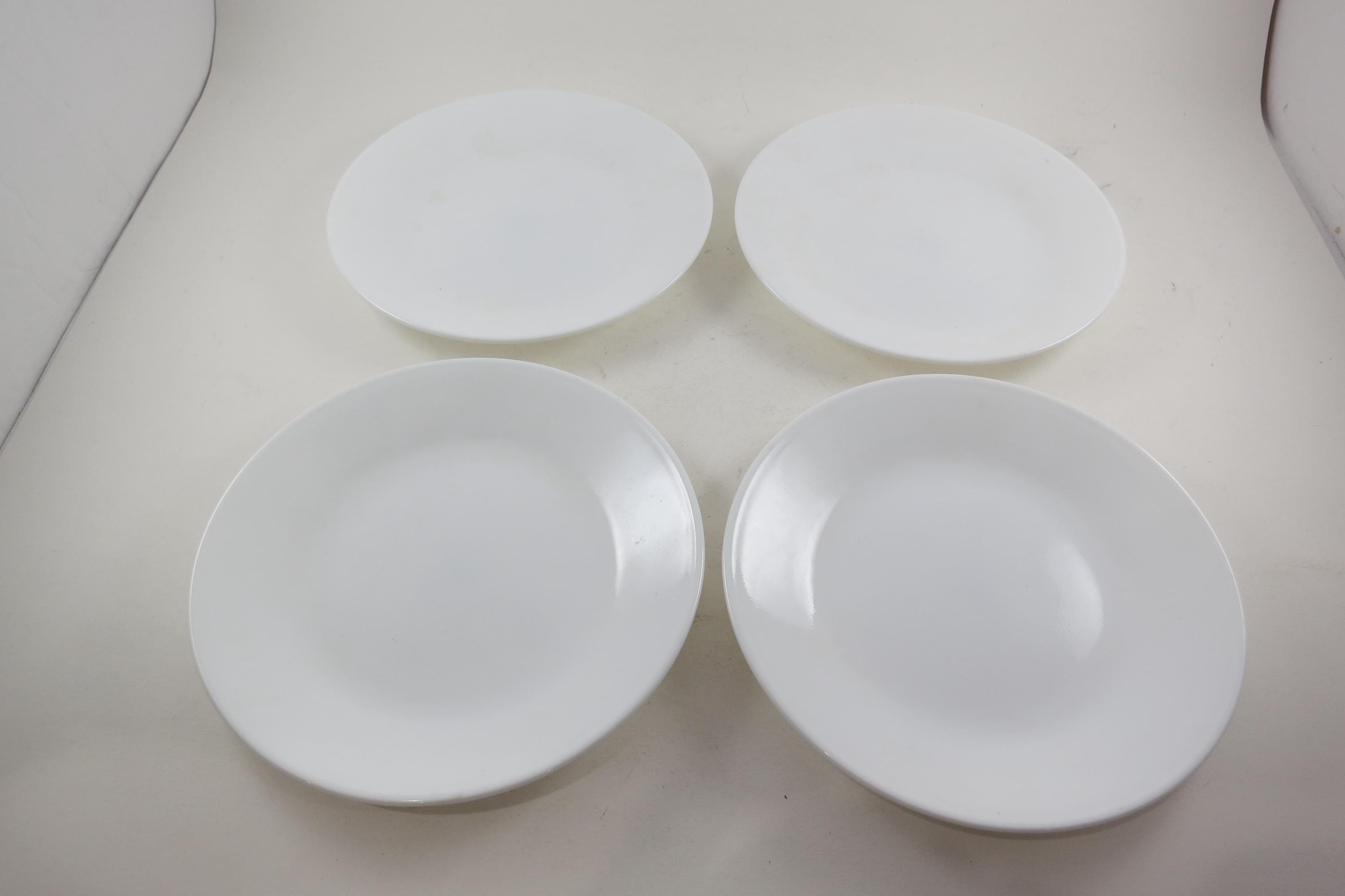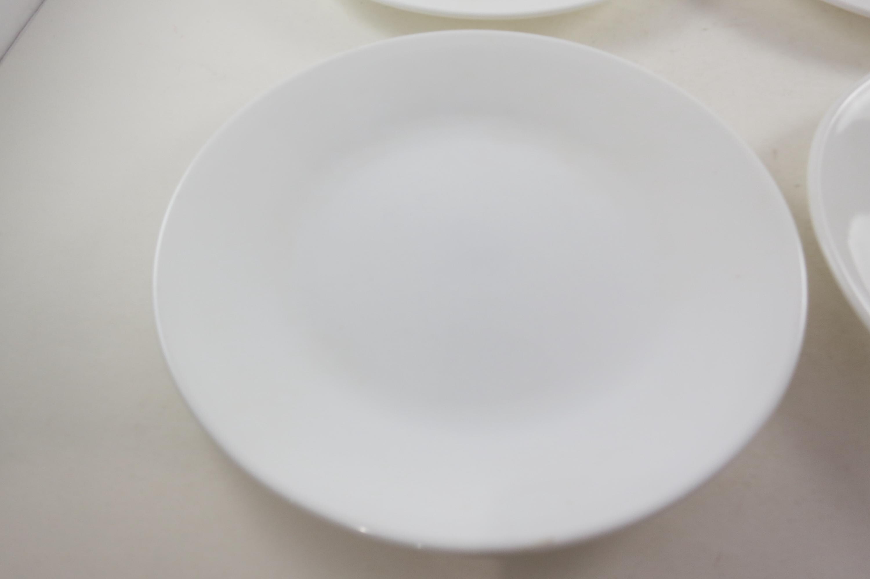Set of Four Vintage Corelle by Corning Vitrelle White Pattern 6 3/4 Inch Bread Plates Very Good Used Condition. No chips, cracks or damages. These show light use wear.