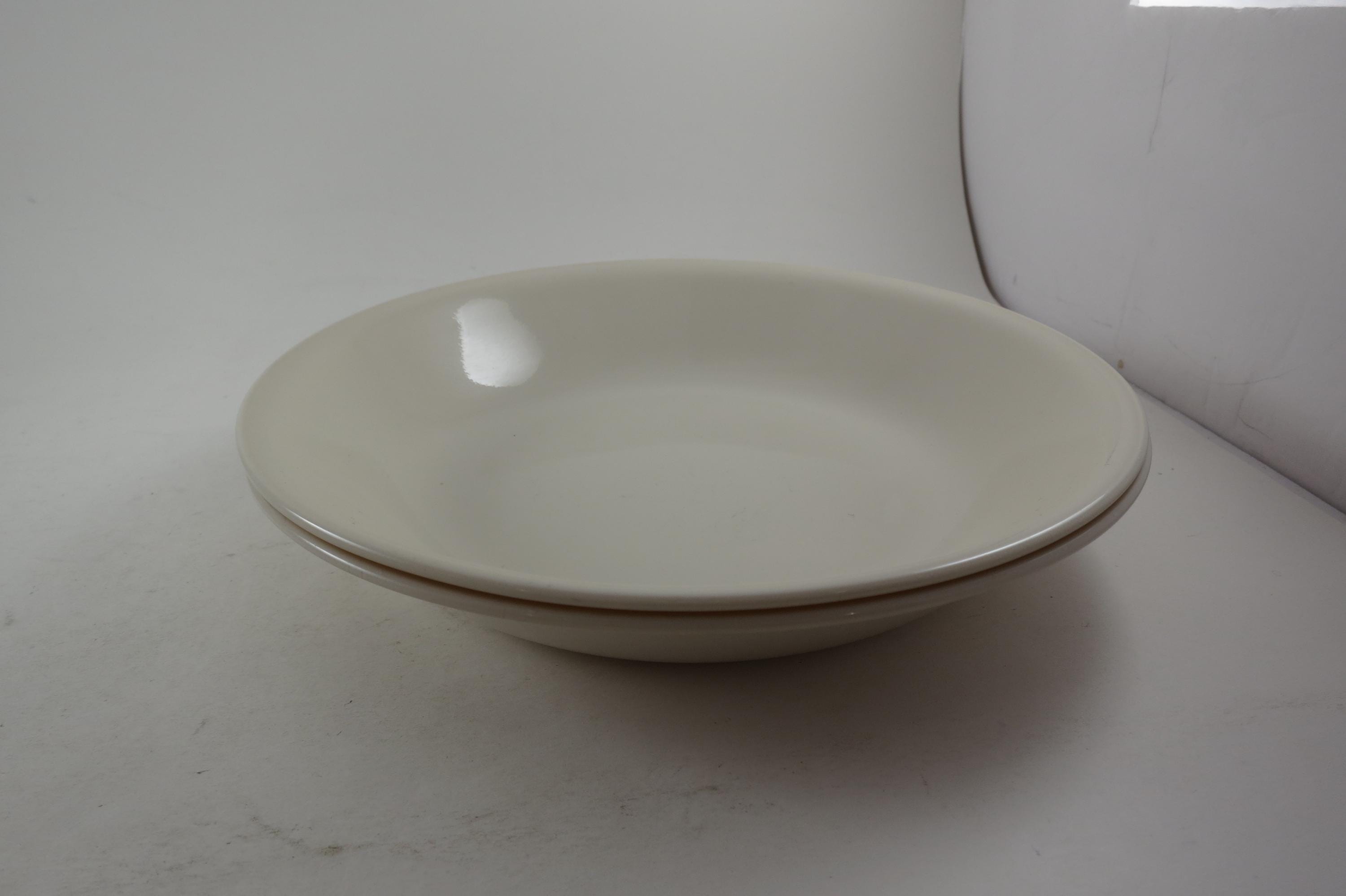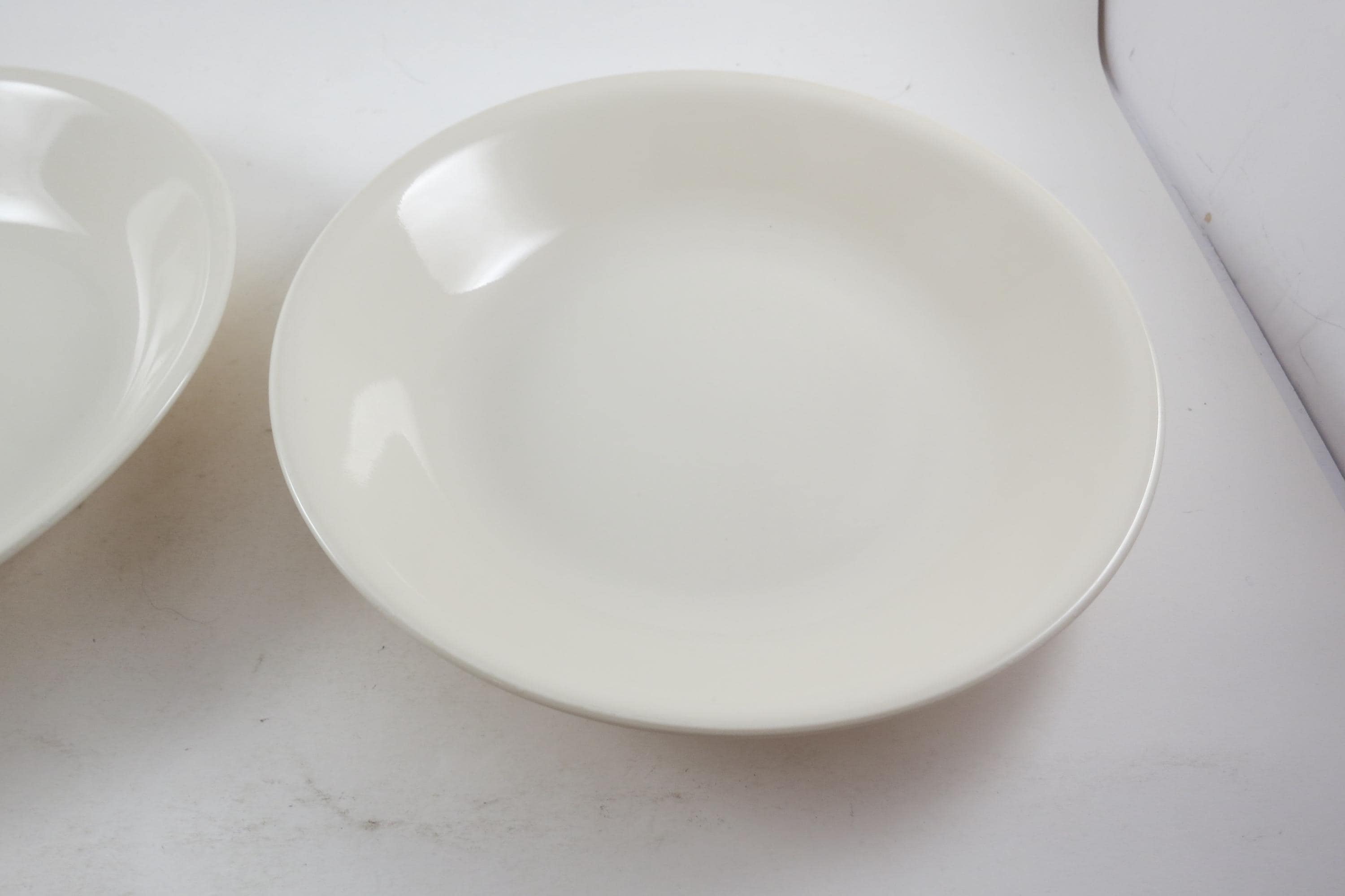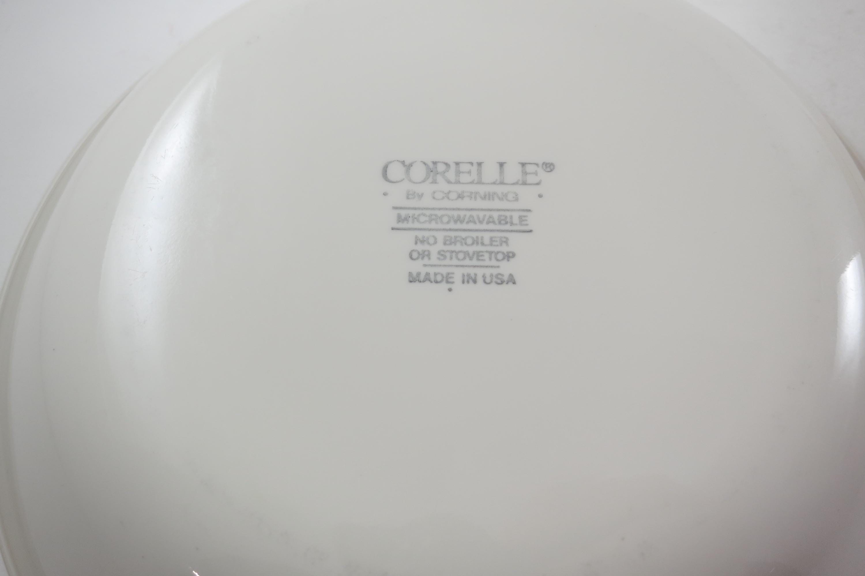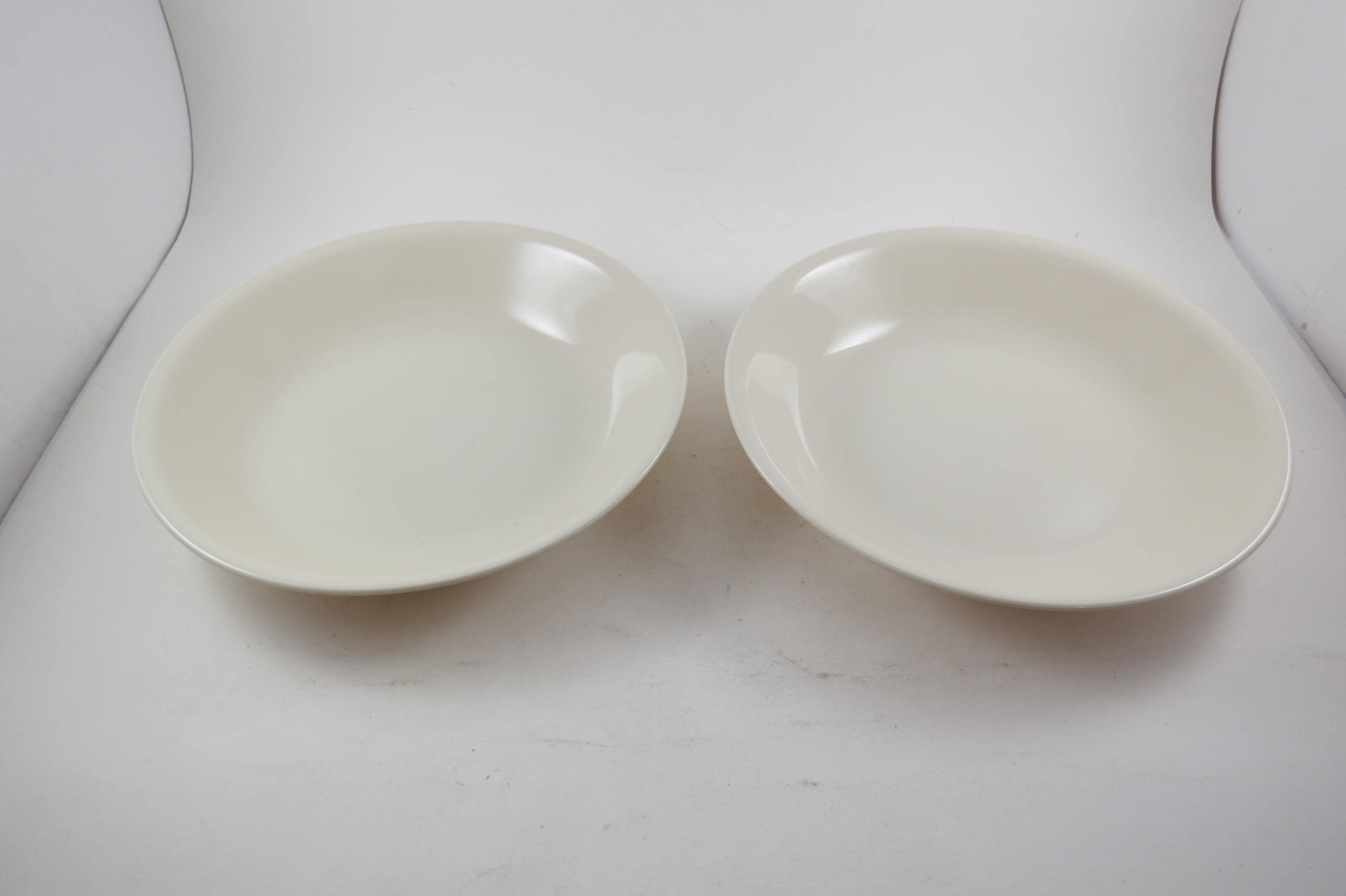 Pair of Vintage Corelle Tulip Rose Beige Pattern 8 1/2 Inch Serving Bowls Excellent Used Condition. No chips, cracks or damages. Listing is for two 8 1/2 inch serving bowls.