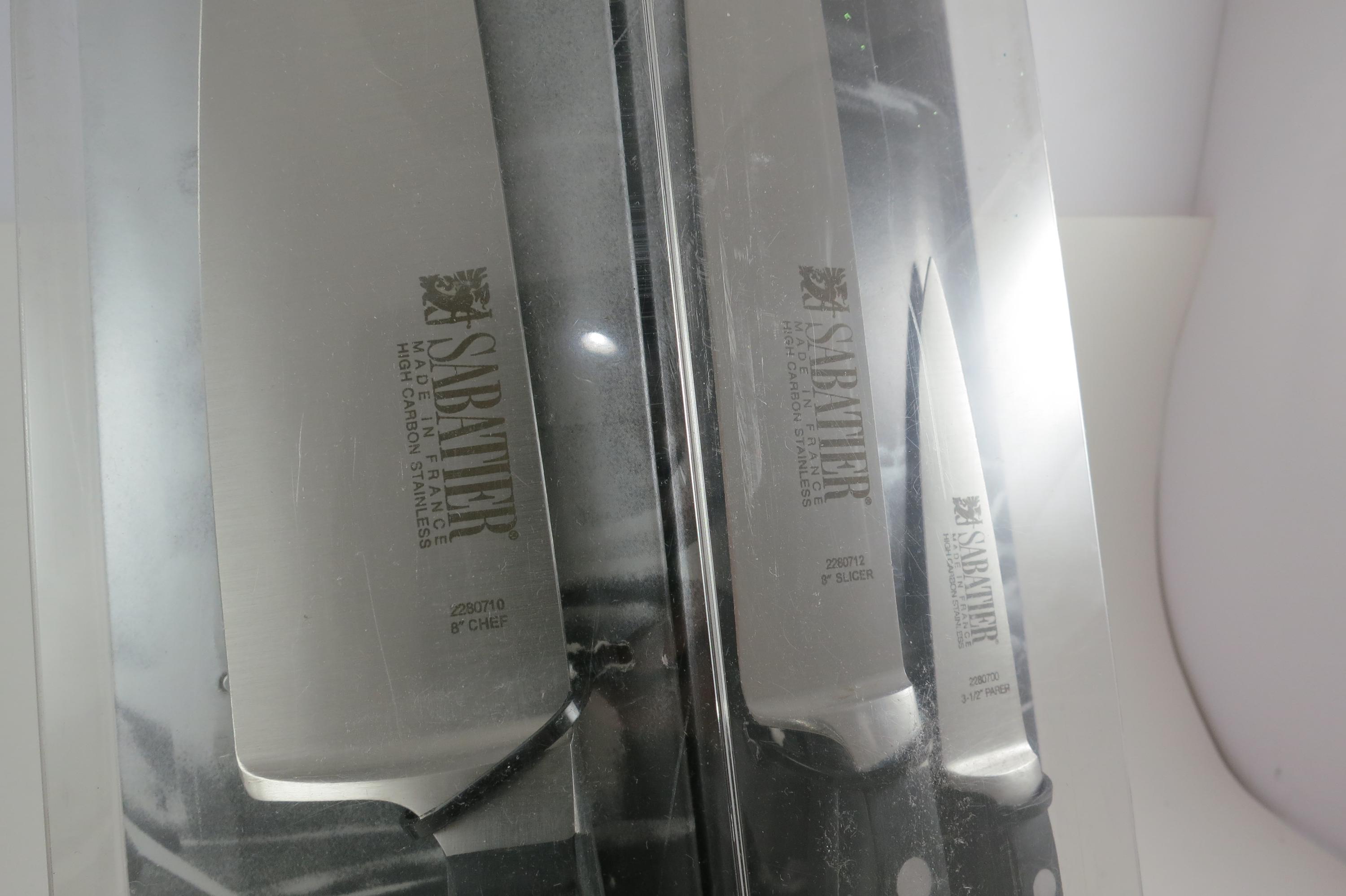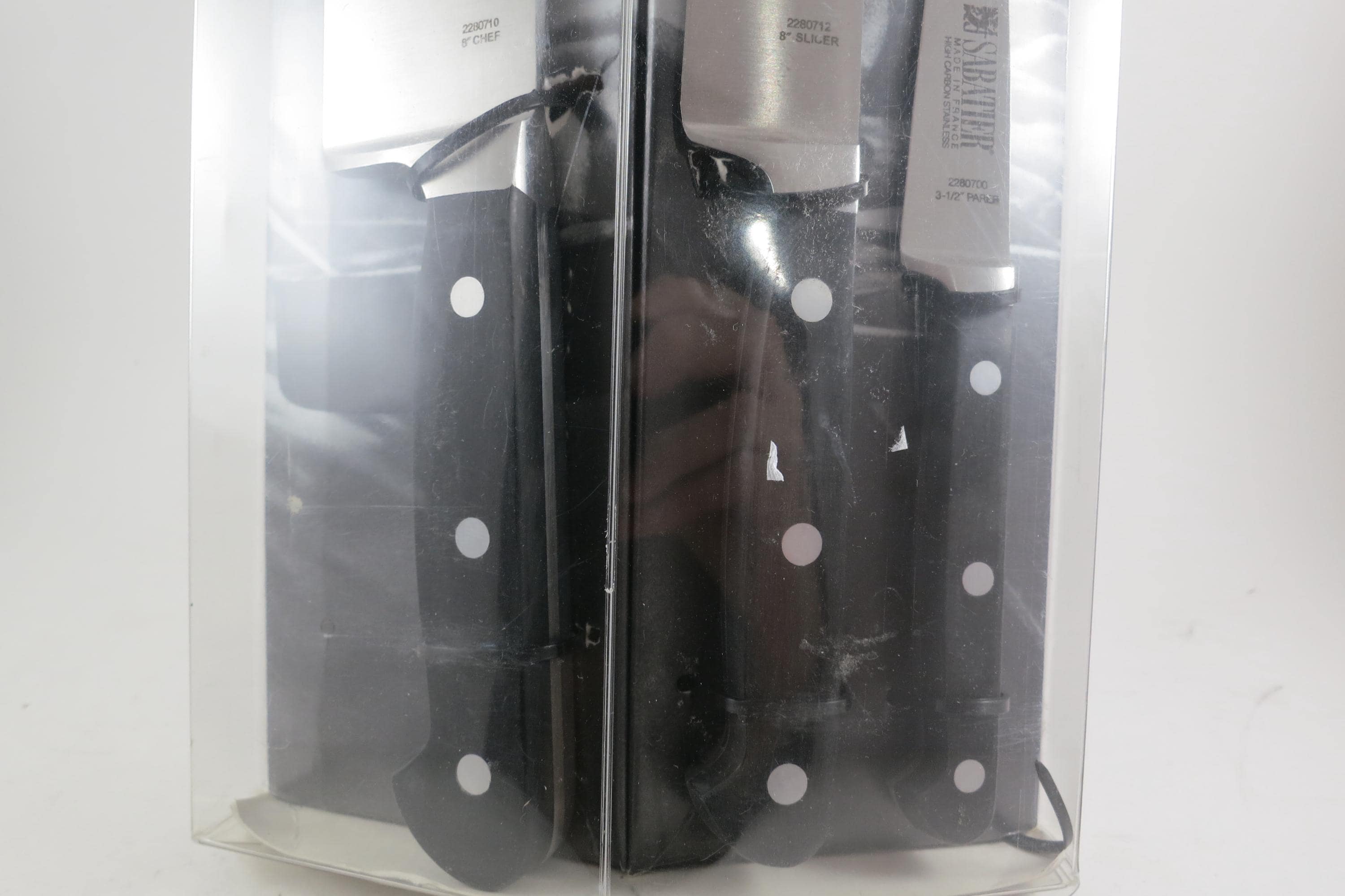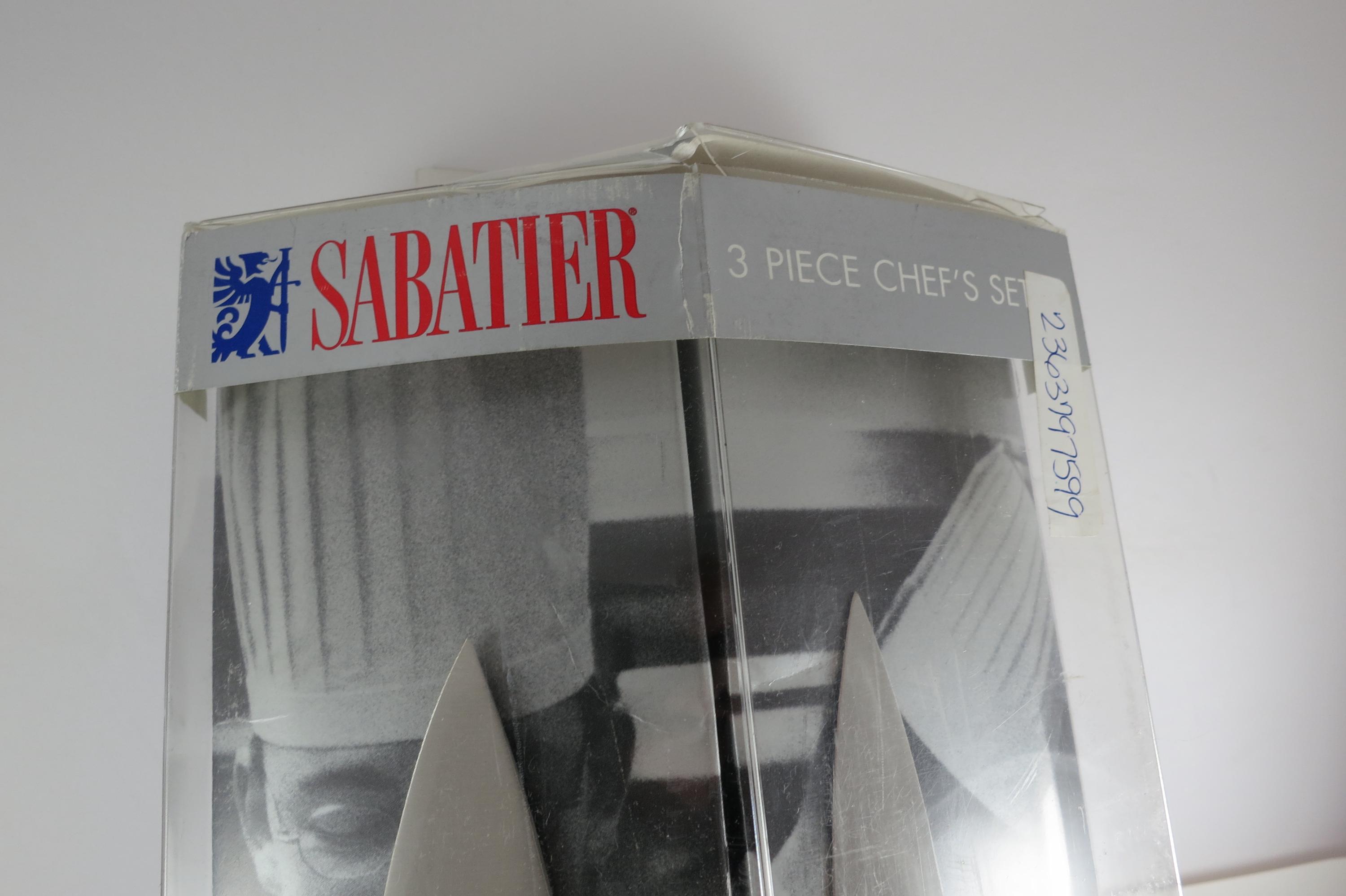 Vintage Sabatier 3 Piece Grand Chef's Set New in Package NOS Chef Slicer Parer High Carbon Stainless Made in France.