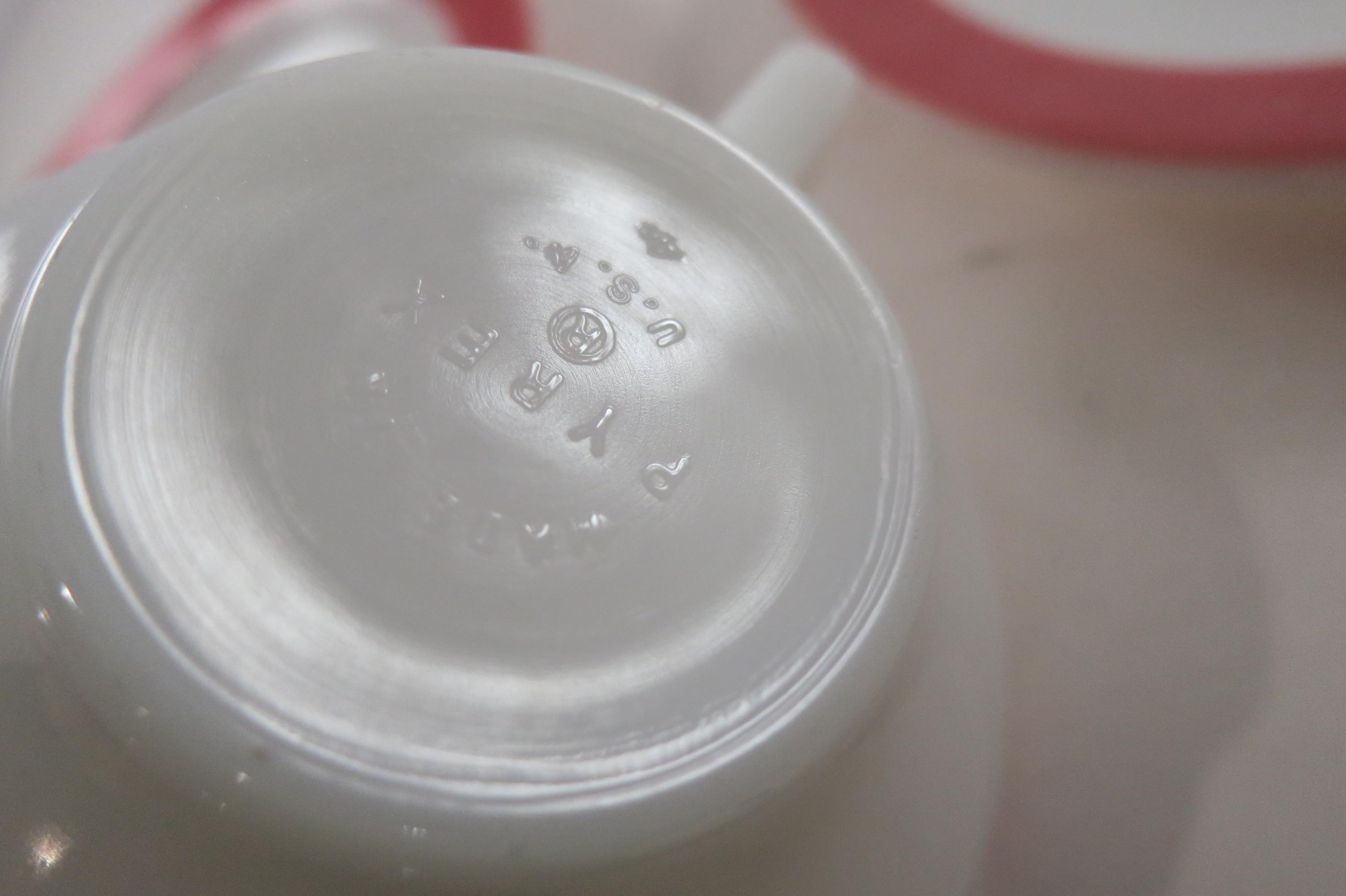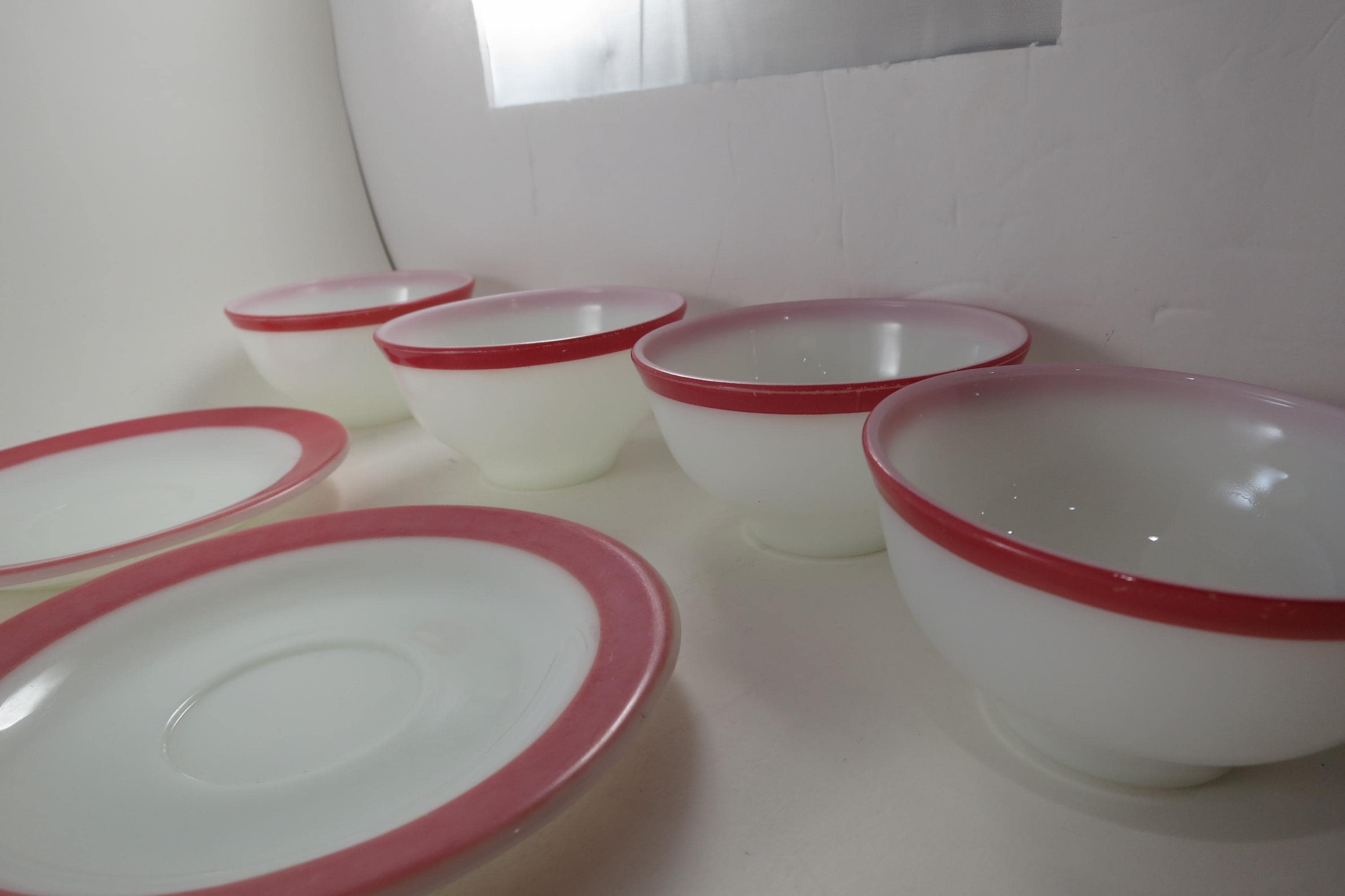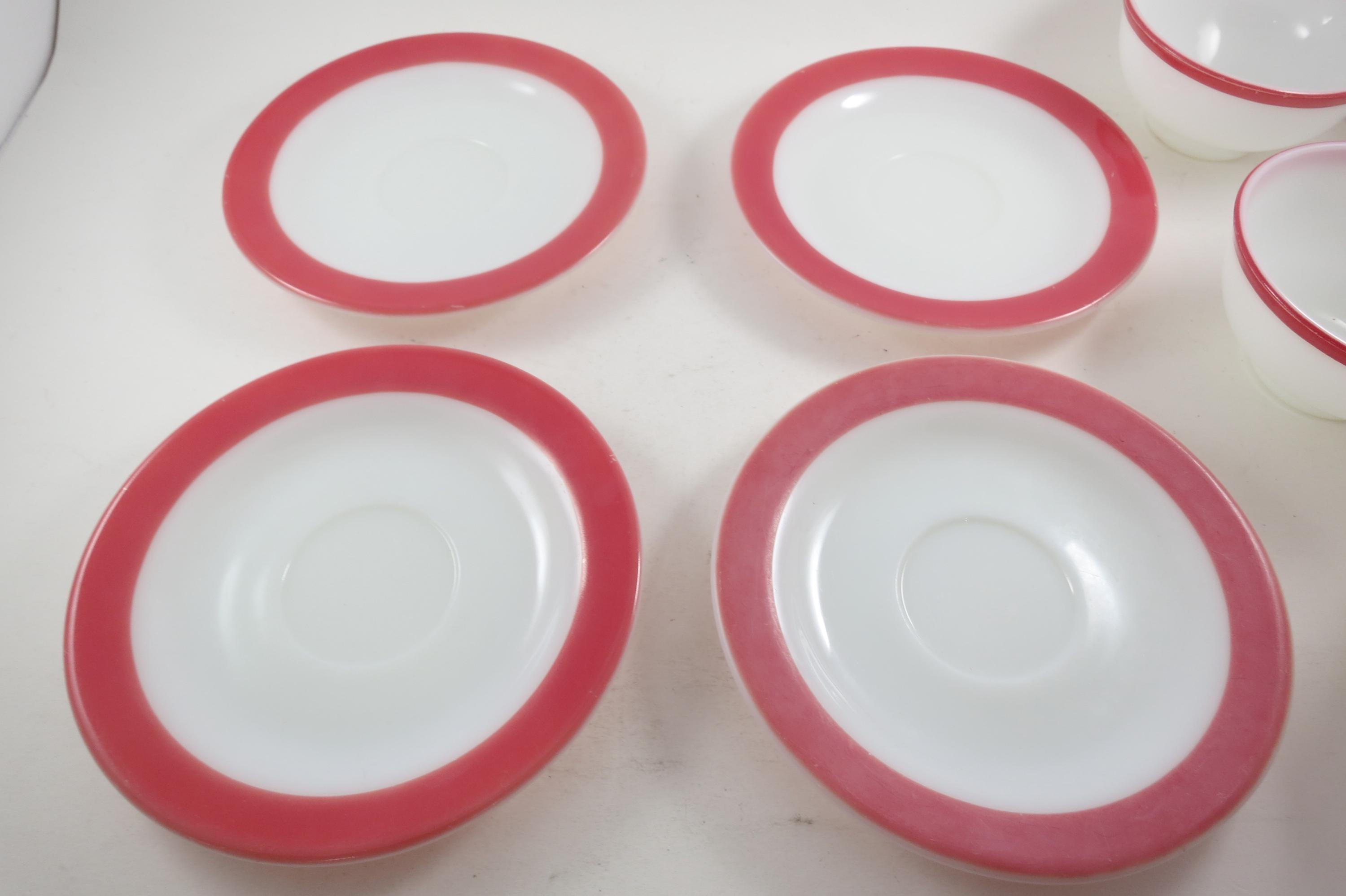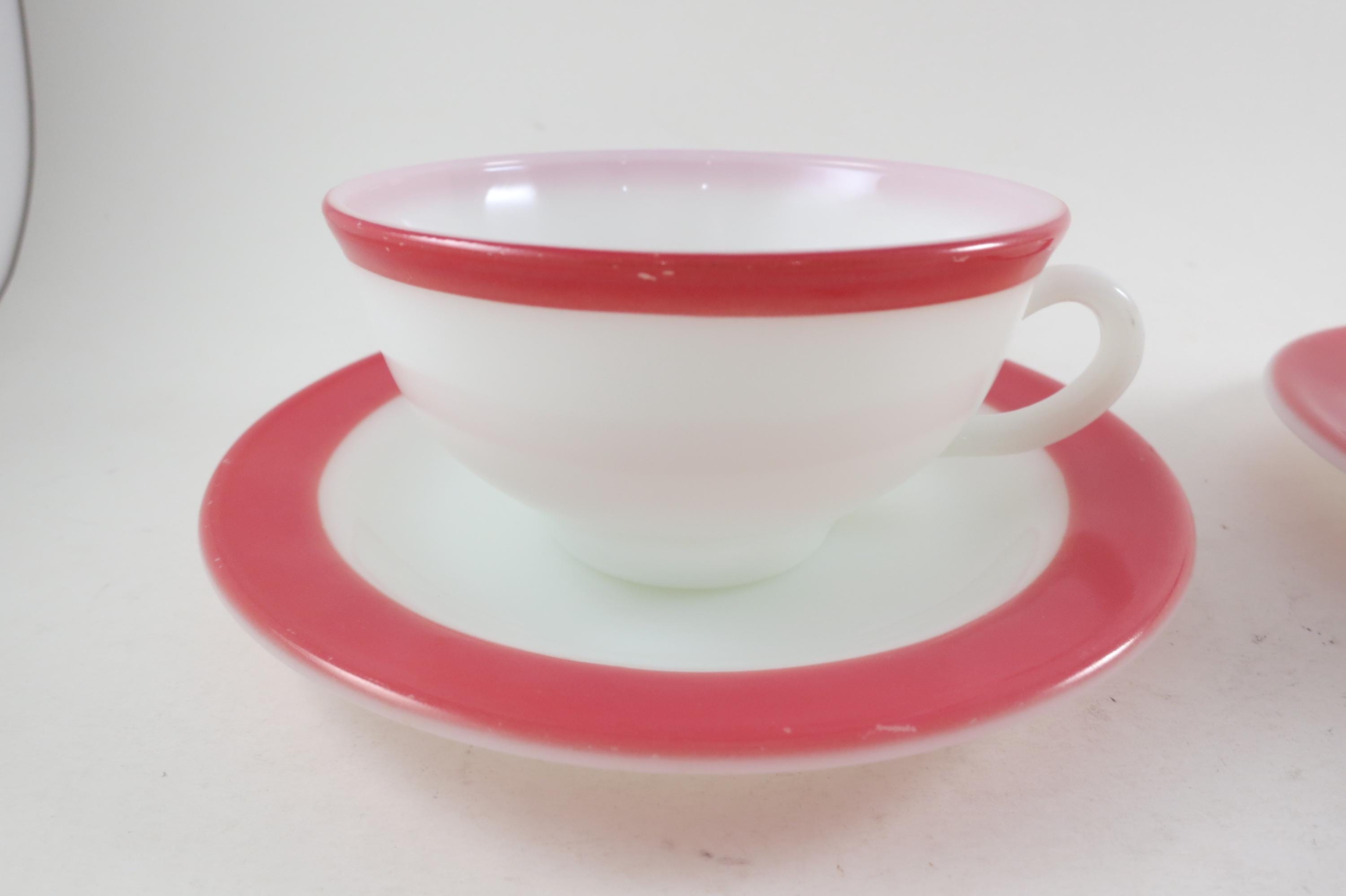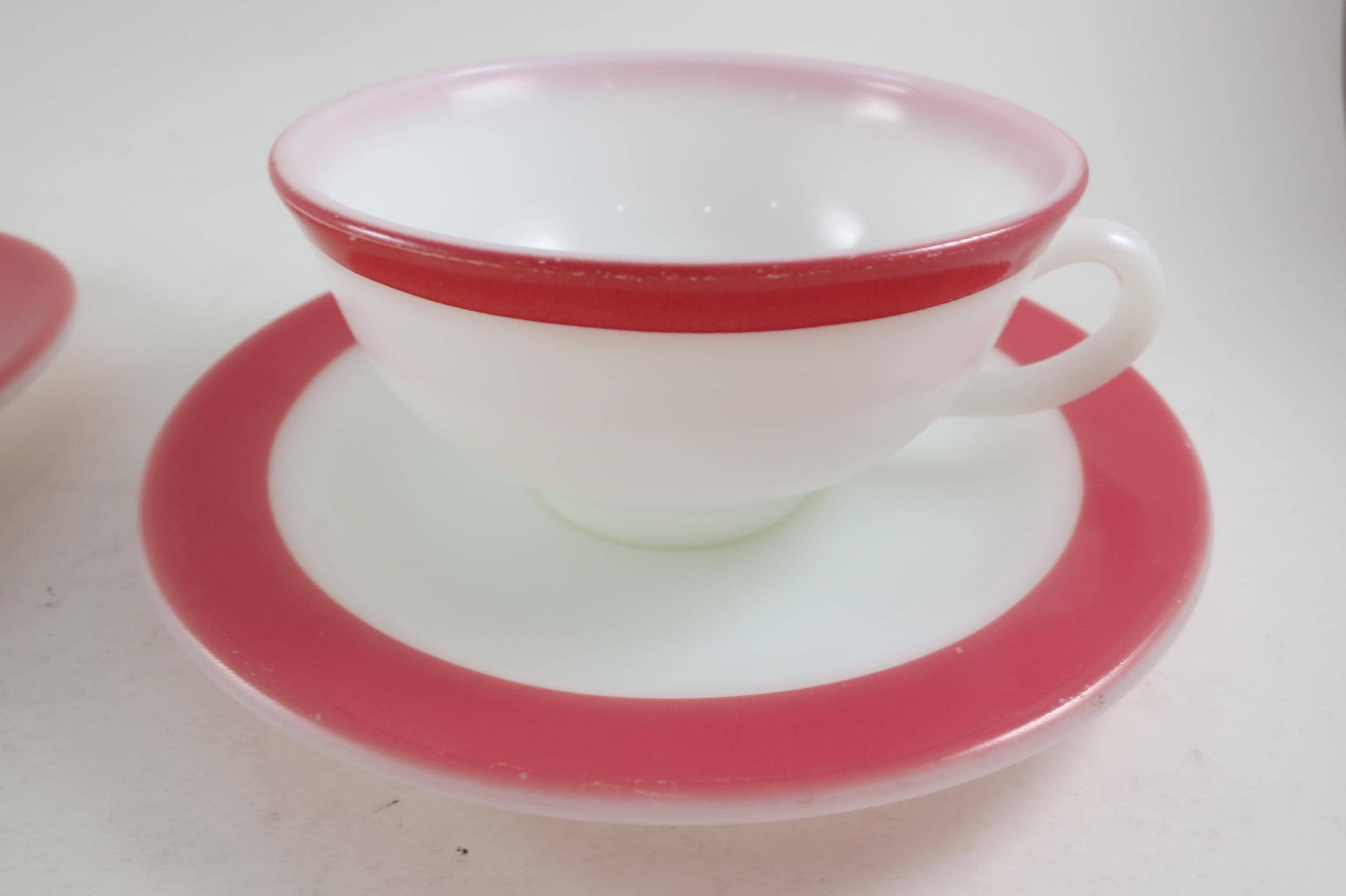Vintage Pyrex Flamingo Pink Milk Glass Cup and Saucer Sets (Set of Four)