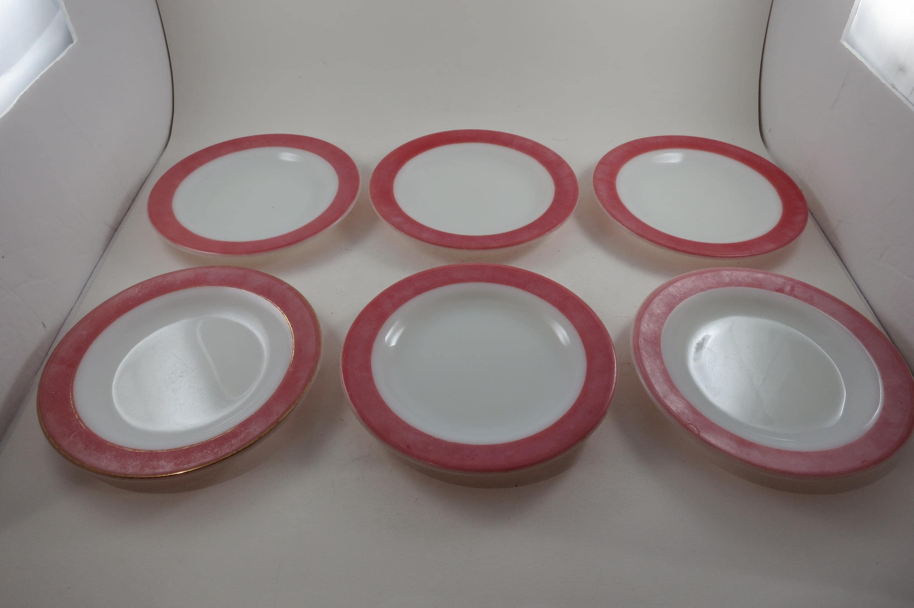 Vintage Pyrex Flamingo Pink Milk Glass Bread Plates, Set of 6 (6 3/4 Inch)