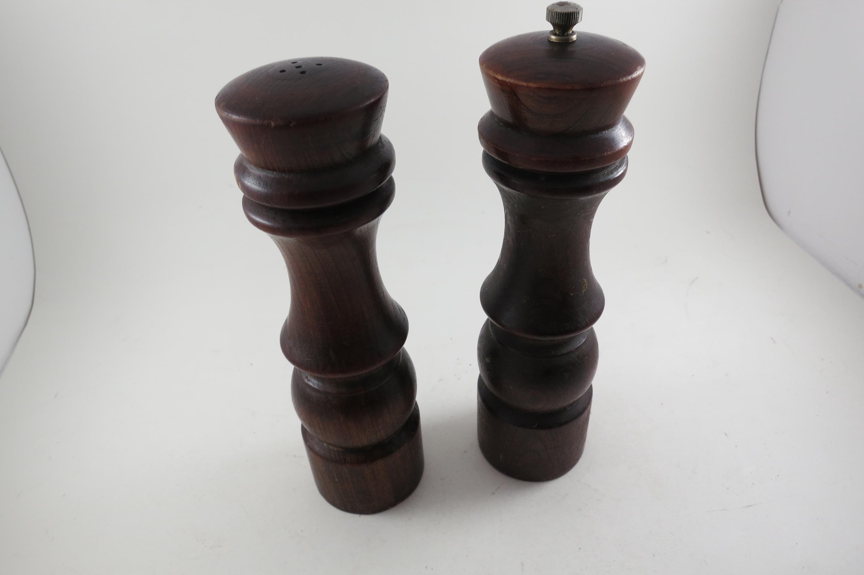 Vintage Goodwood Wooden Salt and Pepper Set 8 Inches Tall. Excellent Condition