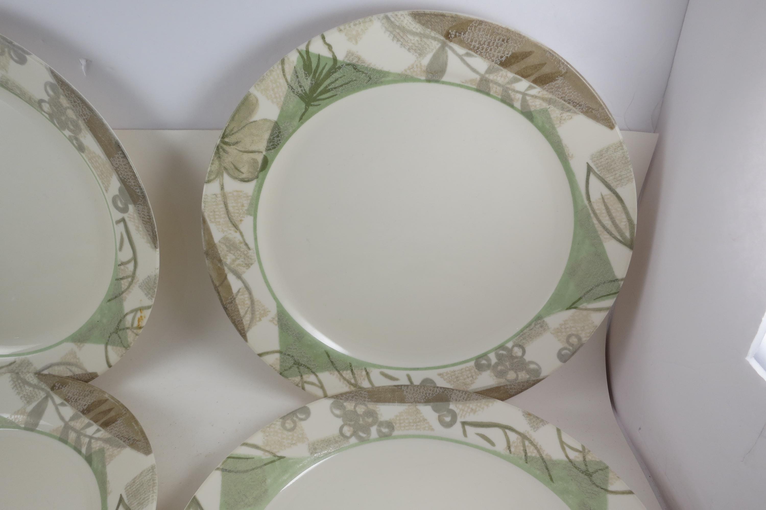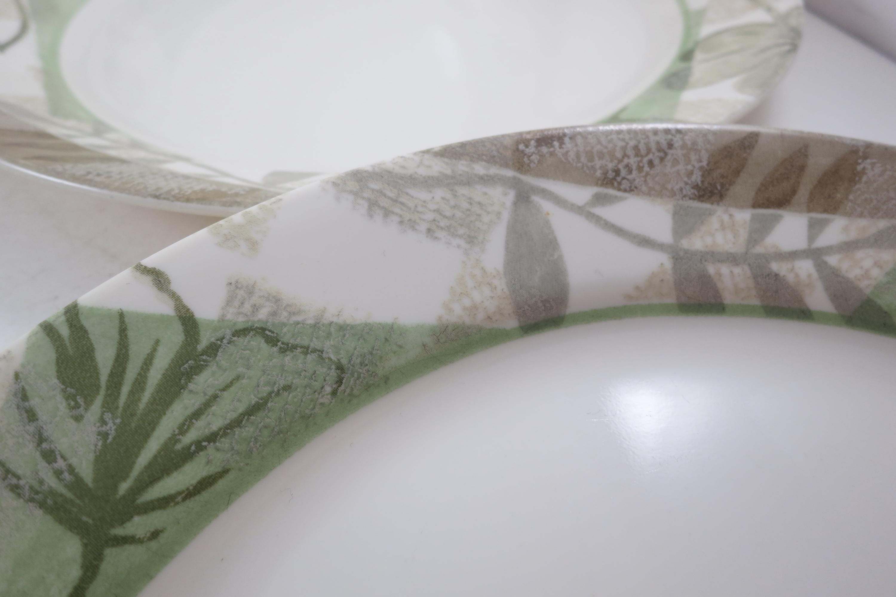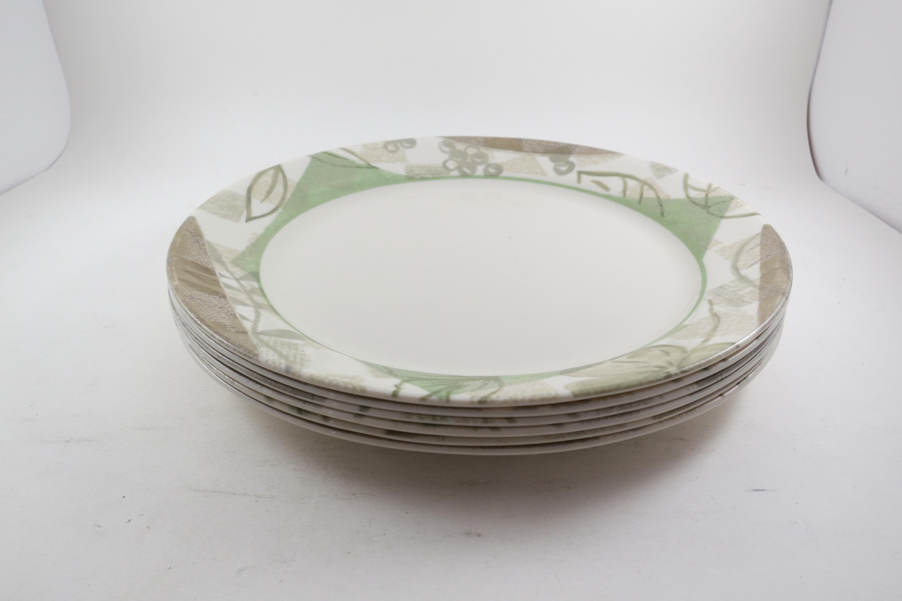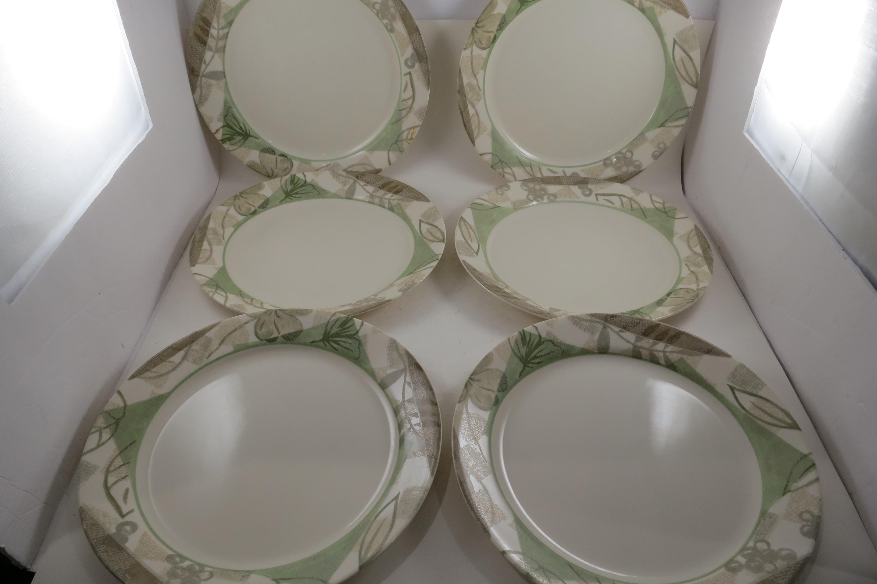 Set of Six Vintage Corelle by Corning Textured Leaves Pattern 10 1/4 Inch Dinner Plates Very Good Used Condition. No chips, cracks or damages, they show only normal use wear.