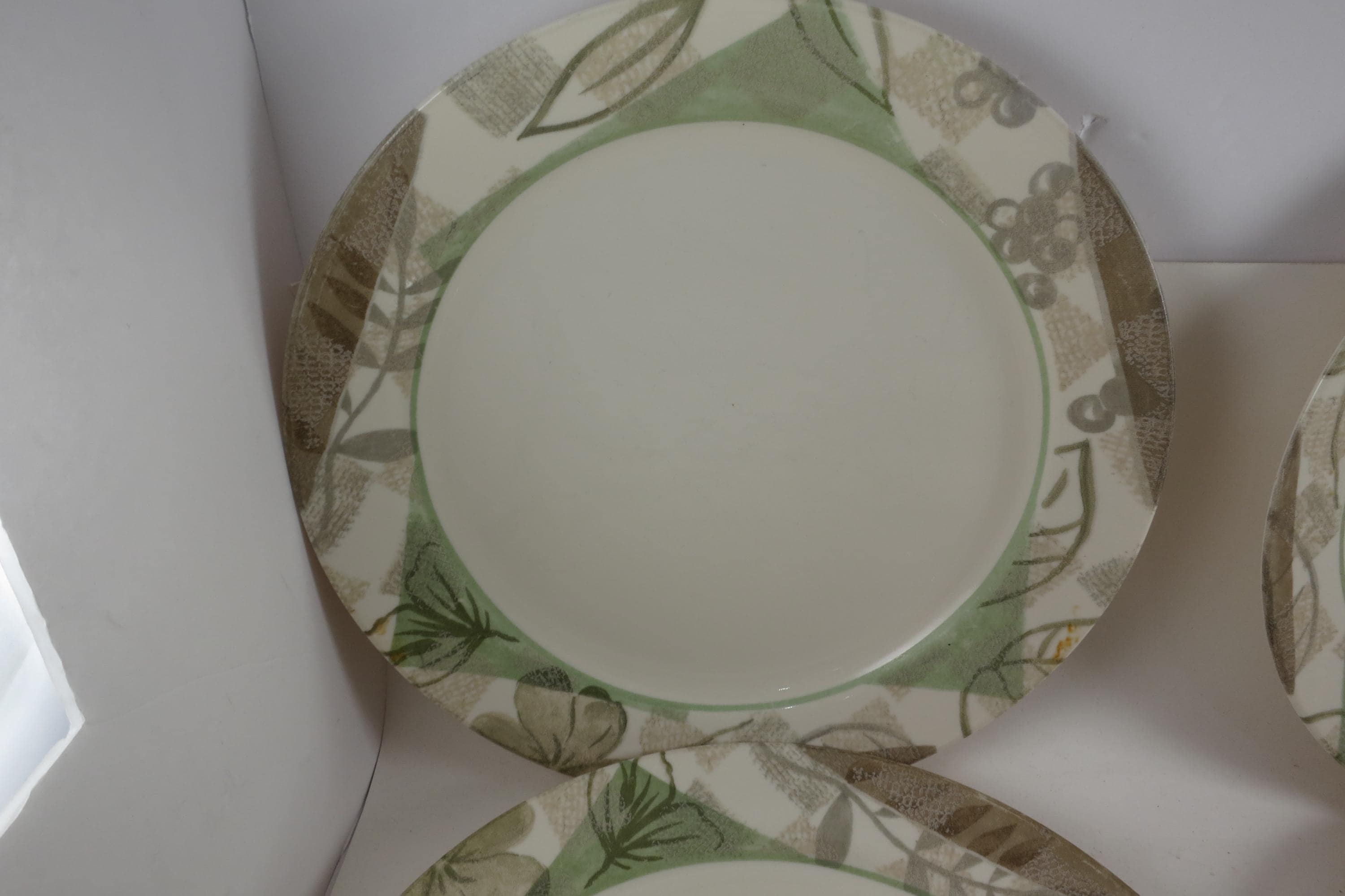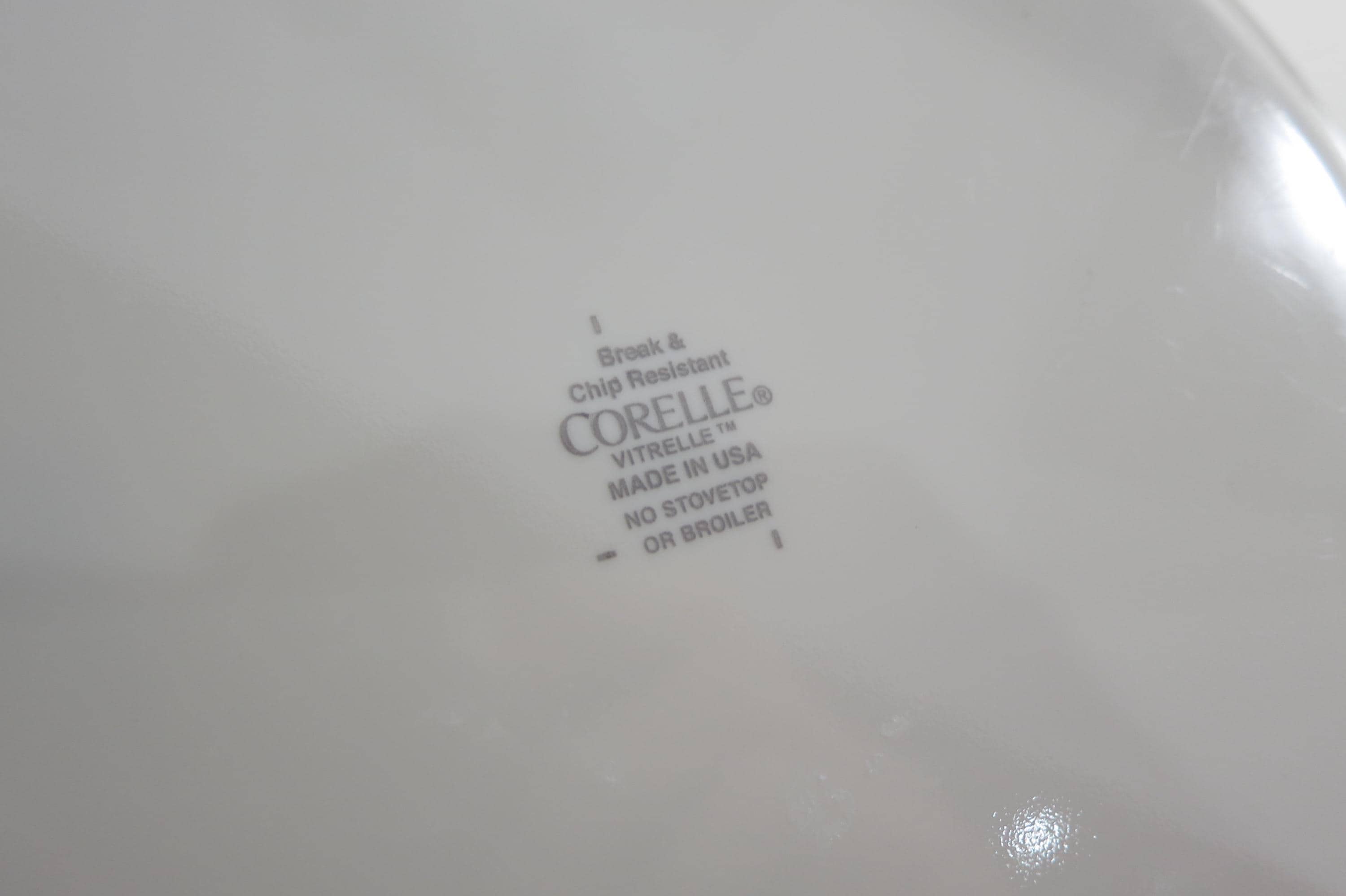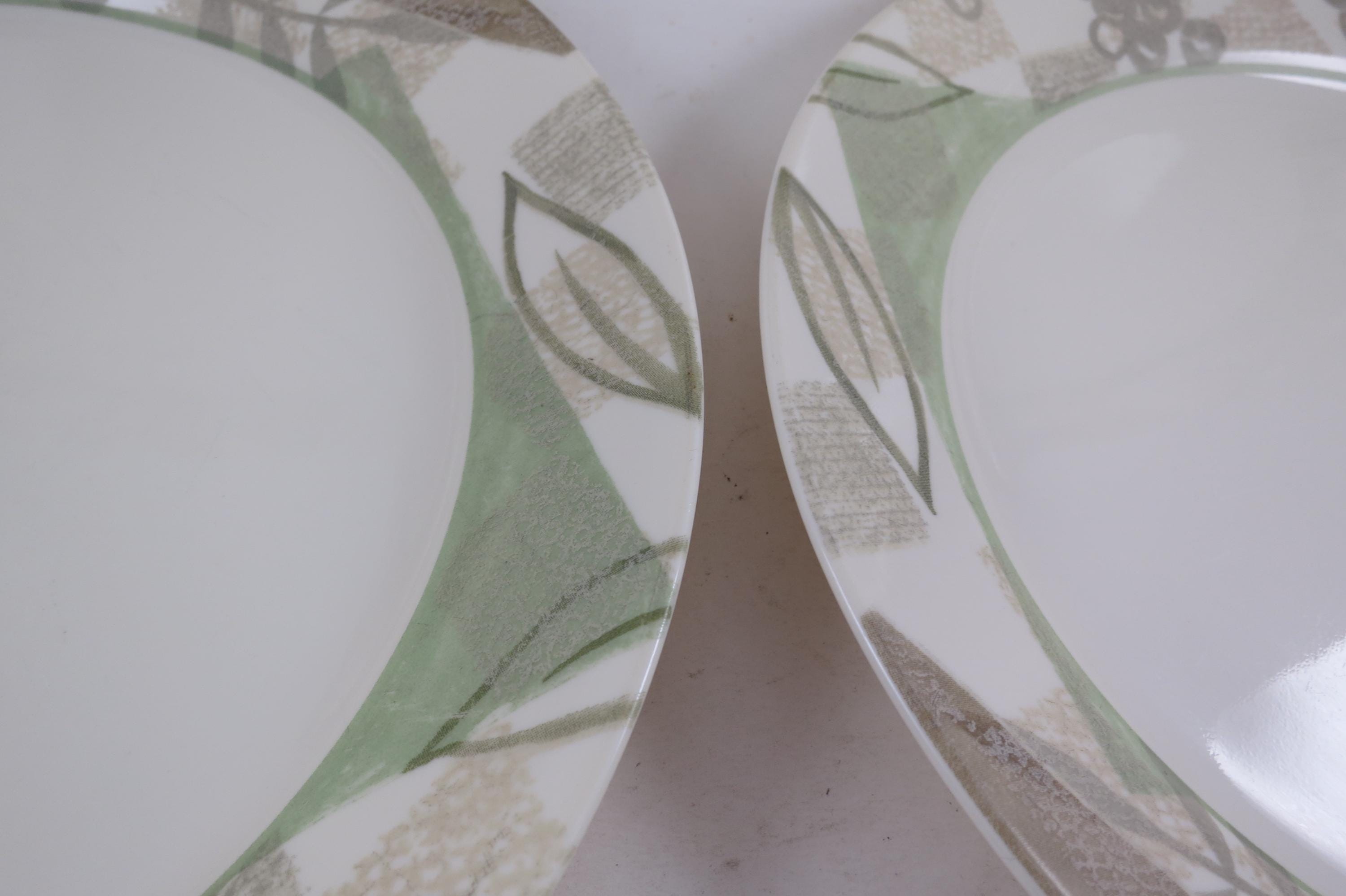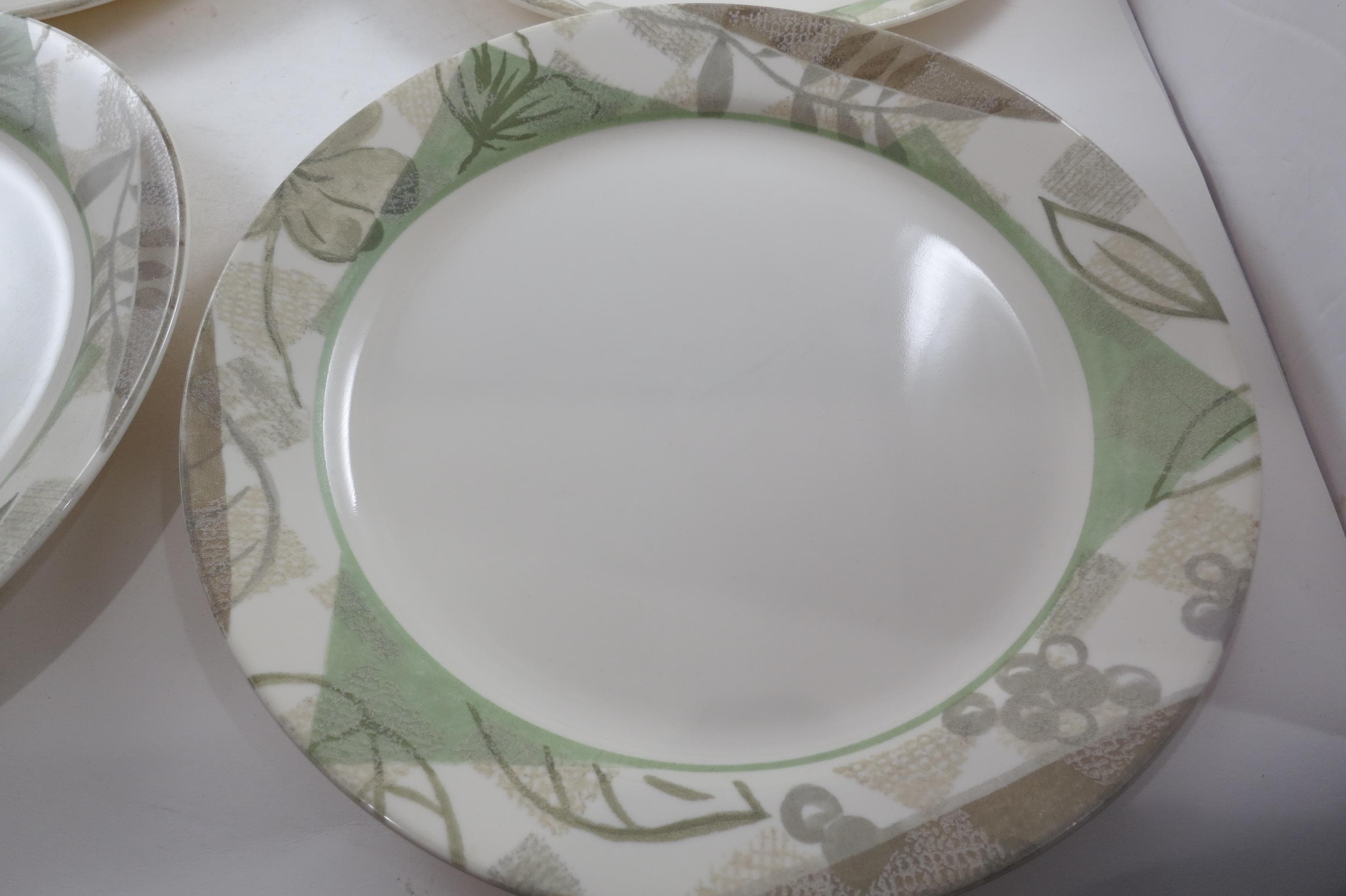 Set of Six Vintage Corelle by Corning Textured Leaves Pattern 10 1/4 Inch Dinner Plates Very Good Used Condition. No chips, cracks or damages, they show only normal use wear.