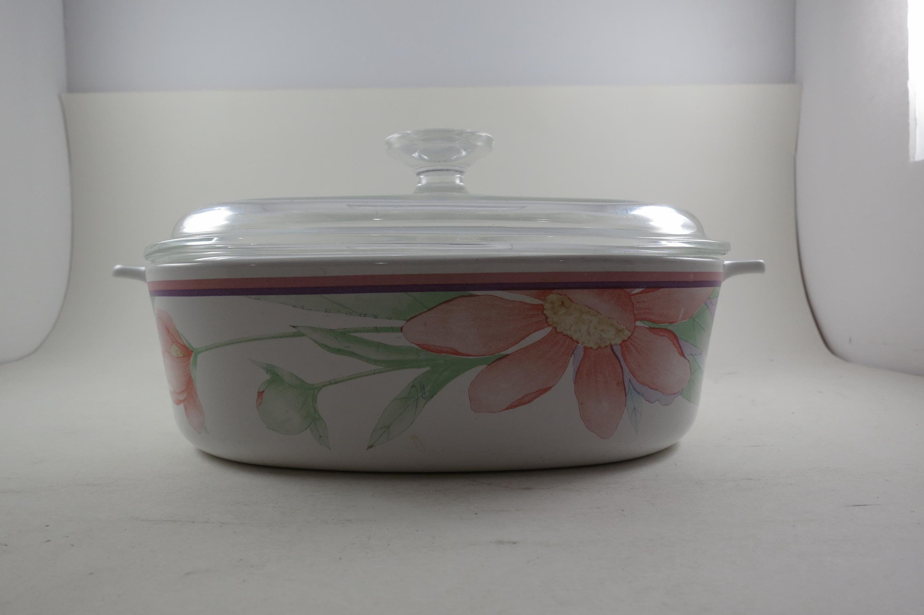 Vintage 1989 Corning Ware Peony Pattern 2 Quart Saucepan with Glass Lid