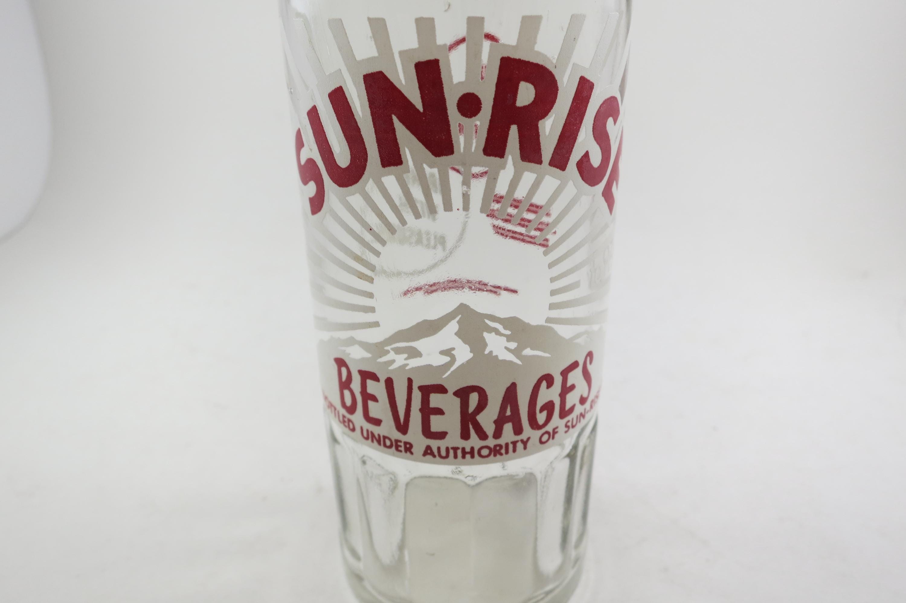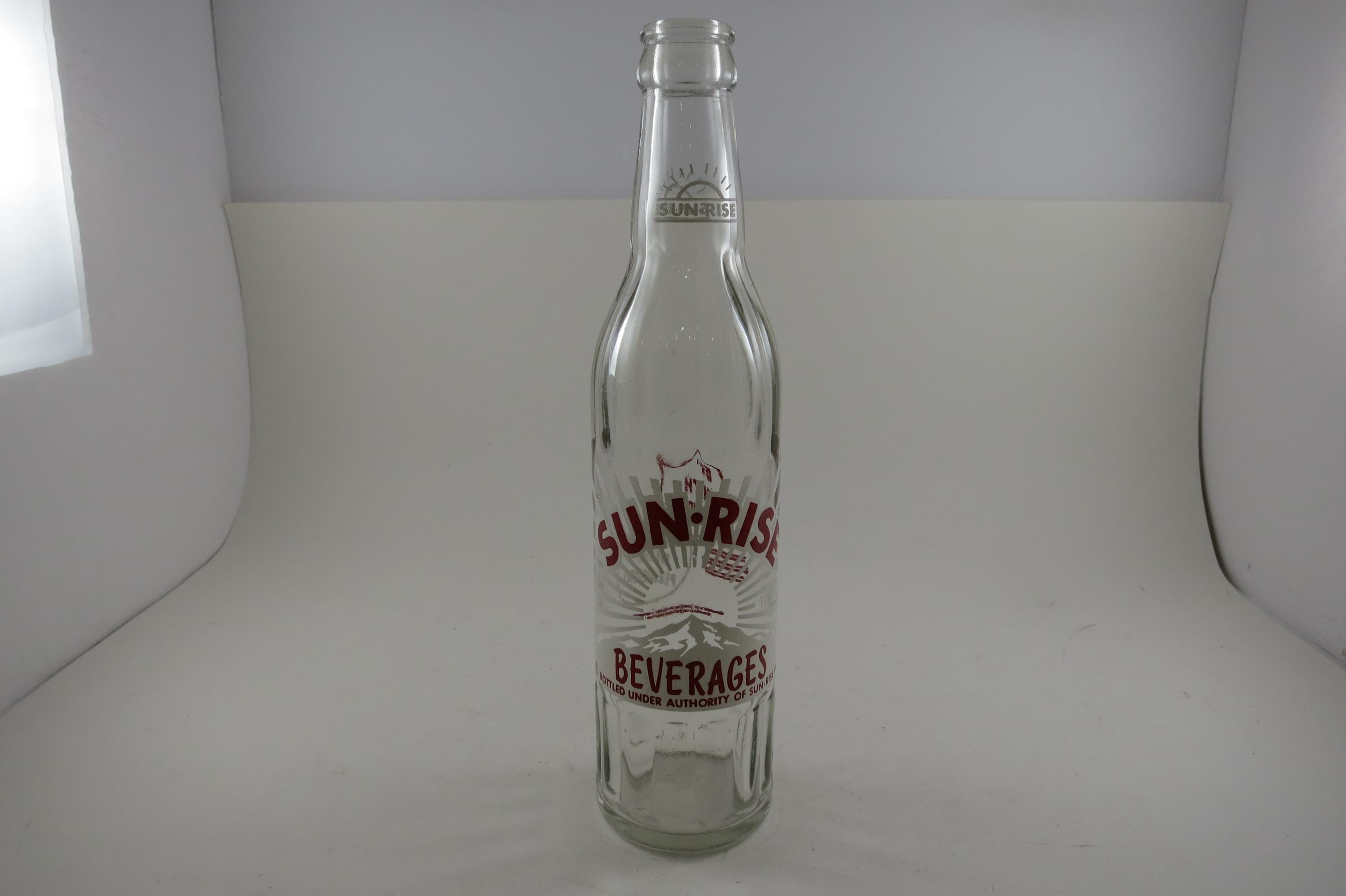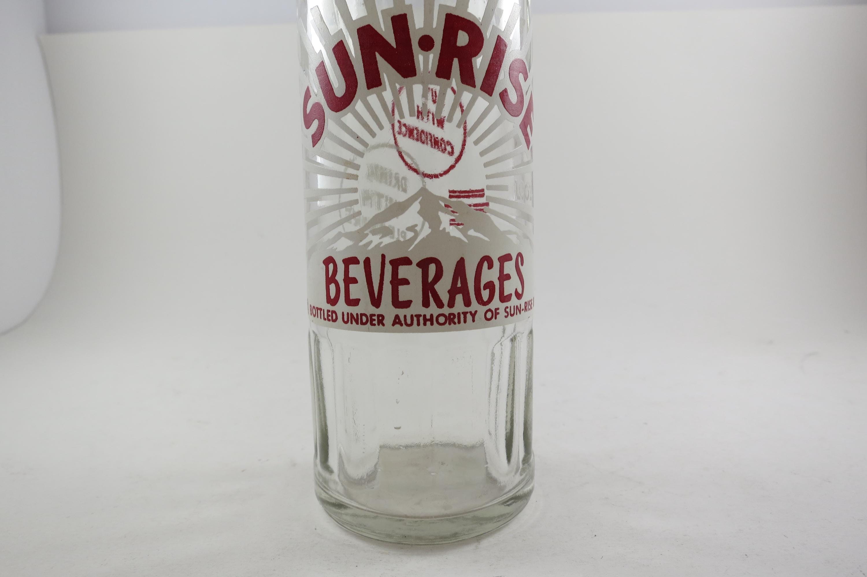 Vintage Sunrise Beverages 10 Inch 1960s Soda Bottle. Measures 10 Inches Tall with no damages.