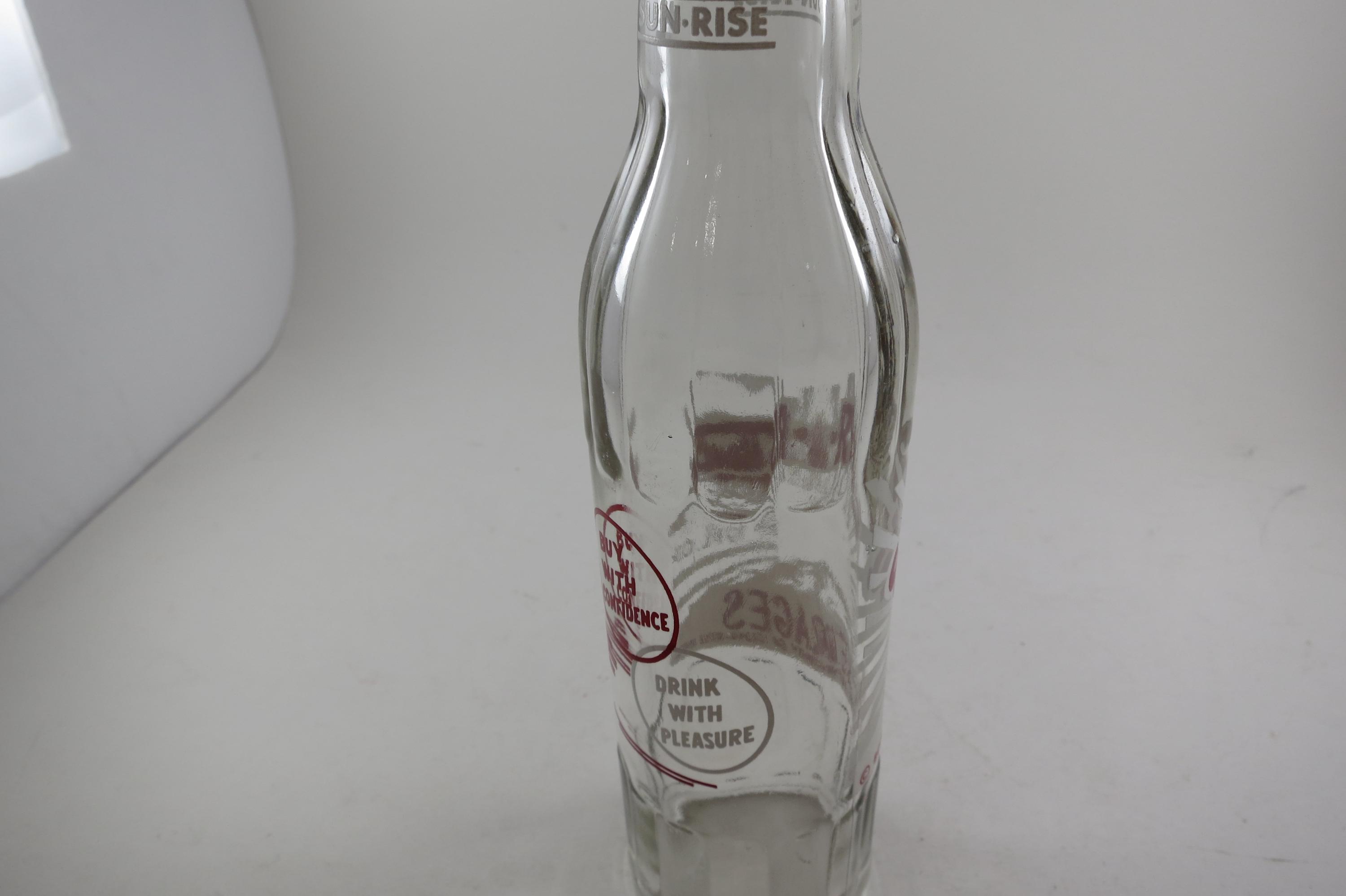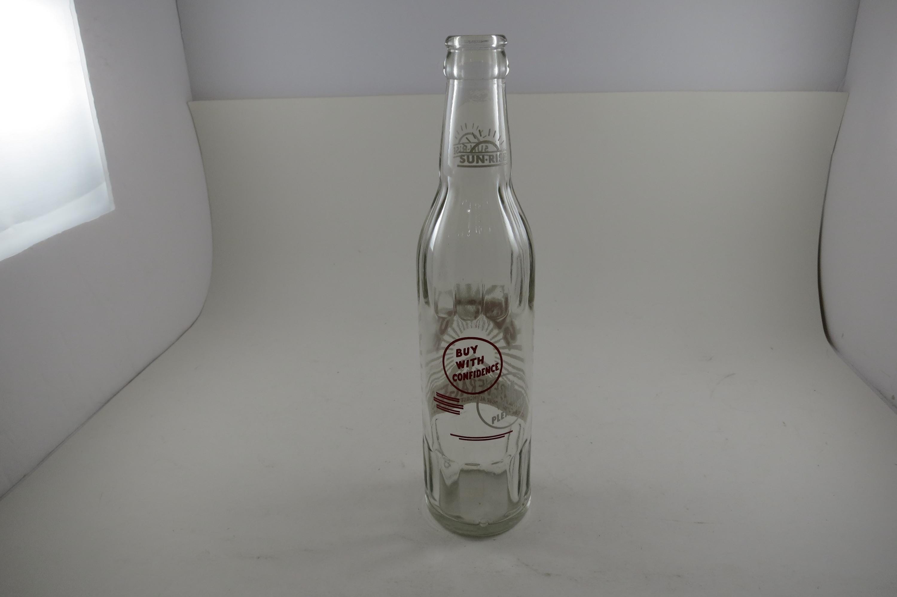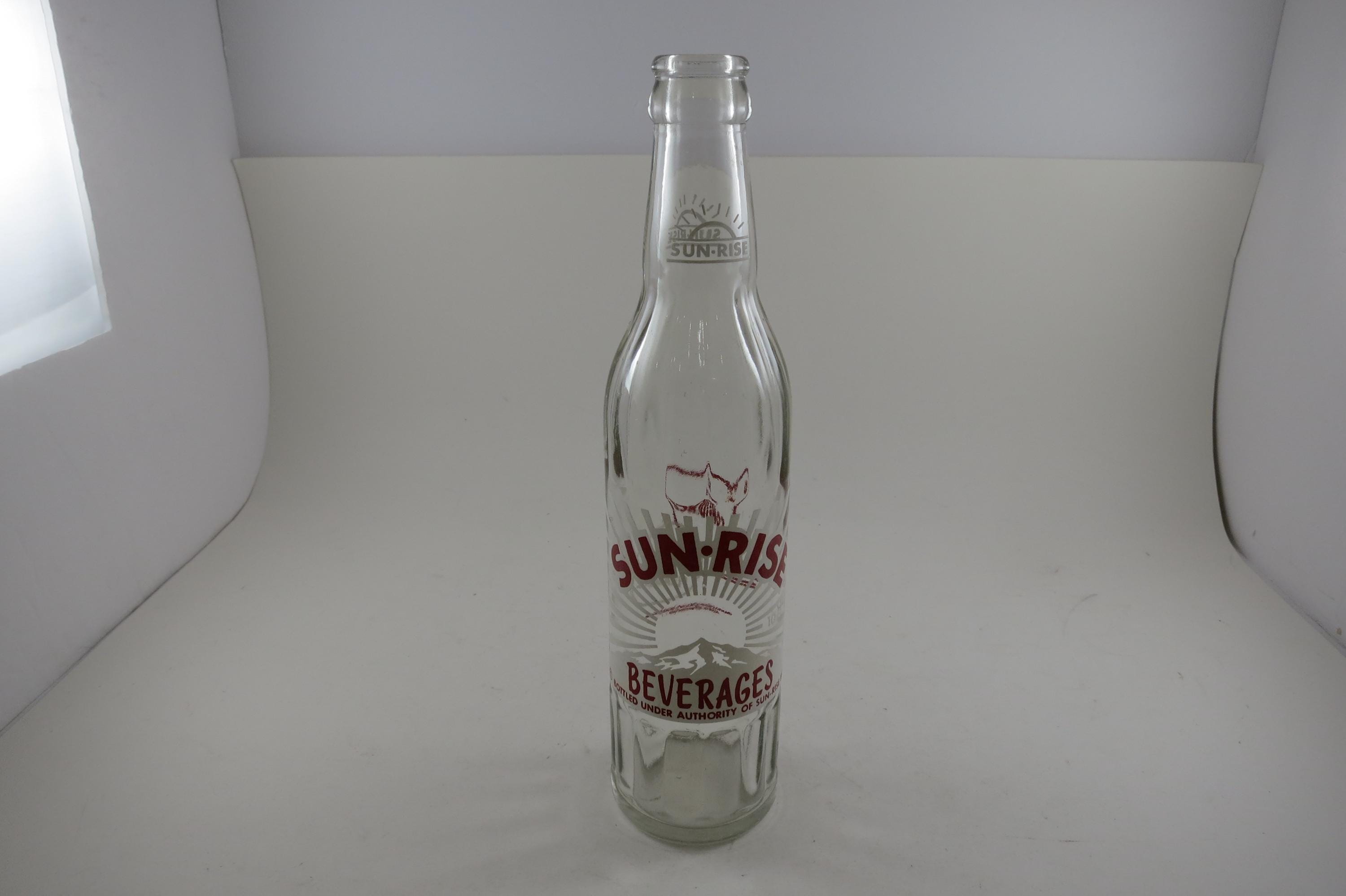 Vintage Sunrise Beverages 10 Inch 1960s Soda Bottle. Measures 10 Inches Tall with no damages.