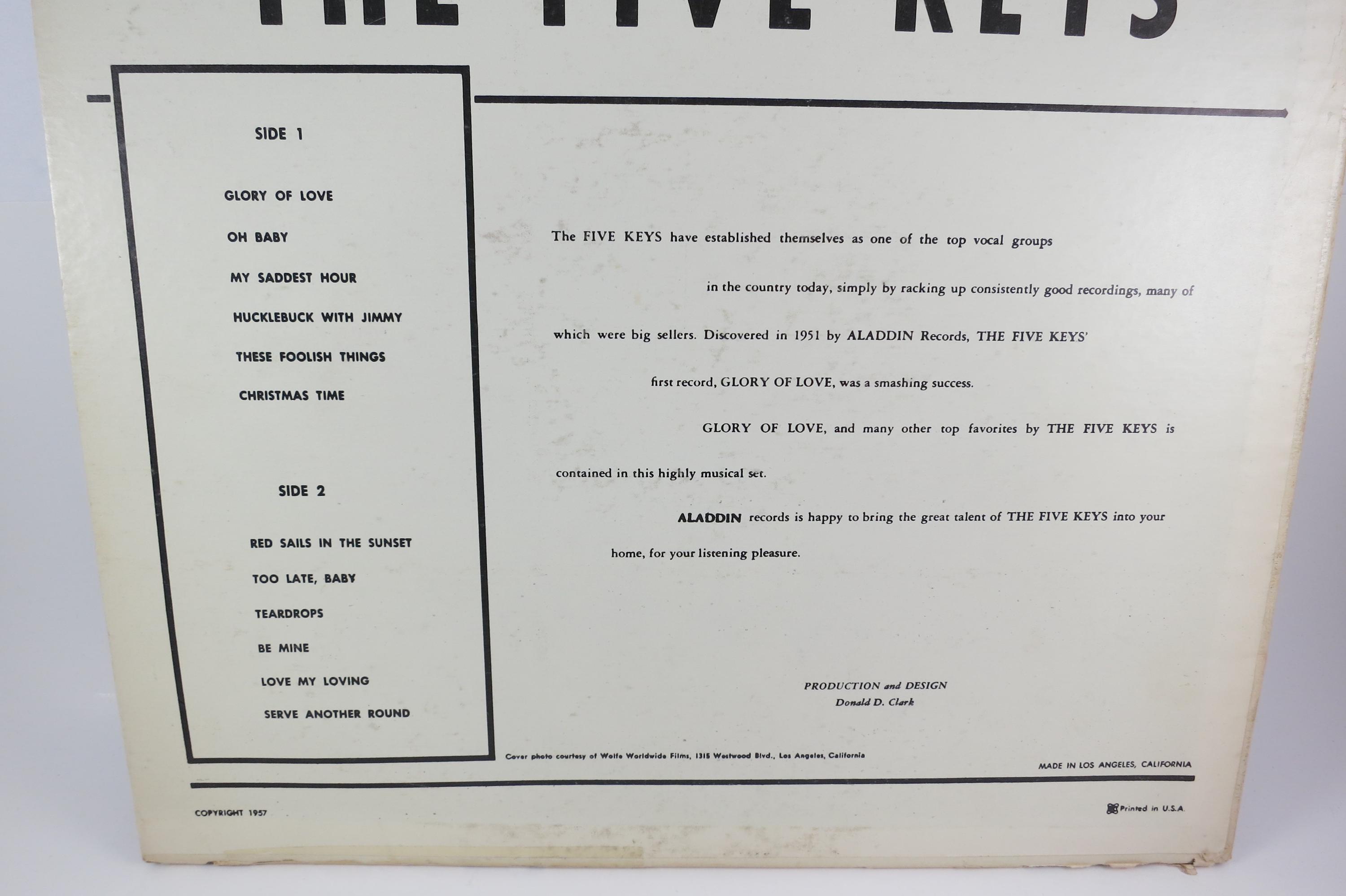 Rare Vintage 1956 Vinyl LP Funk Soul Record The Five Keys-On The Town Very Good Condition.