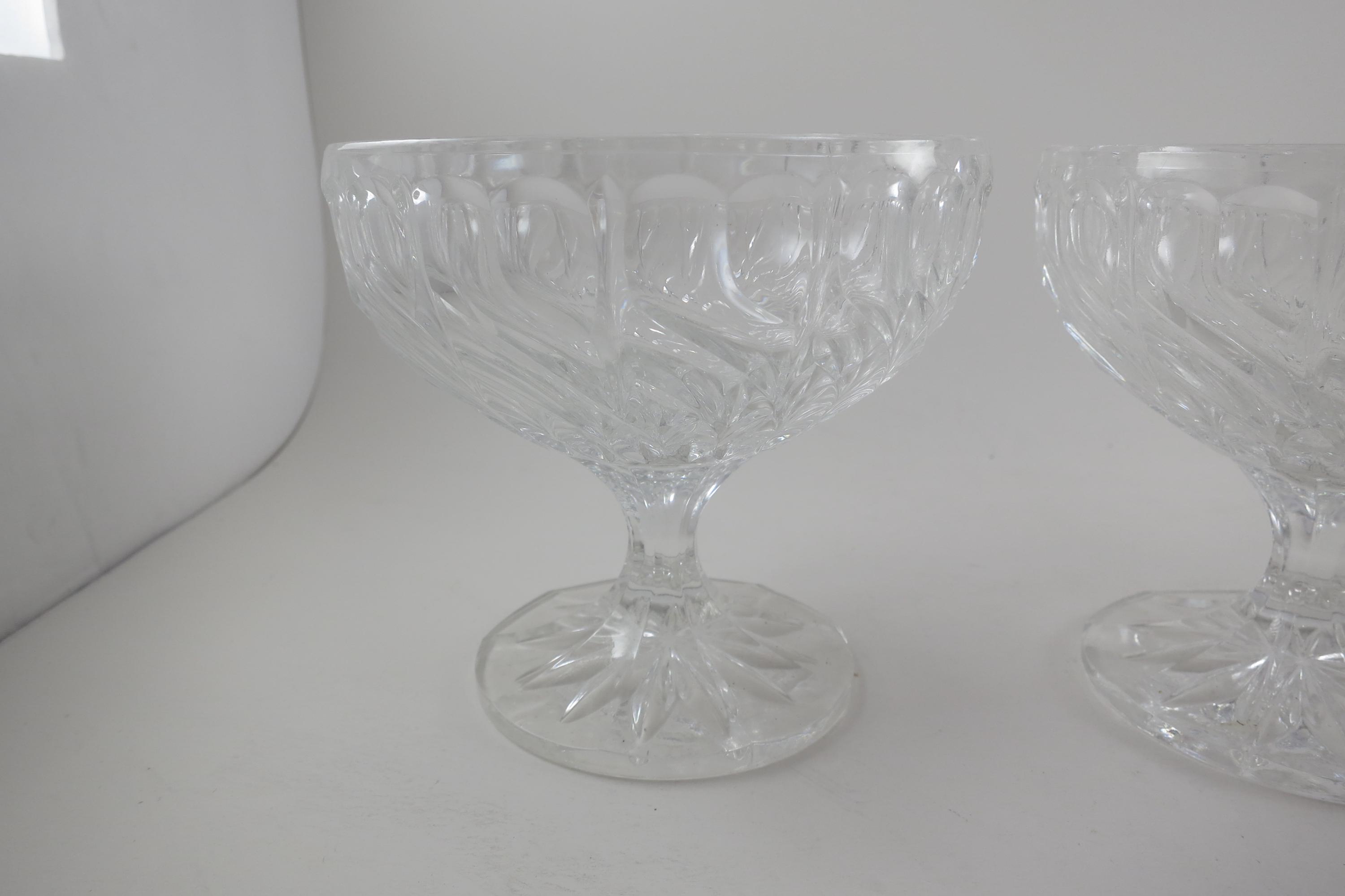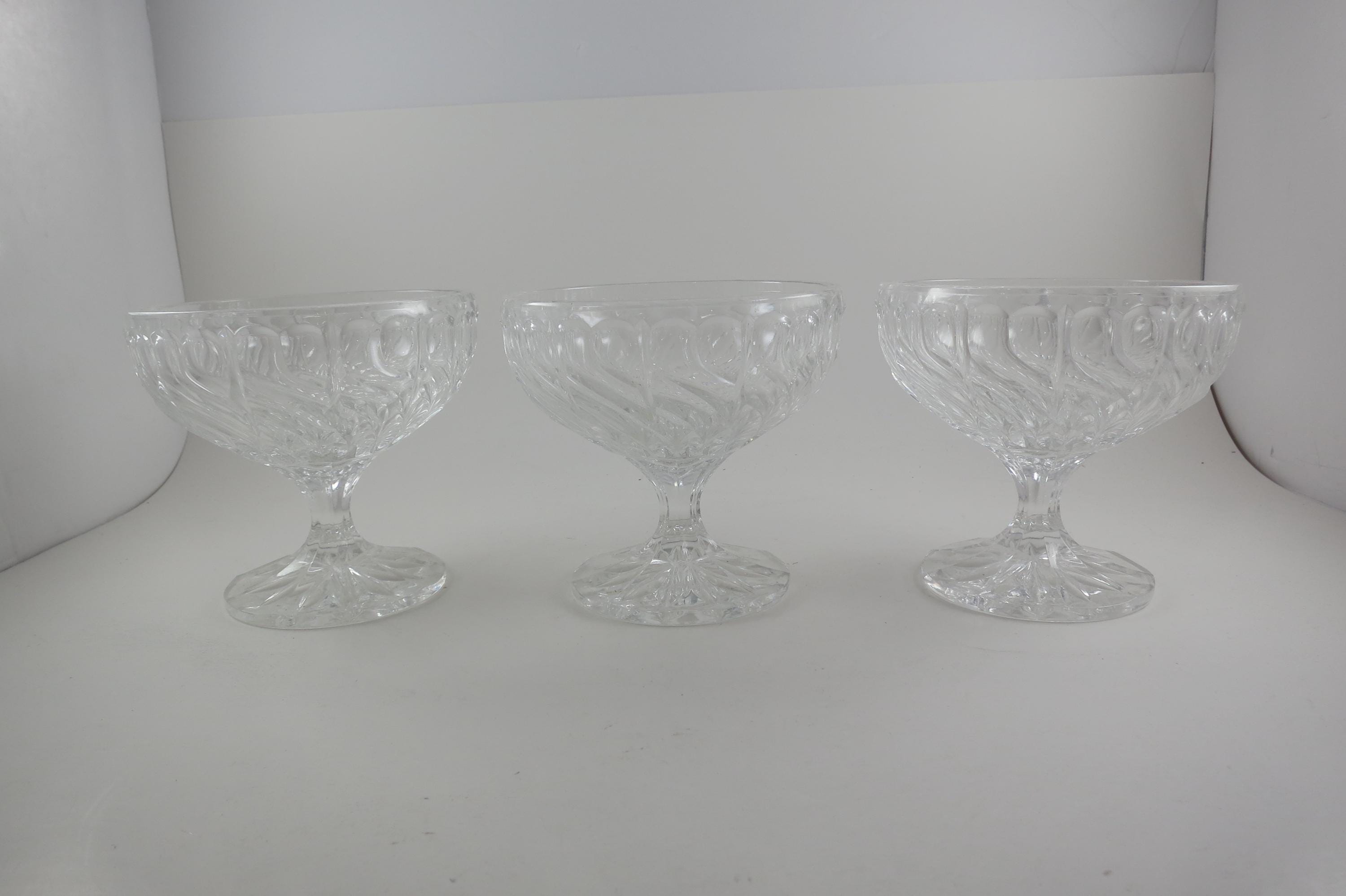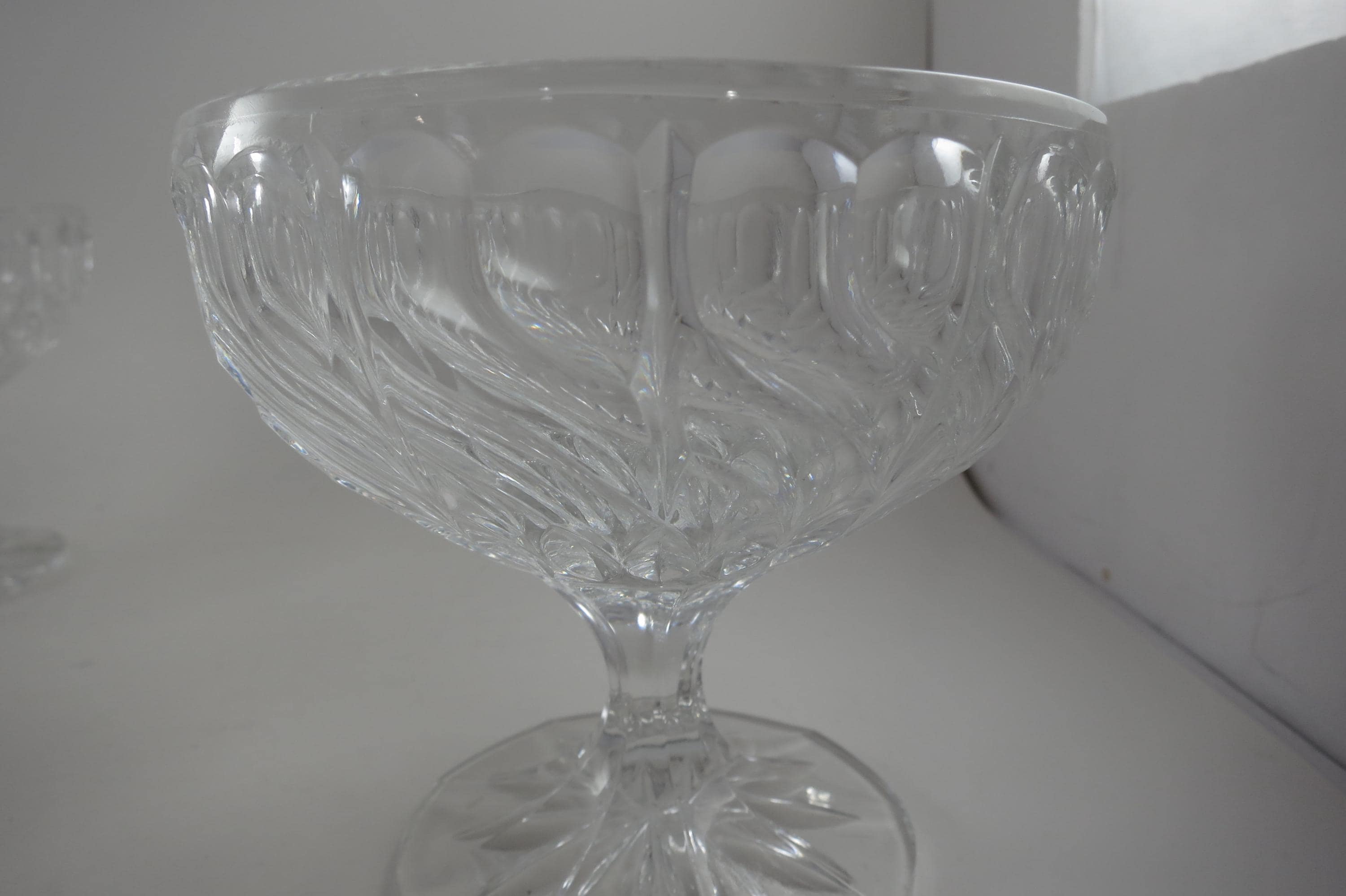 Set of Three 4 1/4 Inch Crystal Champagne Glasses Pristine Condition. These measure 4 1/4 inches tall and look great in almost any setting. This listing is for a set of three glasses, all in pristine condition.