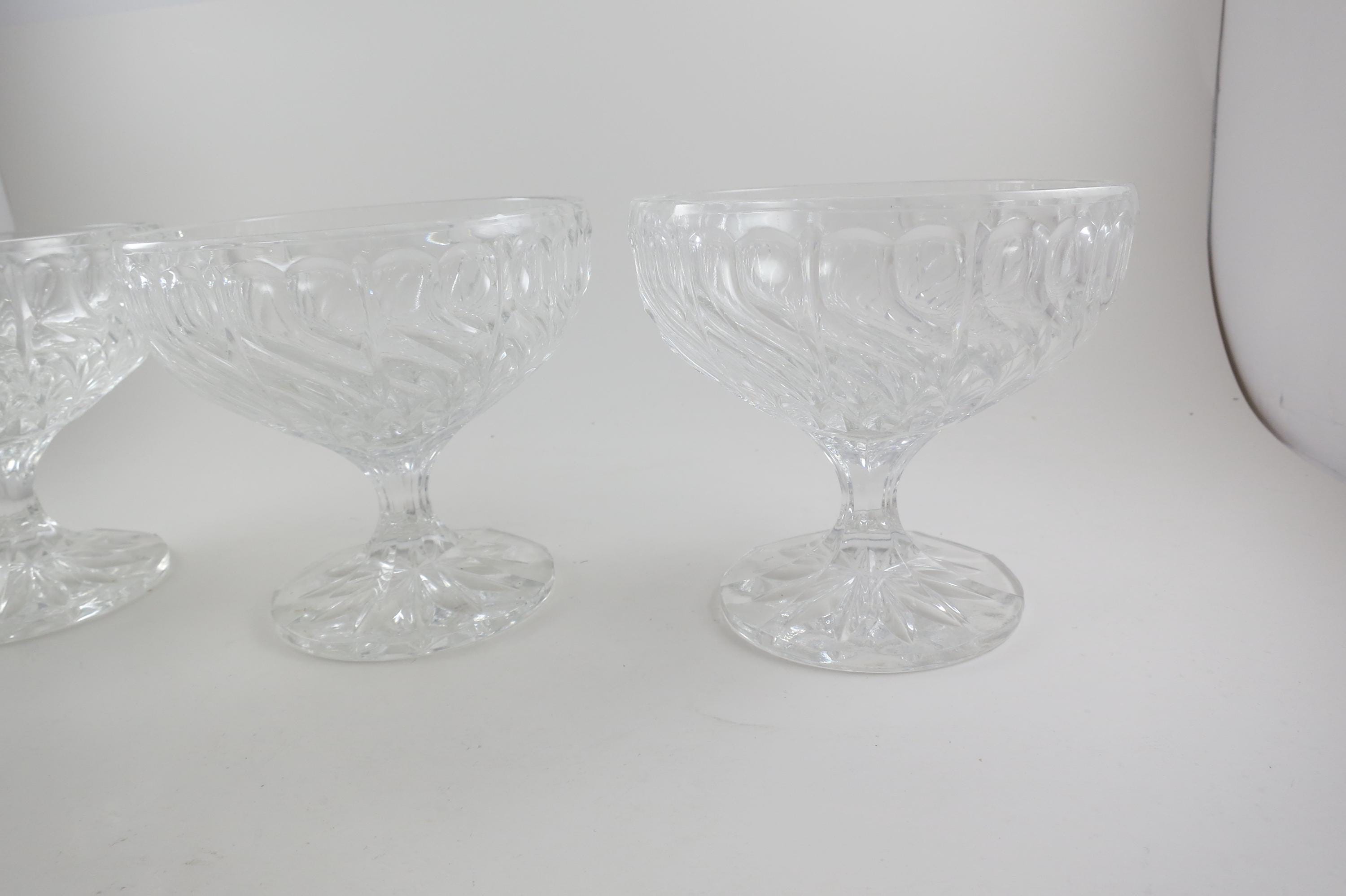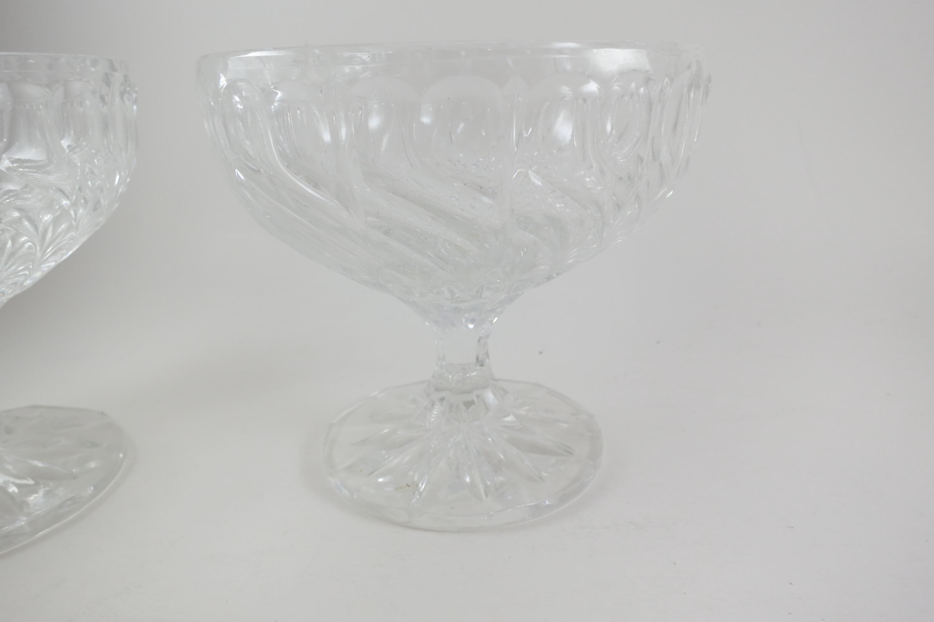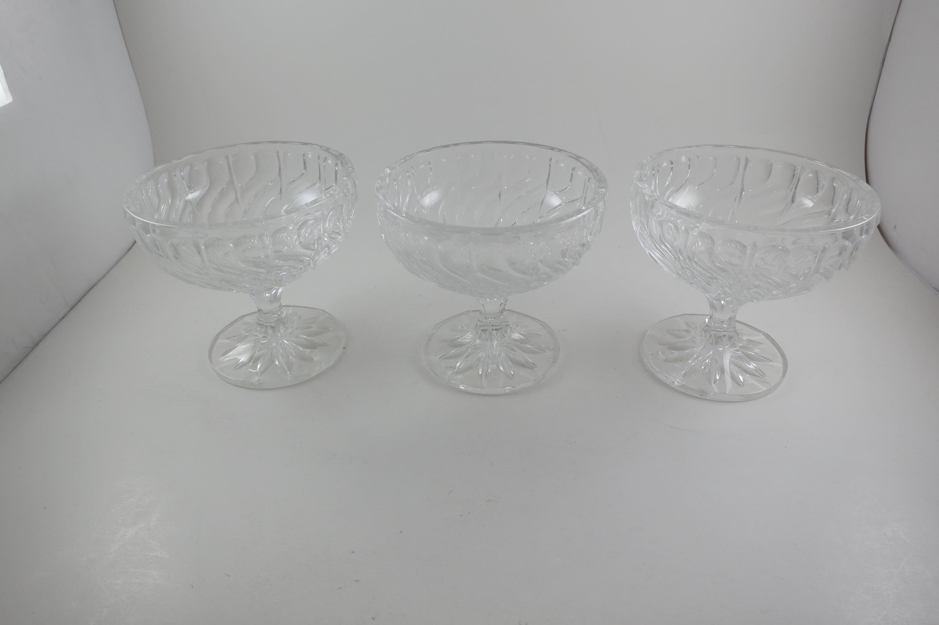Set of Three 4 1/4 Inch Crystal Champagne Glasses Pristine Condition. These measure 4 1/4 inches tall and look great in almost any setting. This listing is for a set of three glasses, all in pristine condition.