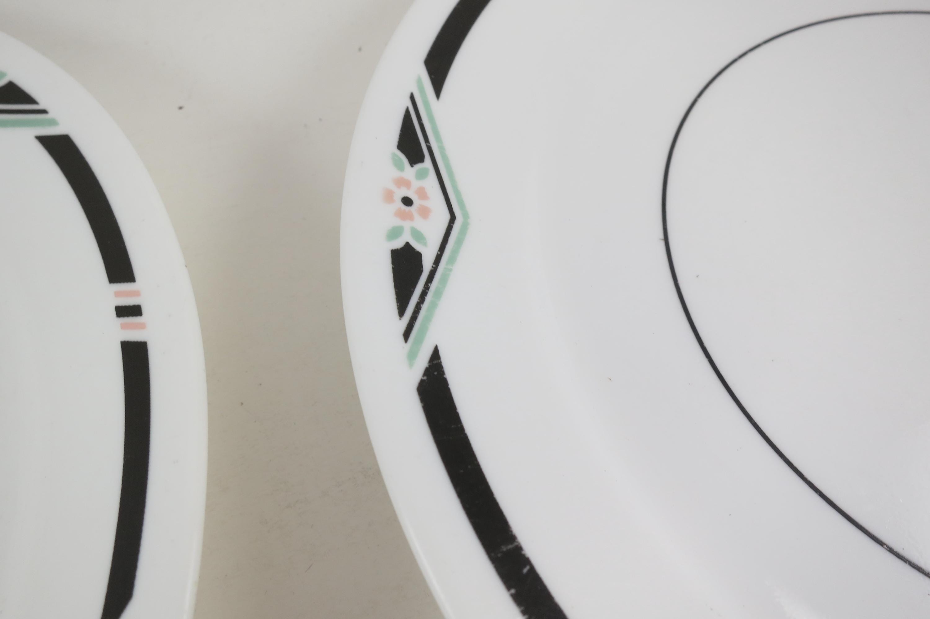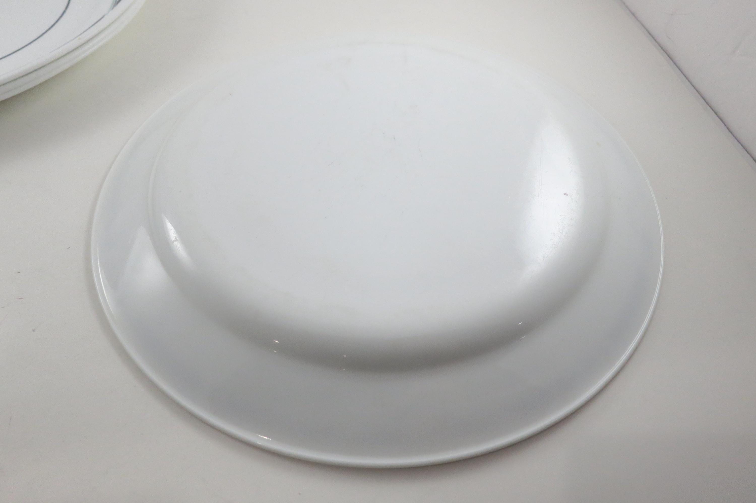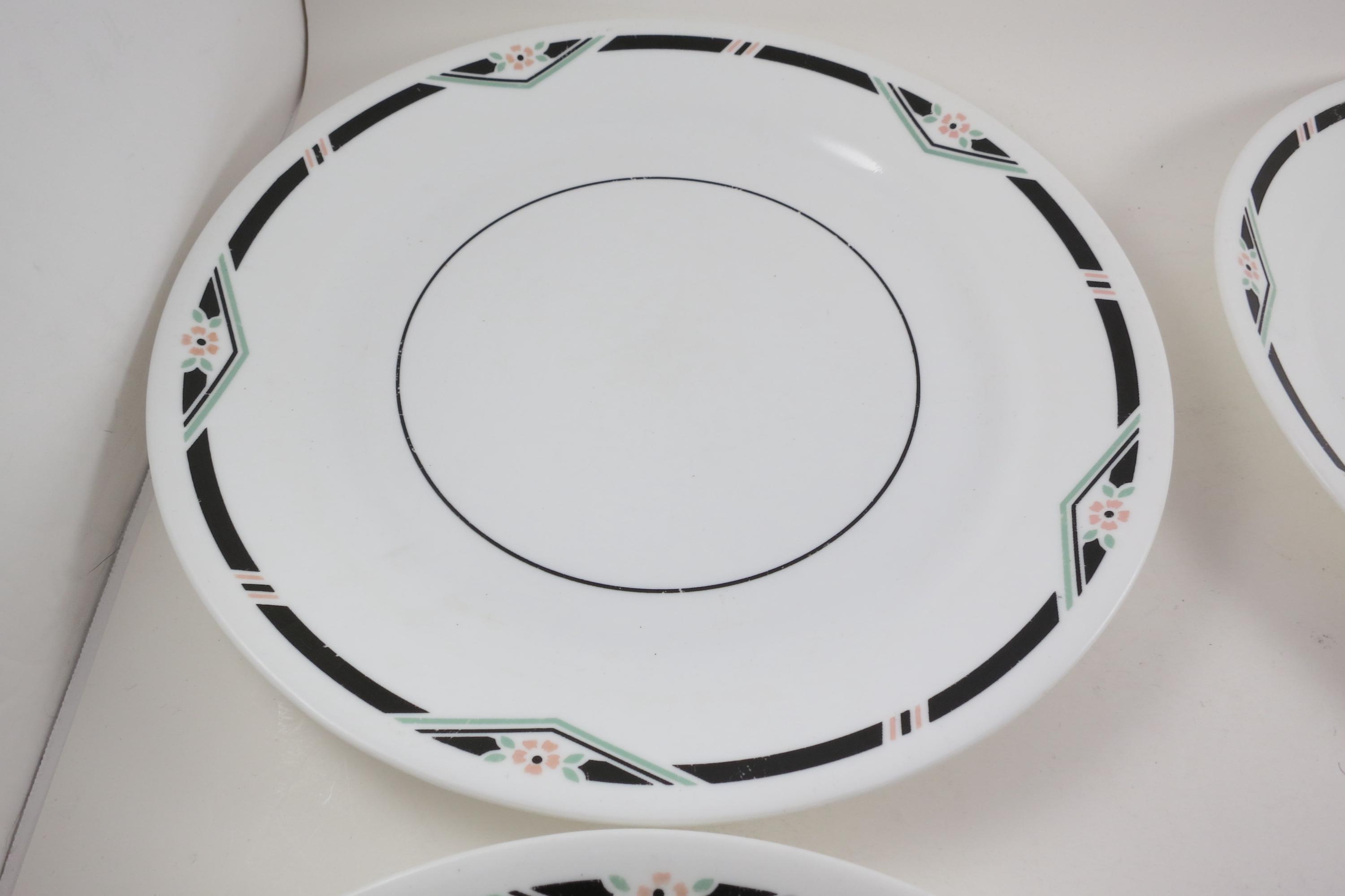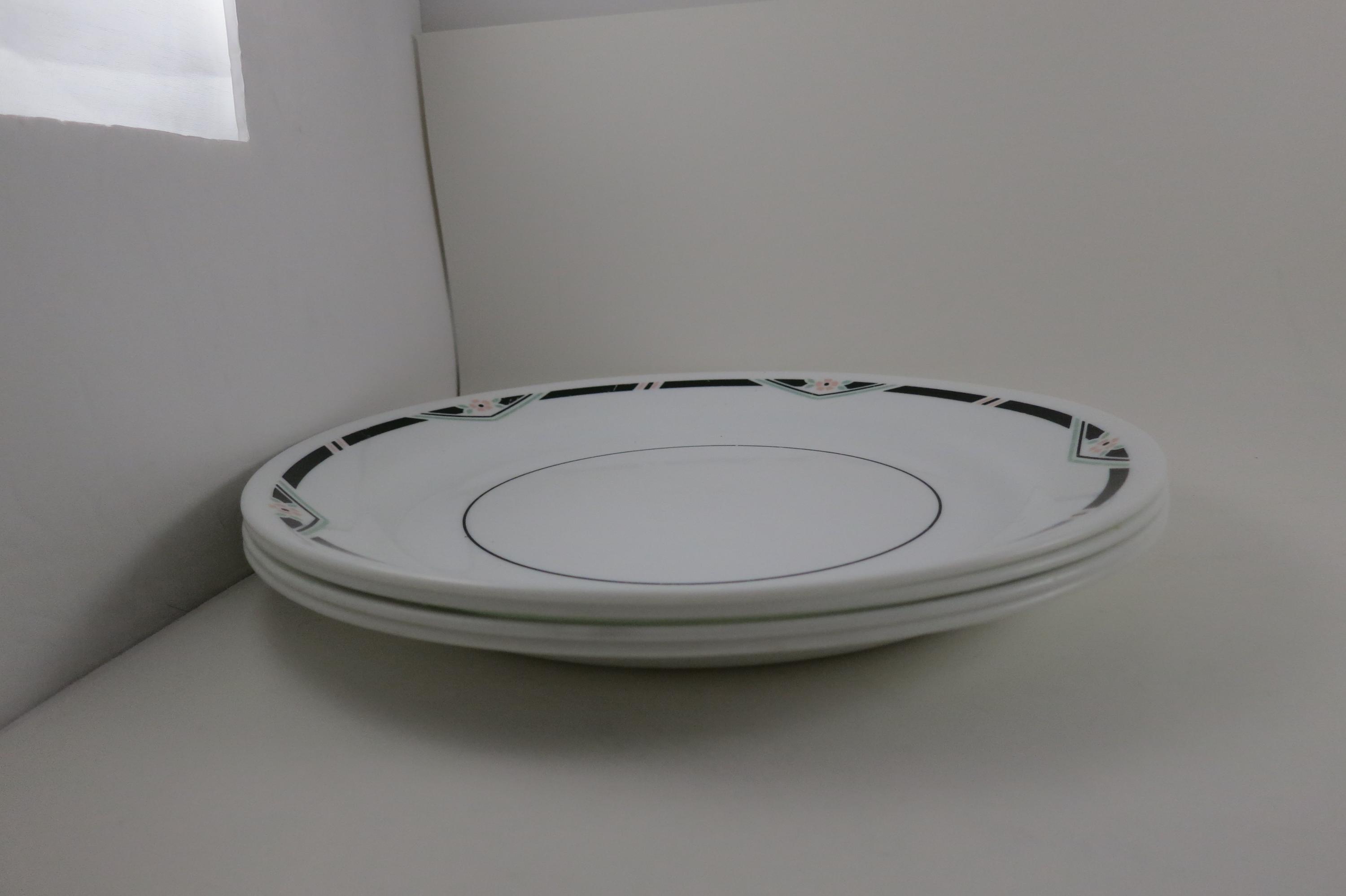 Set of Four Vintage Corelle by Corning Zenith Black 10 1/4 Inch Dinner Plates Very Good Used Condition. No chips, cracks or damages, they do have marks from flatware.