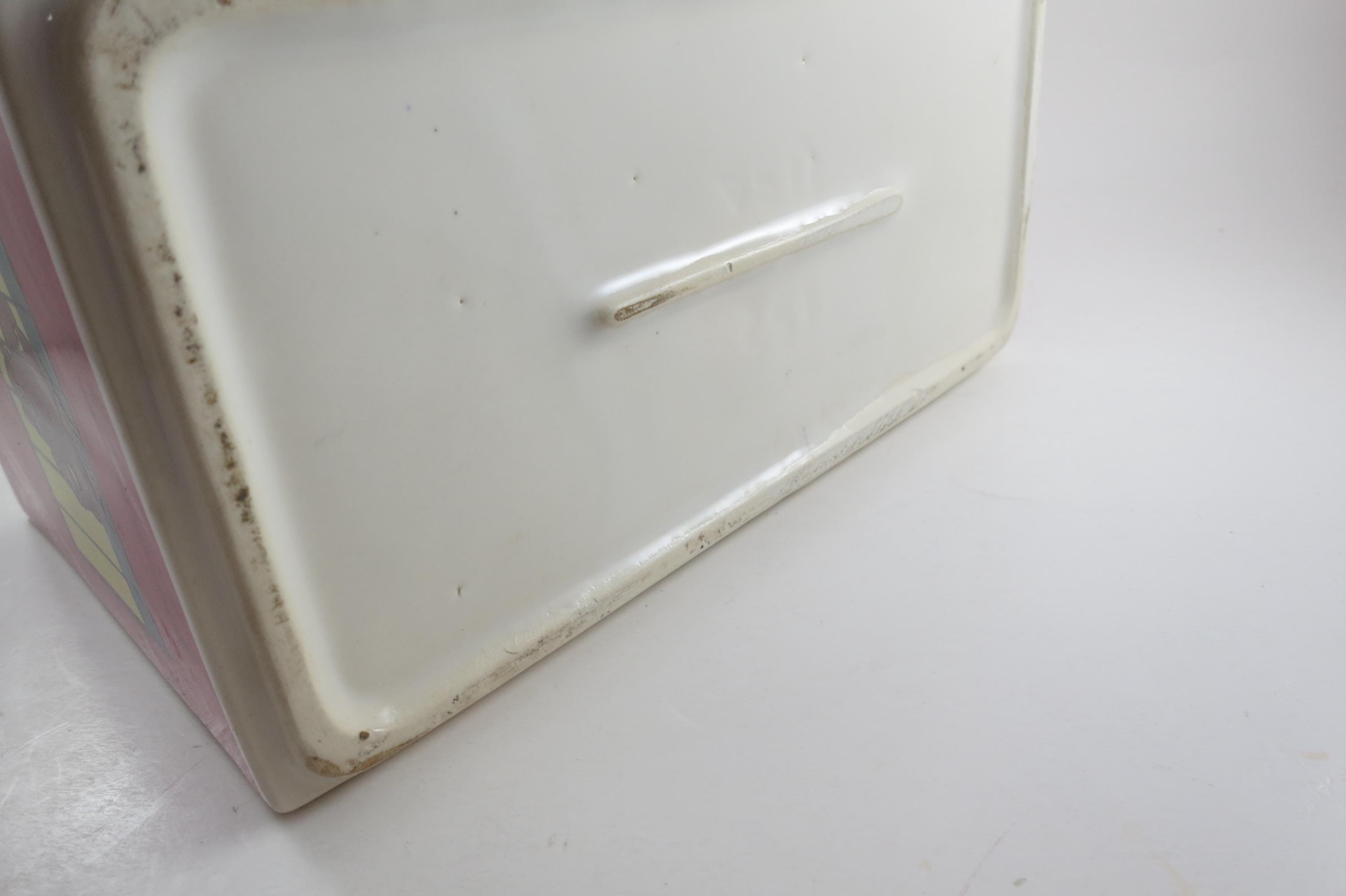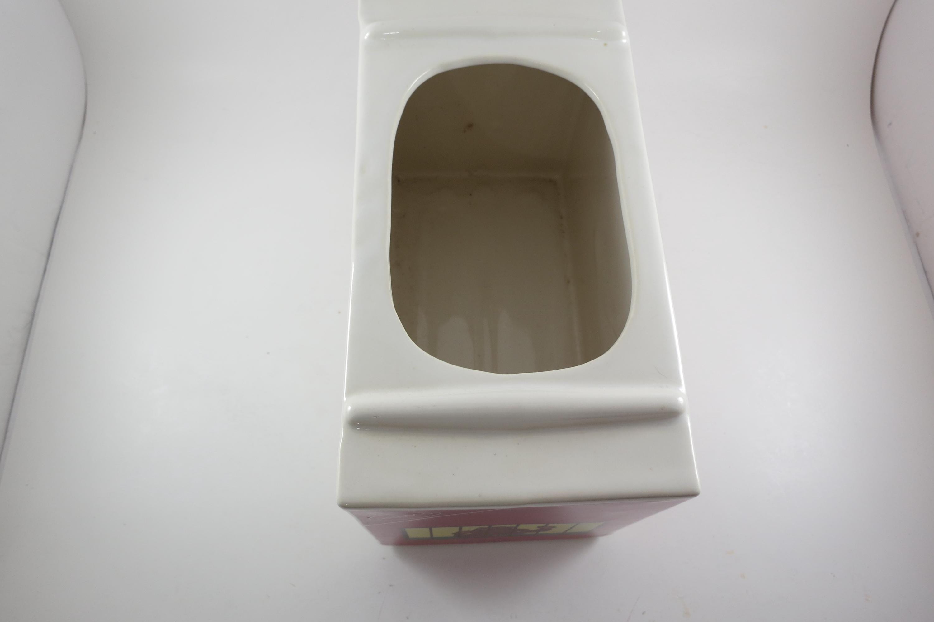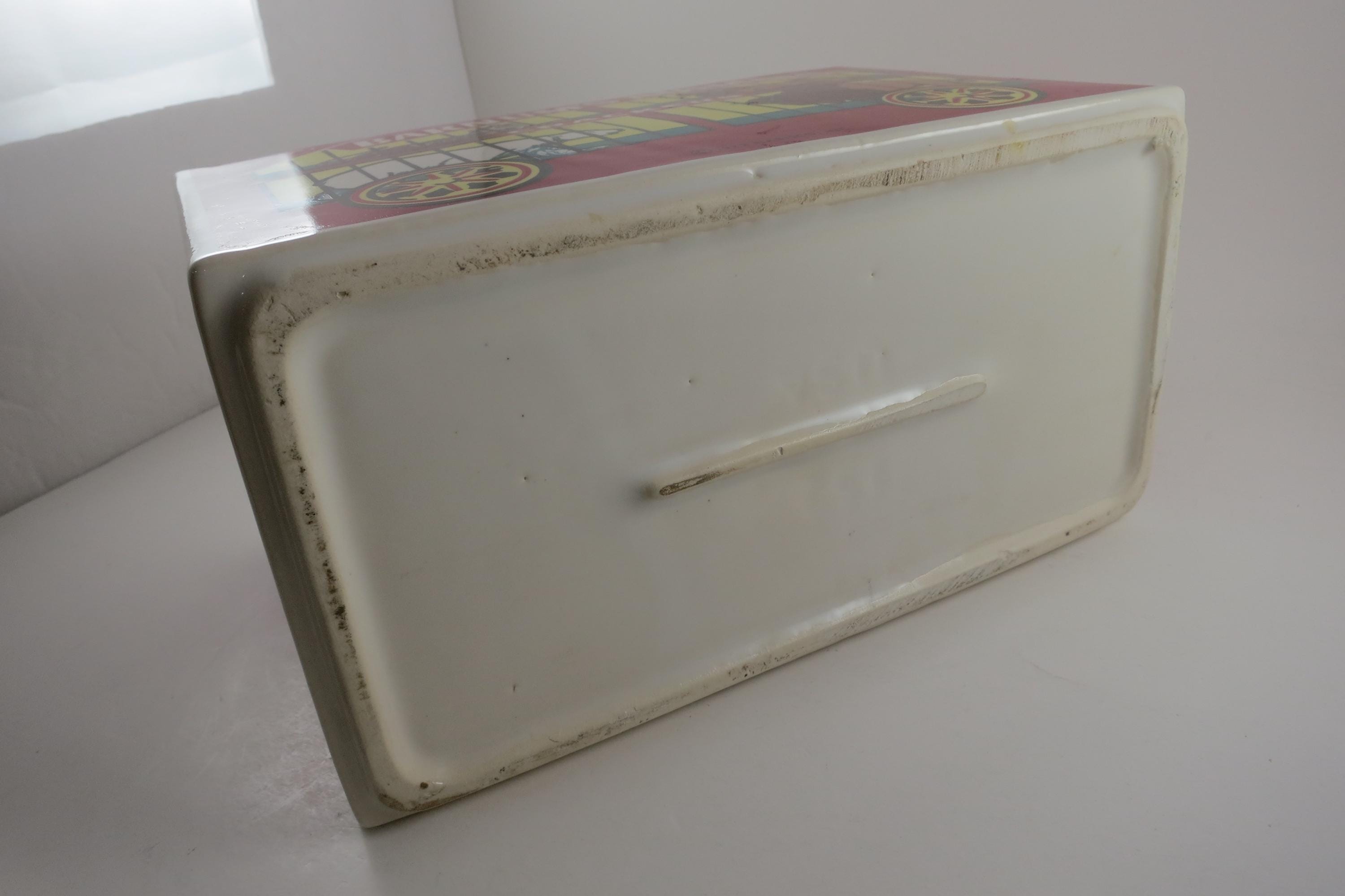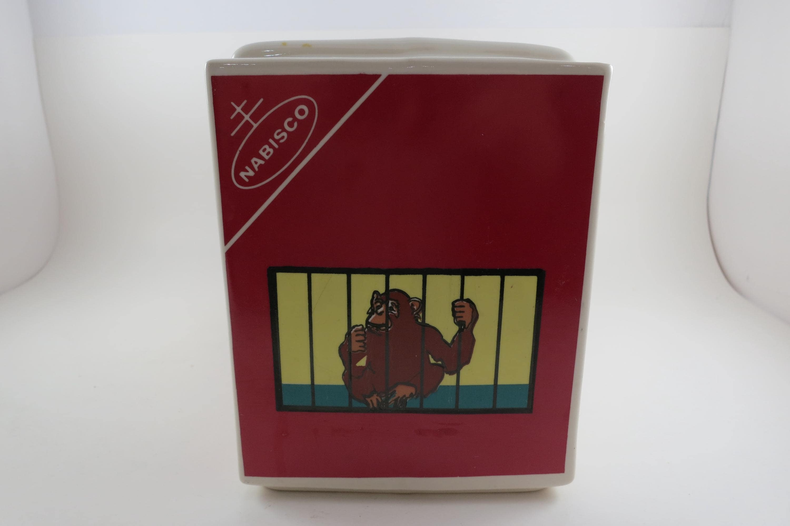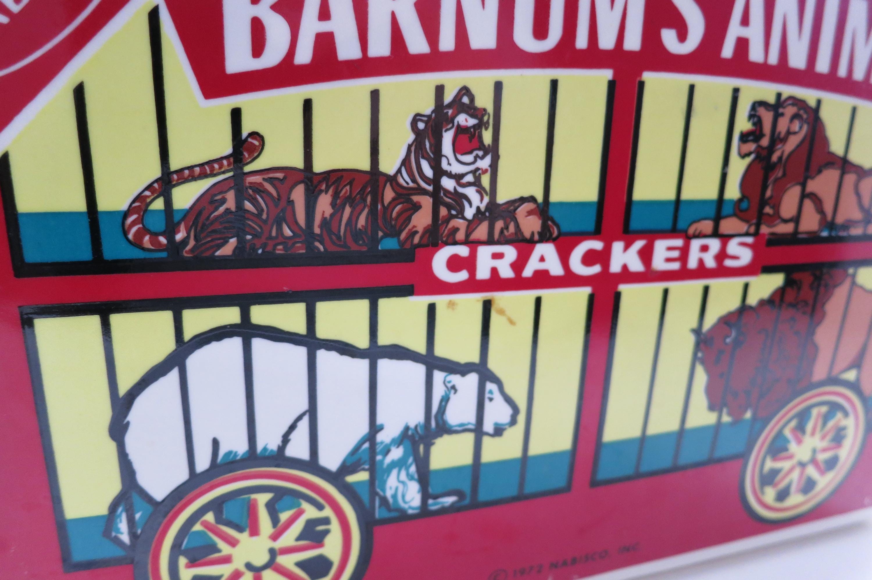 Vintage 1972 Nabisco Barnum's Animals Crackers Cookie Jar No Lid. Measures 9 1/4 inches wide, 5 inches deep and 6 1/4 inches tall. Has one tiny ceramic ding on the back right corner.