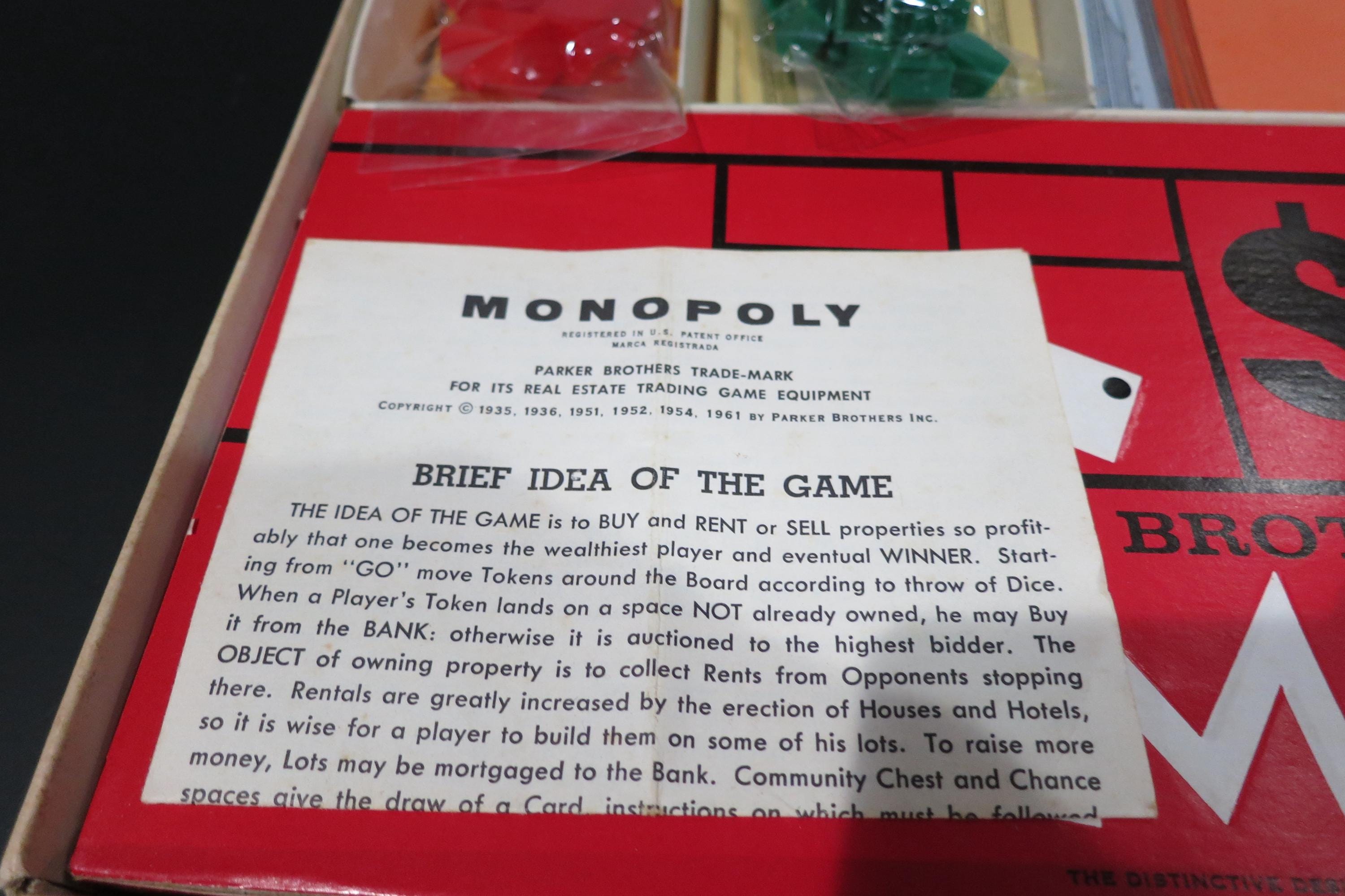 1961 Monopoly Board Game Parker Brothers 100% Complete Very Good Condition. The box shows normal use wear. Ready to play again!