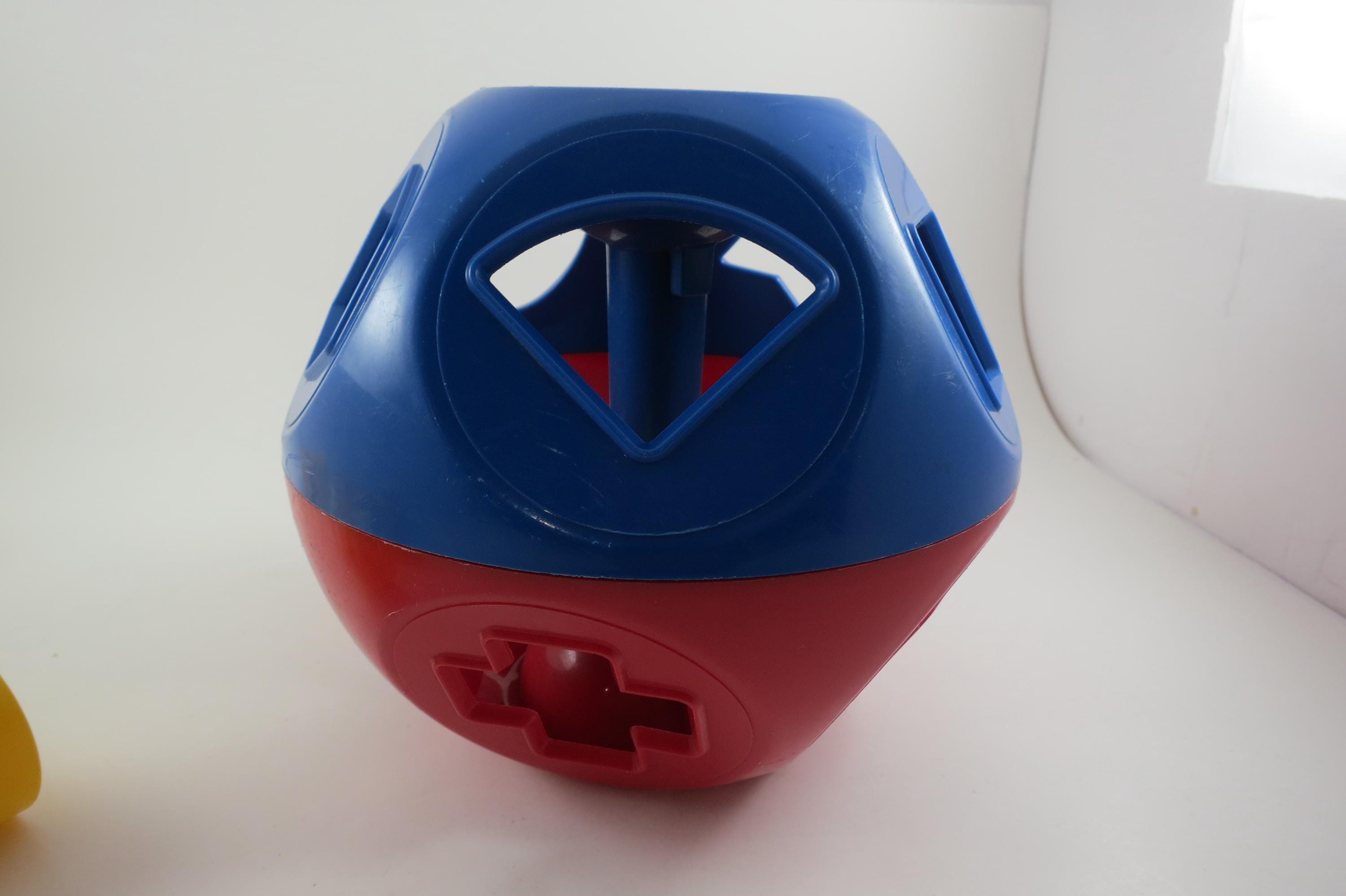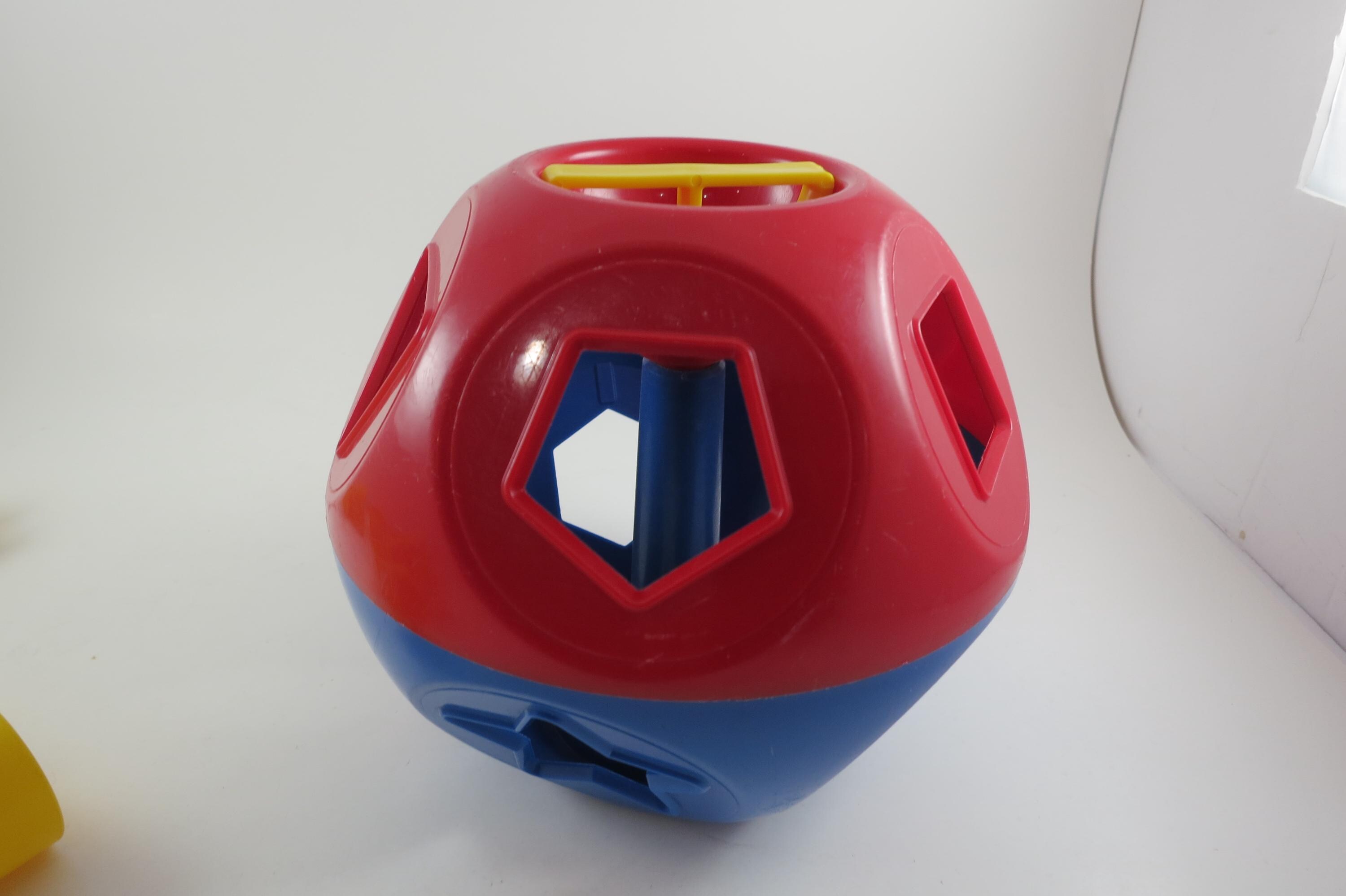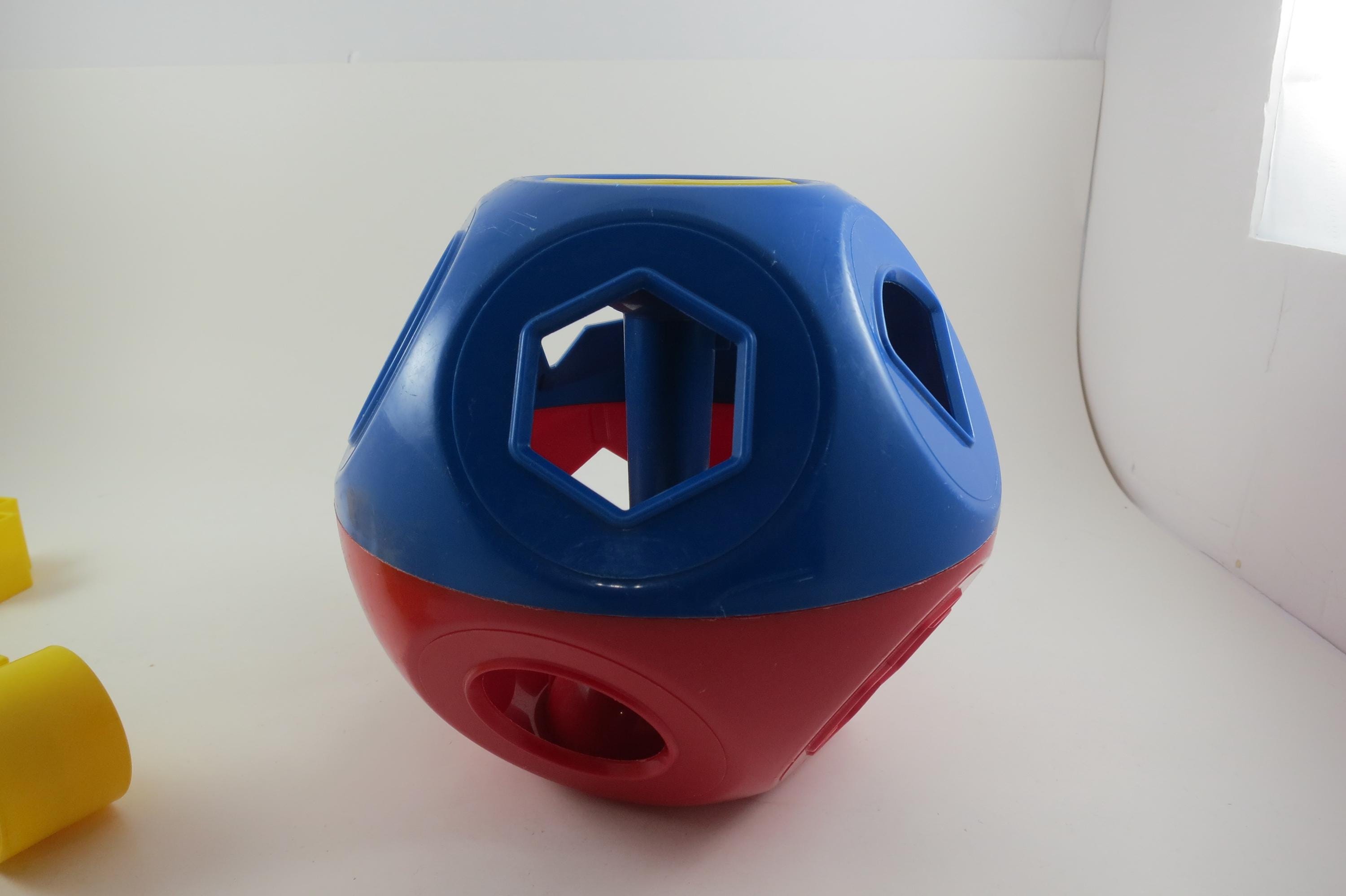 Vintage Tupperware Tuppertoys Red and Blue Shapes Ball with Nine Original shapes