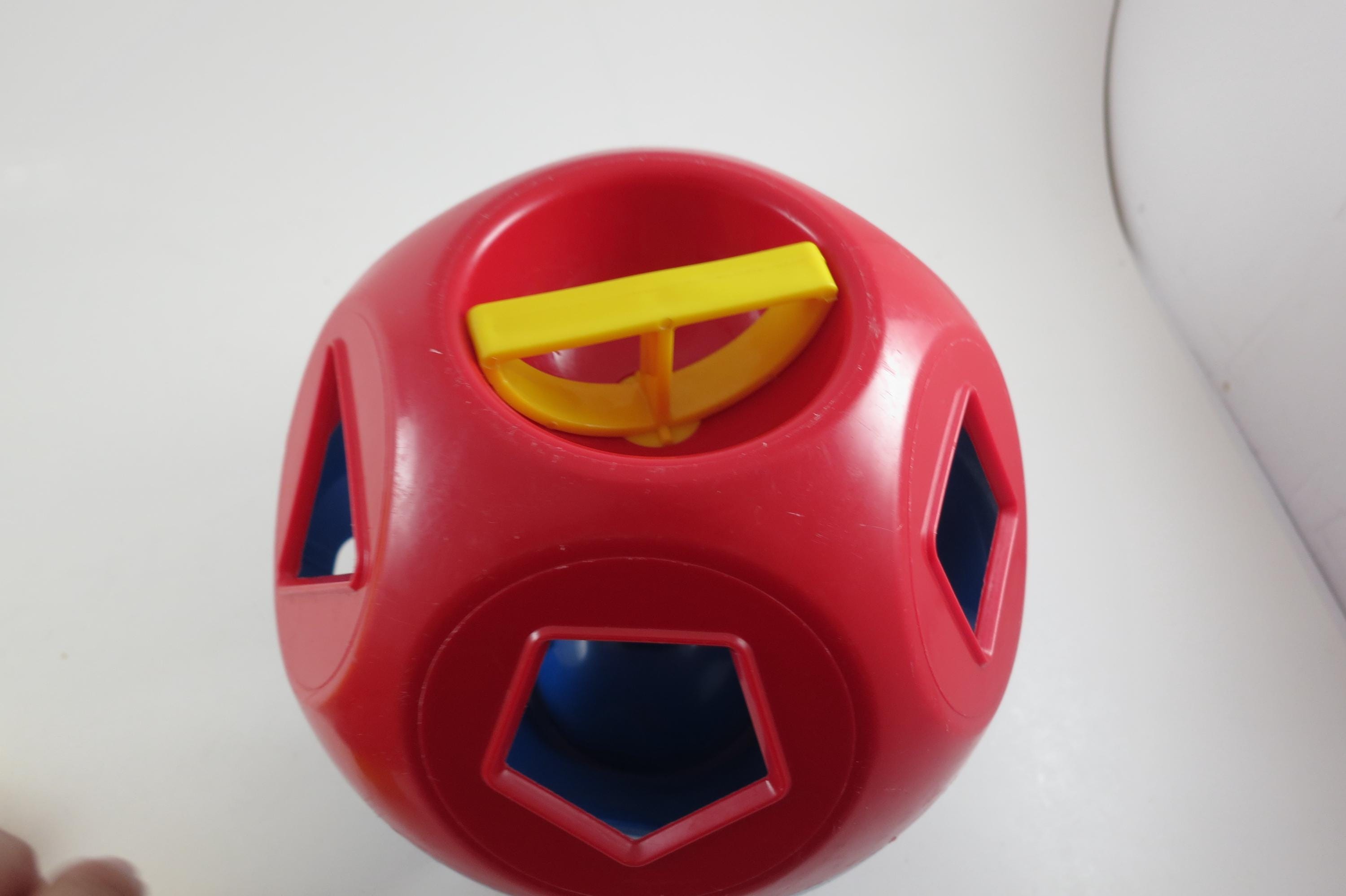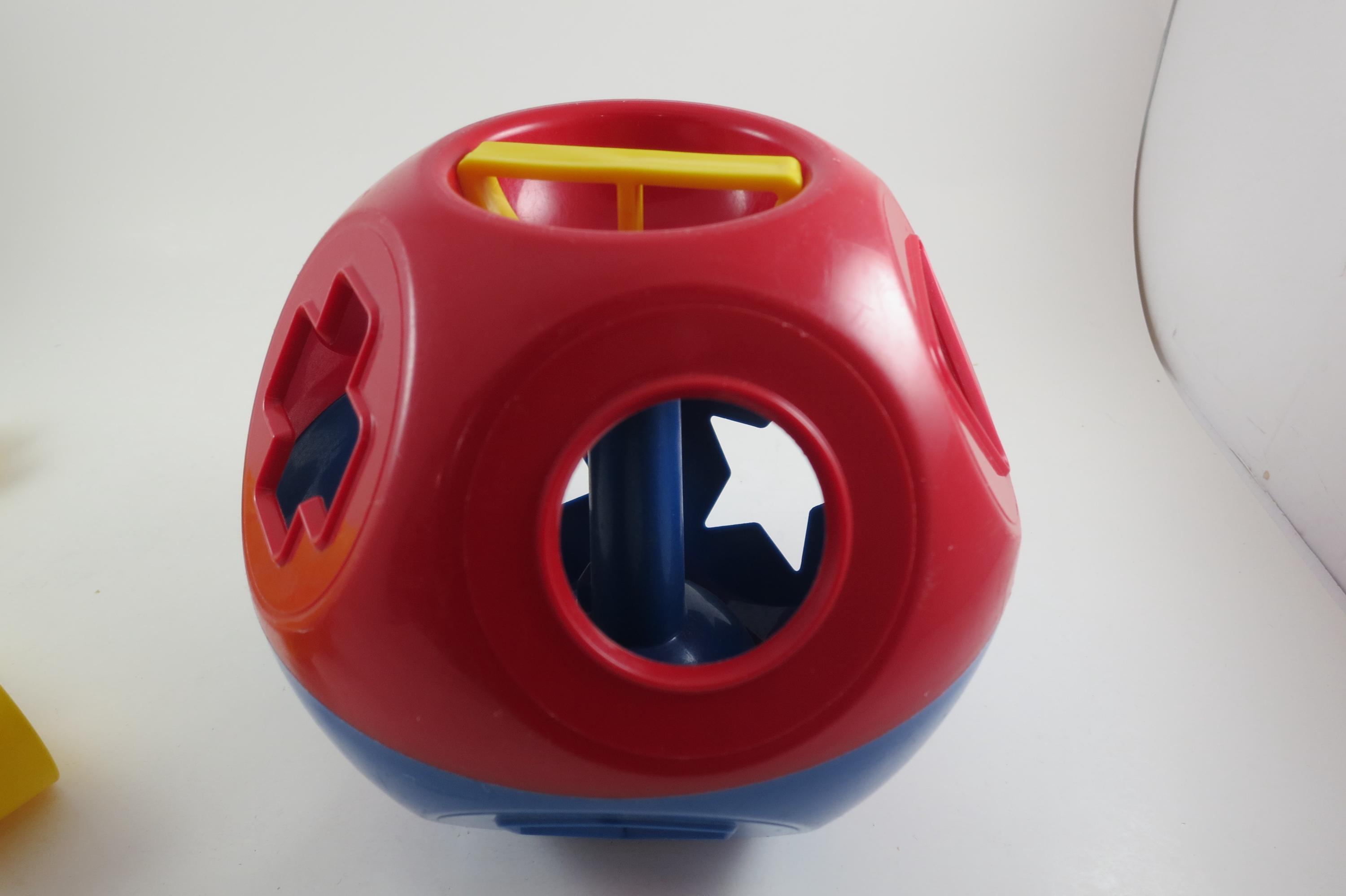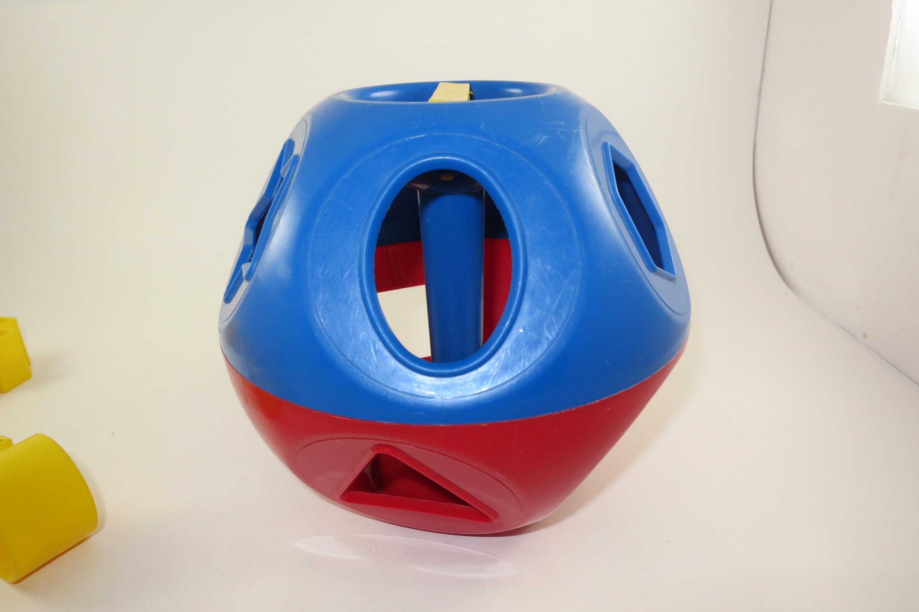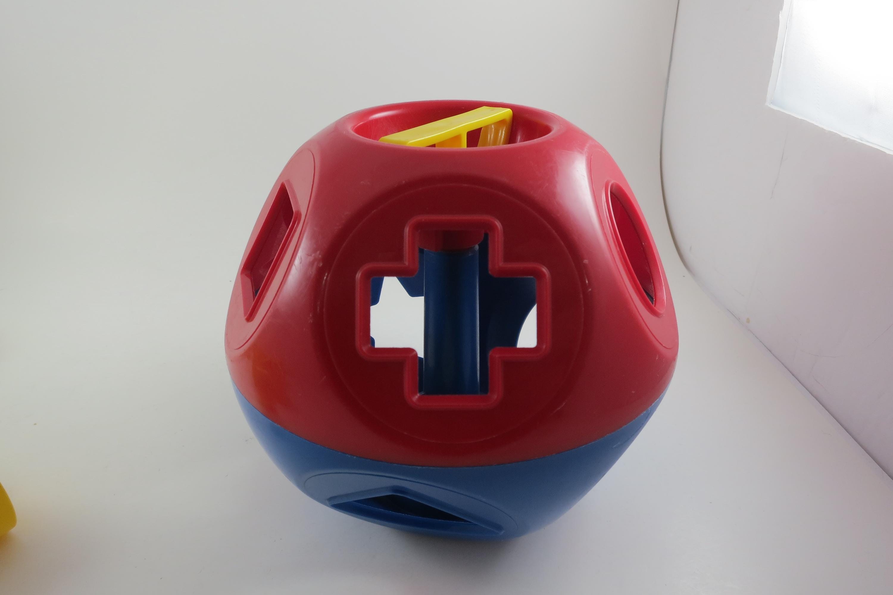 Vintage Tupperware Tuppertoys Red and Blue Shapes Ball with Nine Original shapes