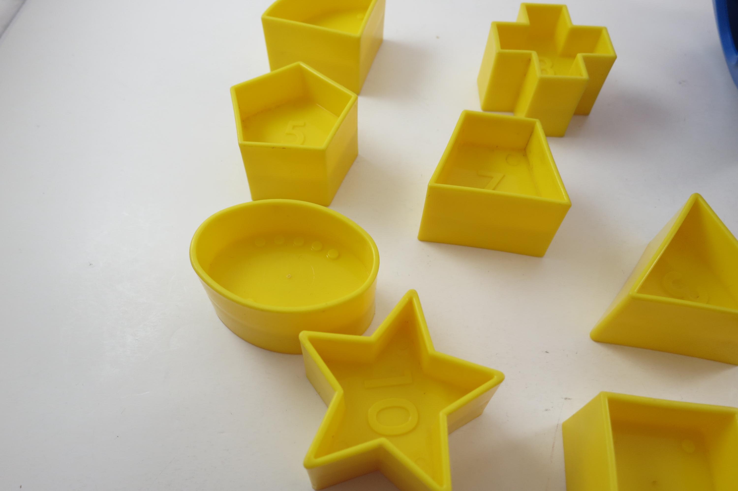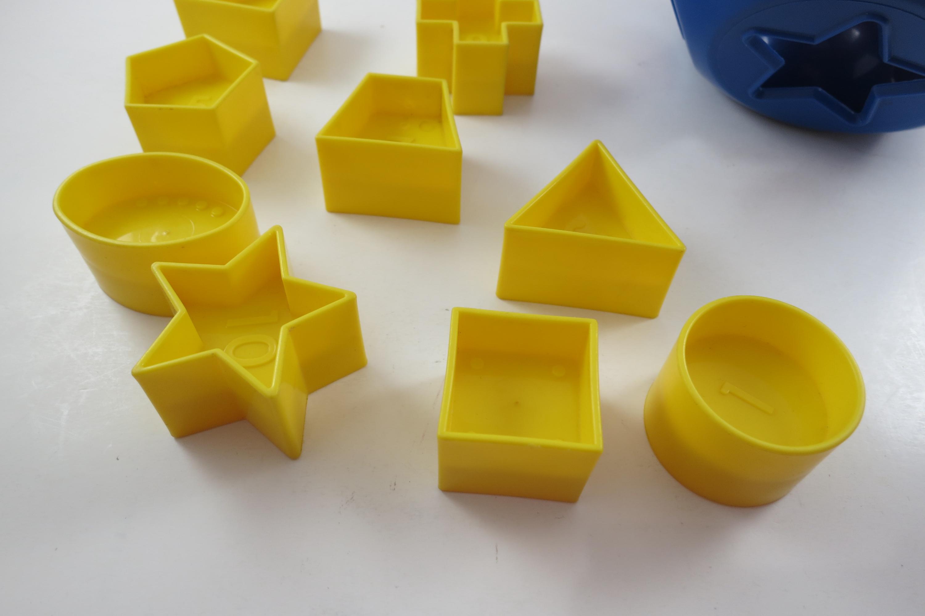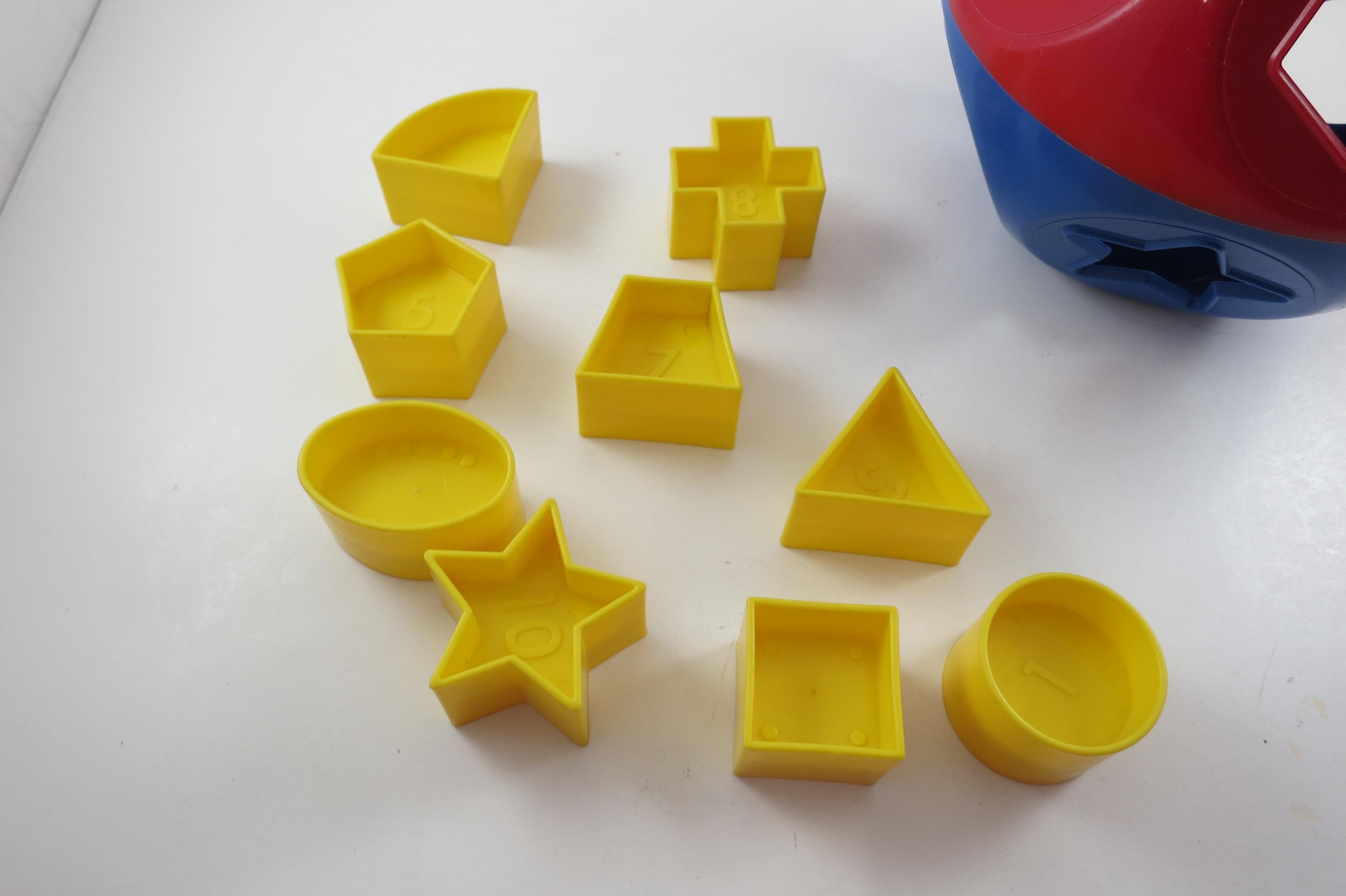 Vintage Tupperware Tuppertoys Red and Blue Shapes Ball with Nine Original shapes. Very good original condition!