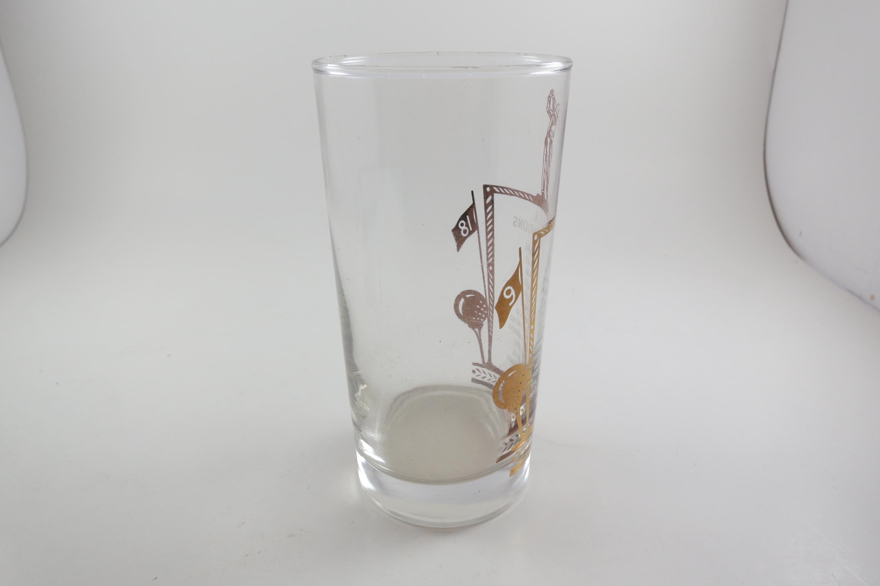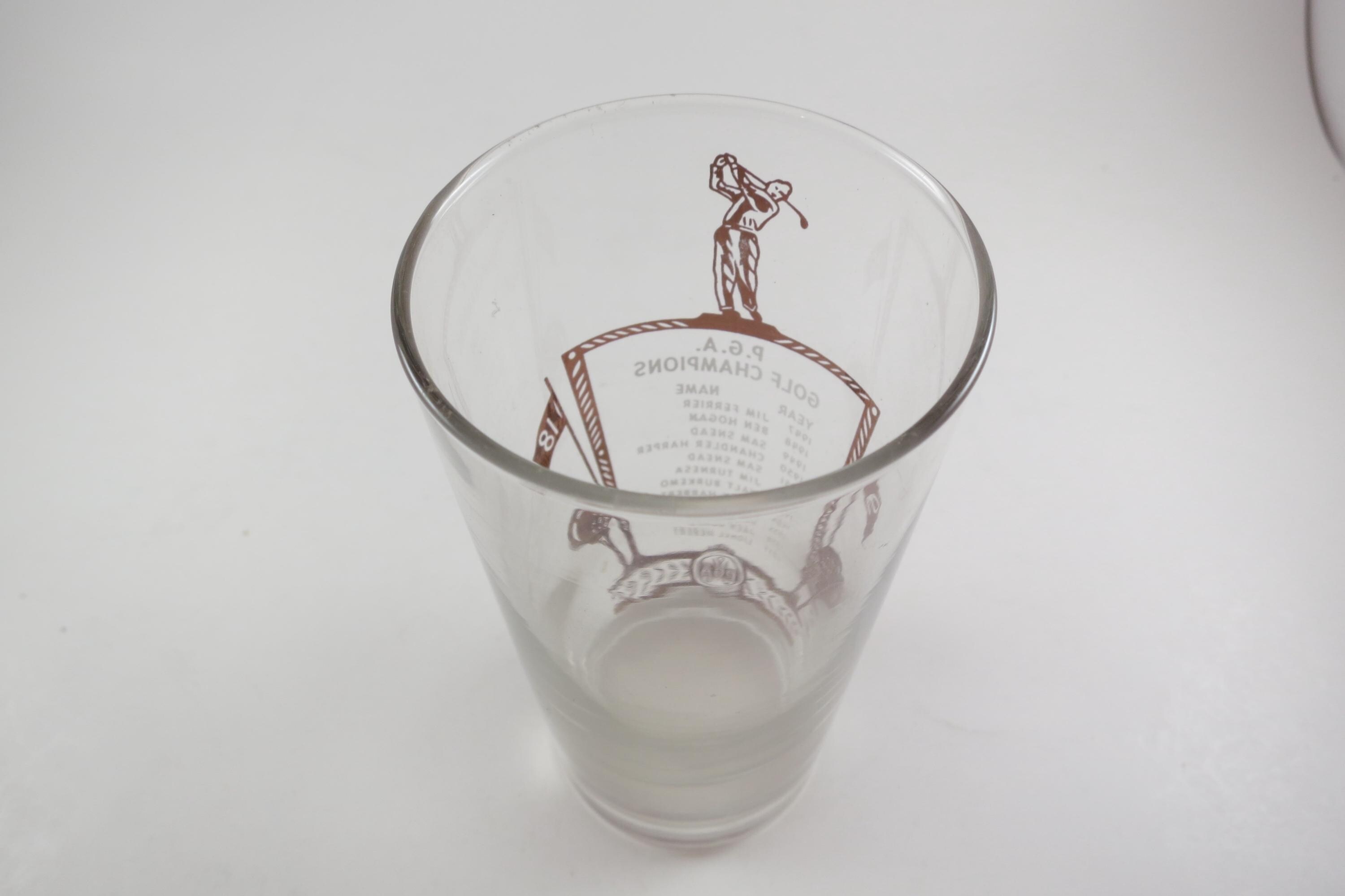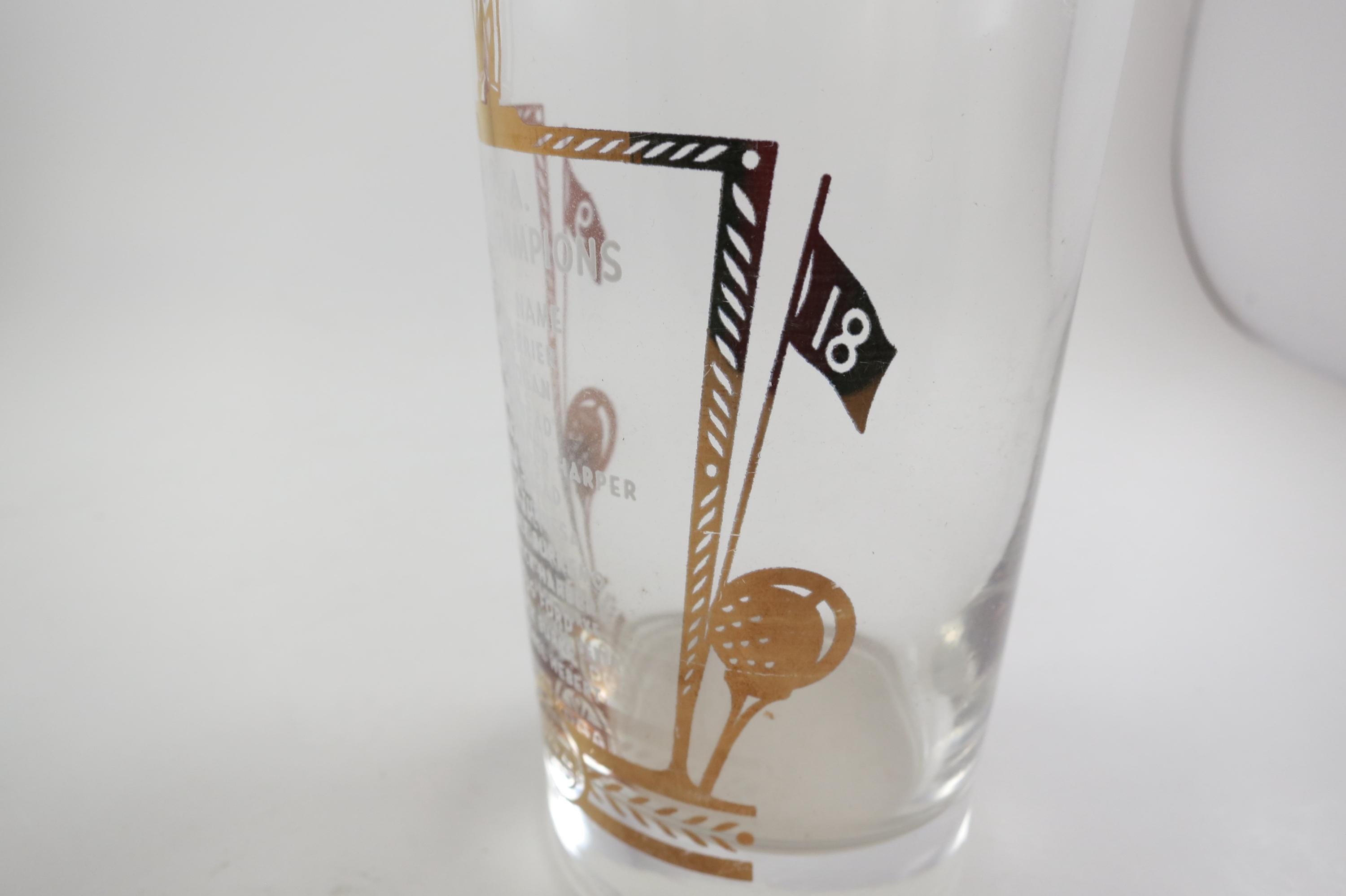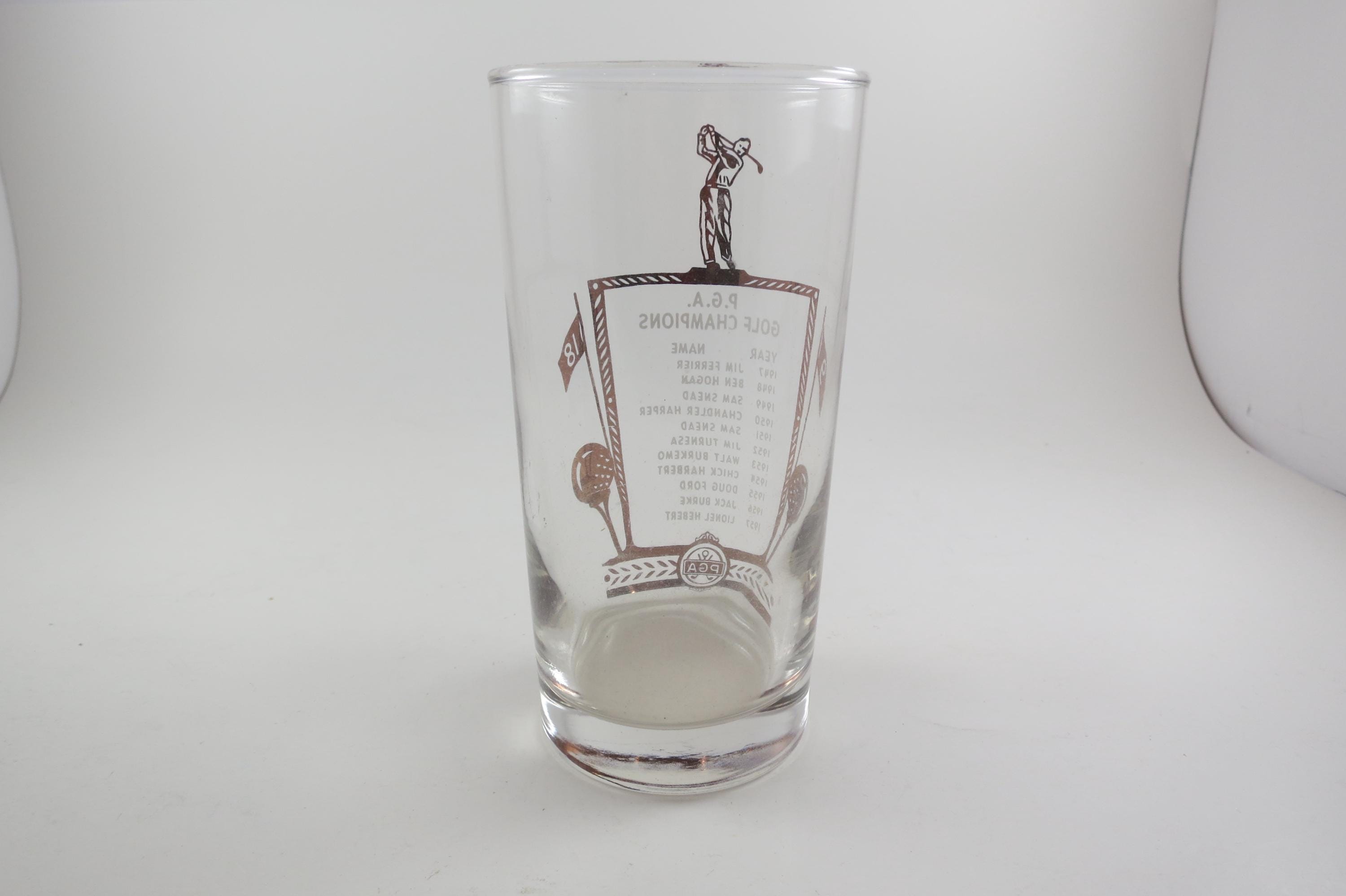 Vintage 1958 PGA Golf Tour Champions Glass 1947-1957 Winners Listen Excellent Condition. Measures 5 1/2 inches tall with gold trim.