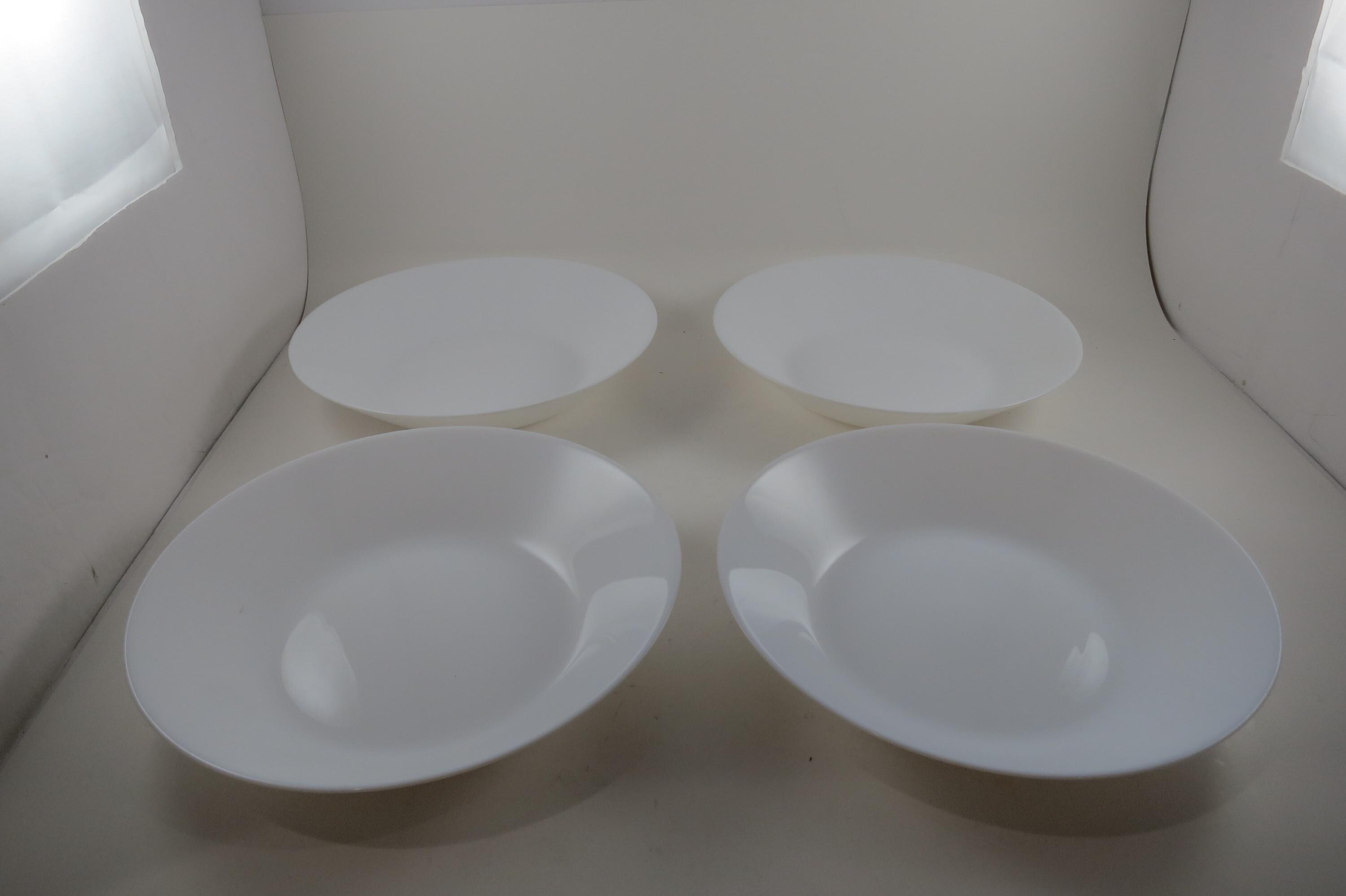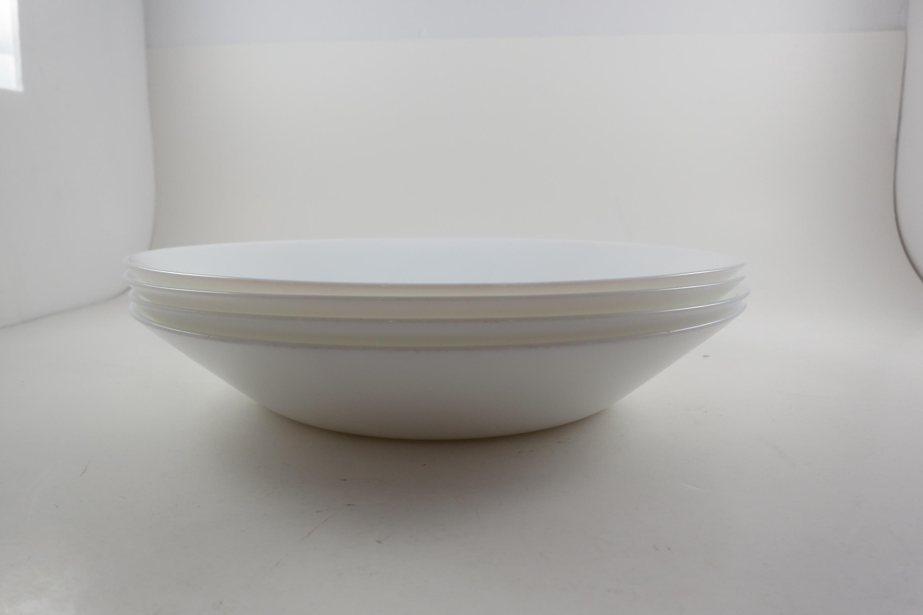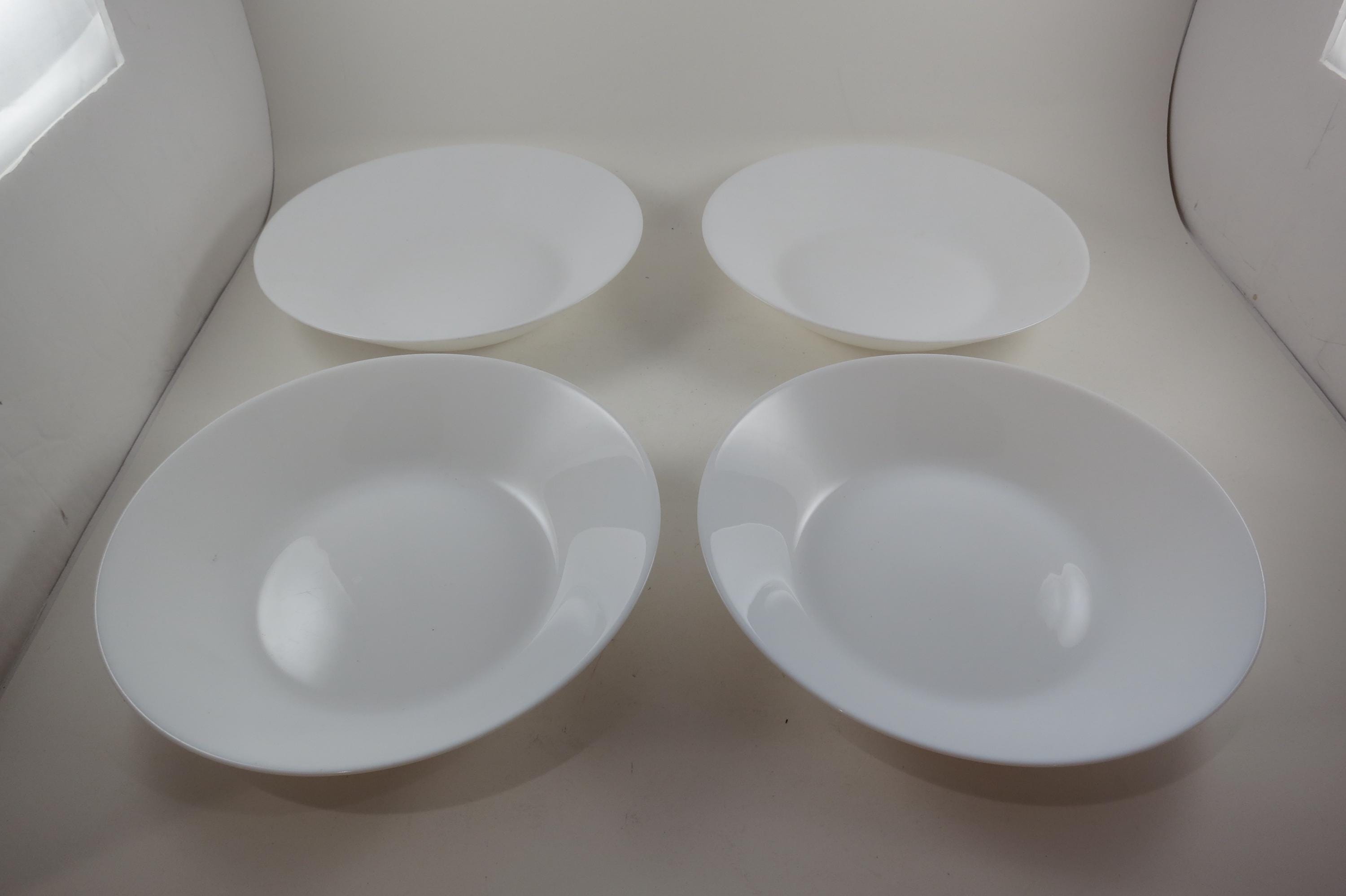 Arcoroc France Tempered Glass Soup Salad Lunch Bowls, Set of 4 (8 Inch). All four are in like new condition with no damages and hardly any use wear. These Bowls measure 8 inches.