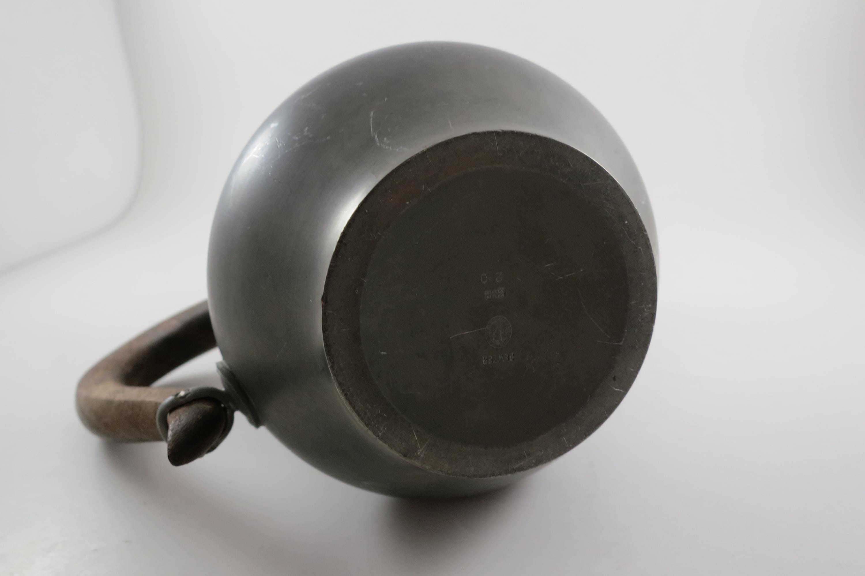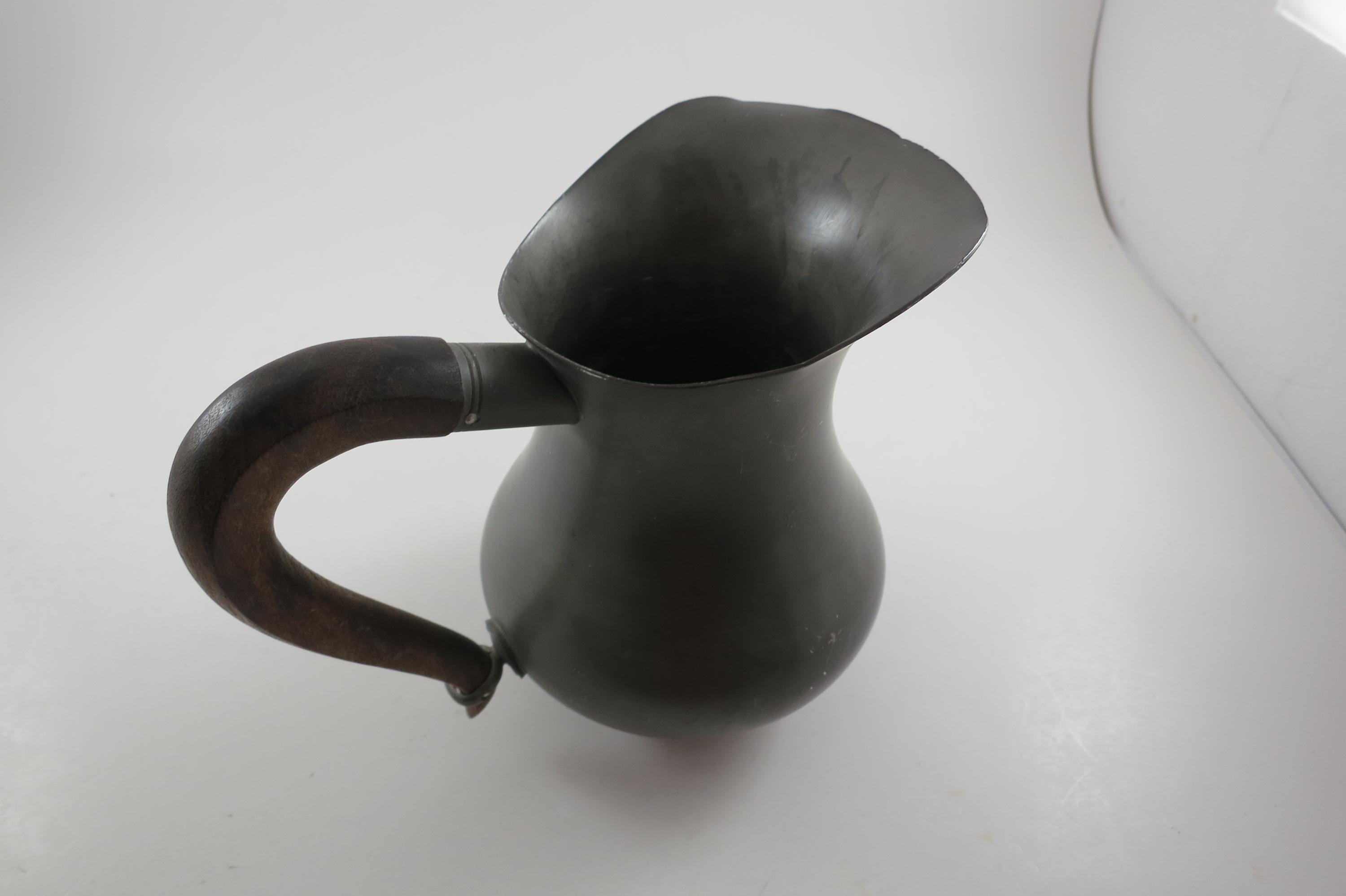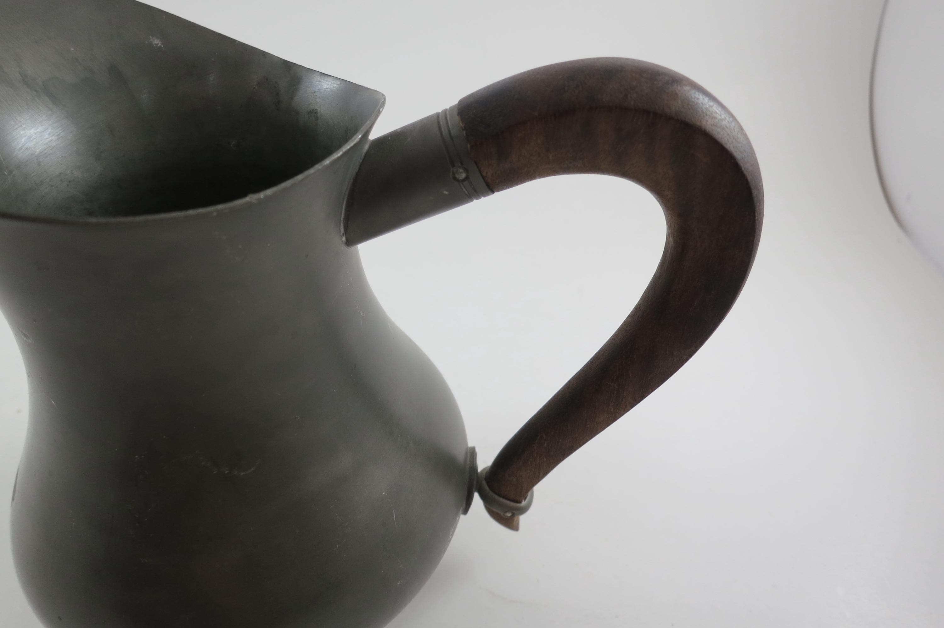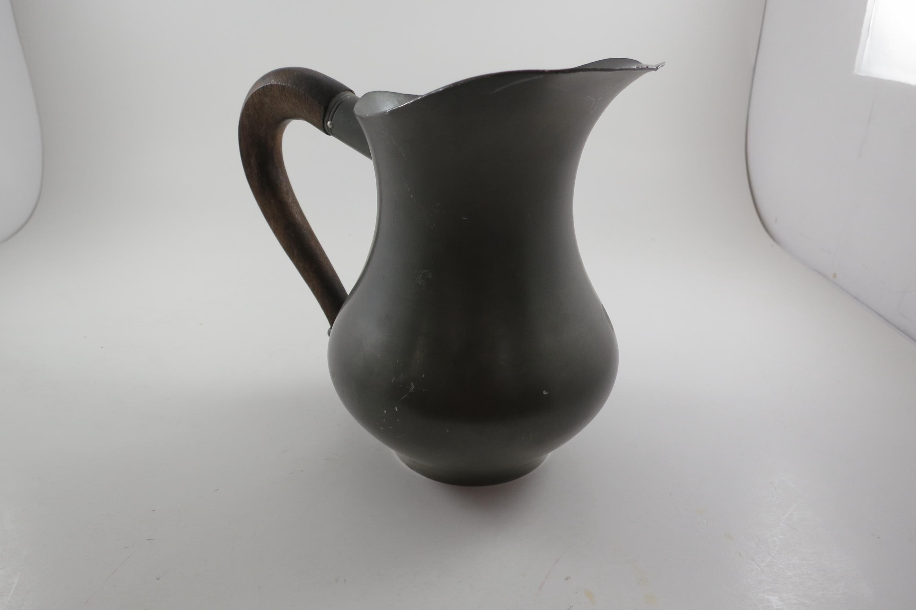 Vintage Pewter Small Pitcher with Wooden Handle 20 Excellent Condition. Nice condition. 5 3/4 Inches tall and 6 3/4 Inches Wide spout to handle.