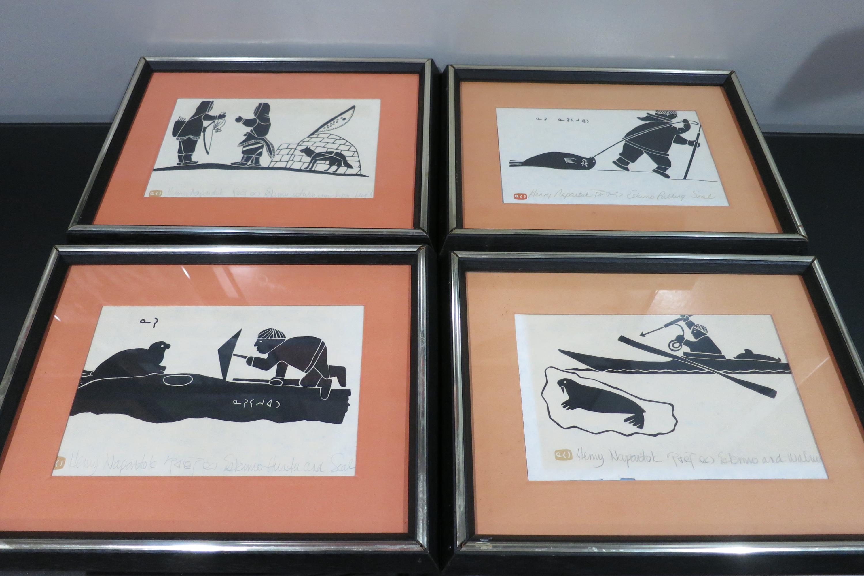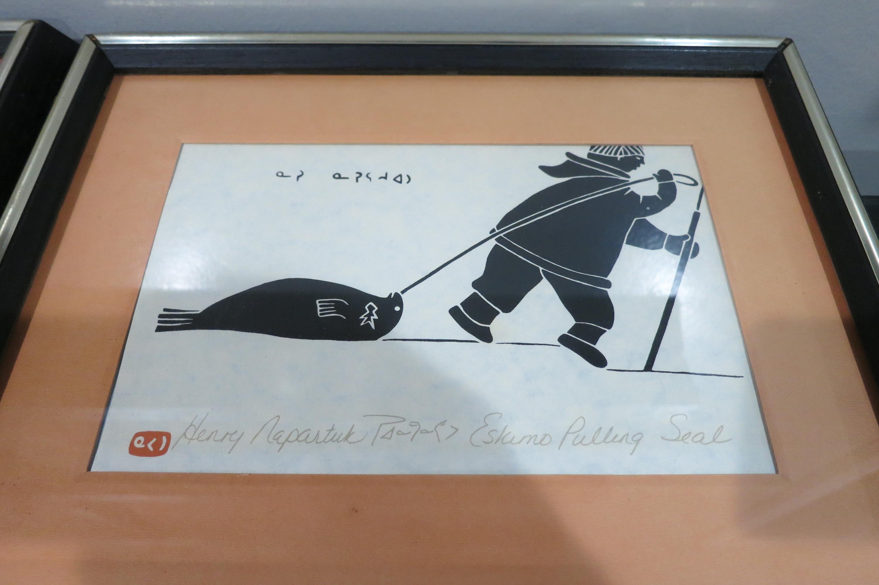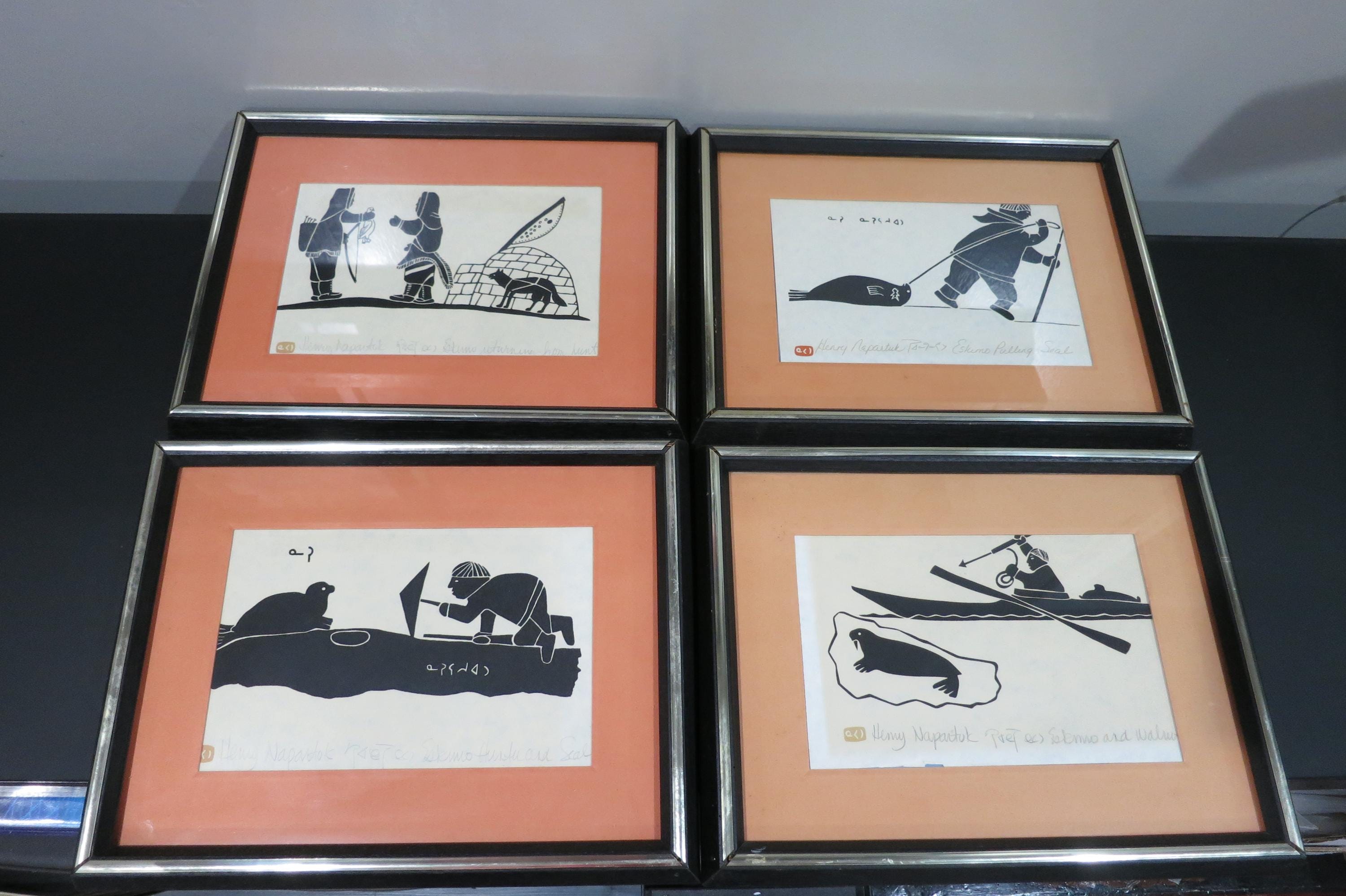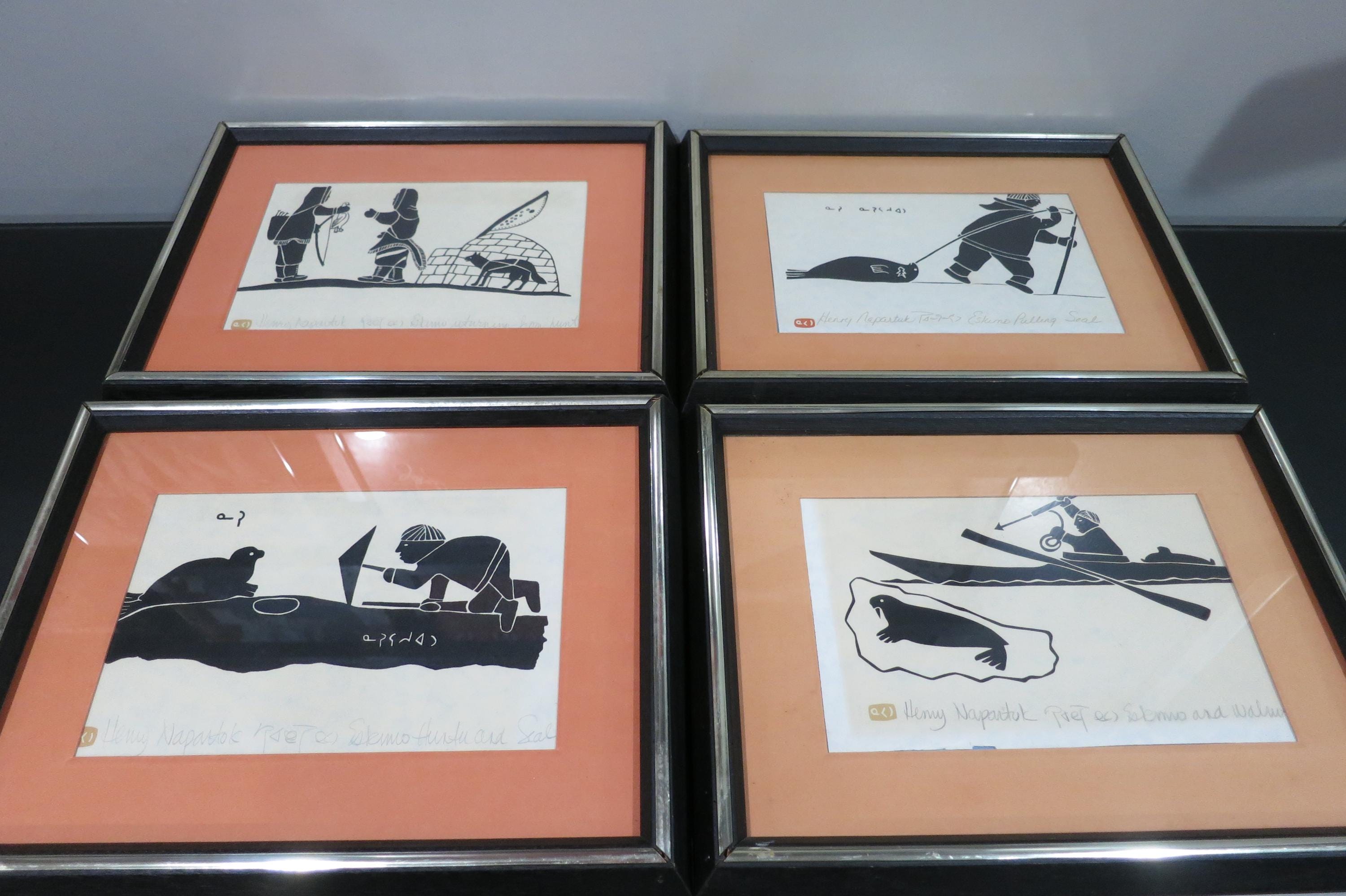 Set of Four Vintage Henry Napartuk Inuit Arctic Life Prints Matching Frames Original Excellent Condition