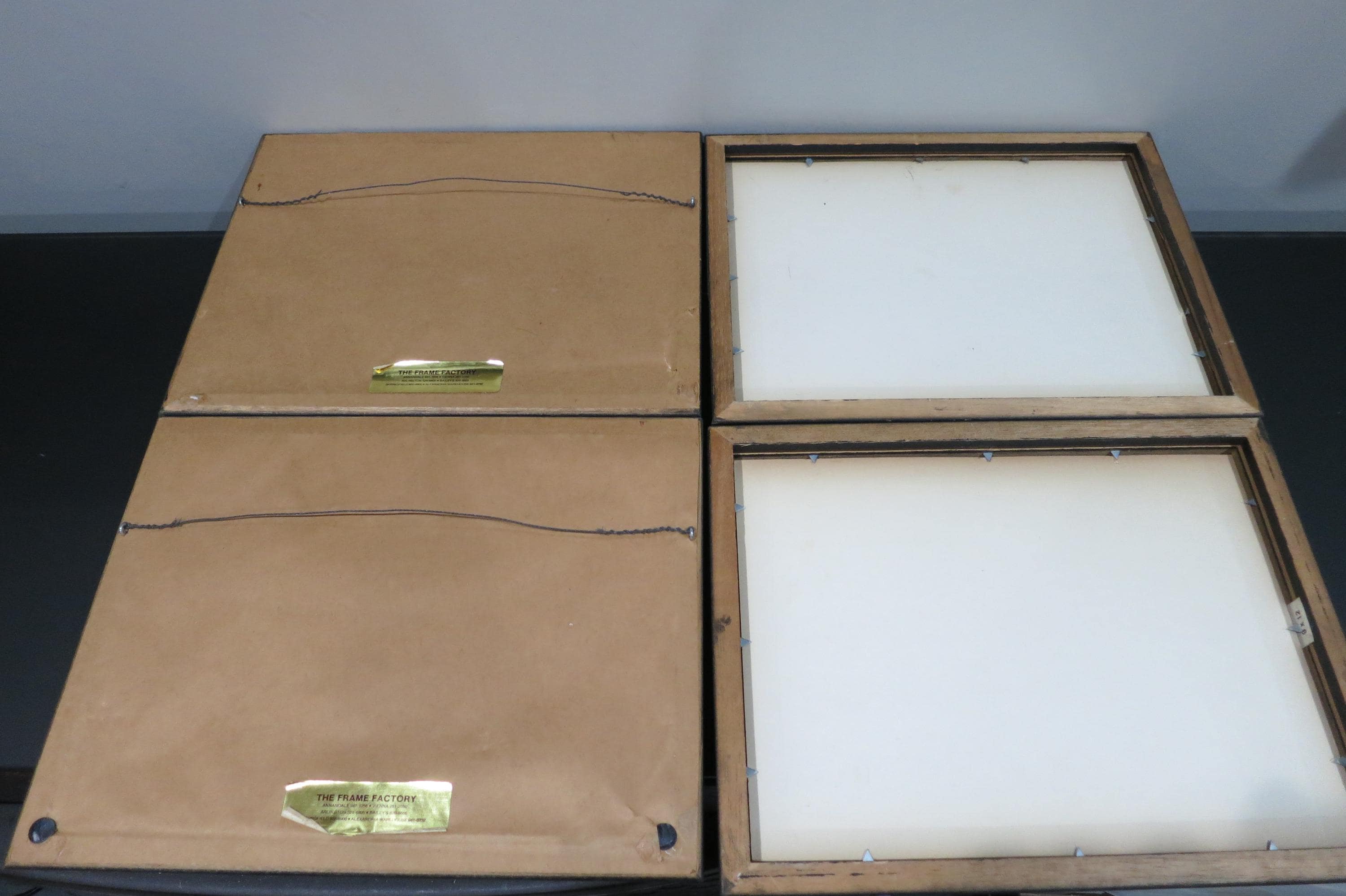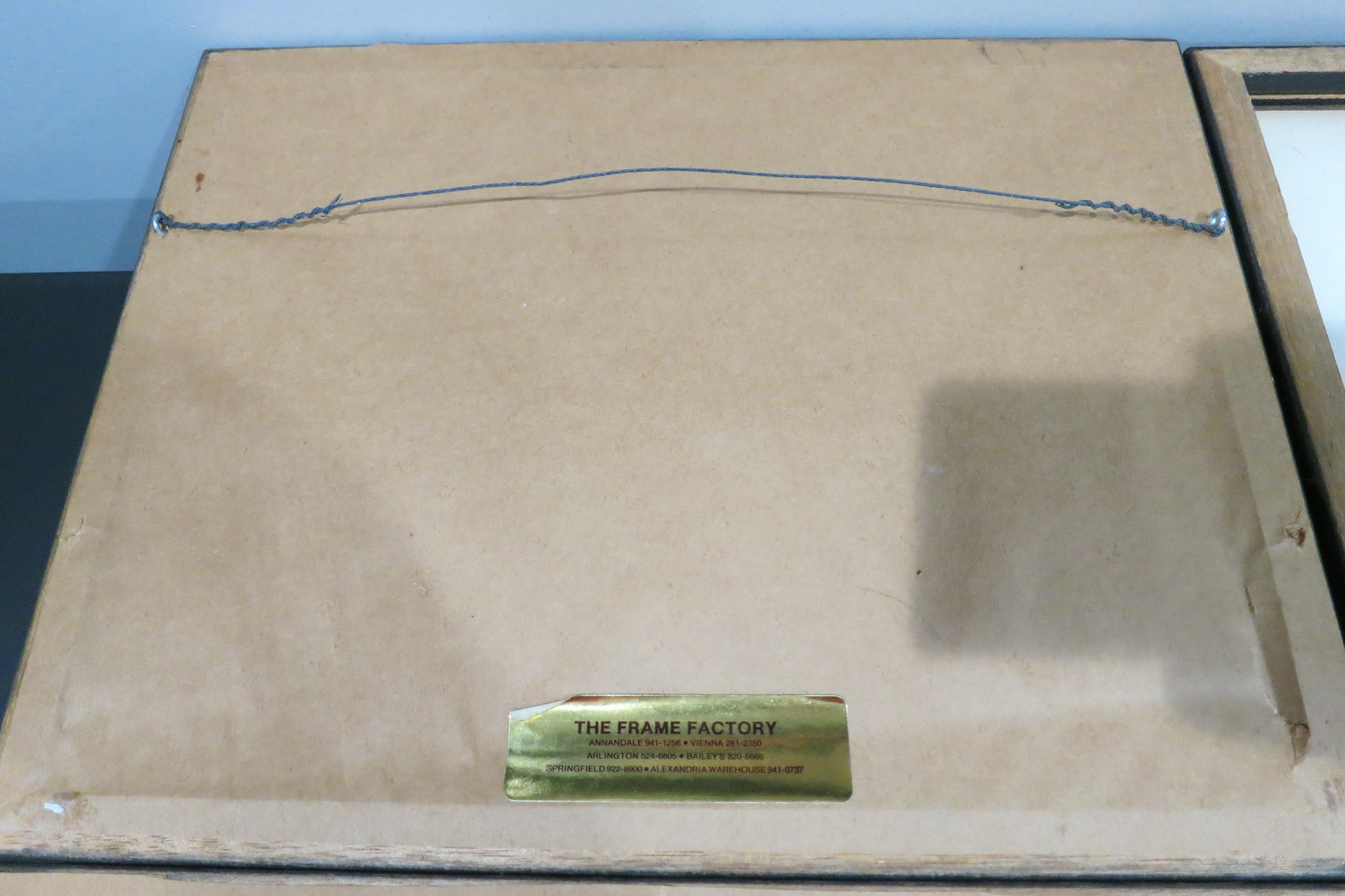 Matching set of four fabulous examples of his work. The Frames are black wood with peach colored mats. Each Measures 13 1/3 inches wide and 10 3/8 inches tall. Frames have gold trim. Includes the following four