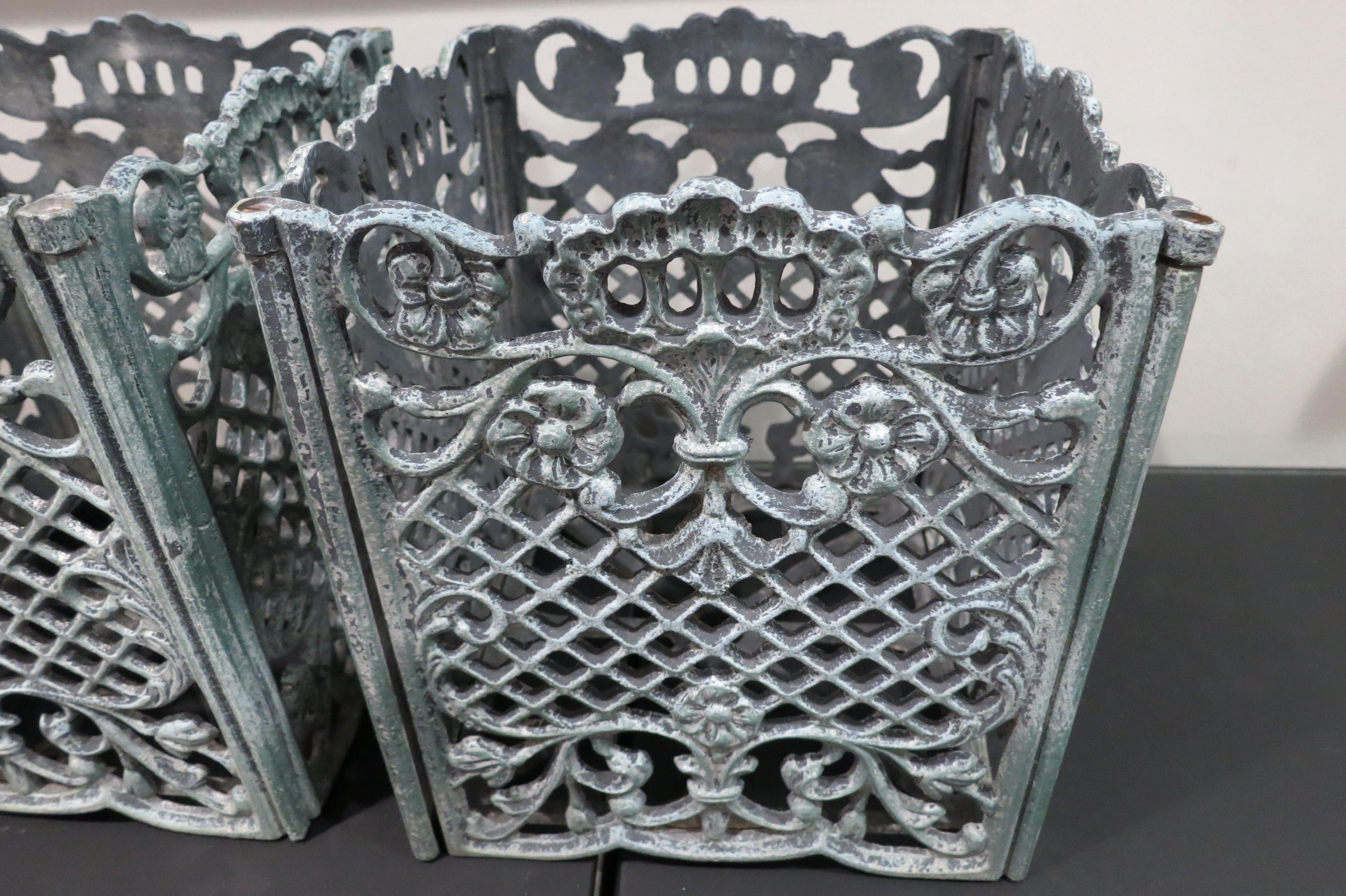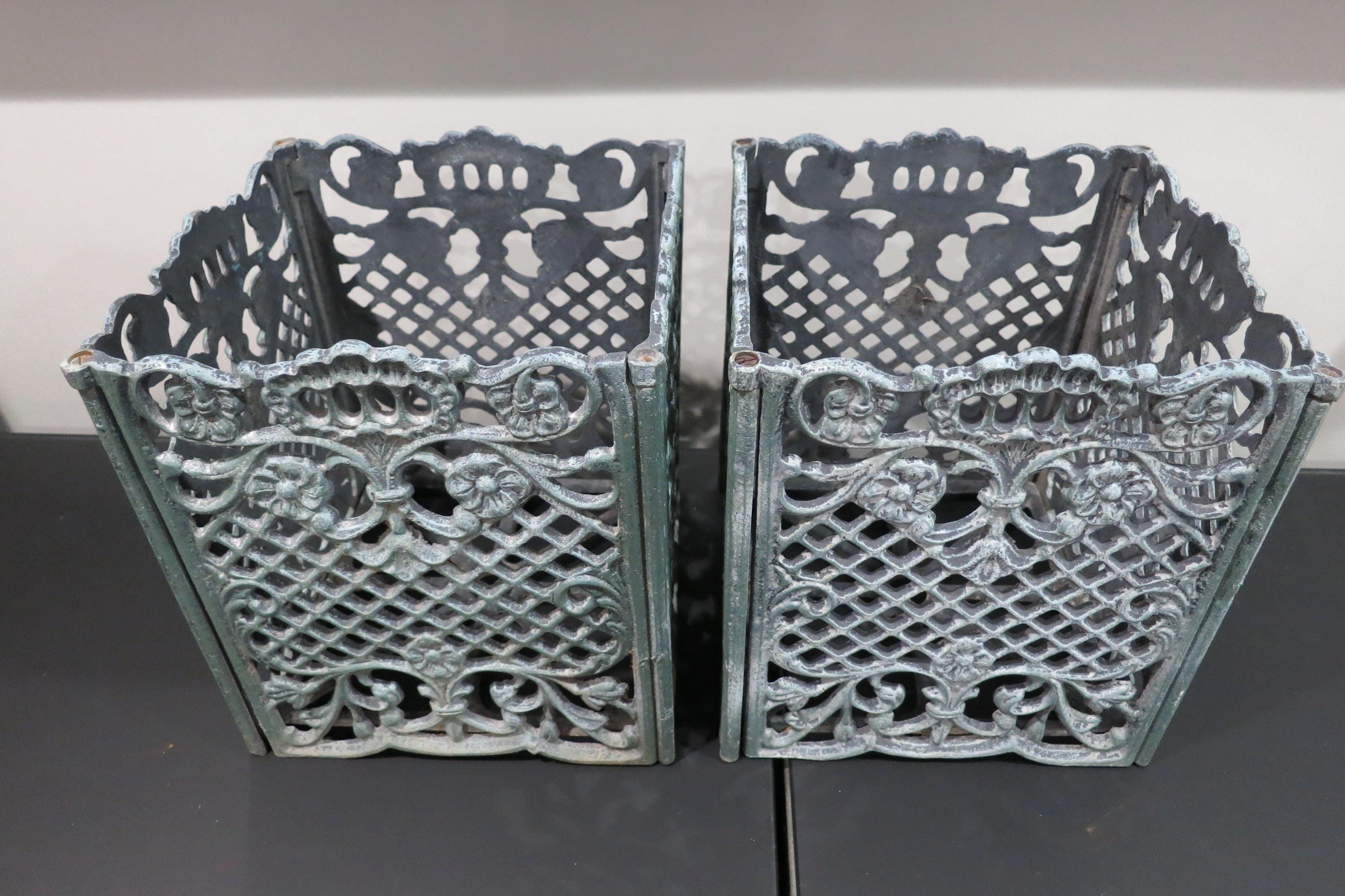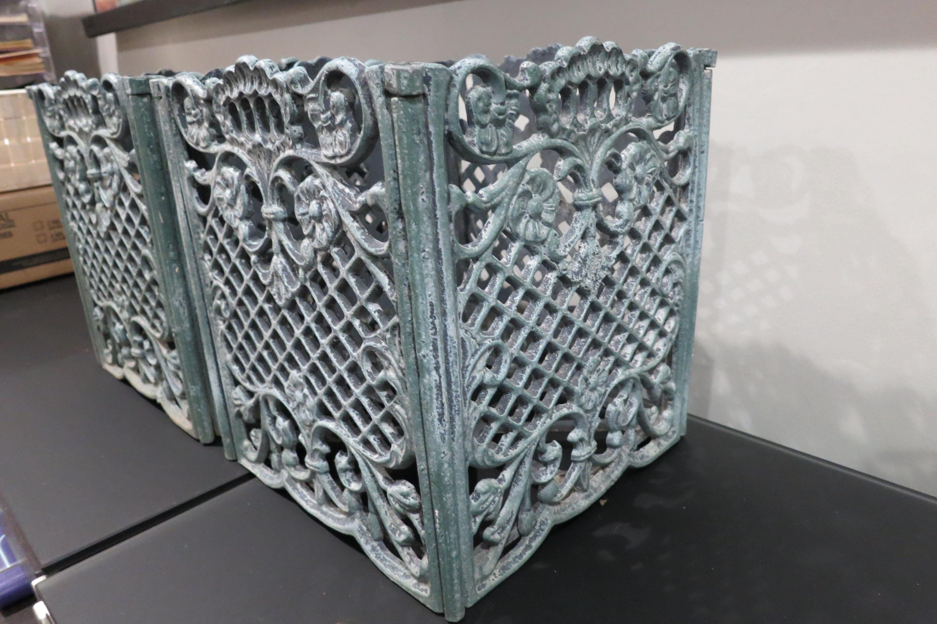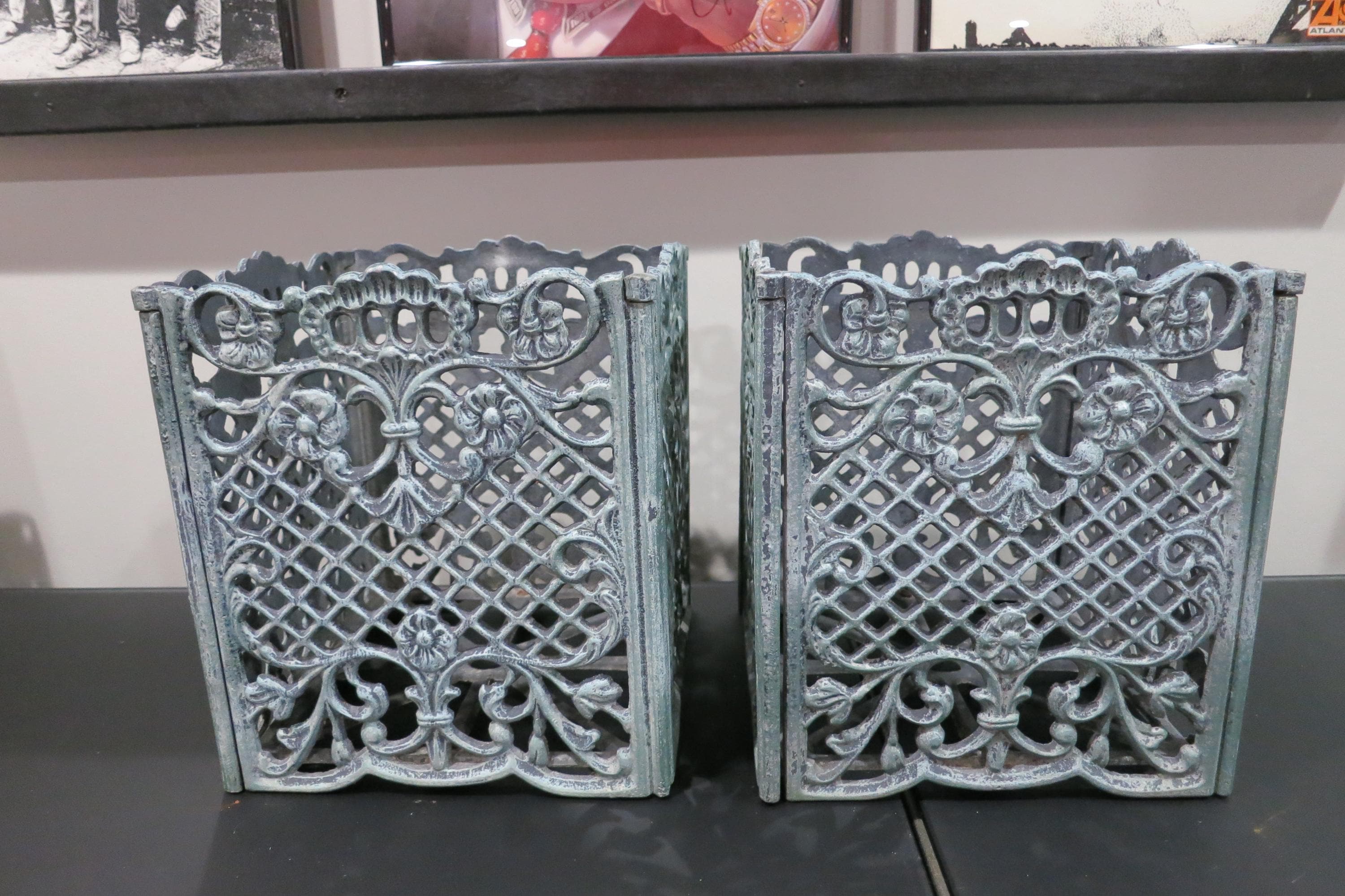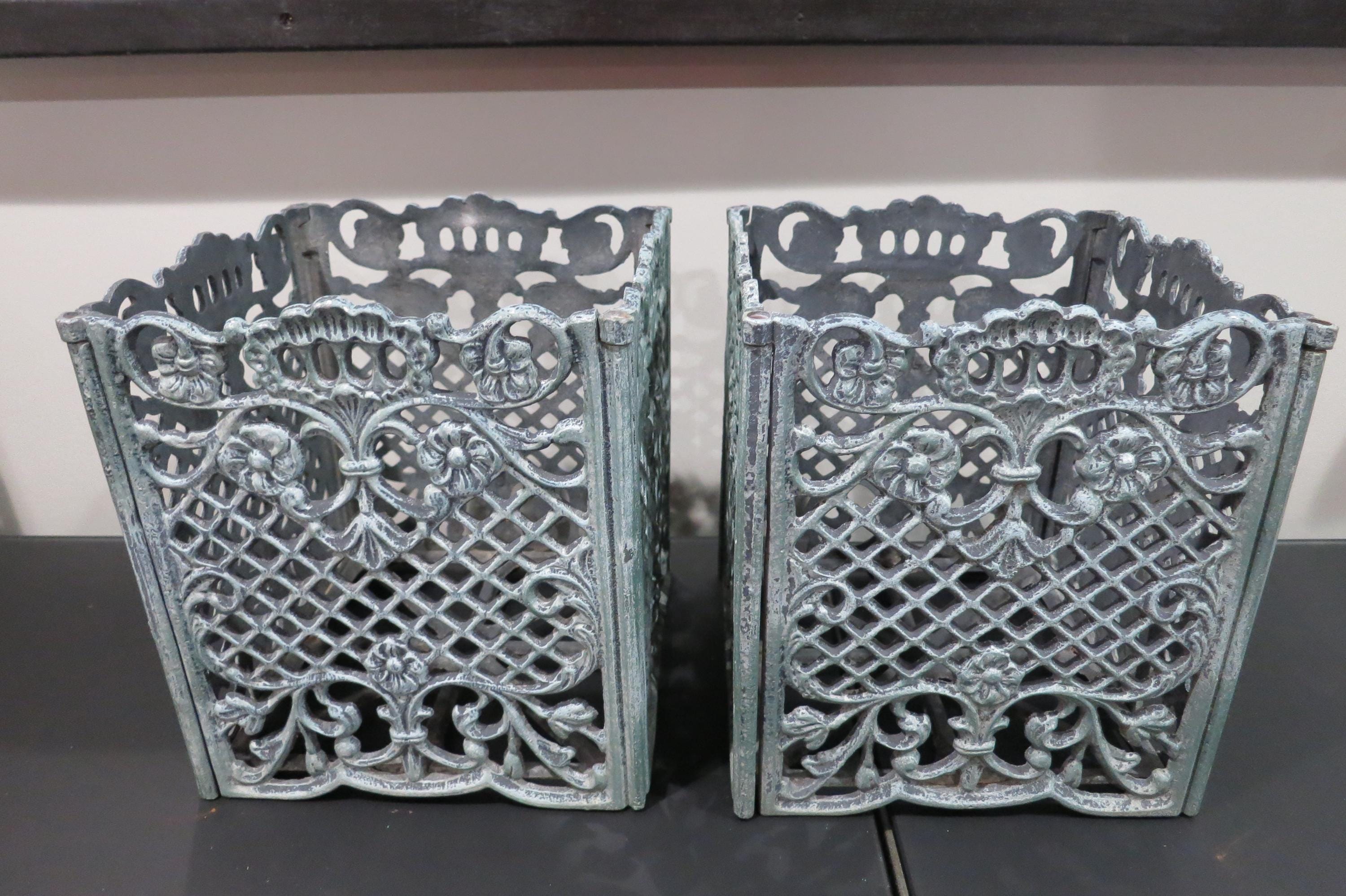 Pair of Vintage Ornate Cast Metal Indoor/Outdoor Planters 9x9 Excellent Condition.