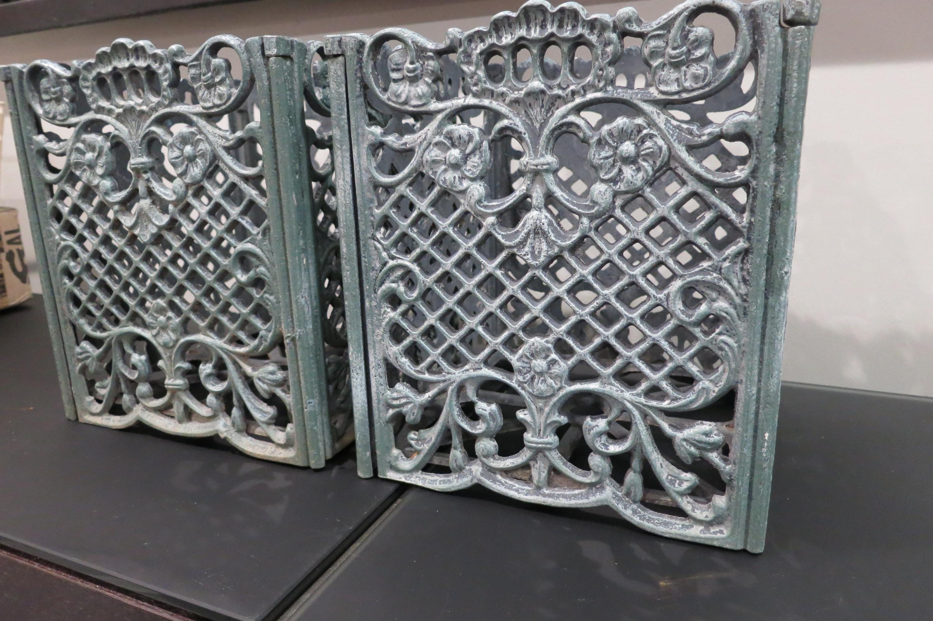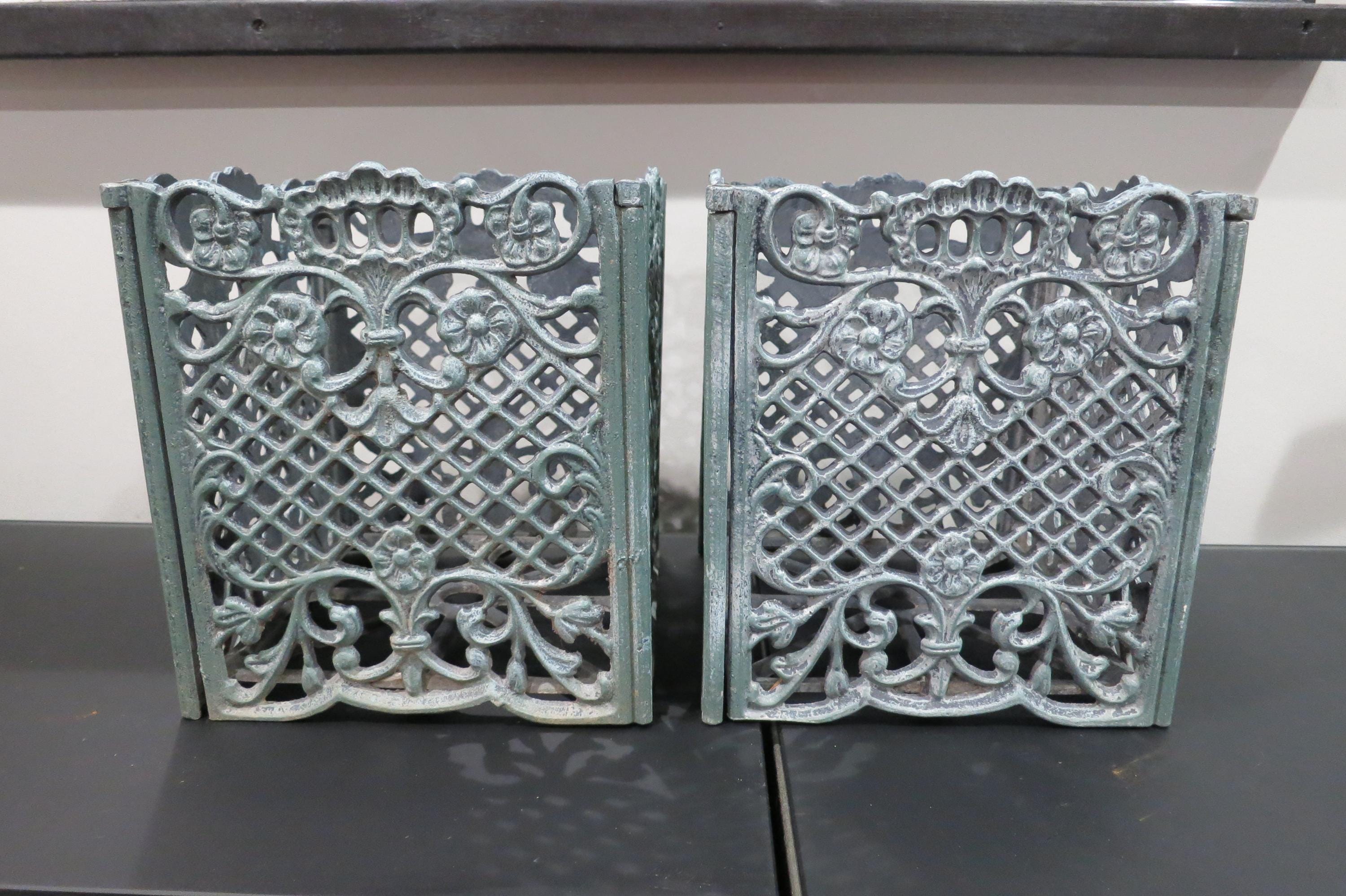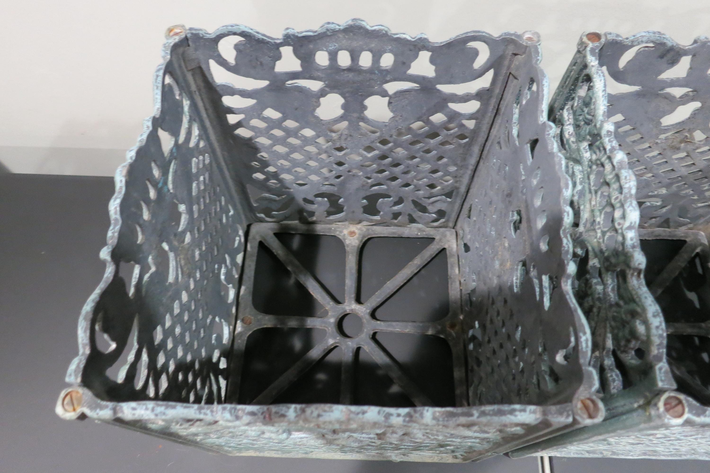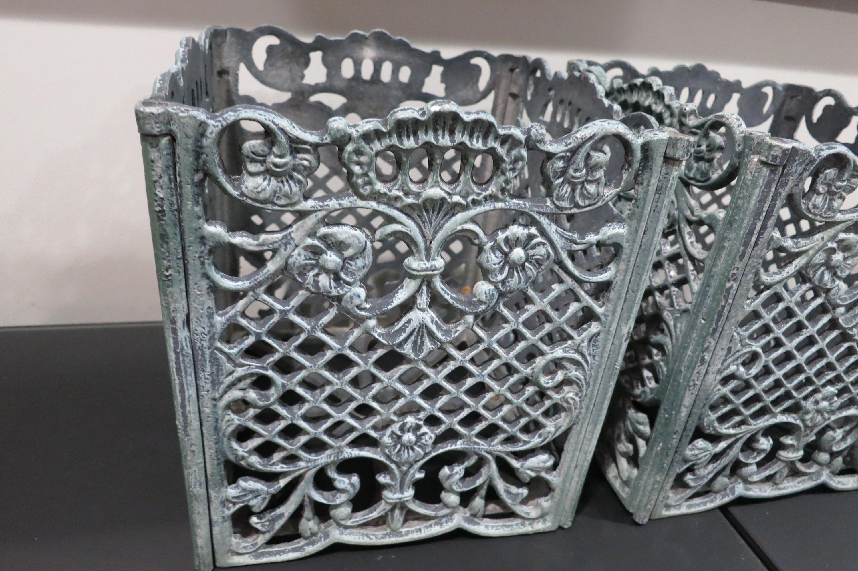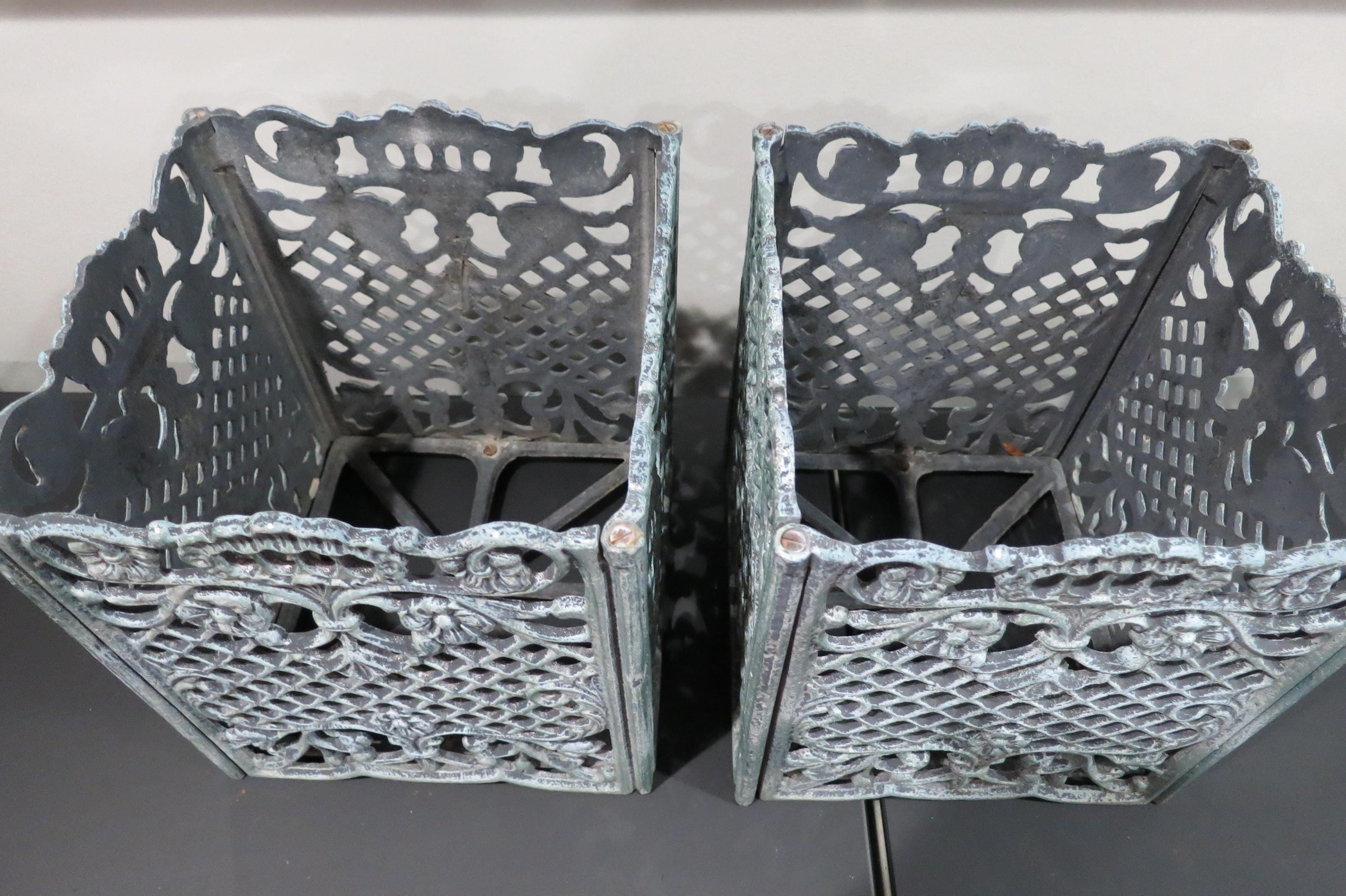 Pair of Vintage Ornate Cast Metal Indoor/Outdoor Planters 9x9 Excellent Condition.